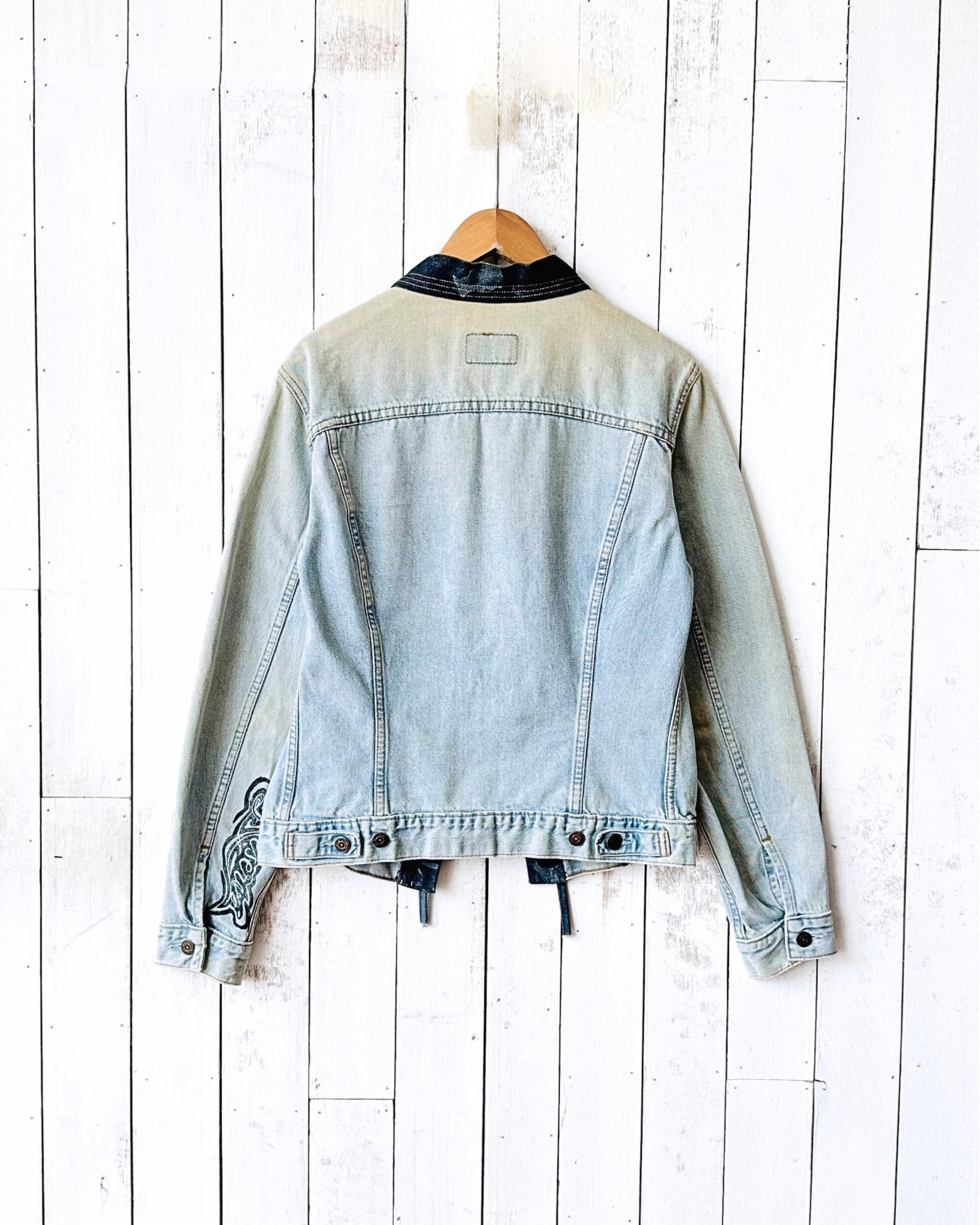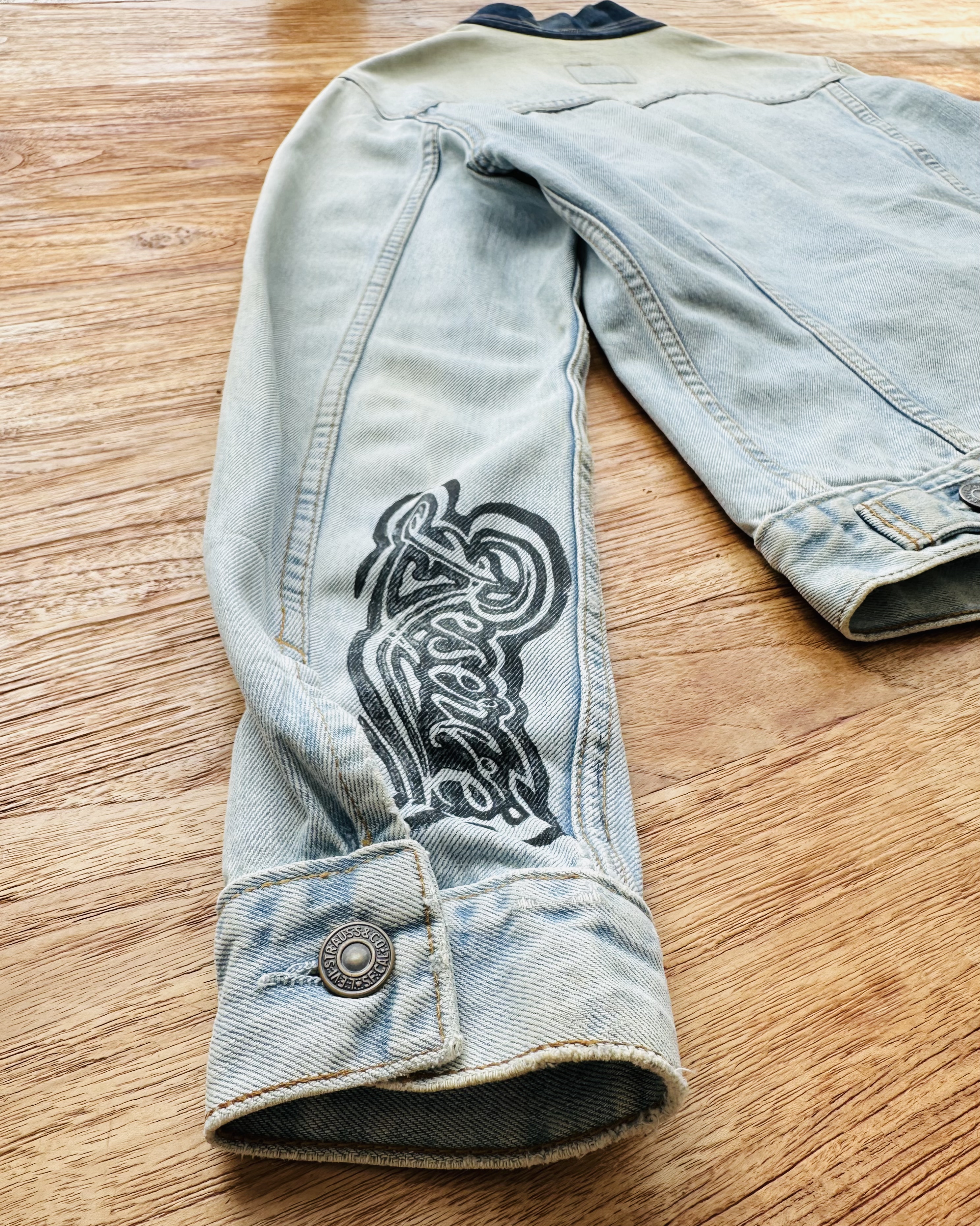 手造、one of a kind、成個系列只有11件,呢件係第6件🧞♂️。如果你仲未識佢,要記住呢個名嘞👉🏼Atelier Reserve,荷蘭vintage remake品牌,最鍾意解構重組舊Levi’s牛仔褸,再將大和服飾元素 + tattoo圖案加工入饌,件件幾千蚊嘅。重點係佢哋勁到被Levi’s點名邀請官方聯乘玩咗幾個collection,喂你諗吓有幾多呢種remake小眾品牌有本事攞到咁嘅光環先得㗎🔥 價錢:HK$1,300 品牌:Atelier Reserve 尺碼:Free 尺寸:43cm (肩)|96cm (胸)|66cm (袖)|61cm (長) 註:88%新|upcycle Levi’s 牛仔褸自帶歲月痕跡|突尼西亞製 *二手產品難達全新狀態,耗損或歲月痕跡屬正常情況,較明顯/嚴重嘅問題會標明或影底,敬請見諒。 *進入付款程序後,請於10分鐘內完成付款,否則絲統會自動取消訂單。 逢星期四寄出|不設退換或退款|順豐運費到付|只寄香港不寄海外