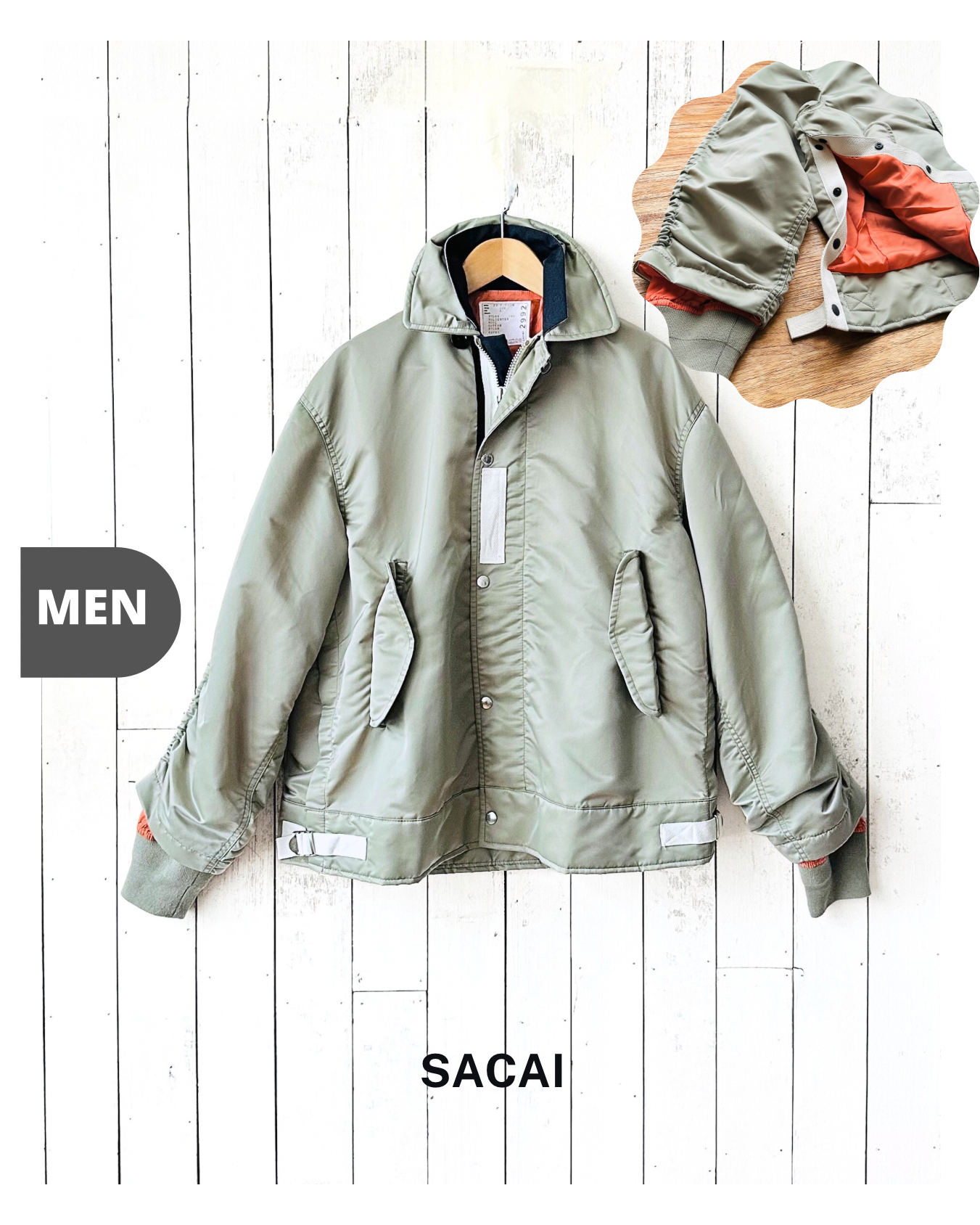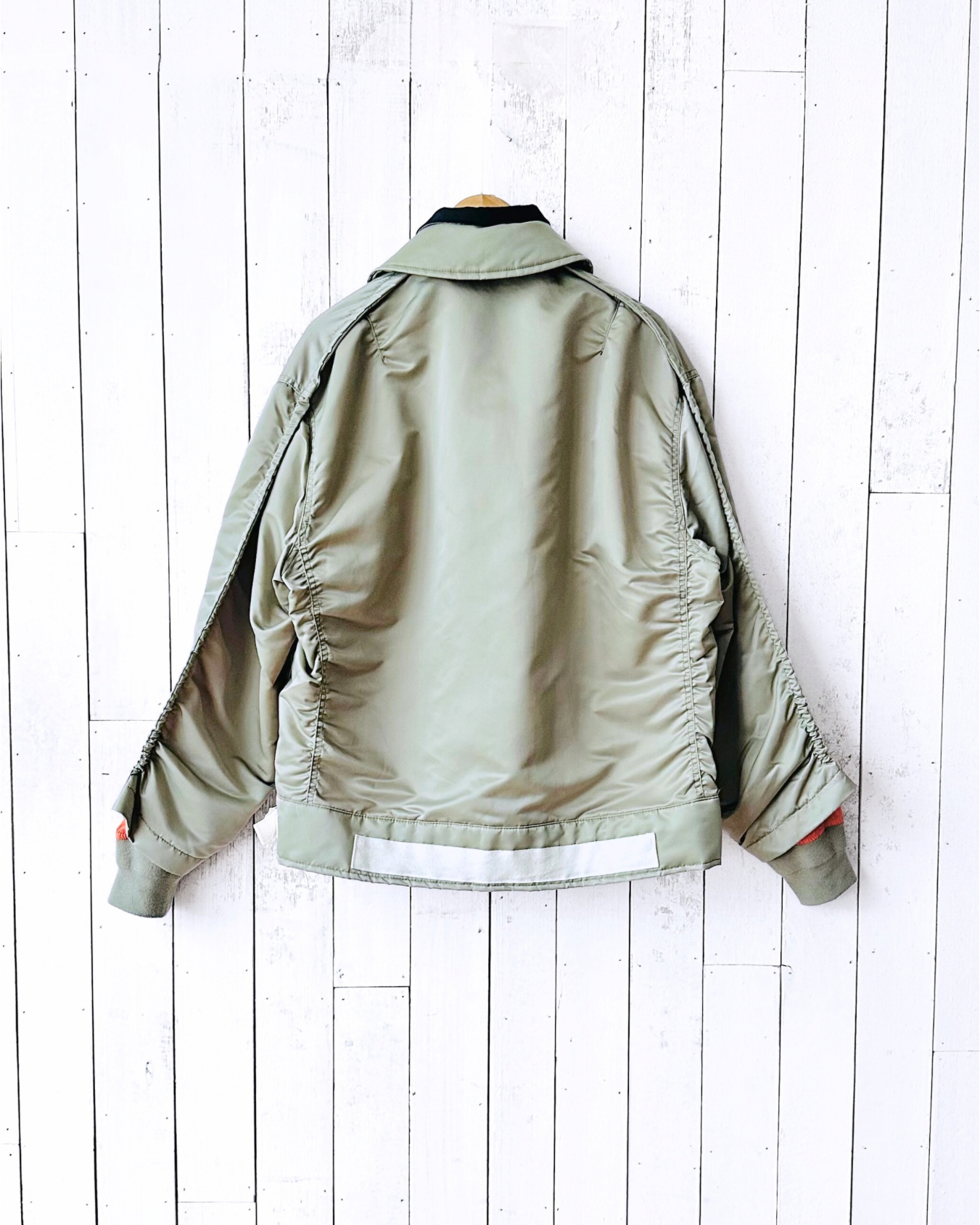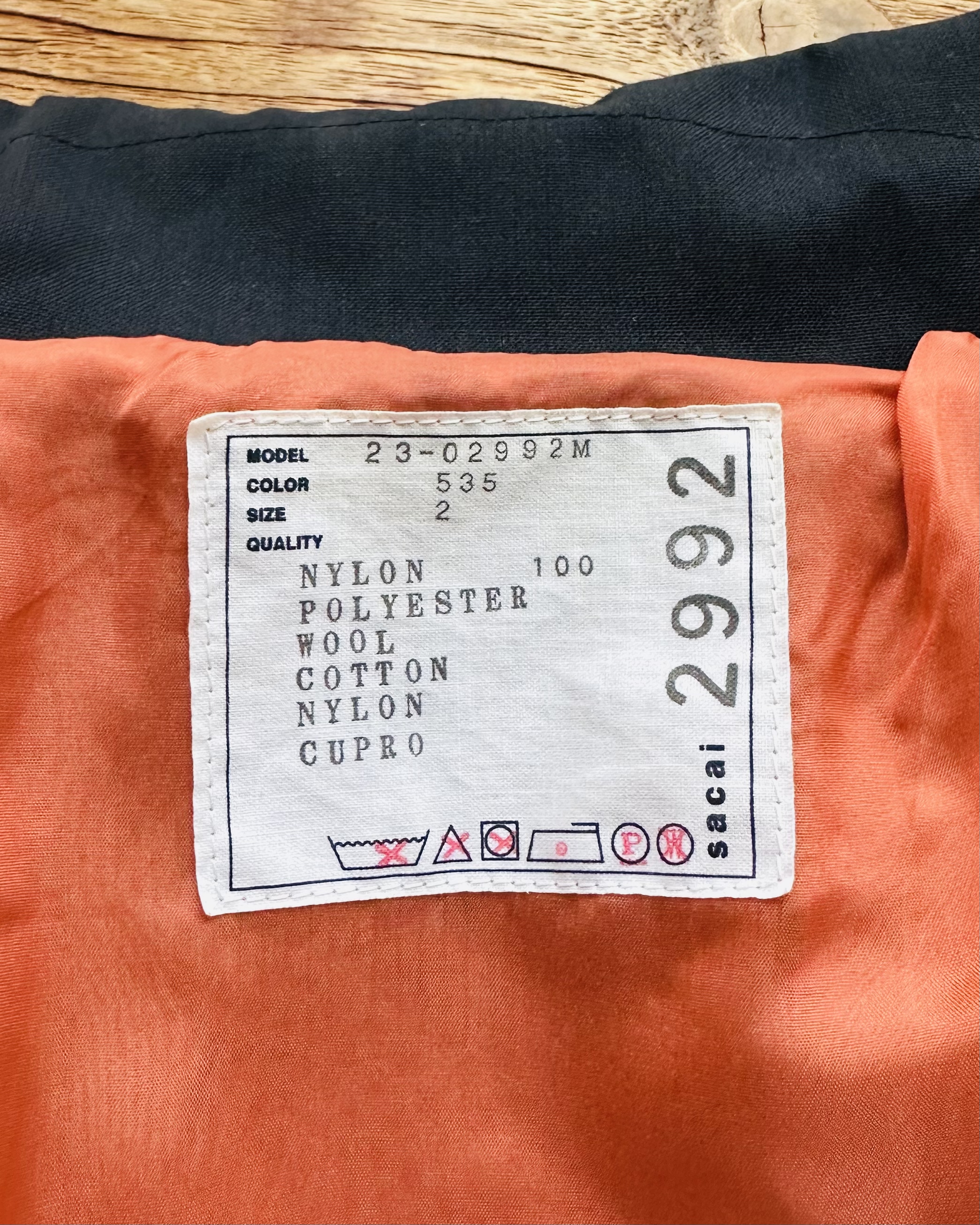 咪癲啦!2023年原價~HK$8K嘅layered軍褸變種喎!和風入饌靚到咁喎🎎!No bullshit let’s go🦍 價錢:HK$2,700 品牌:Sacai 尺碼:2 / S-M 尺寸:54cm (drop shoulder)|130cm (胸-buttoned)|65cm (袖)|69cm (長) 註:85%新|左袖背有淡黑漬|100% nylon|70% polyester + 30% wool|50% cotton + 50% polyester|100% cupro (底)|日本製 *二手產品難達全新狀態,耗損或歲月痕跡屬正常情況,較明顯/嚴重嘅問題會標明或影底,敬請見諒。 *進入付款程序後,請於10分鐘內完成付款,否則絲統會自動取消訂單。 逢星期四寄出|不設退換或退款|順豐運費到付|只寄香港不寄海外
