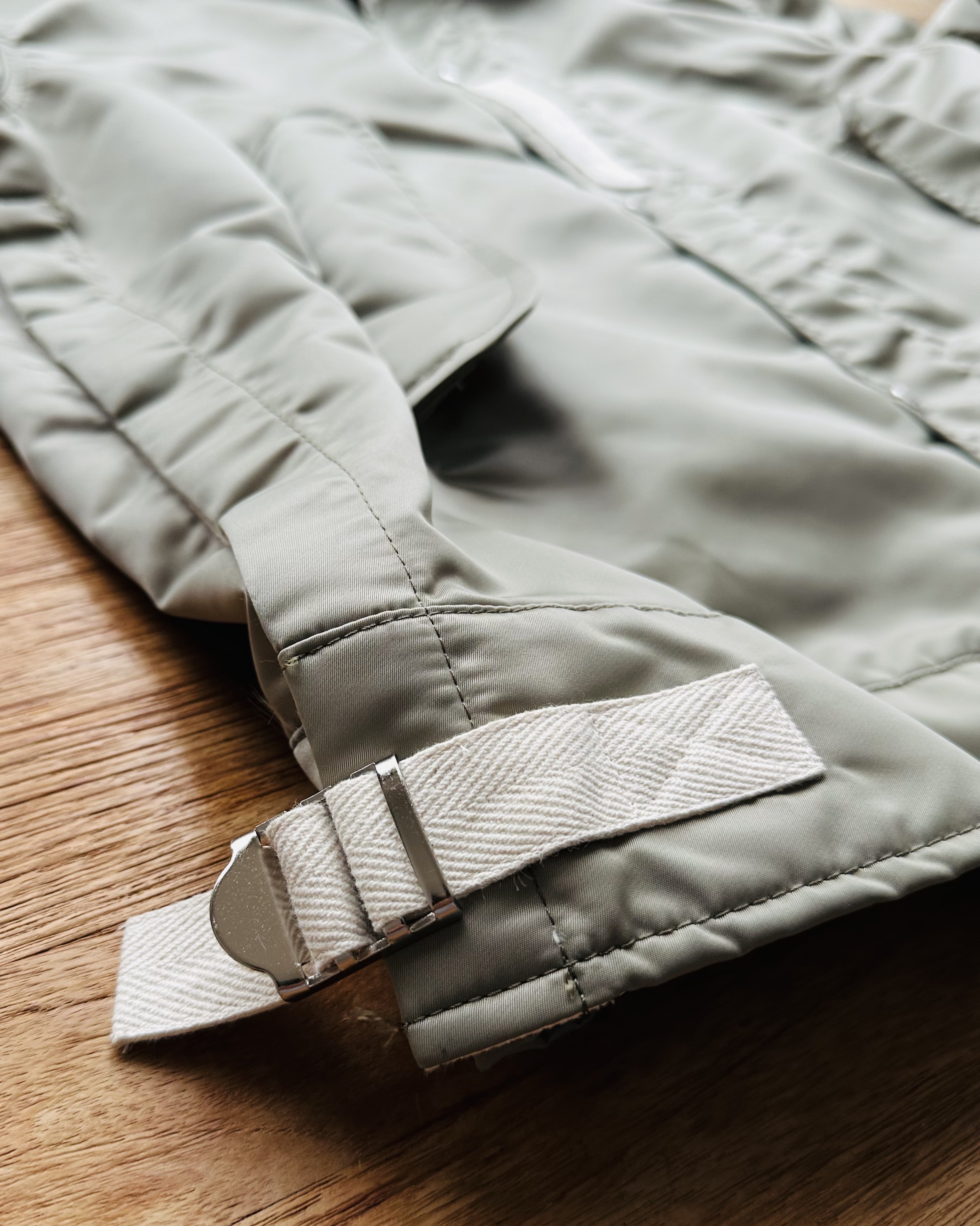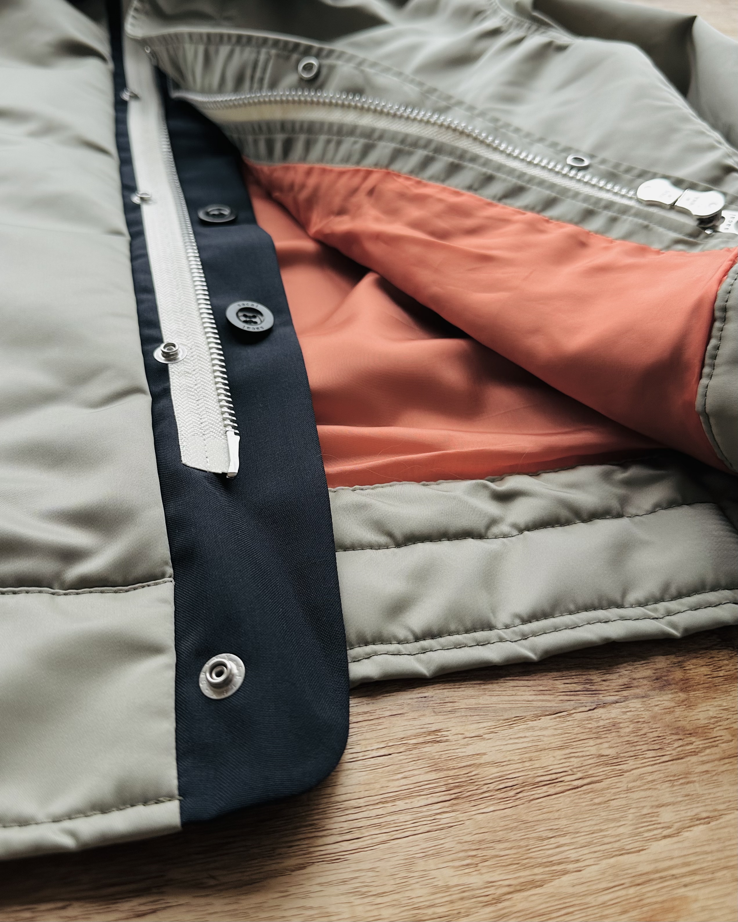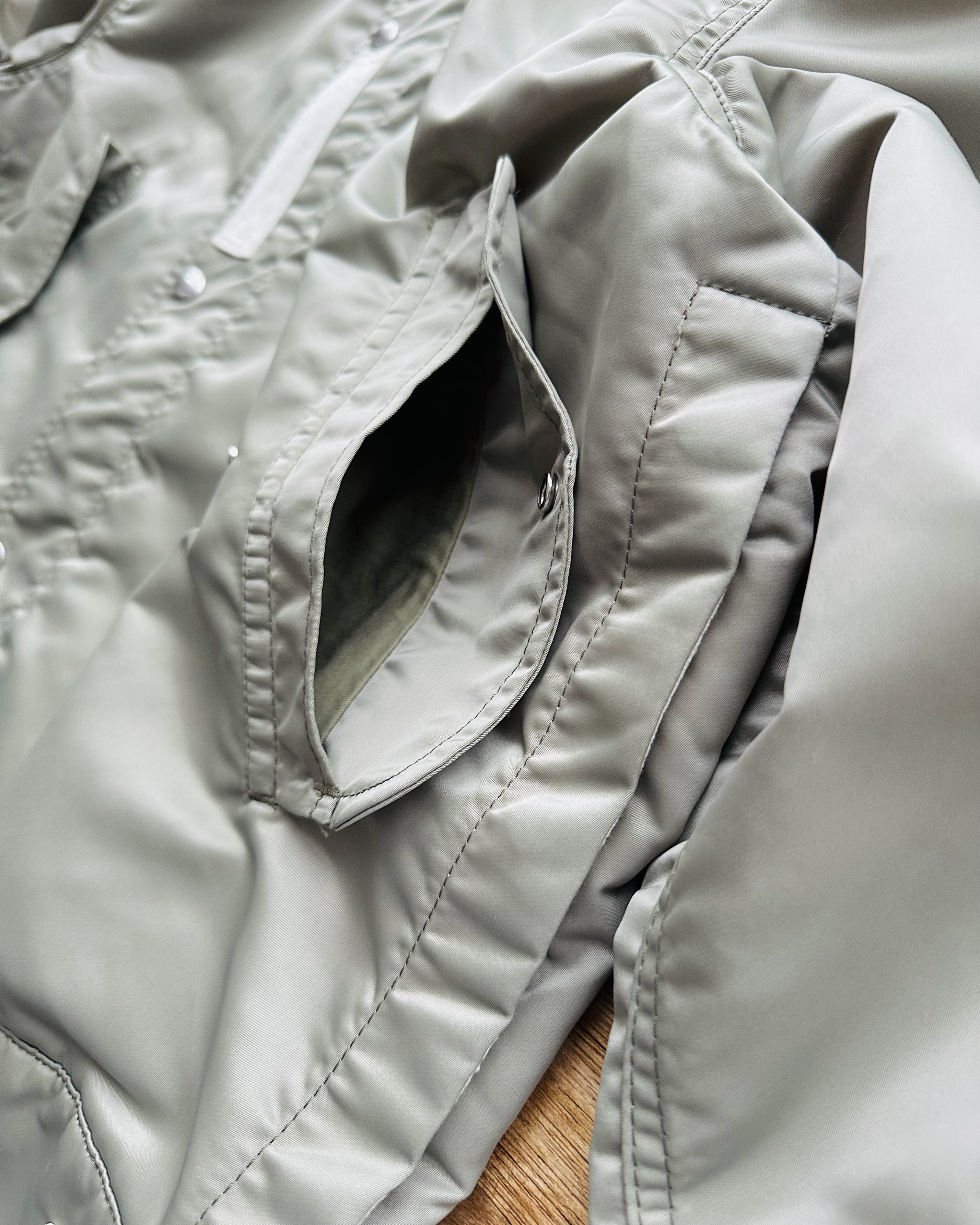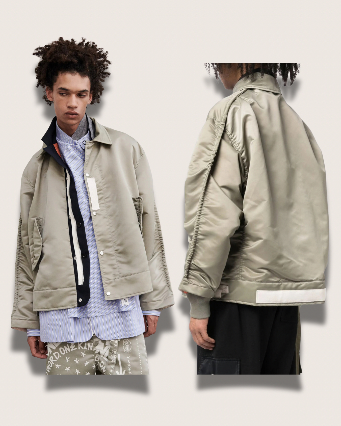 咪癲啦!2023年原價~HK$8K嘅layered軍褸變種喎!和風入饌靚到咁喎🎎!No bullshit let’s go🦍 價錢:HK$2,700 品牌:Sacai 尺碼:2 / S-M 尺寸:54cm (drop shoulder)|130cm (胸-buttoned)|65cm (袖)|69cm (長) 註:85%新|左袖背有淡黑漬|100% nylon|70% polyester + 30% wool|50% cotton + 50% polyester|100% cupro (底)|日本製 *二手產品難達全新狀態,耗損或歲月痕跡屬正常情況,較明顯/嚴重嘅問題會標明或影底,敬請見諒。 *進入付款程序後,請於10分鐘內完成付款,否則絲統會自動取消訂單。 逢星期四寄出|不設退換或退款|順豐運費到付|只寄香港不寄海外