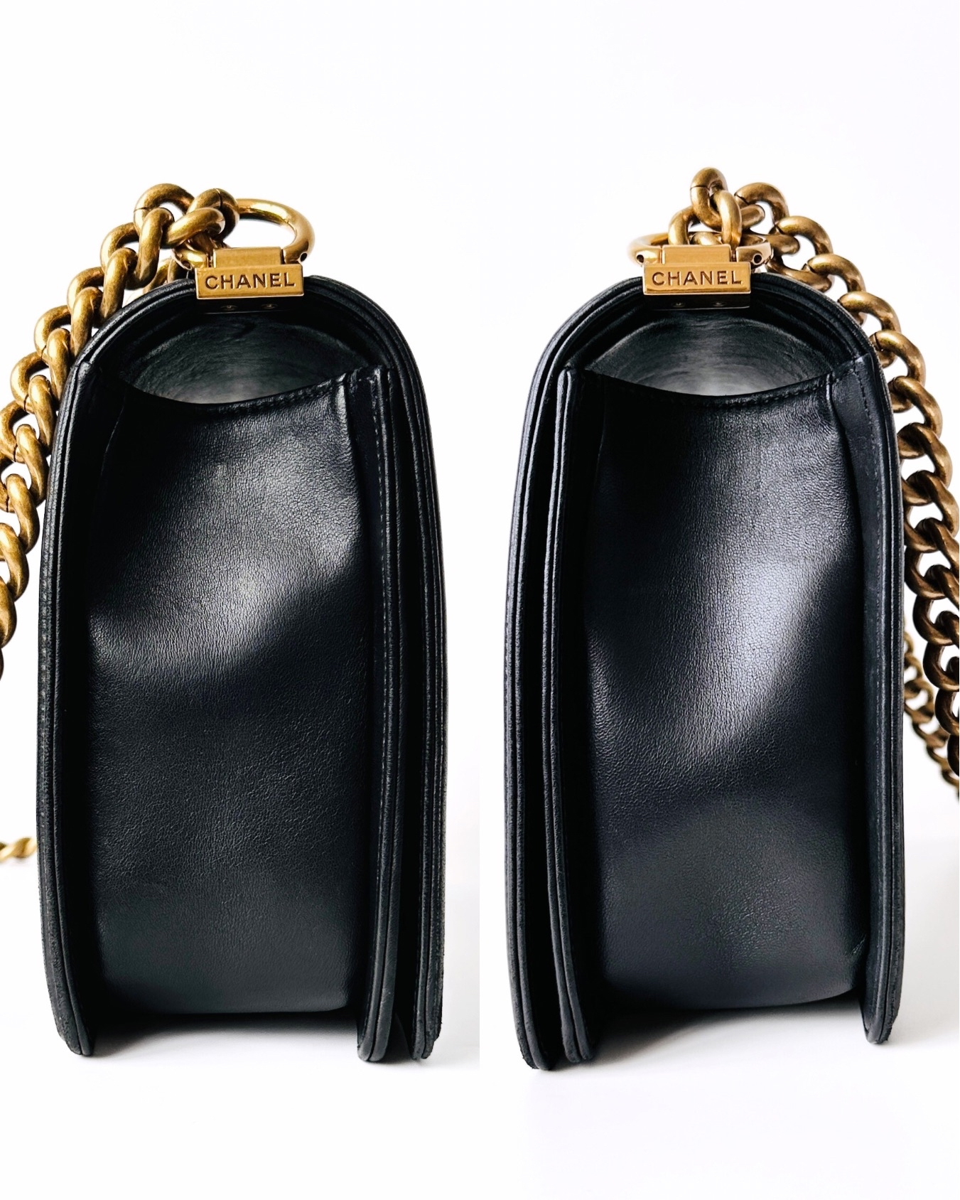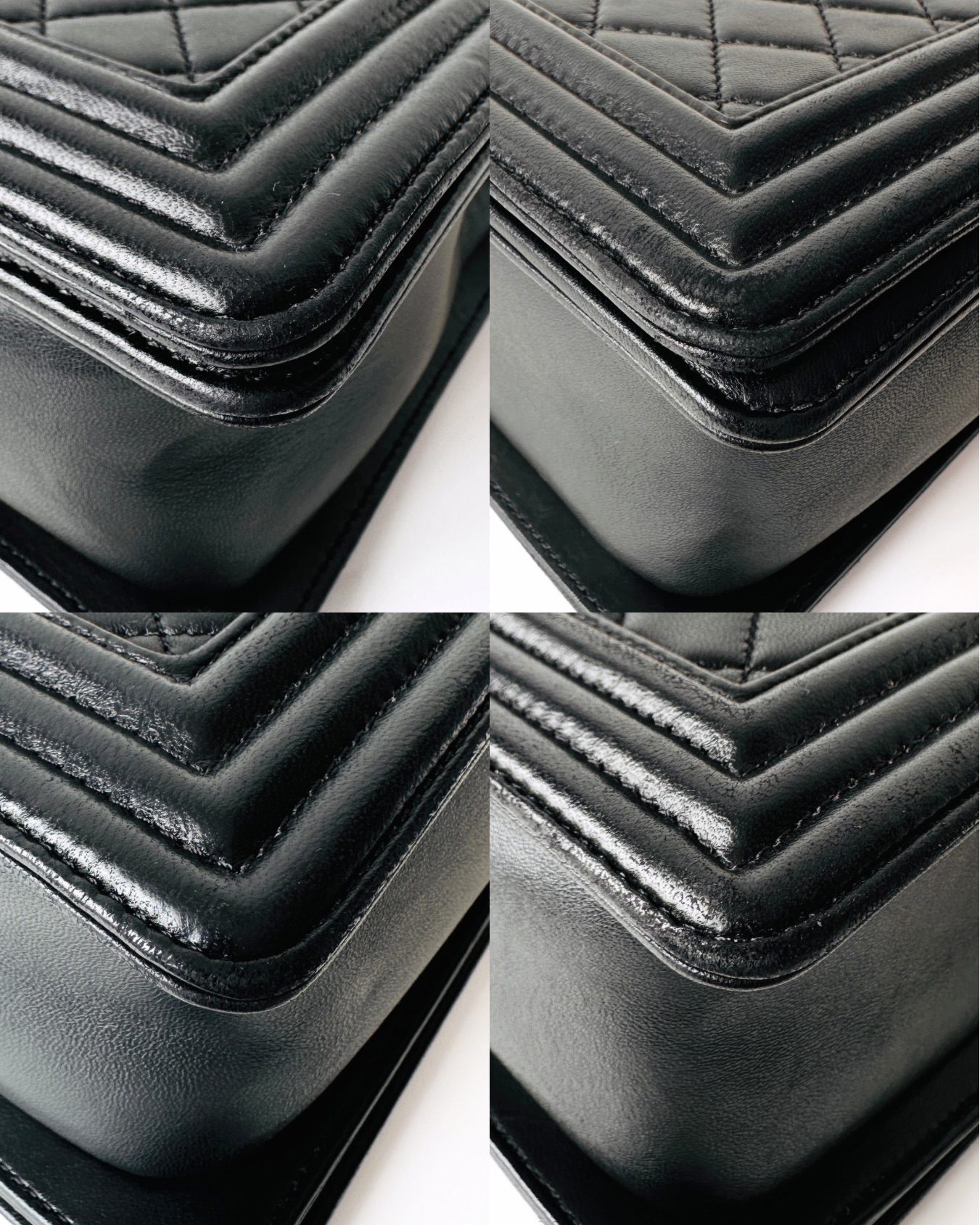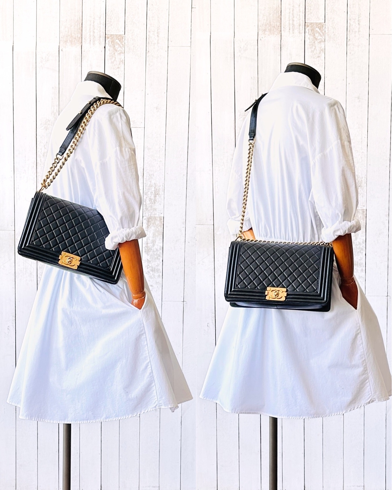 Chanel Boy 28cm,以前呢個size叫new medium,而家官方已經將佢定性為large,2015 年賣緊HK$33,200,10年後嘅今日幾乎double up升到HK$61,200 lu🐒 大Boy務必歐式effortless豪邁地用,要俾人一種「呢隻我平時落街買麵包粗用咋嘛」嘅感覺。萬一你當佢Classic Flap咁養就大鑊嘞,兩者氣場同性格太唔同,睇啲hardware就知,Boy擺明係女子漢嚟嘅,五官極度標緻嘅跆拳道黑帶咁囉🏋🏻♀️ 係呀!所以你返工掉晒啲pad同文件入去,再倒埋堆銀包電話Airpods tissue 水樽化妝袋,最緊要夾返個oversized bag charm trend,出面吊3隻Labubu 兩隻Chiikawa,即刻瀟灑有型公司是你的伸展台🦚 至於新舊狀態,咁大隻袋身冇咩明顯花痕,係flap內面有啲損傷,但都係某啲角度先明顯少少啫,唔算咩問題👍🏻 *此包包已獲LVMH全力支持嘅AI真偽鑑證系統鑑定為真貨。證書連結:cert.entrupy.com/72QGHRY 參考Vestiaire二手價:HK$35,022 參考ebay二手價:HK$31,457 *有興趣想睇大啲/清楚啲嘅相就whatsapp我哋啦! 價錢:HK$25,000 品牌:Chanel Serial No.: 21xxxx55 (2015) 尺寸:28cm (底長)|7cm (底闊)|17cm (高)|29cm (袋頂至肩帶-打雙)|50cm (袋頂至肩帶-單chain) 註:good condition|正面上方、左右兩側唔起眼花痕 (全部某角度先見到)|底部四角皮革輕微耗損|內flap壓印及花痕 (某角度先見到)|有塵袋及盒|有單|意大利製 *二手產品難達全新狀態,耗損或歲月痕跡屬正常情況,較明顯/嚴重嘅問題會標明或影底,敬請見諒。 *進入付款程序後,請於10分鐘內完成付款,否則絲統會自動取消訂單。 逢星期四寄出|不設退換或退款|順豐運費到付|只寄香港不寄海外