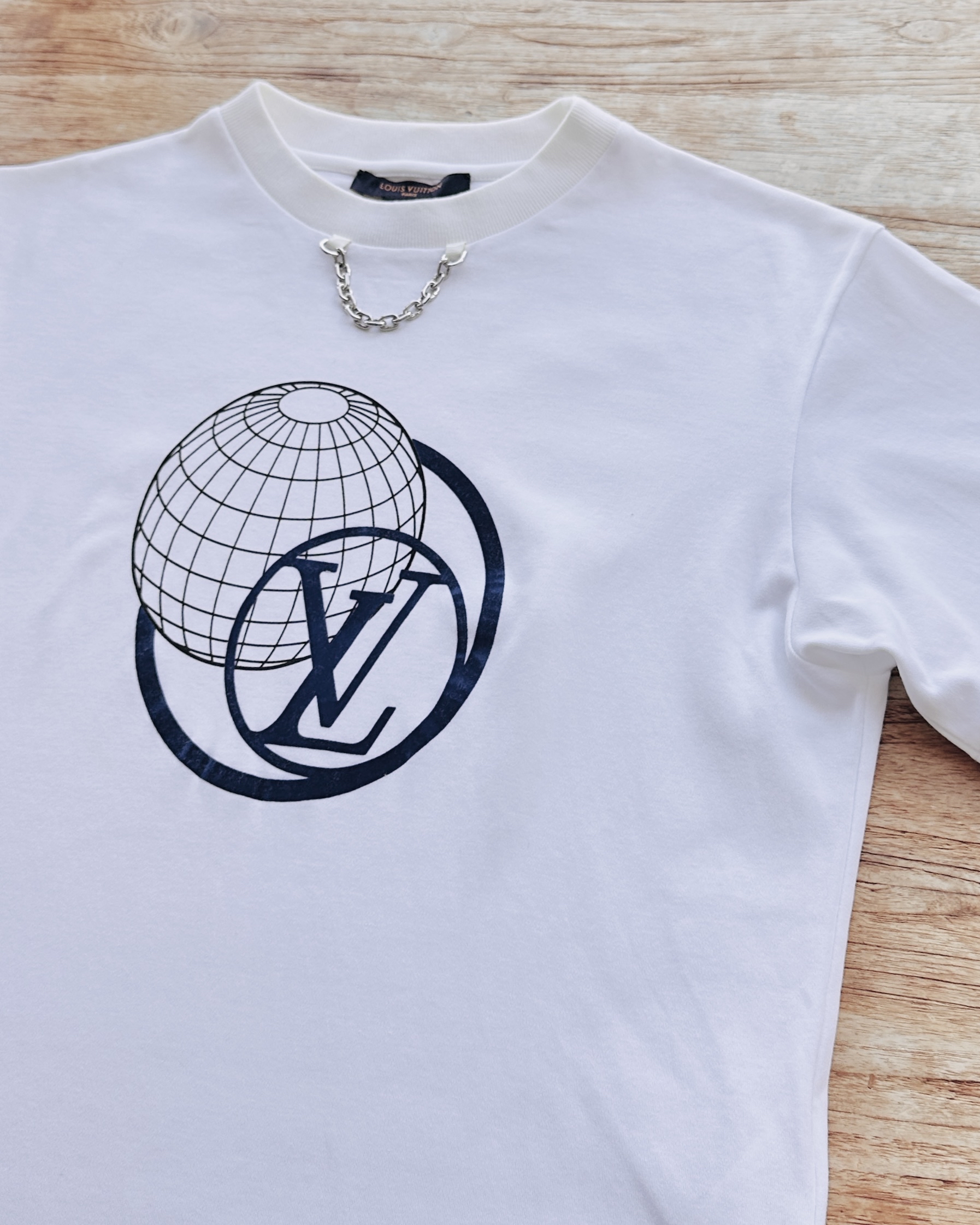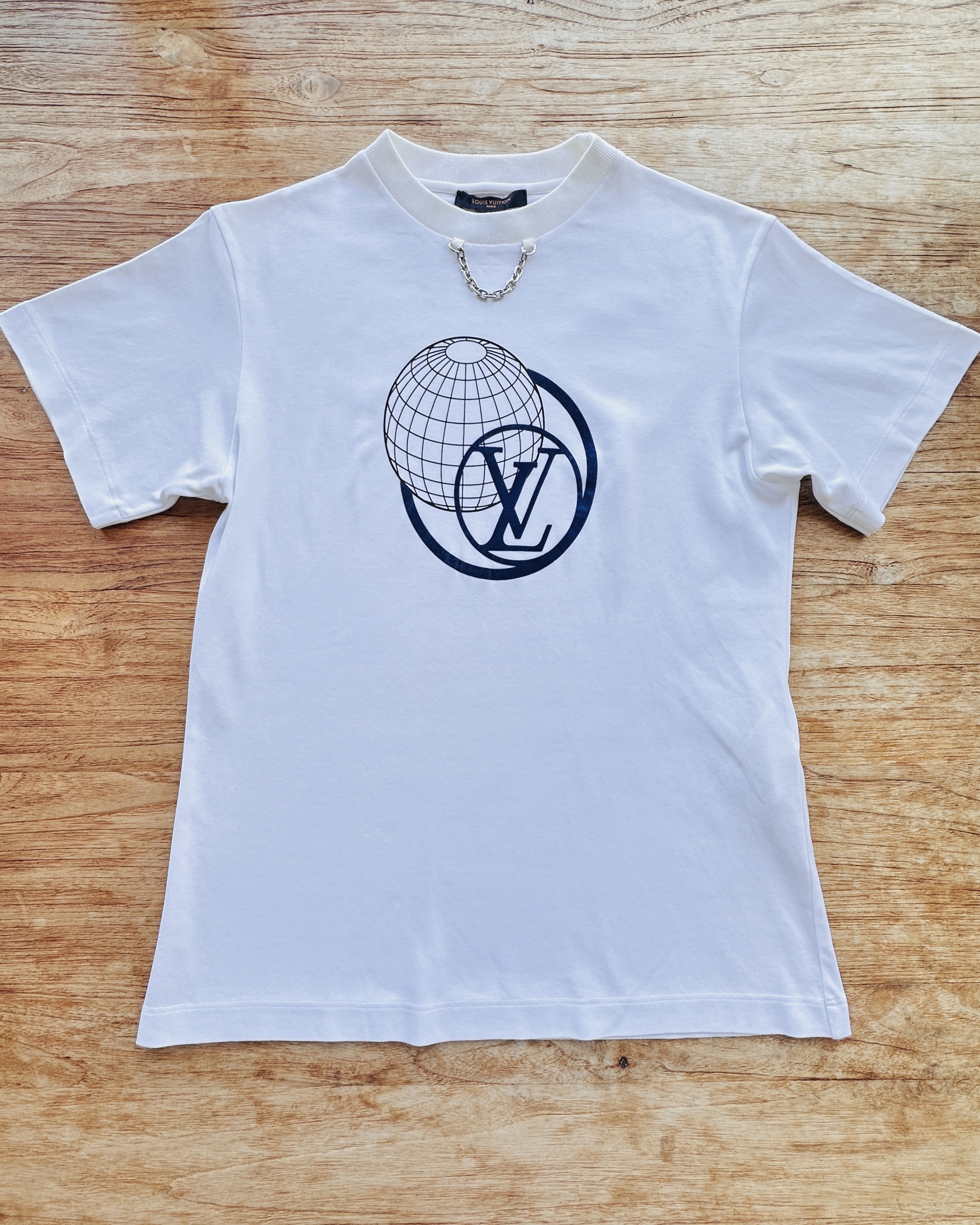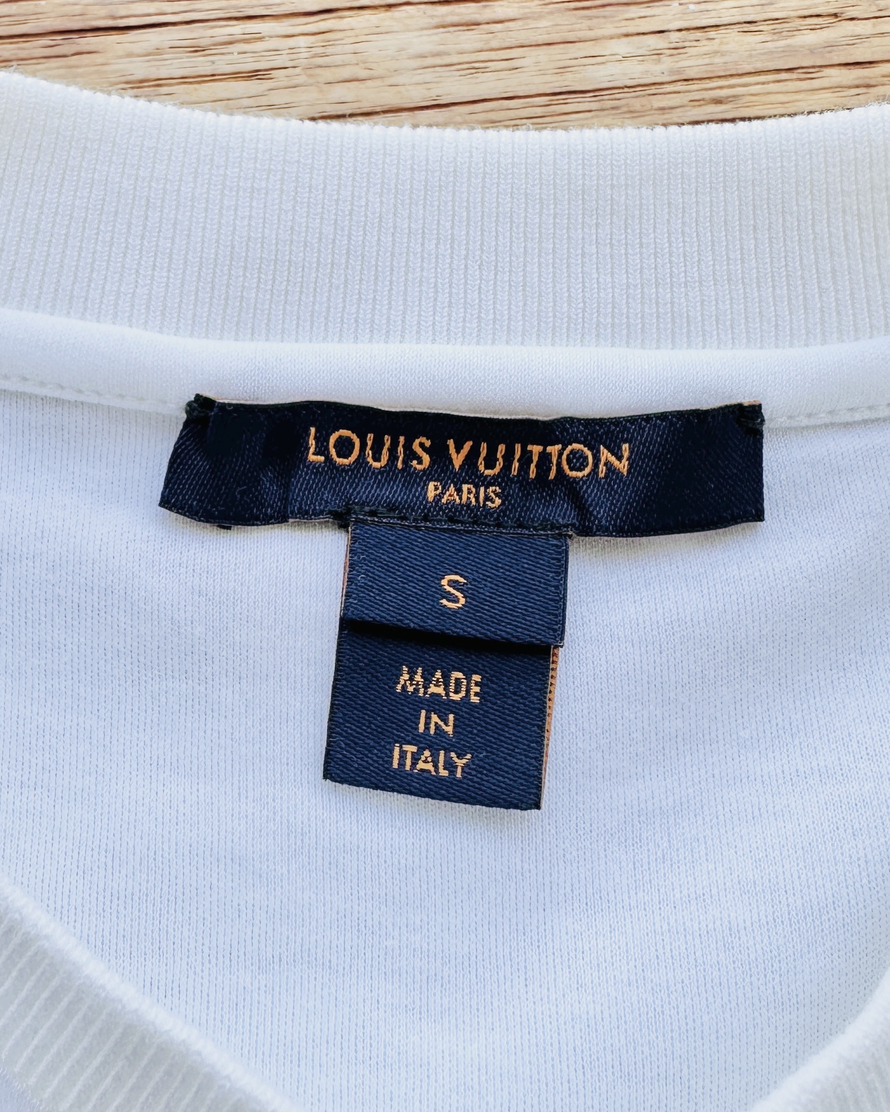 衫領嗰條鏈仔已經成為LV嘅嘜頭⛓️,近幾年經常出現喺品牌各種上衫,呢件tee係2022年嘅,原價~HK$7K🧞♀️ 價錢:HK$1,800 品牌:Louis Vuitton 尺碼:S / 160/76A 尺寸:42cm (肩)|90cm (胸)|84cm (腰)|61cm (長) 註:88%新|100% cotton|74% cotton + 24% polyamide + 2% elastane|意大利製 *二手產品難達全新狀態,耗損或歲月痕跡屬正常情況,較明顯/嚴重嘅問題會標明或影底,敬請見諒。 *進入付款程序後,請於10分鐘內完成付款,否則絲統會自動取消訂單。 逢星期四寄出|不設退換或退款|順豐運費到付|只寄香港不寄海外