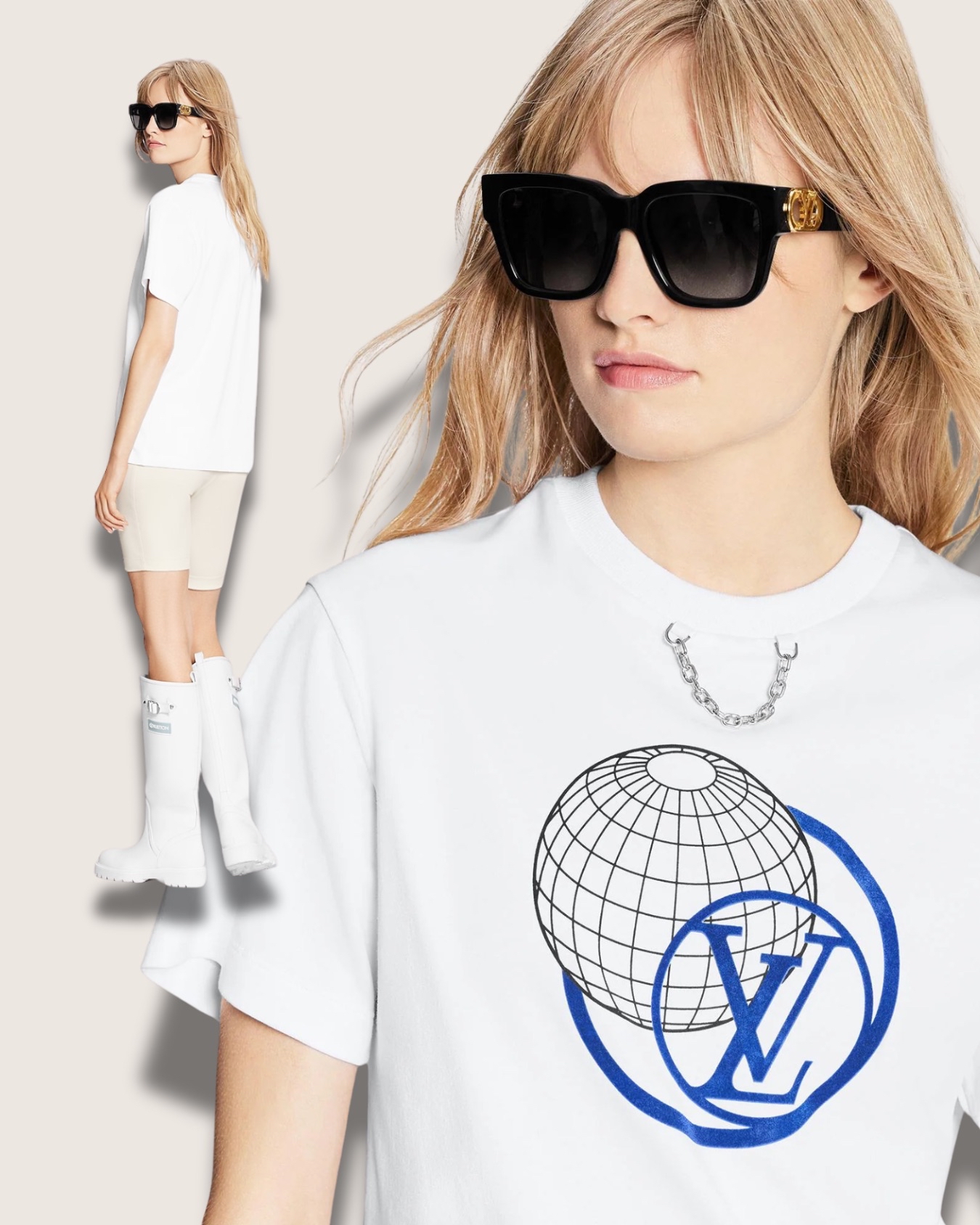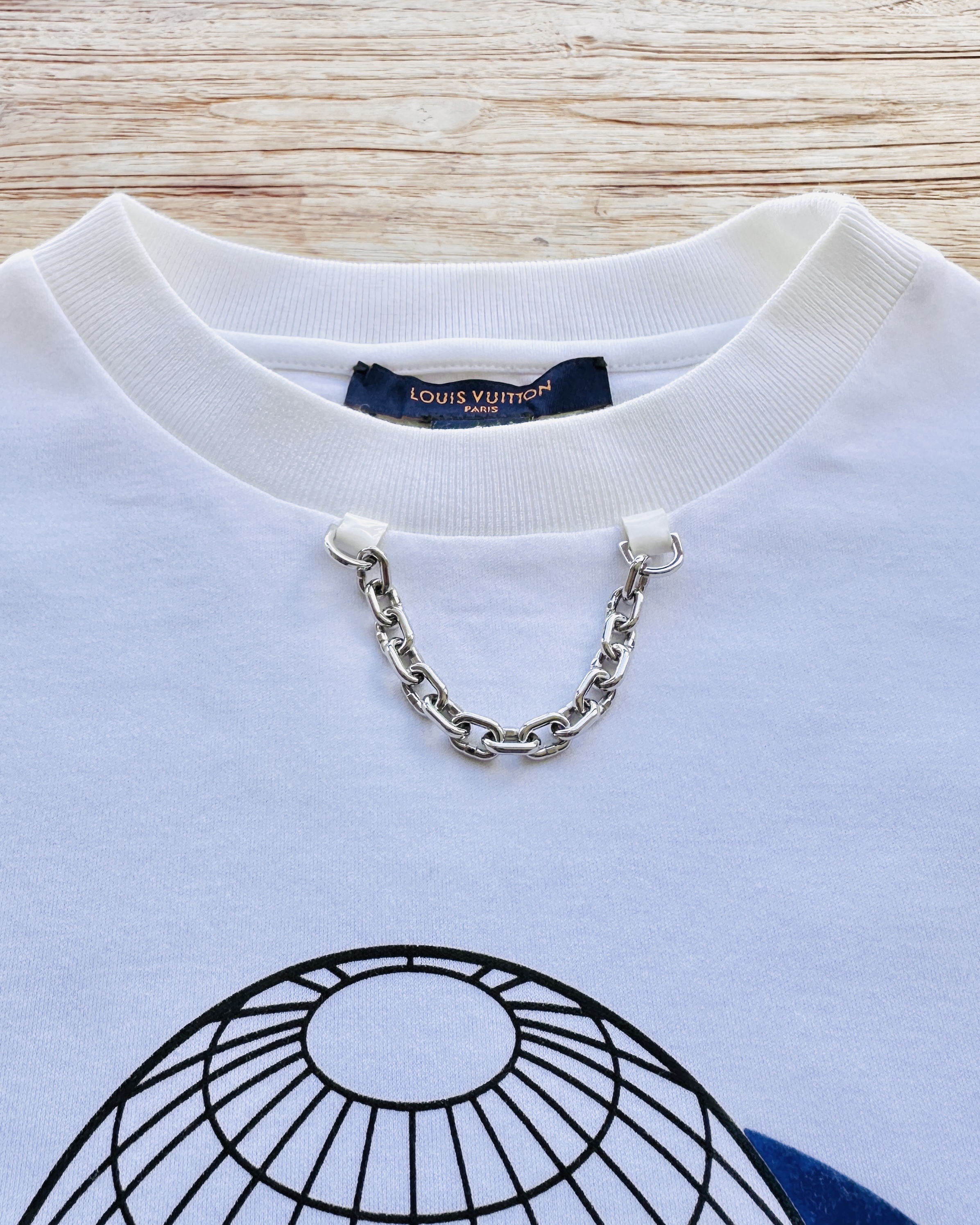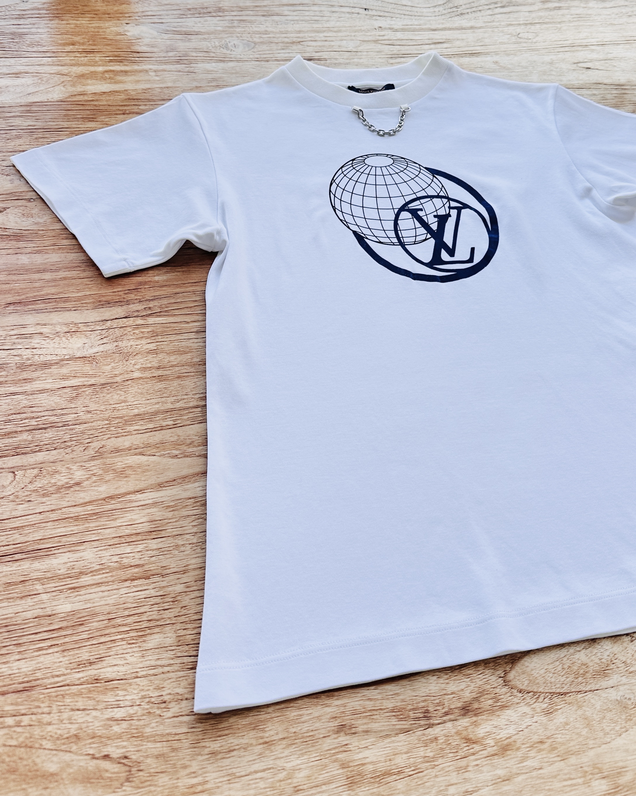 衫領嗰條鏈仔已經成為LV嘅嘜頭⛓️,近幾年經常出現喺品牌各種上衫,呢件tee係2022年嘅,原價~HK$7K🧞♀️ 價錢:HK$1,800 品牌:Louis Vuitton 尺碼:S / 160/76A 尺寸:42cm (肩)|90cm (胸)|84cm (腰)|61cm (長) 註:88%新|100% cotton|74% cotton + 24% polyamide + 2% elastane|意大利製 *二手產品難達全新狀態,耗損或歲月痕跡屬正常情況,較明顯/嚴重嘅問題會標明或影底,敬請見諒。 *進入付款程序後,請於10分鐘內完成付款,否則絲統會自動取消訂單。 逢星期四寄出|不設退換或退款|順豐運費到付|只寄香港不寄海外