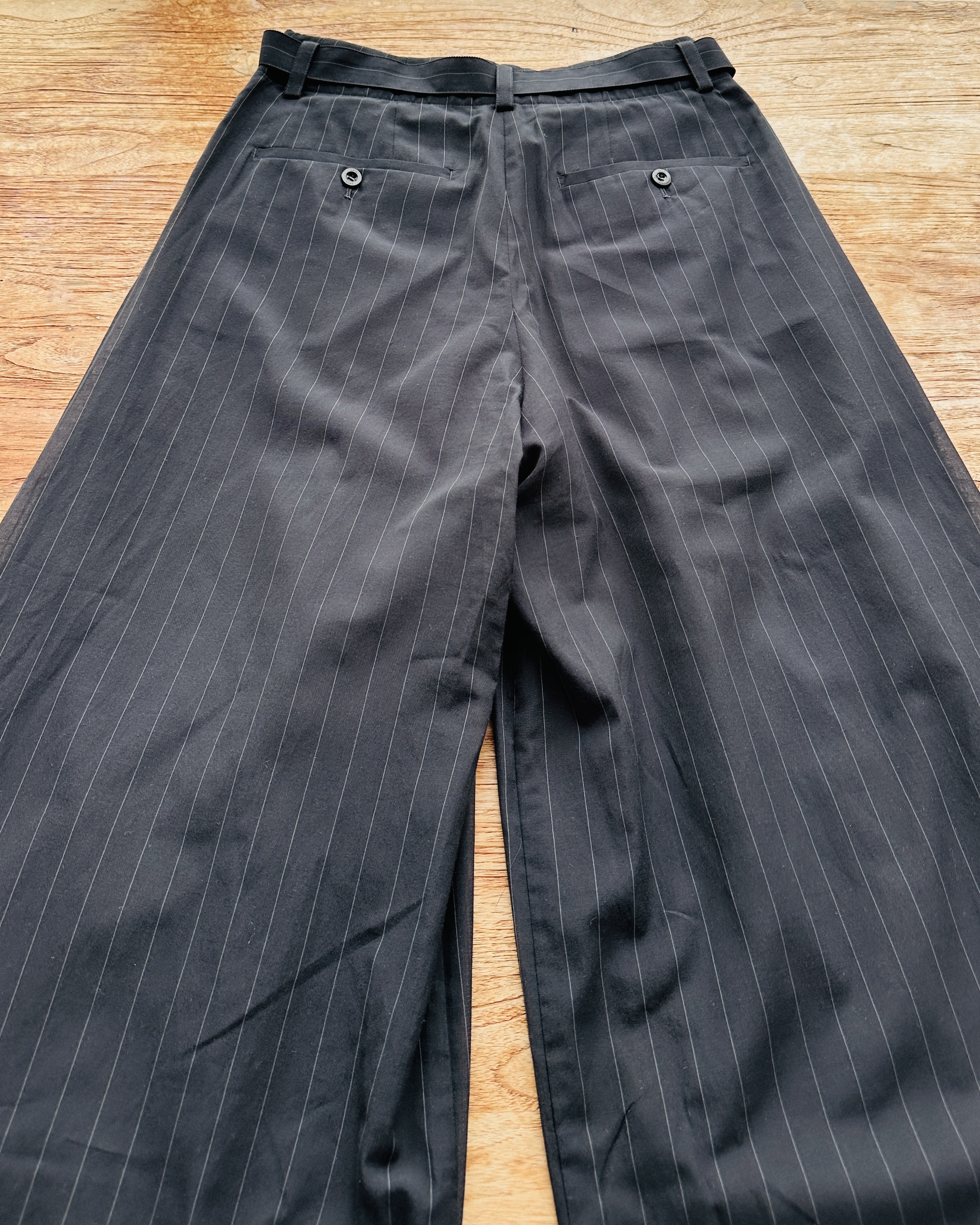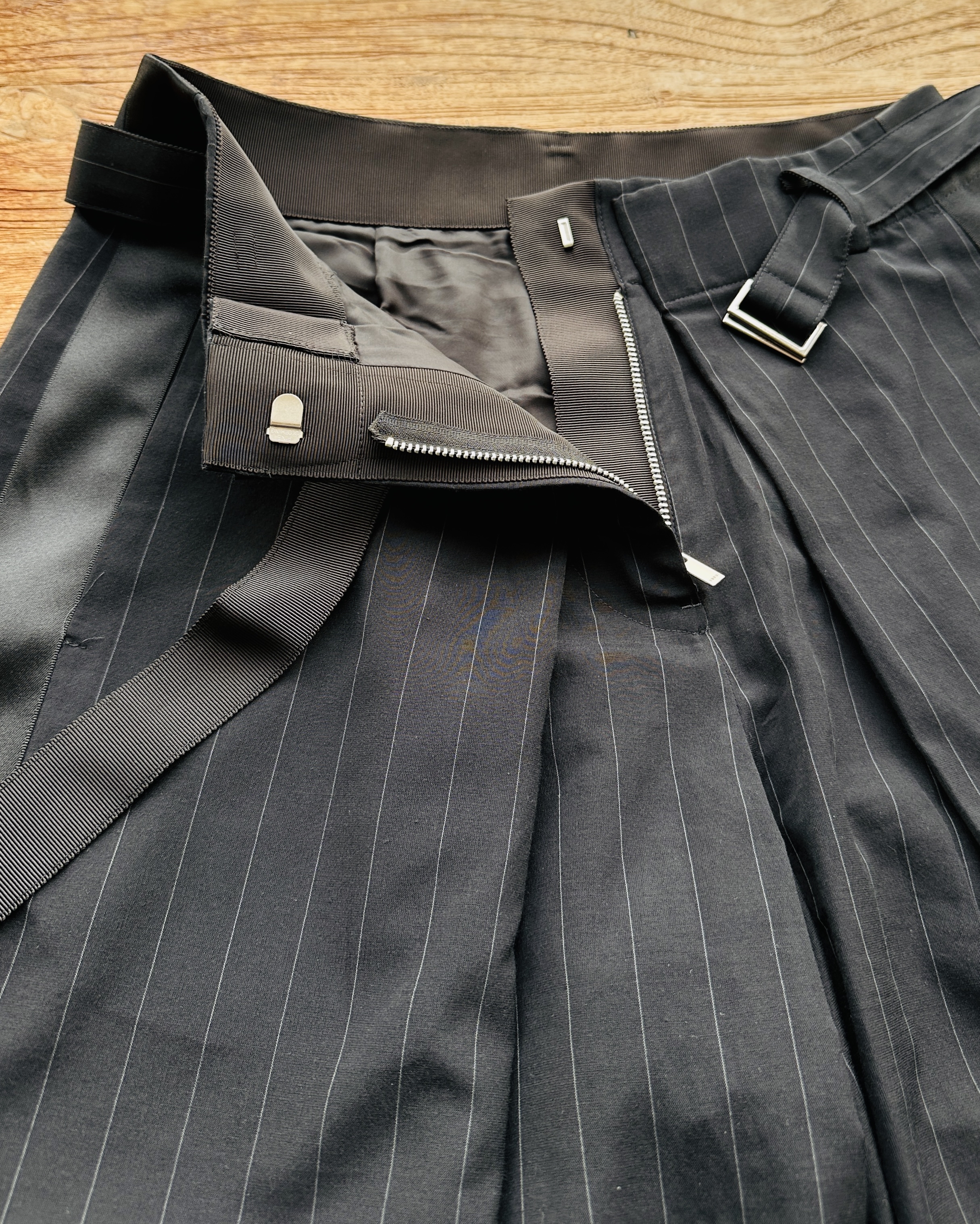 喂呀😍!See through西裝cut闊褲,2023 resort出品,淨係褲頭個pleat都型死人啦🦥 價錢:HK$1,850 品牌:Sacai 尺碼:2 / S-M 尺寸:74cm (腰-腰帶可索緊)|100cm+ (臀)|105cm (長)|36cm (長-打底褲) 註:90%新|60% cotton + 40% polyester|100% polyester|100% cupro (底)|日本製 *二手產品難達全新狀態,耗損或歲月痕跡屬正常情況,較明顯/嚴重嘅問題會標明或影底,敬請見諒。 *進入付款程序後,請於10分鐘內完成付款,否則絲統會自動取消訂單。 逢星期四寄出|不設退換或退款|順豐運費到付|只寄香港不寄海外