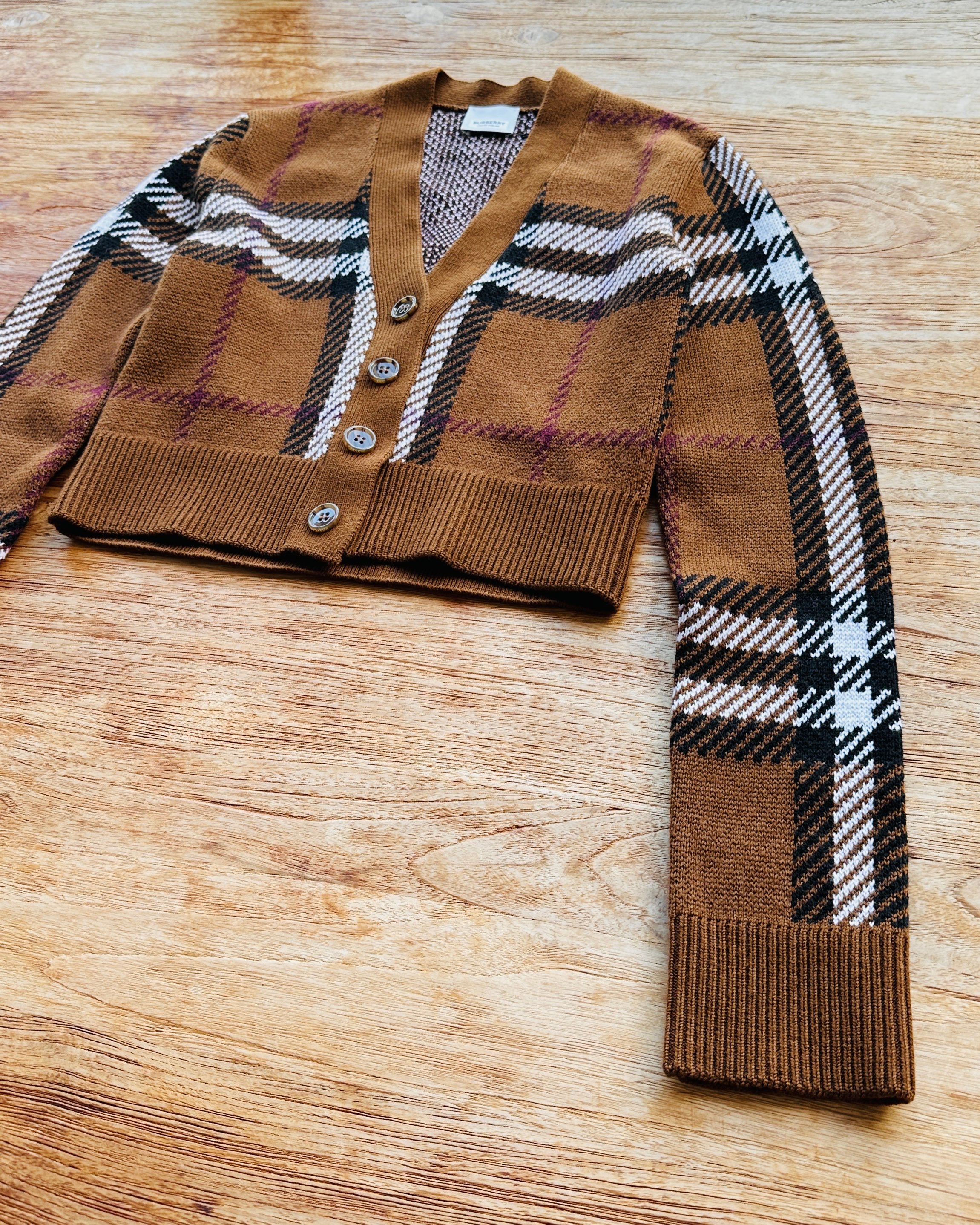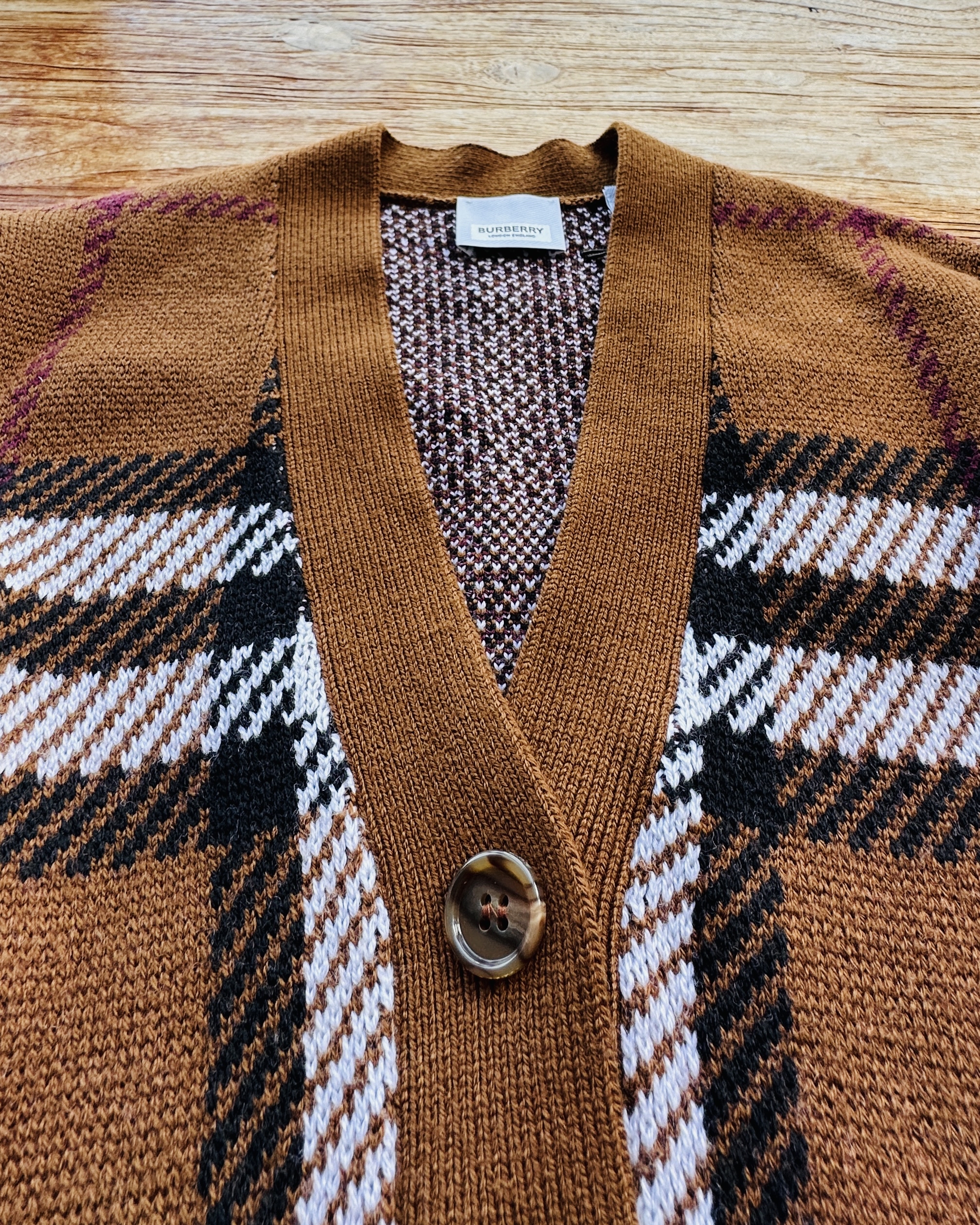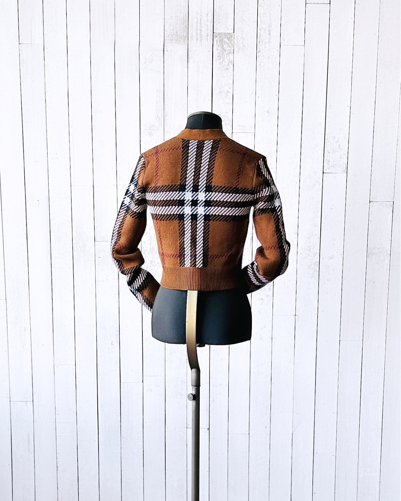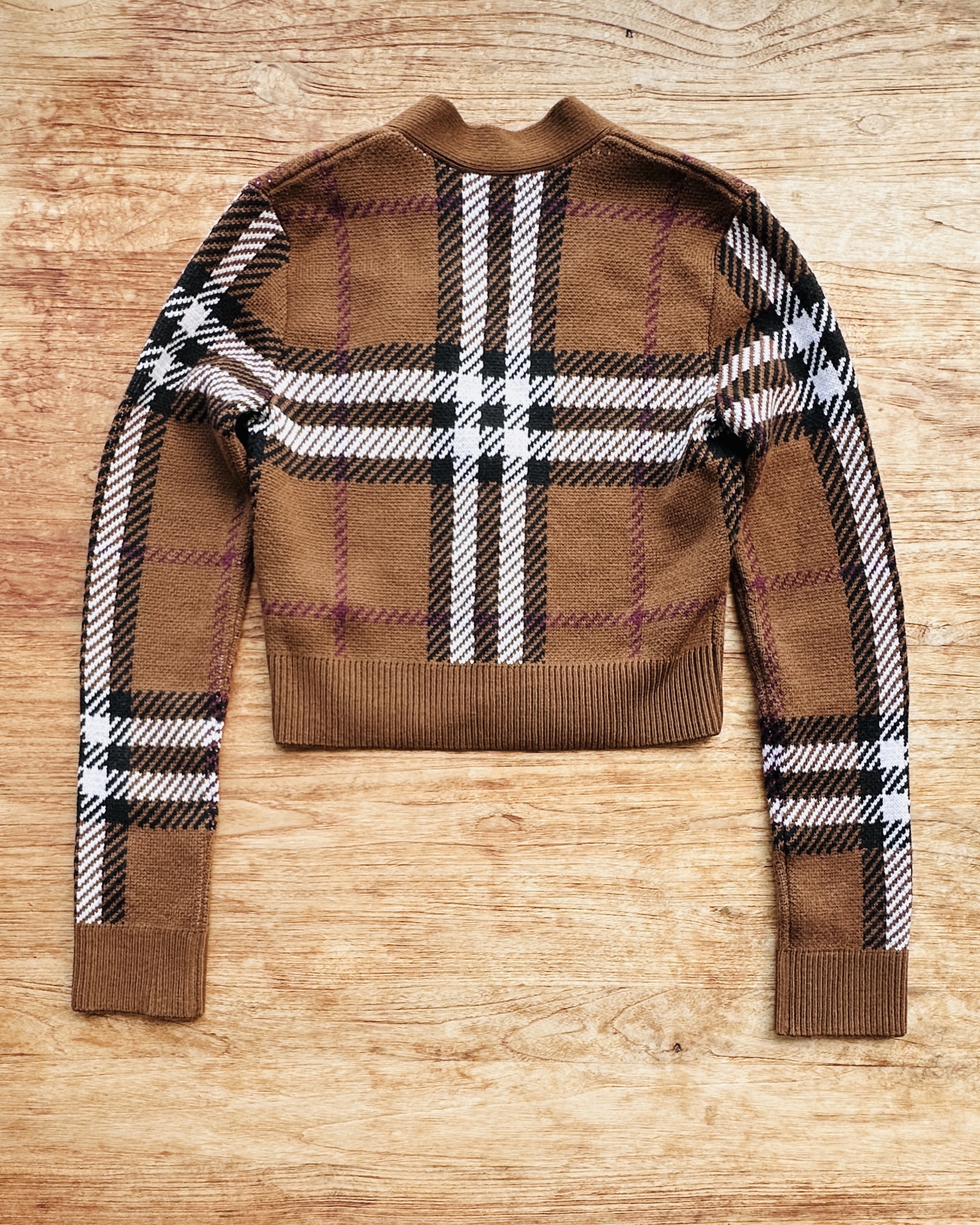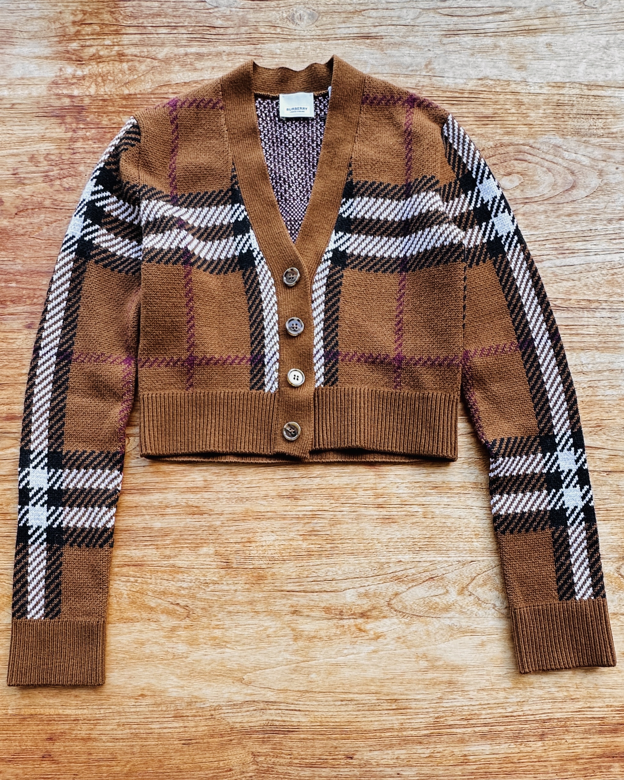 靚到癲😍!2022春夏原價HK$10,500。修身小cropped剪裁、厚實細滑羊毛料、栗子啡 x 紫色大house check,呢個combo真係冇得輸🤌🏼 價錢:HK$2,600 品牌:Burberry 尺碼:S / 175/88A 尺寸:38cm (肩)|84cm (胸-buttoned)|76cm (腰-buttoned)|61cm (袖) |44cm (長) 註:全新未剪牌|100% wool|意大利製 *二手產品難達全新狀態,耗損或歲月痕跡屬正常情況,較明顯/嚴重嘅問題會標明或影底,敬請見諒。 *進入付款程序後,請於10分鐘內完成付款,否則絲統會自動取消訂單。 逢星期四寄出|不設退換或退款|順豐運費到付|只寄香港不寄海外