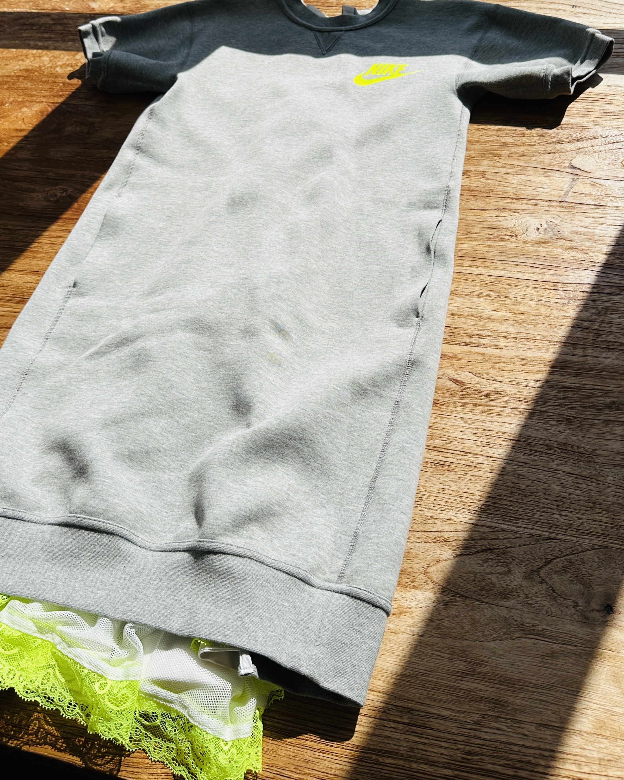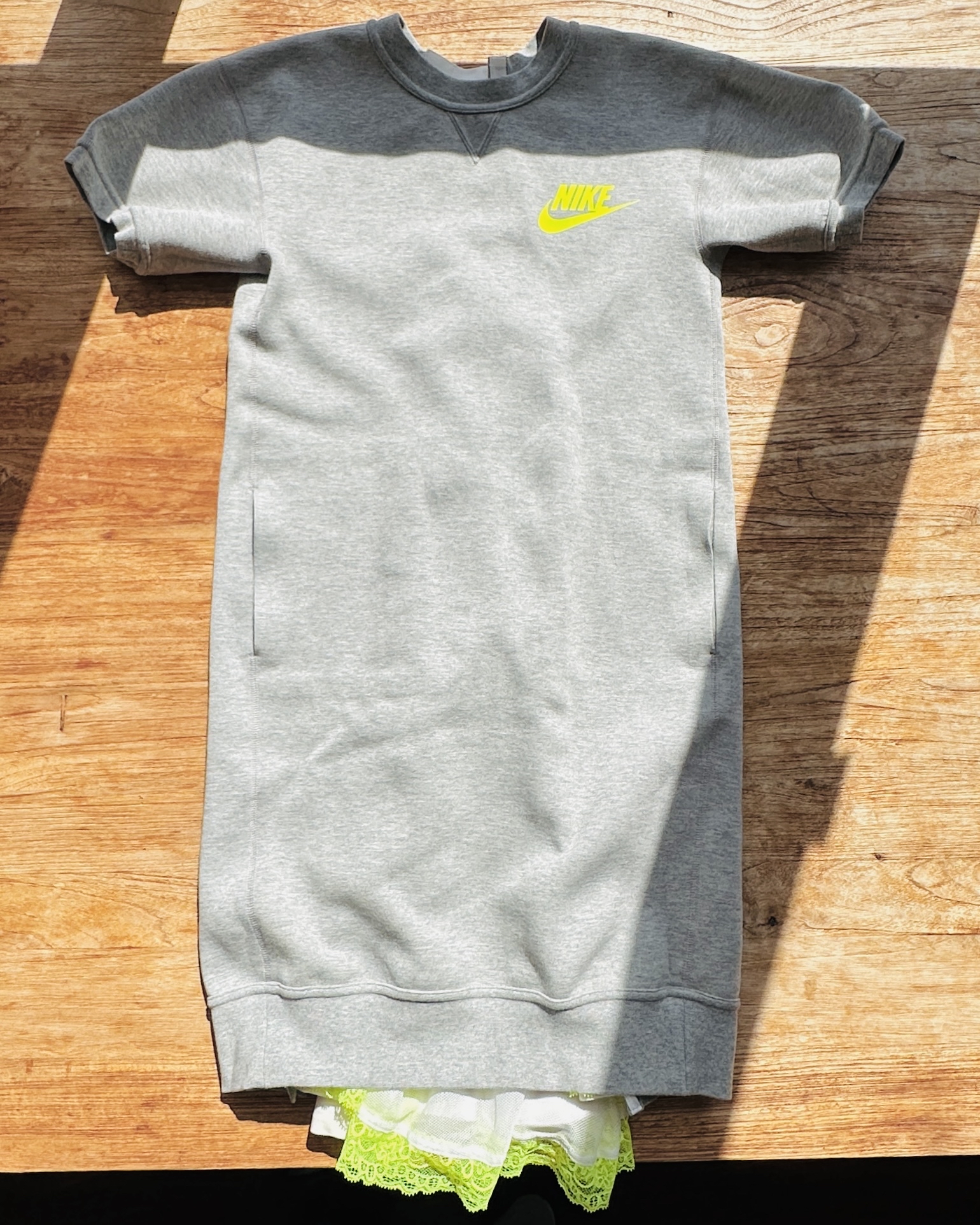 佢又出現啦😍!今次係Sacai同Nike 2015元年第一次相遇嘅作品。fleece衛衣裙格局,背脊劏開咁樣加lace,10年後睇返依然不得了🦋