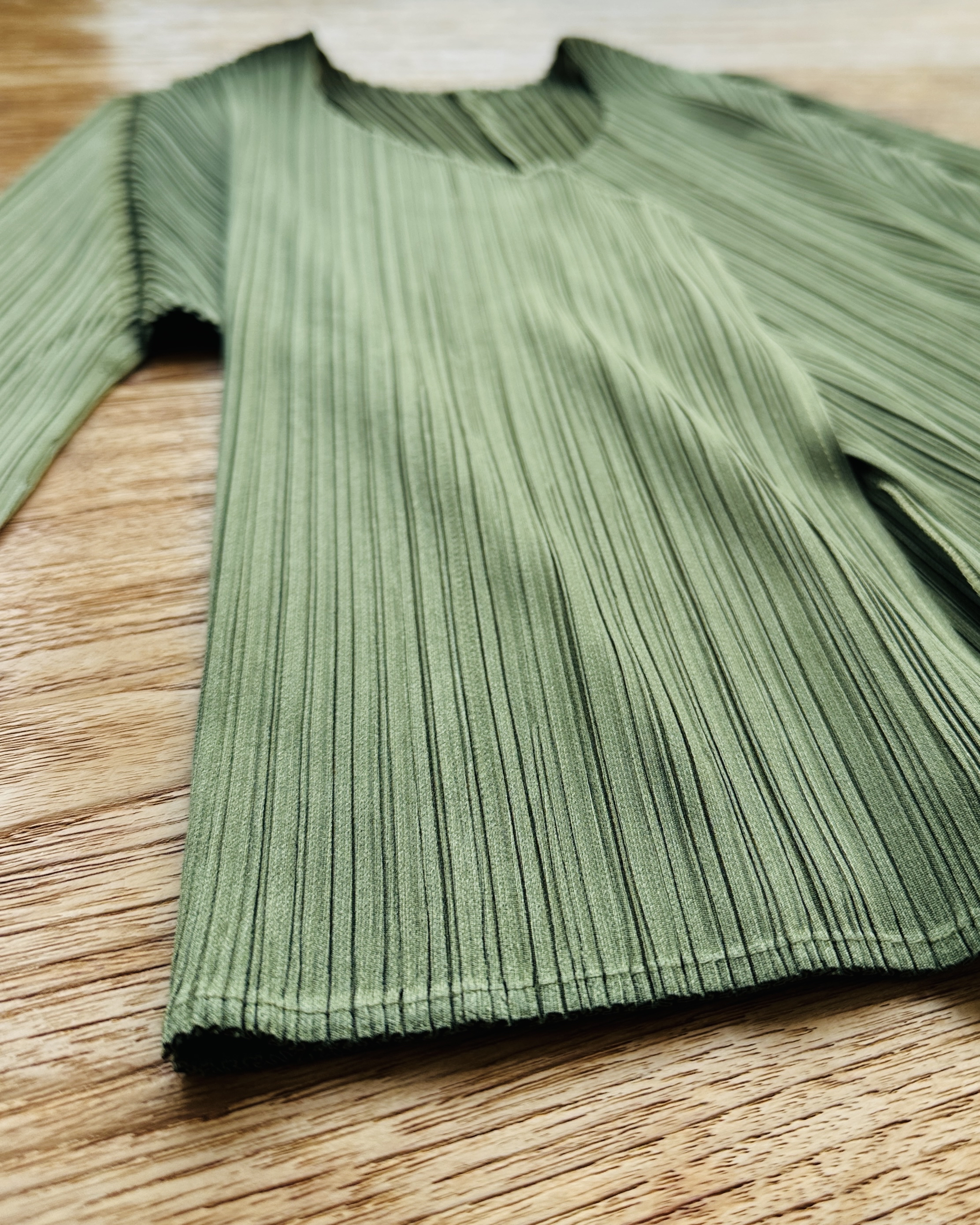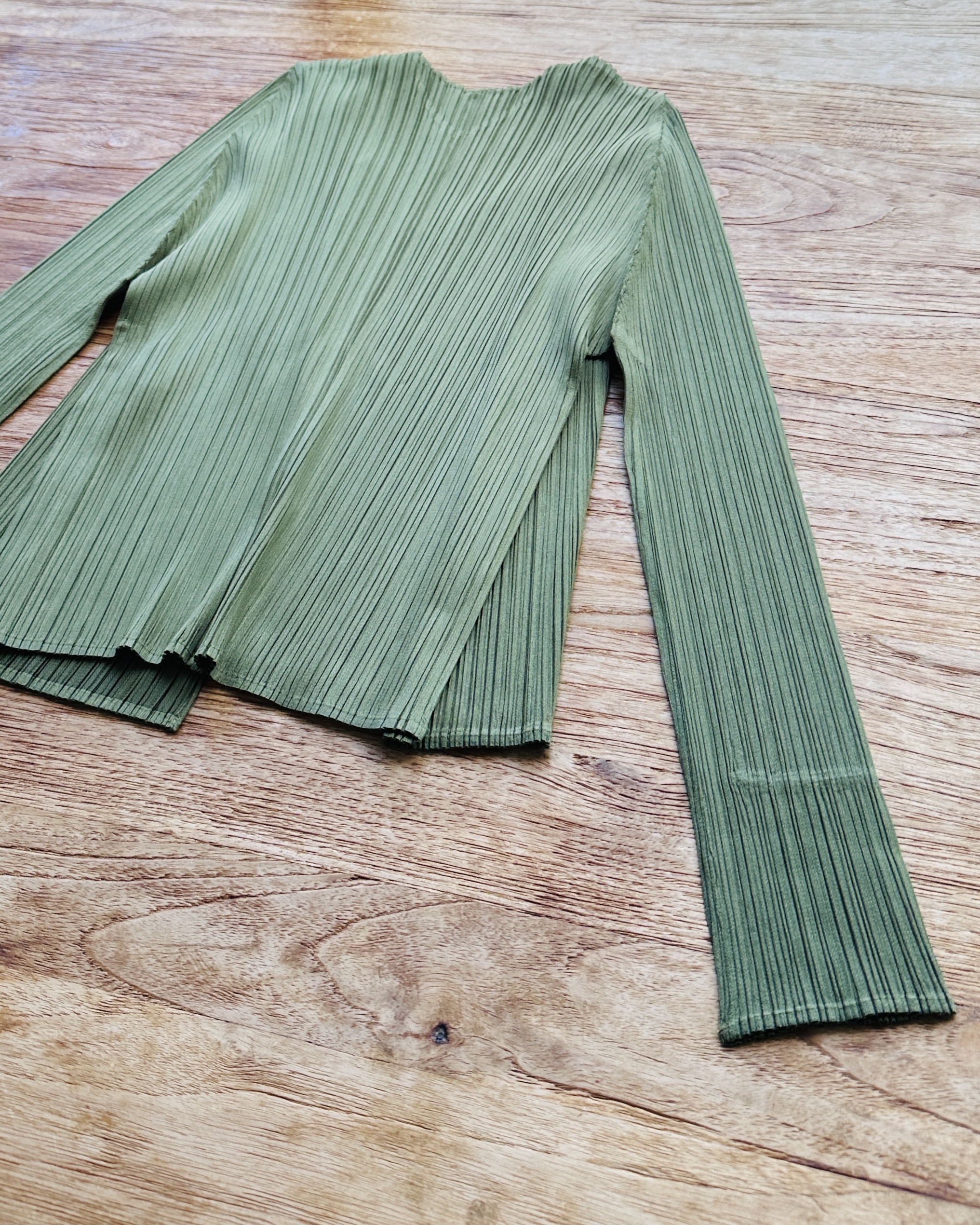 Pleats Please實在唔需要再介紹嘞,呢件氣質深綠cardigan在世界中心呼喚你,而且仲有埋下身襯成一套,快啲帶佢出去威啦🧚♀️ 價錢:HK$1,750 品牌:Pleats Please 尺碼:3 / M 尺寸:27-41cm (肩)|~88cm (胸)|57cm (袖)| 51cm (長) 註:88%新|100% polyester|日本製 *二手產品難達全新狀態,耗損或歲月痕跡屬正常情況,較明顯/嚴重嘅問題會標明或影底,敬請見諒。 *進入付款程序後,請於10分鐘內完成付款,否則絲統會自動取消訂單。 逢星期四寄出|不設退換或退款|順豐運費到付|只寄香港不寄海外