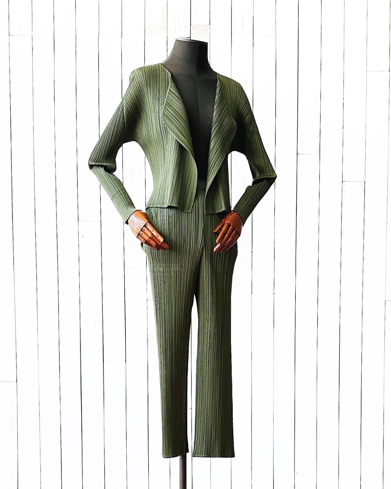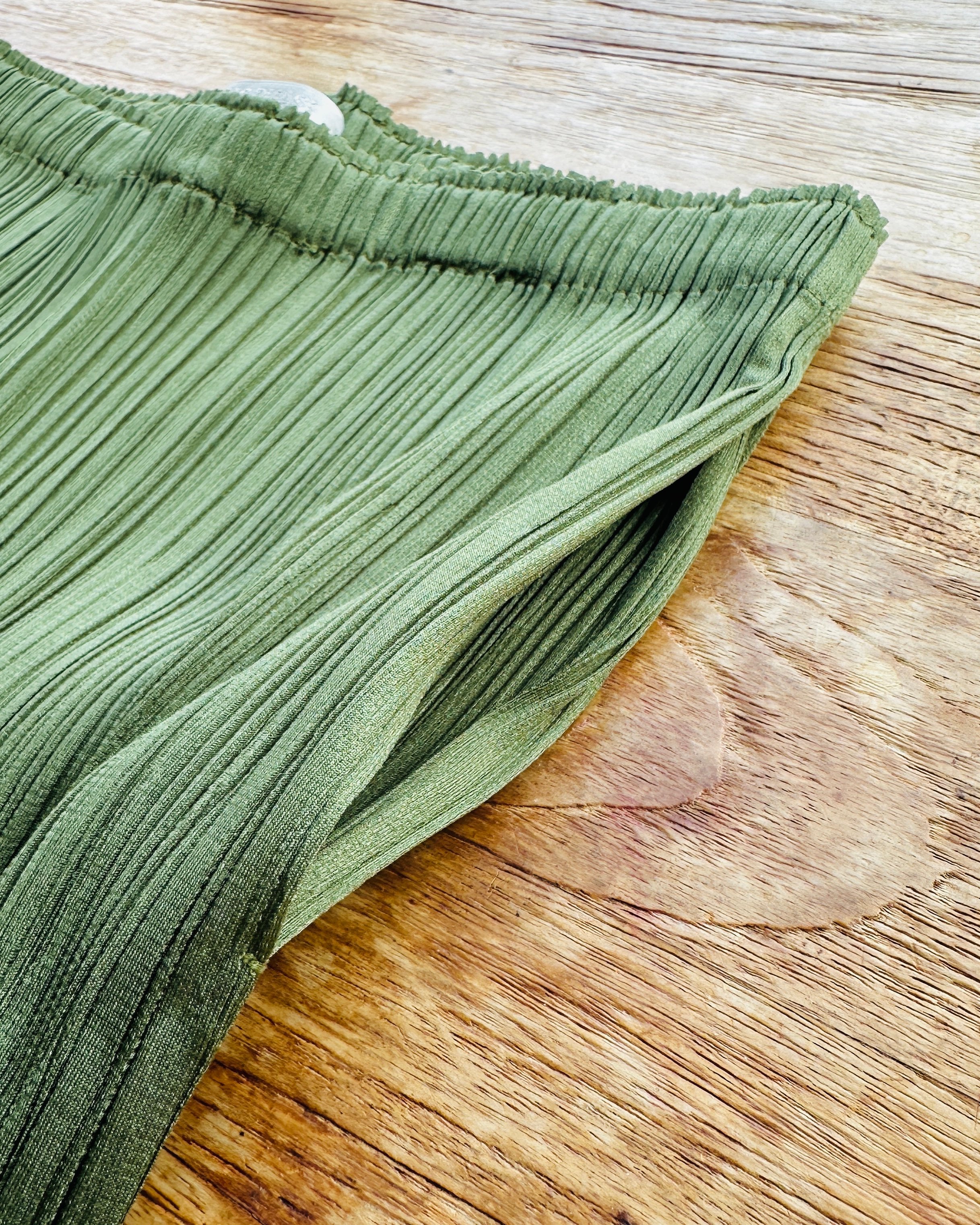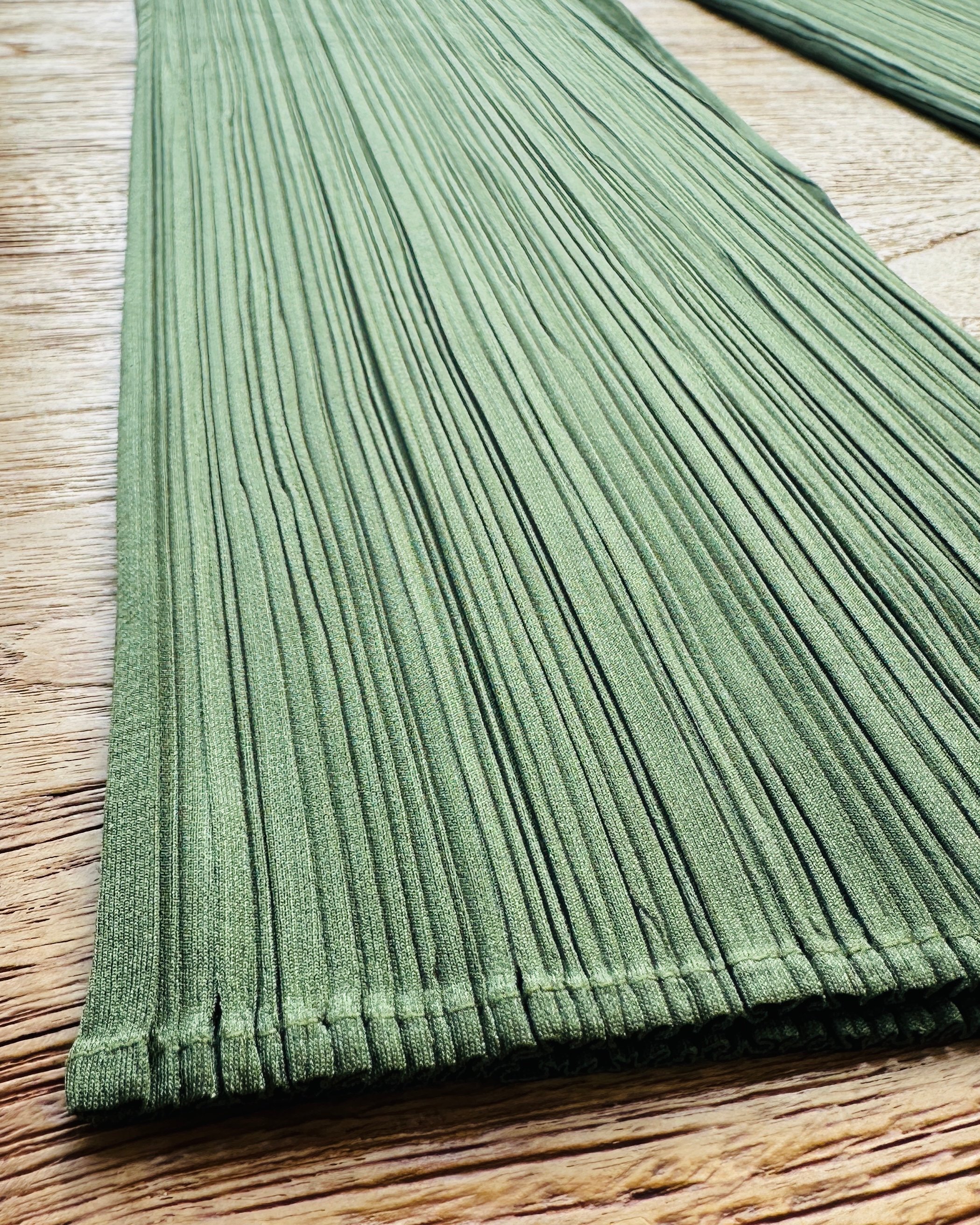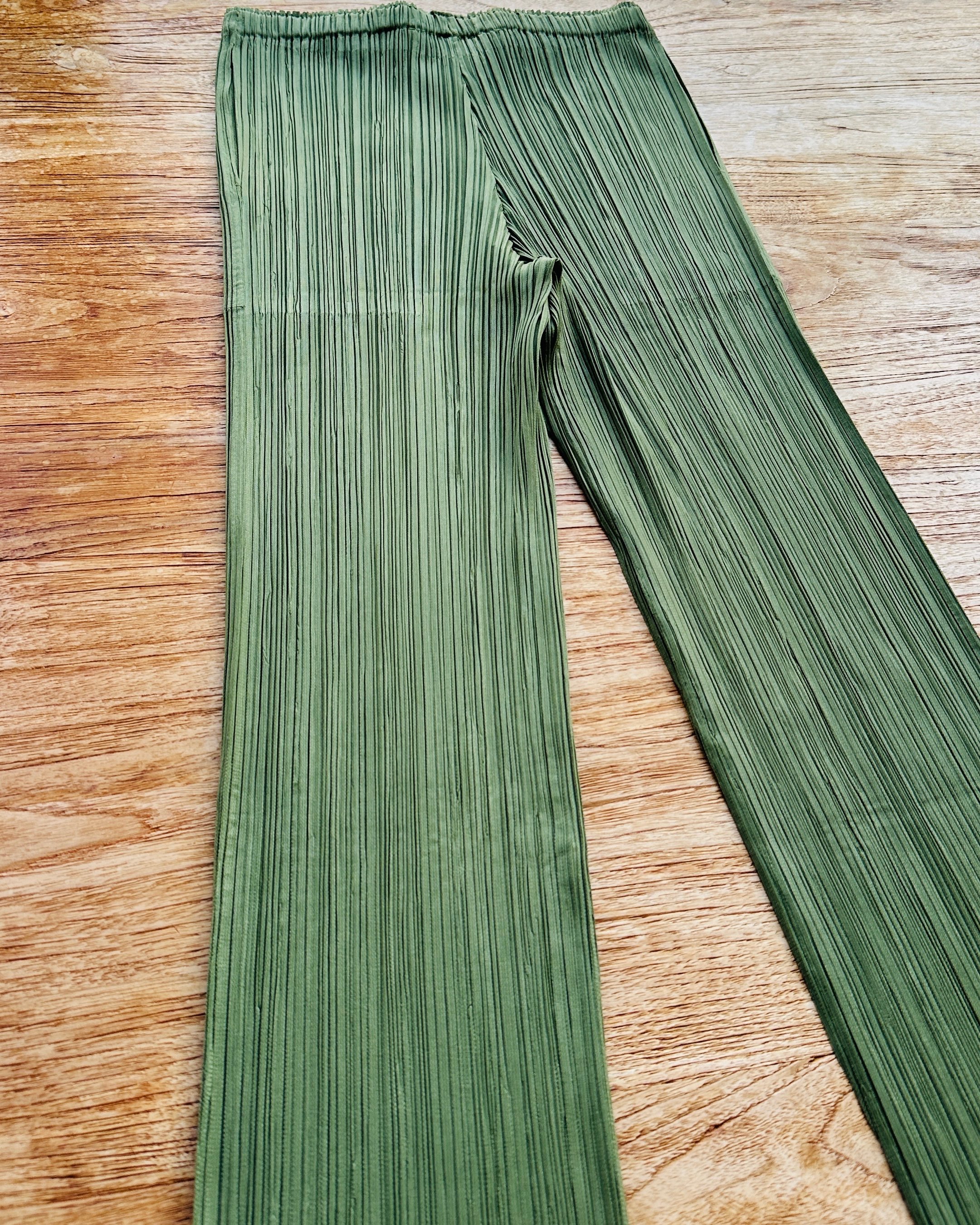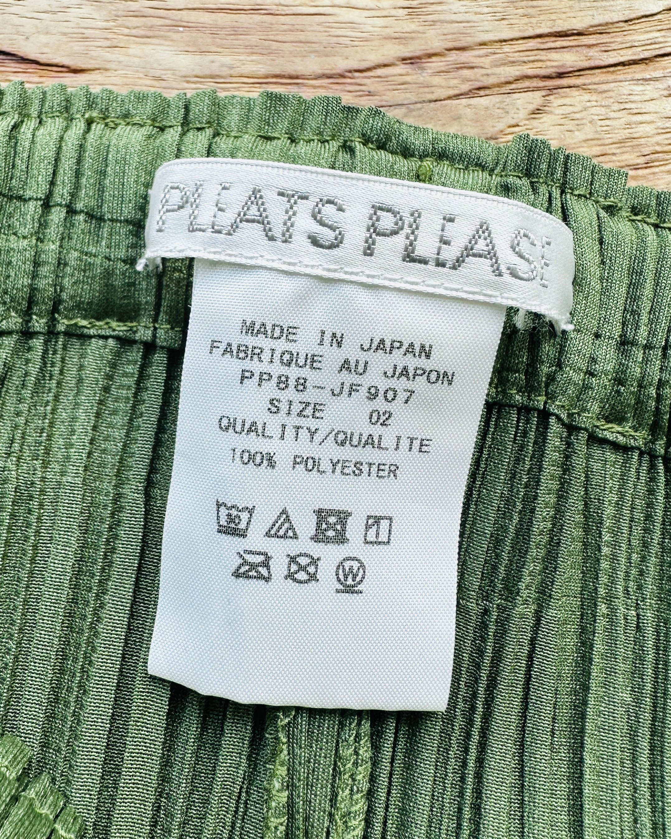 Pleats Please實在唔需要再介紹嘞,呢條氣質深綠褲在世界中心呼喚你,而且仲有埋上身襯成一套,快啲帶佢出去威啦🧚♀️ 價錢:HK$1,150 品牌:Pleats Please 尺碼:2 / S-M 尺寸:60-82cm (腰-橡筋頭)|62-90cm (臀)| 89cm (長) 註:88%新|100% polyester|日本製 *二手產品難達全新狀態,耗損或歲月痕跡屬正常情況,較明顯/嚴重嘅問題會標明或影底,敬請見諒。 *進入付款程序後,請於10分鐘內完成付款,否則絲統會自動取消訂單。 逢星期四寄出|不設退換或退款|順豐運費到付|只寄香港不寄海外
