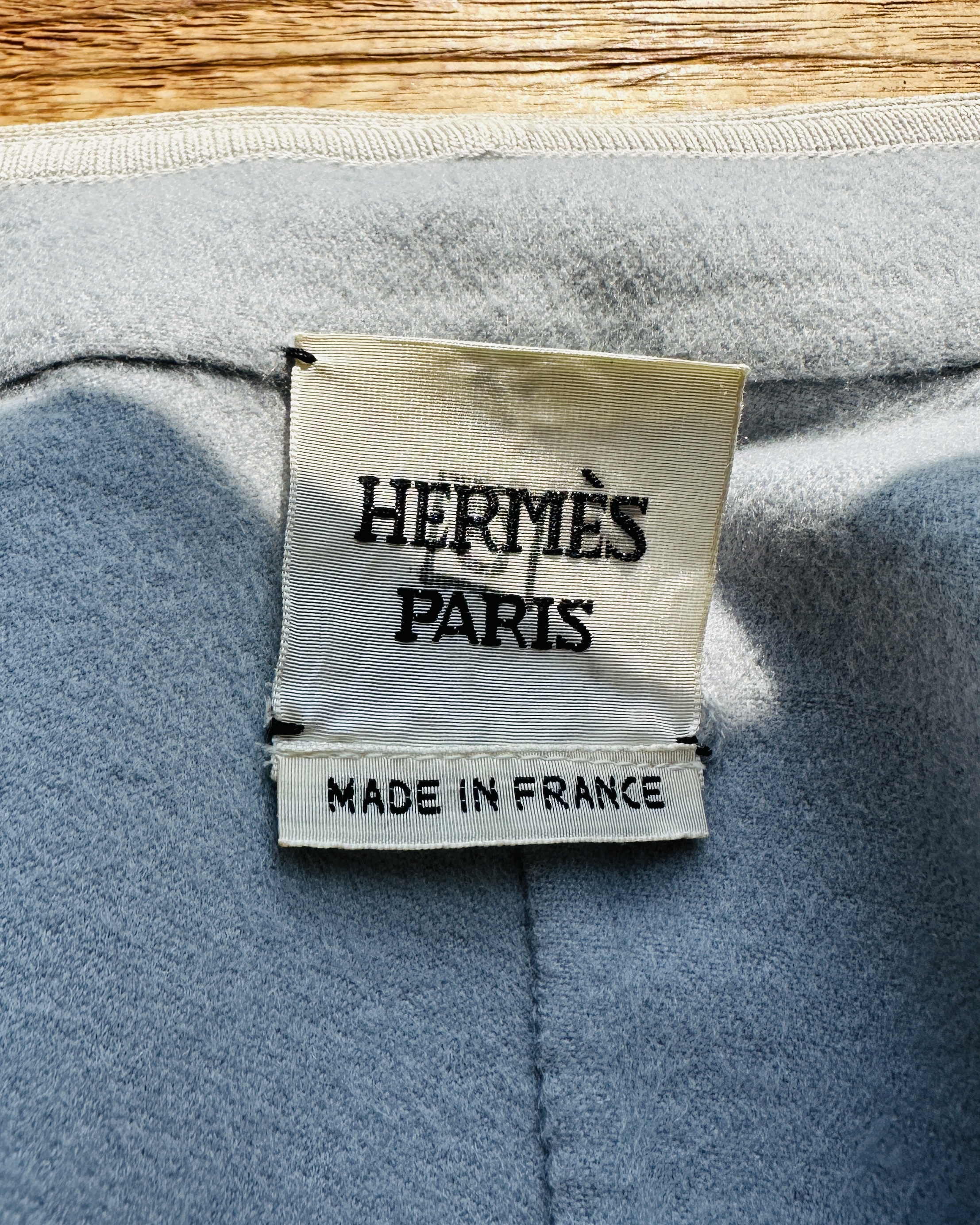 唔該借借💅🏻。Hermes 原價~HK$60K雙面cashmere is here!做research嘅時候見到日本網站係咁形容Hermes cashmere嘅:一生物•最高峰。一生物:可以用一世,直到呢件產品消失於天地;最高峰:最優秀。抽蘇東坡《江城子》一句呼應吓東瀛同行先:不思量•自難忘。Hermes cashmere之順滑綿密紮實就係去到呢個層次。一摸,念念不忘🦥。如果佢唔係staff / sample item,就唔係呢個價㗎啦🫦 價錢:HK$6,500 品牌:Hermes 尺碼:FR 34 / XS-S 尺寸:~50cm (肩)|136cm (胸-buttoned)|136cm (腰-buttoned)|58cm (袖)|95cm (長) 註:85%新|label一角縫線鬆脫|金屬鈕扣極輕微小花|100% cashmere |75% viscose + 25% polyamide|法國製 *二手產品難達全新狀態,耗損或歲月痕跡屬正常情況,較明顯/嚴重嘅問題會標明或影底,敬請見諒。 *進入付款程序後,請於10分鐘內完成付款,否則絲統會自動取消訂單。 逢星期四寄出|不設退換或退款|順豐運費到付|只寄香港不寄海外
