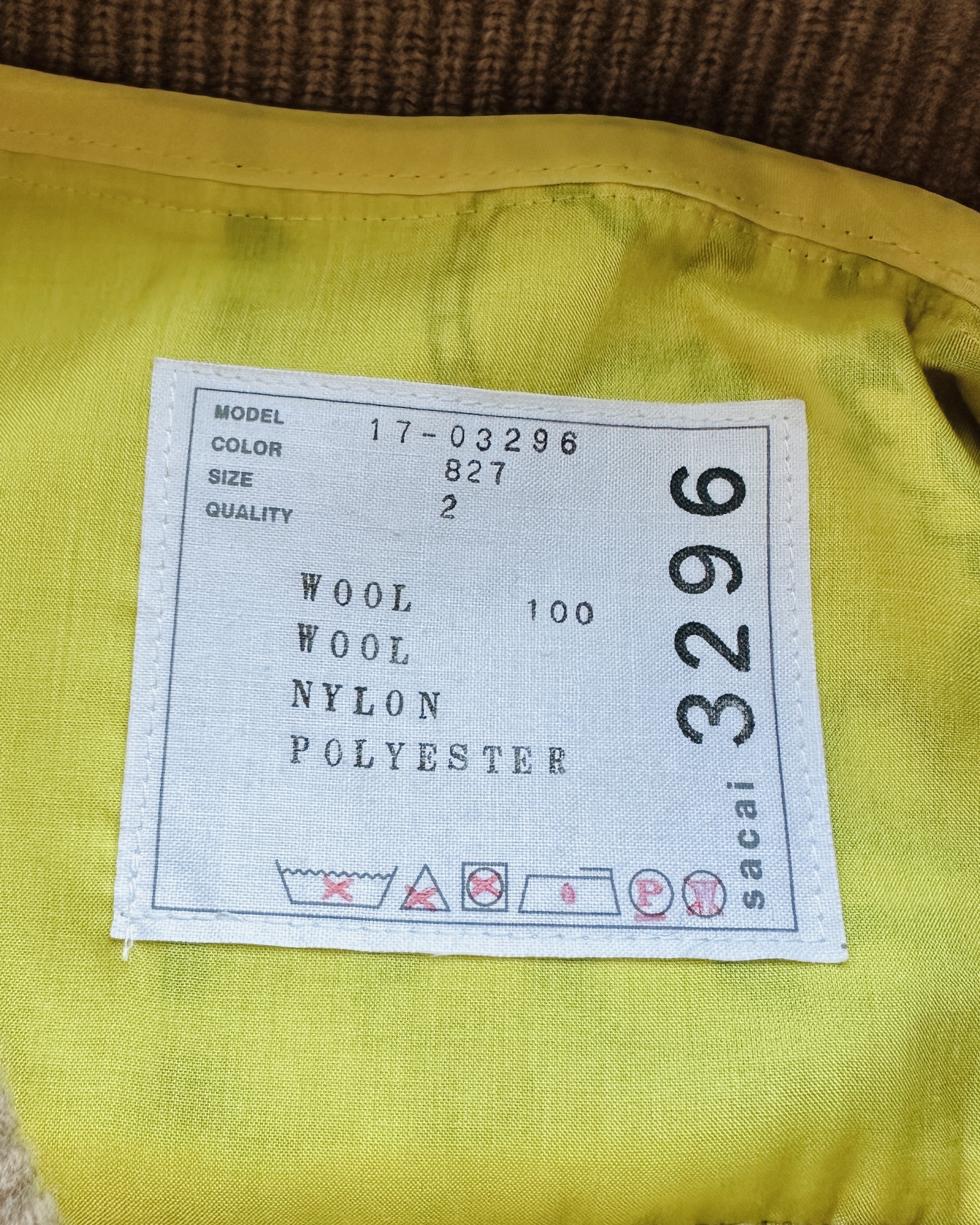 唔知點解樽領衫係會散發出某種睿智vibe嘅🦉。所以呢件2017 pre-fall出品智慧與美貌並重,可以去選港姐,表現可能好過江旻憓選議員🙊 價錢:HK$1,750 品牌:Sacai 尺碼:2 / M 尺寸:40cm (肩)|96cm (胸)|100cm+ (腰)|65cm (袖)|55cm (前長)|60cm (後長) 註:88%新|100% wool|80% wool + 20% nylon|100% polyester *二手產品難達全新狀態,耗損或歲月痕跡屬正常情況,較明顯/嚴重嘅問題會標明或影底,敬請見諒。 *進入付款程序後,請於10分鐘內完成付款,否則絲統會自動取消訂單。 逢星期四寄出|不設退換或退款|順豐運費到付|只寄香港不寄海外