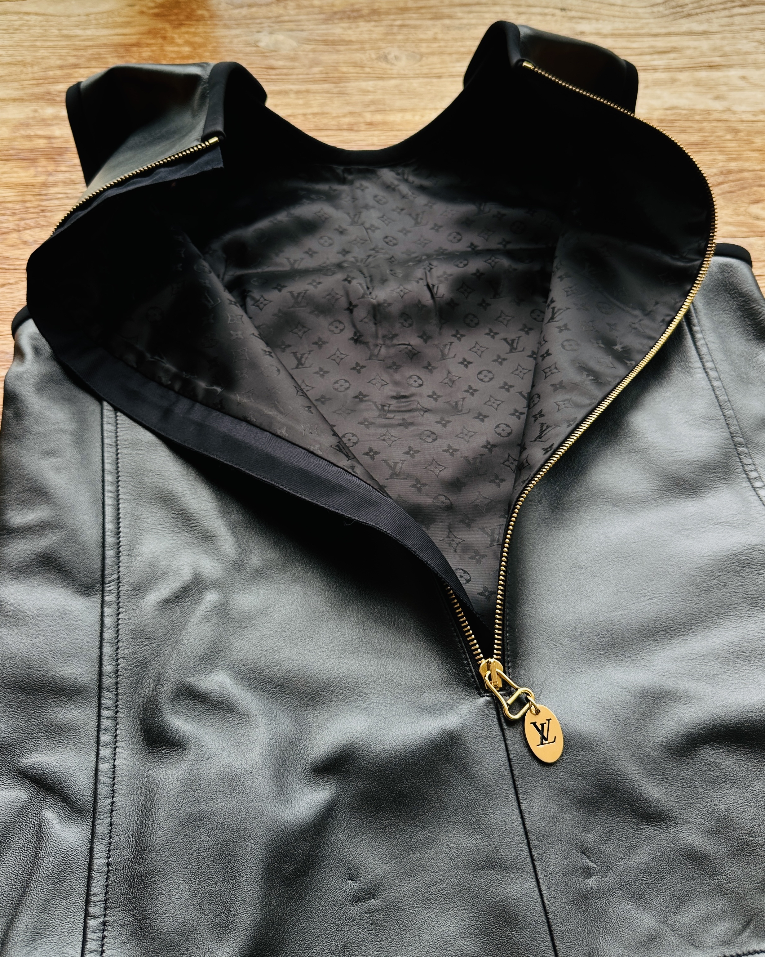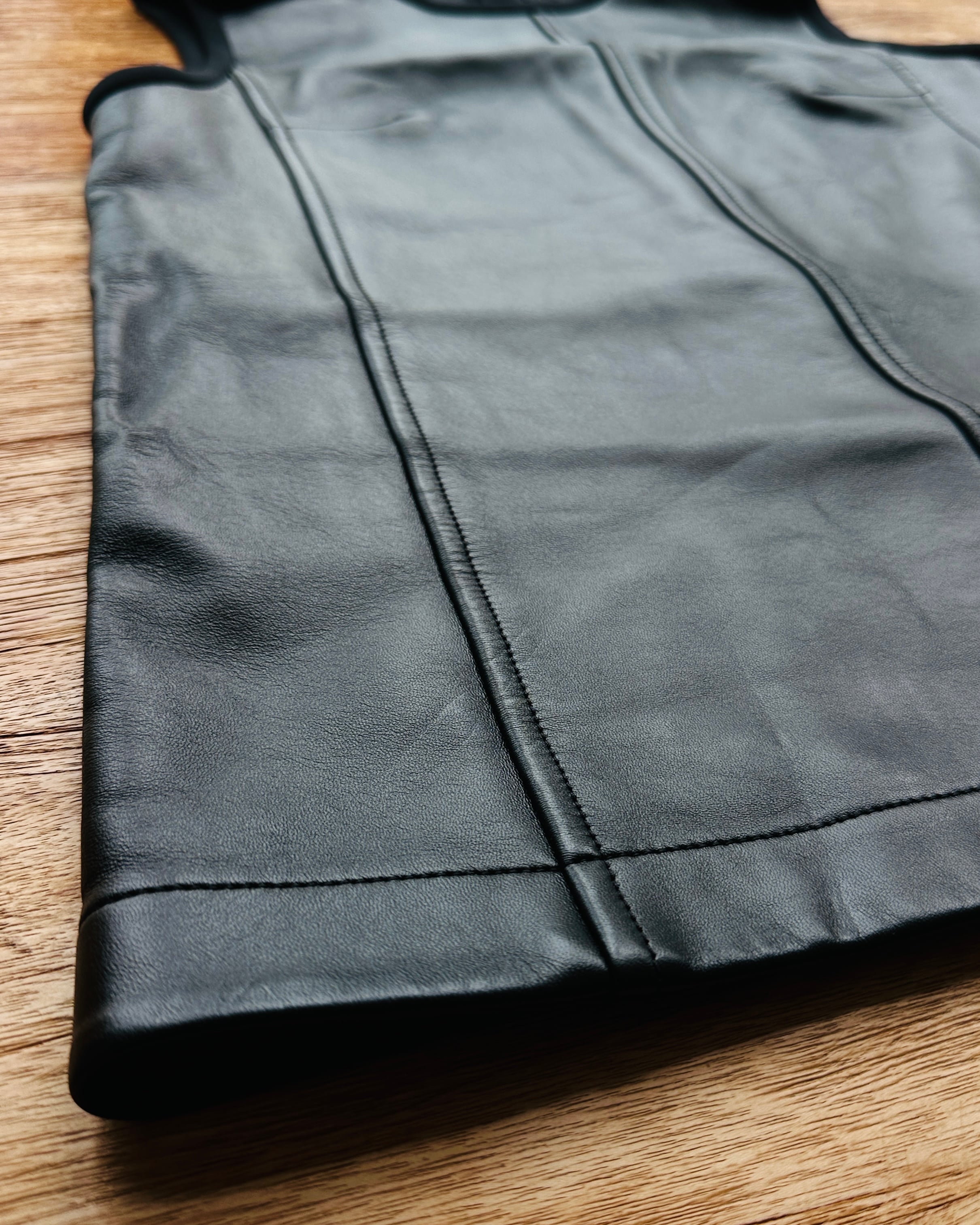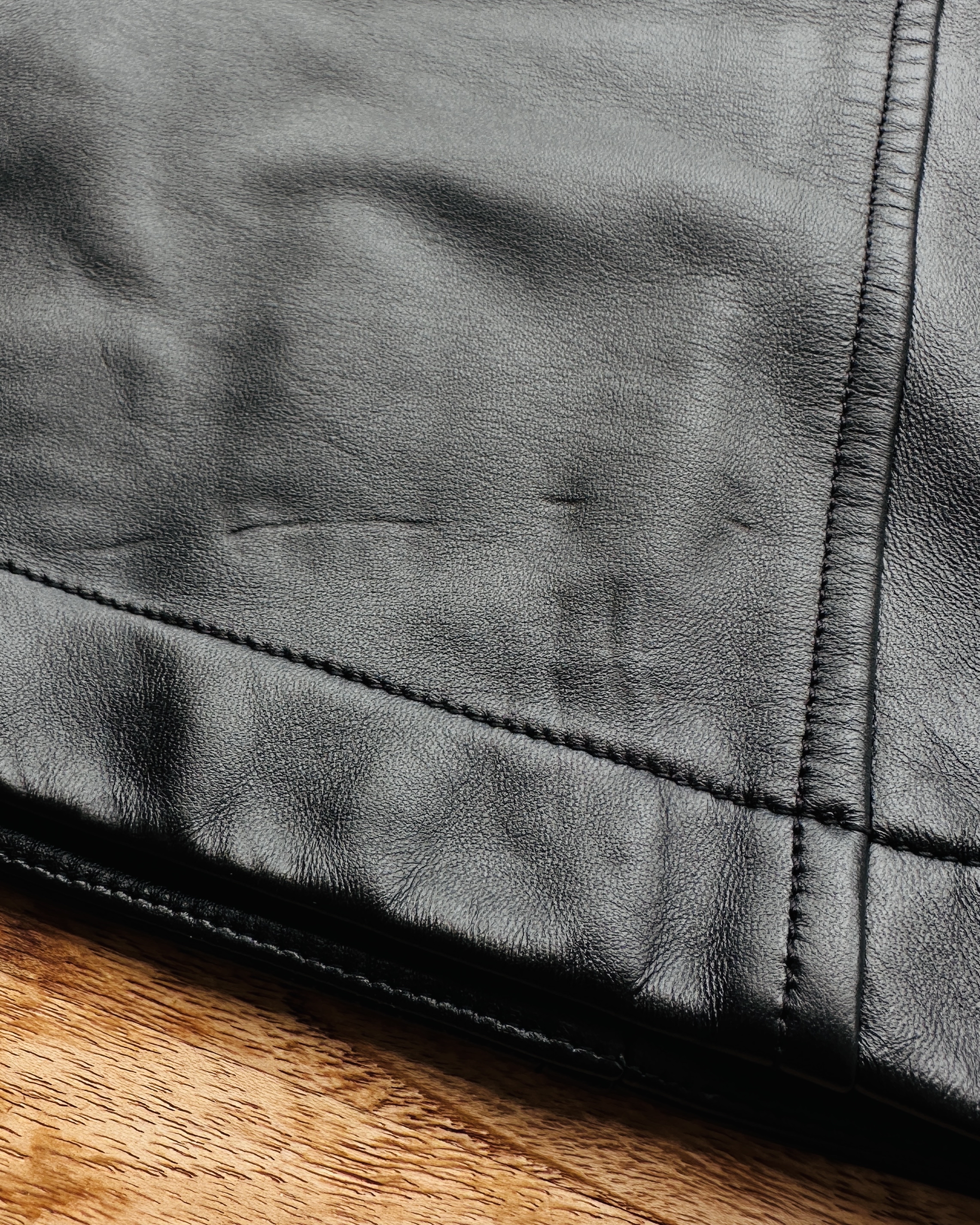 註:全新未使用|輕微皮革摺痕及壓印|100% lamb skin|50% viscose + 50% cupro (底)|法國製