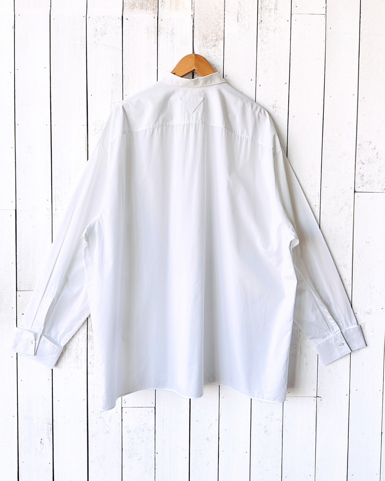 Prada男裝通常官仔骨骨少掂oversized剪裁,係2024春夏呢季忽然興致大發先會得到呢件原價~HK$9K嘅恤衫㗎咋🐒 價錢:HK$1,600 品牌:Prada 尺碼:M / 180/96A 尺寸:60cm (drop shoulder)|138cm (胸)|62cm (袖)|80cm (長) 註:85%新|100% cotton|意大利製 *二手產品難達全新狀態,耗損或歲月痕跡屬正常情況,較明顯/嚴重嘅問題會標明或影底,敬請見諒。 *進入付款程序後,請於10分鐘內完成付款,否則絲統會自動取消訂單。 逢星期四寄出|不設退換或退款|順豐運費到付|只寄香港不寄海外