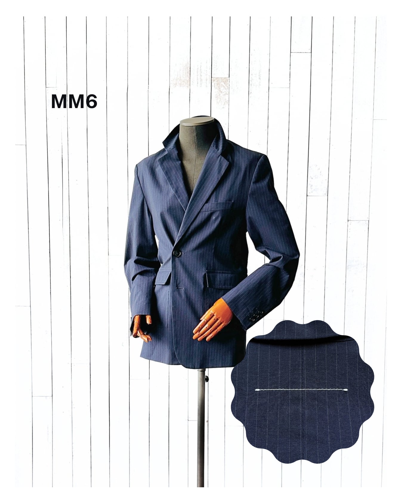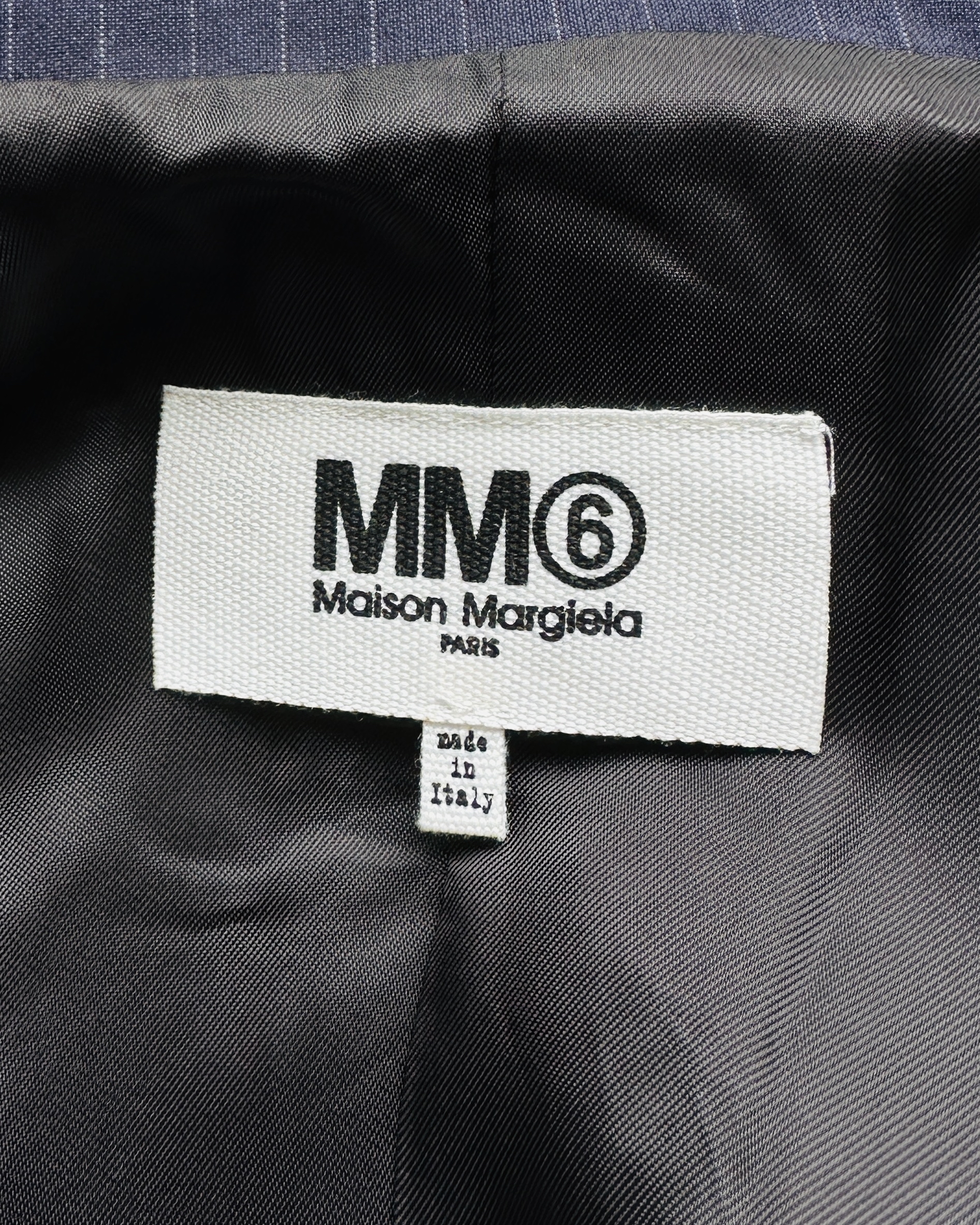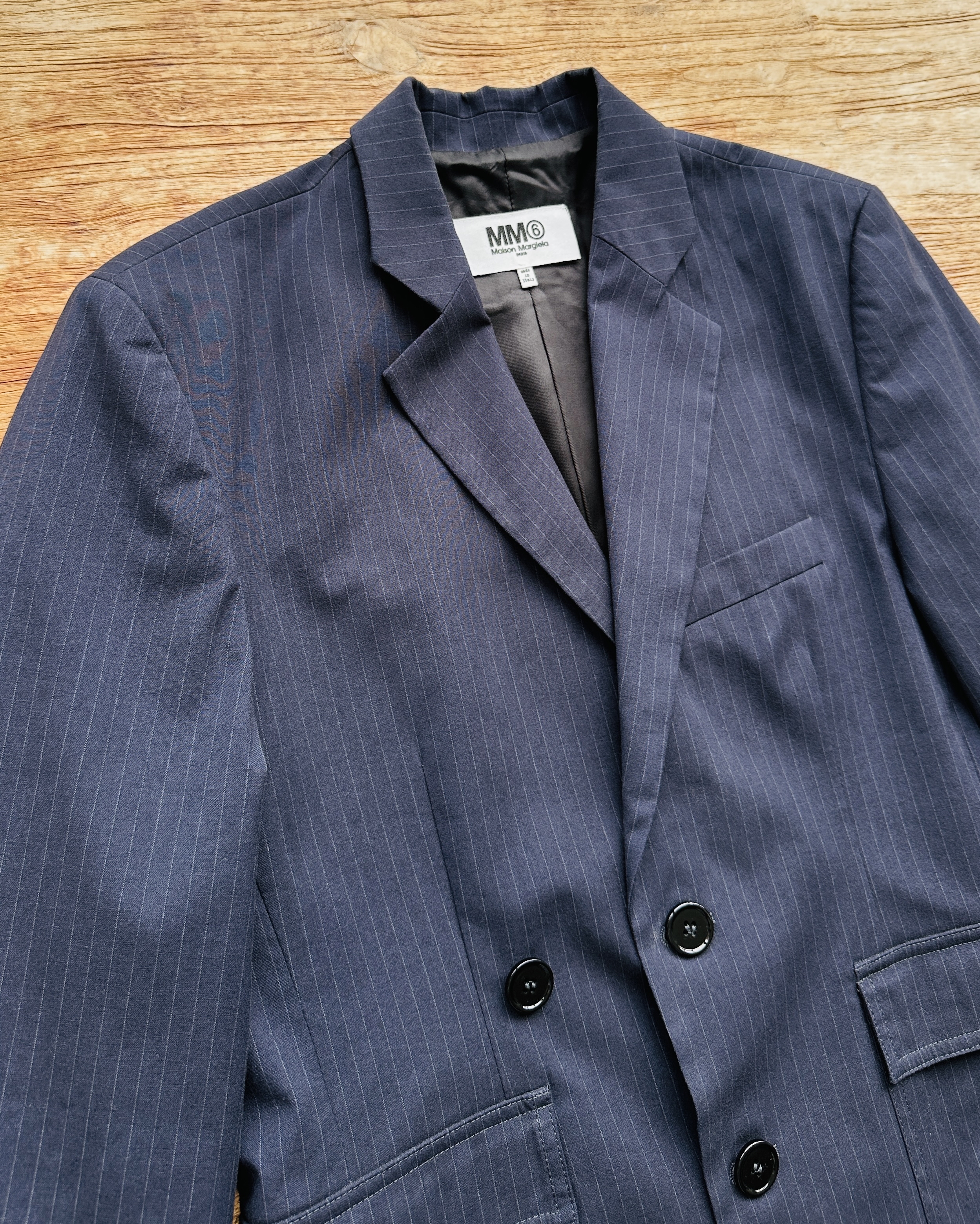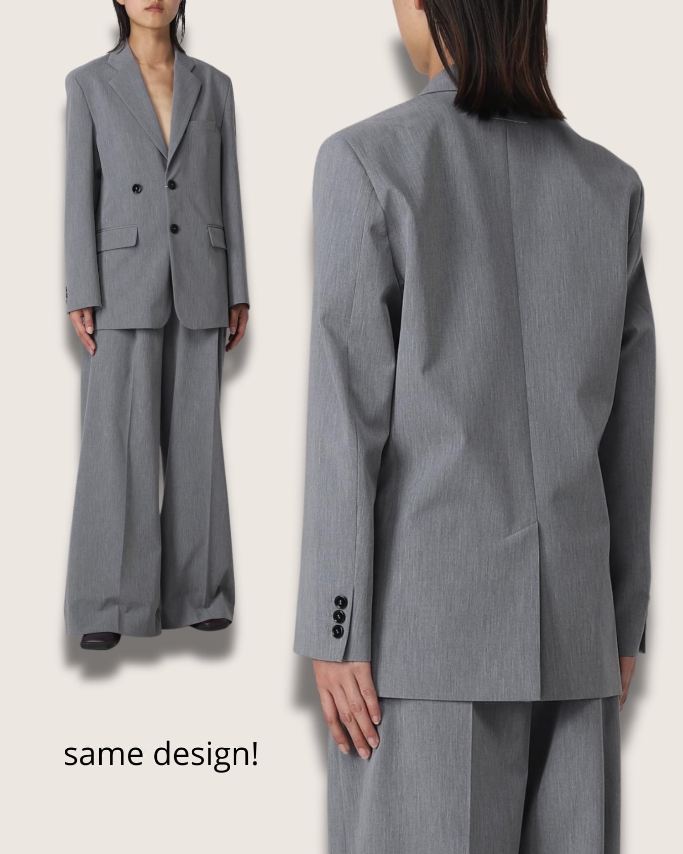 MM6經常出現嘅招牌假孖襟剪裁,呢件2022年嘅,原價HK$7K+。假孖襟勝在可以正常單襟扣鈕,但其實扣入一粒更型,你睇阿蘭幾咁招積💅🏻