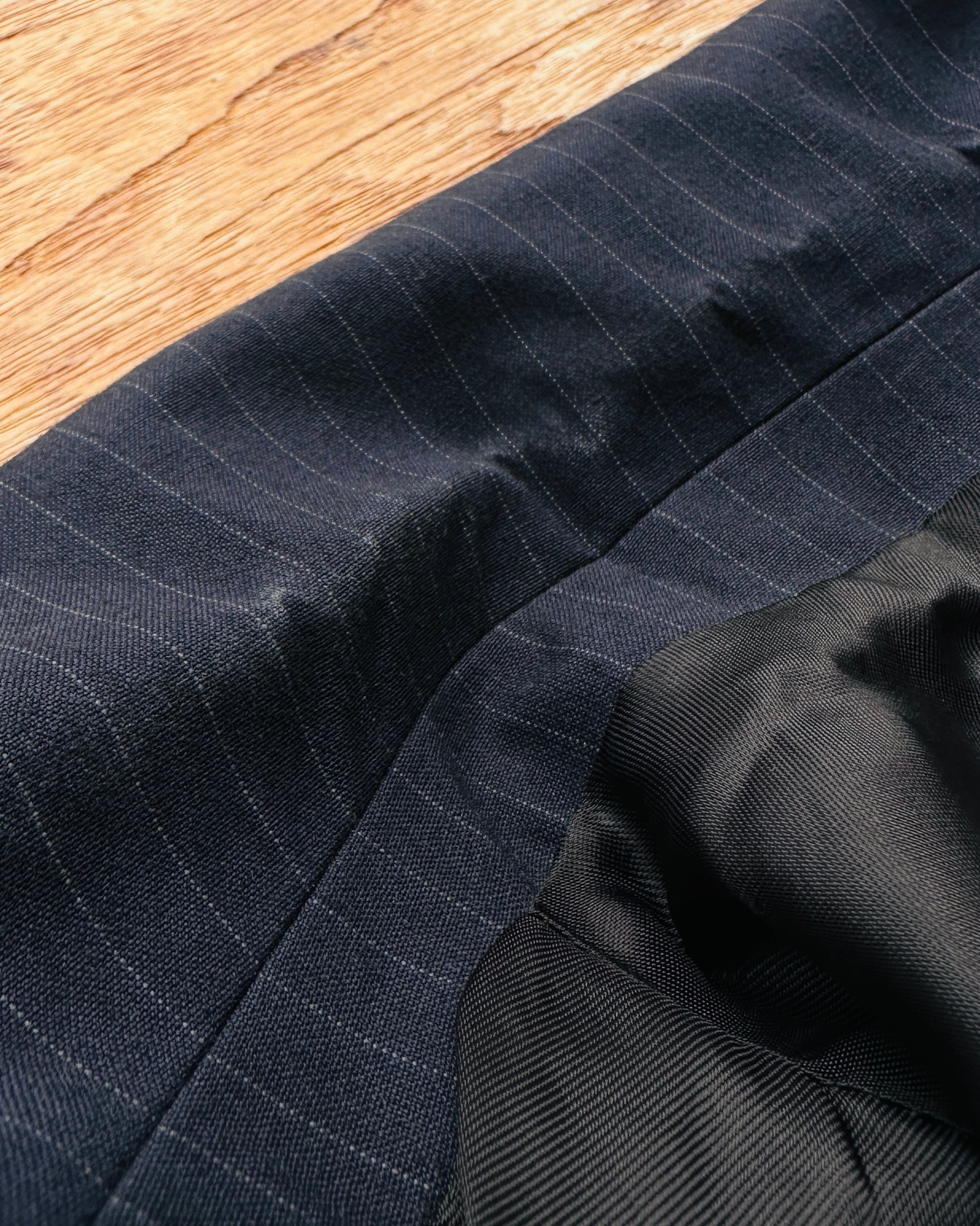註:85%新|胸袋某角度先見到熨斗白印|領內邊漬|60% polyester + 37% cotton + 3% elastane|100% viscose|意大利製