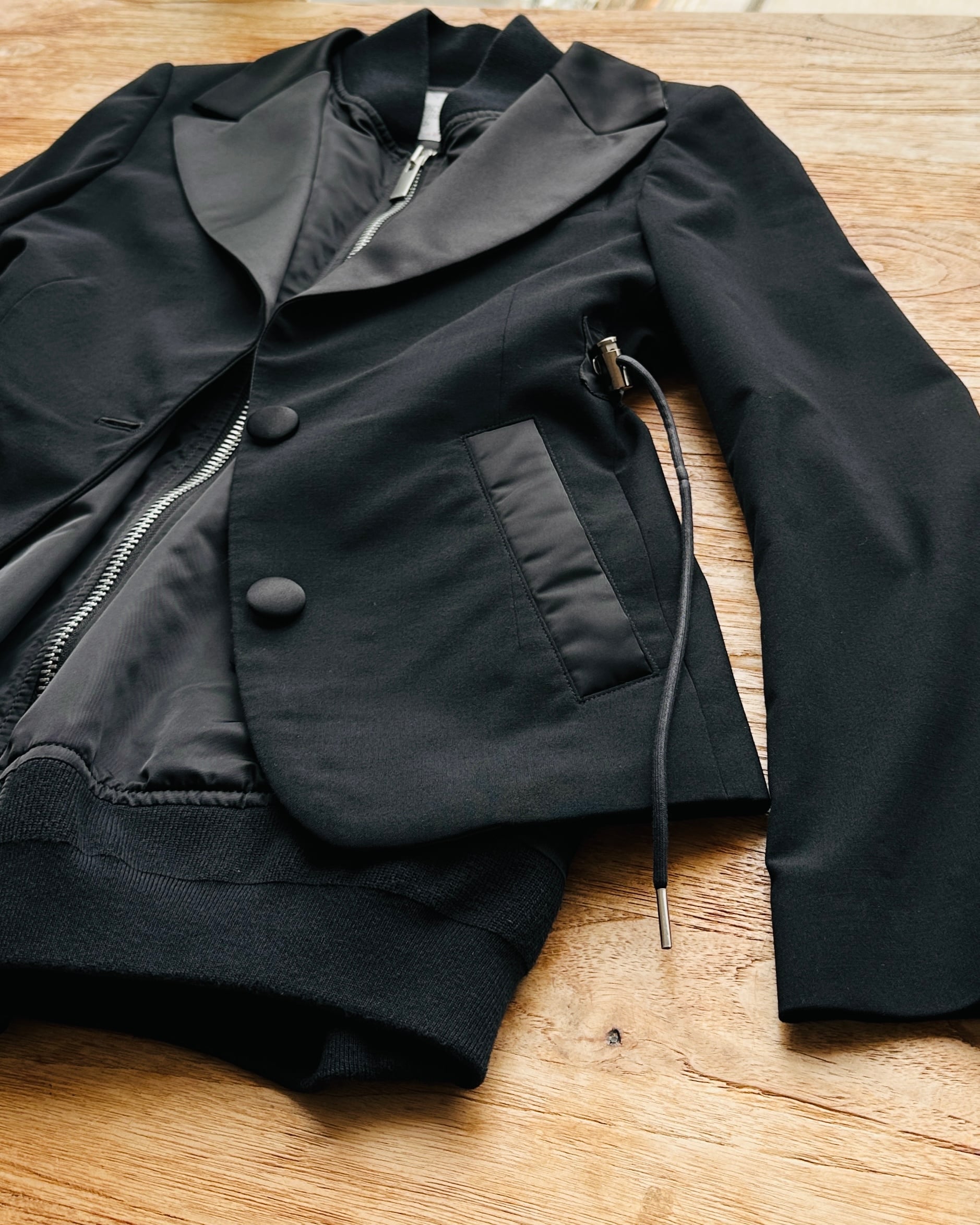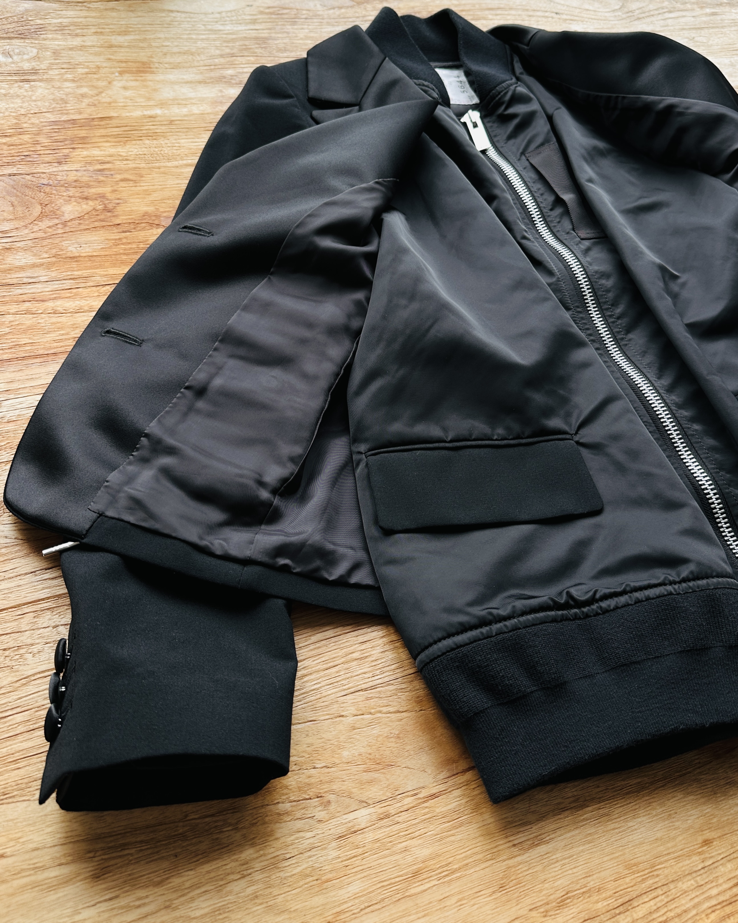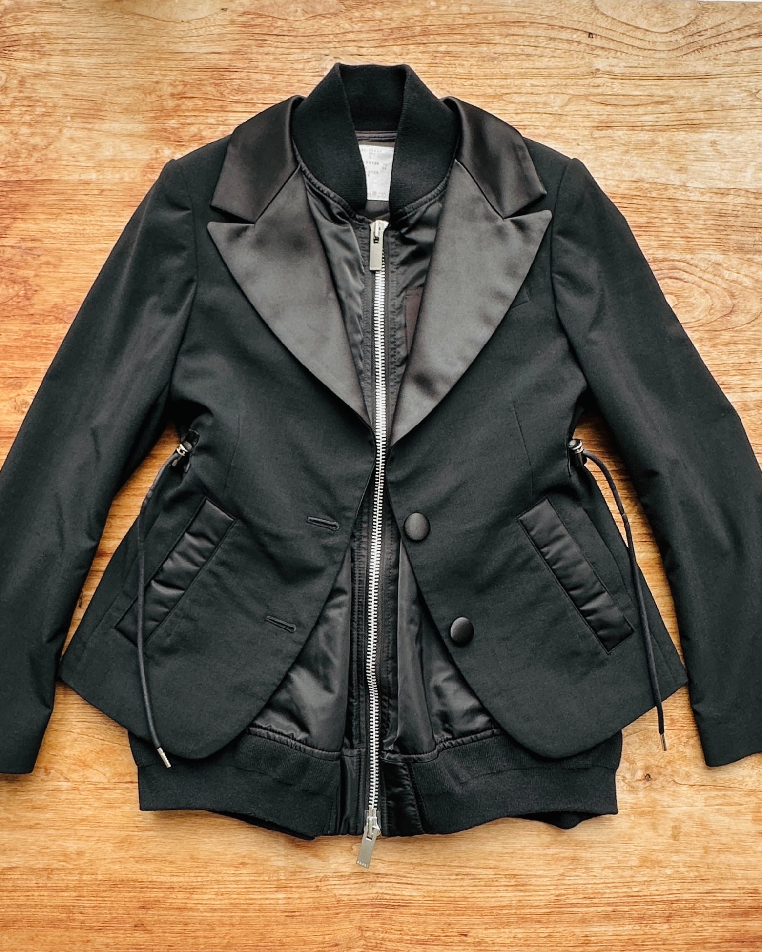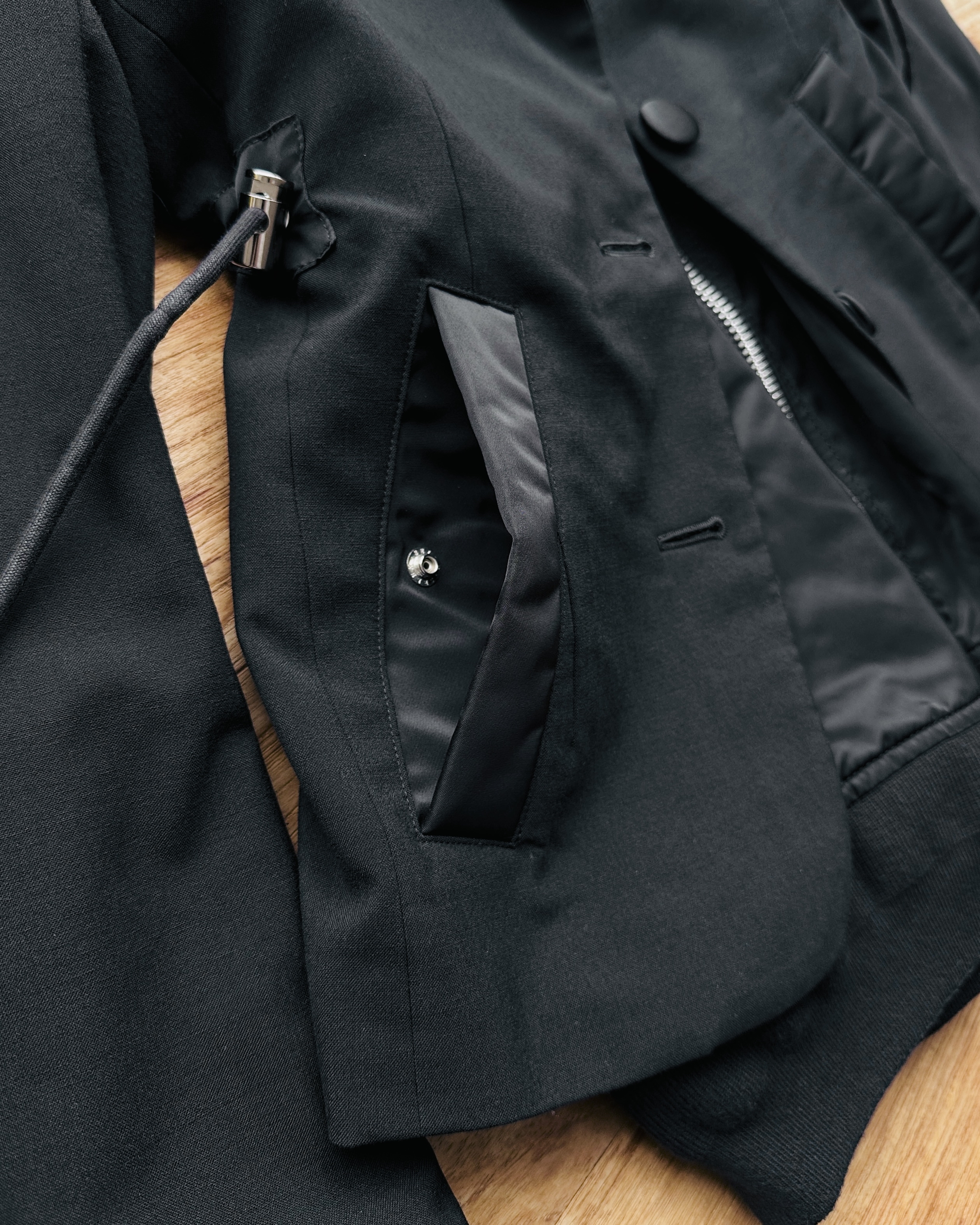 呢件癲呀🤟🏼!如果設計有男上女下嘅傳統,MA-1軍褸同西裝褸,理論上應該MA-1喺面會正路啲,但呢件原價HK$10K+嘅2021 pre-fall出品居然玩女上男下,好wild🔥🐒