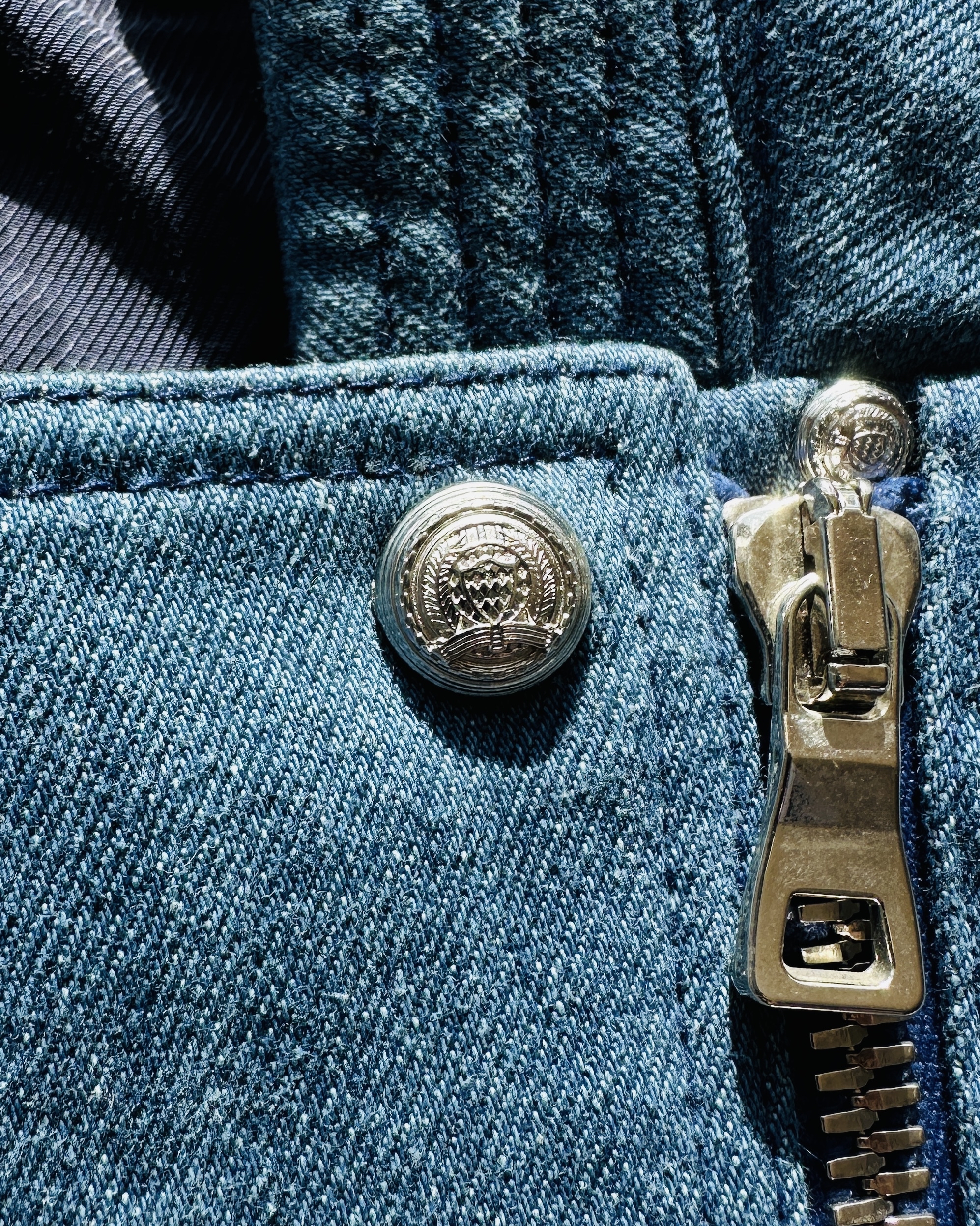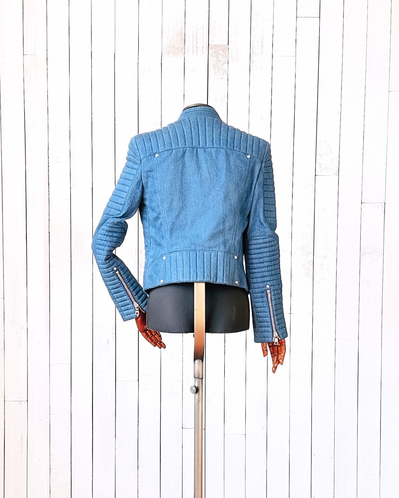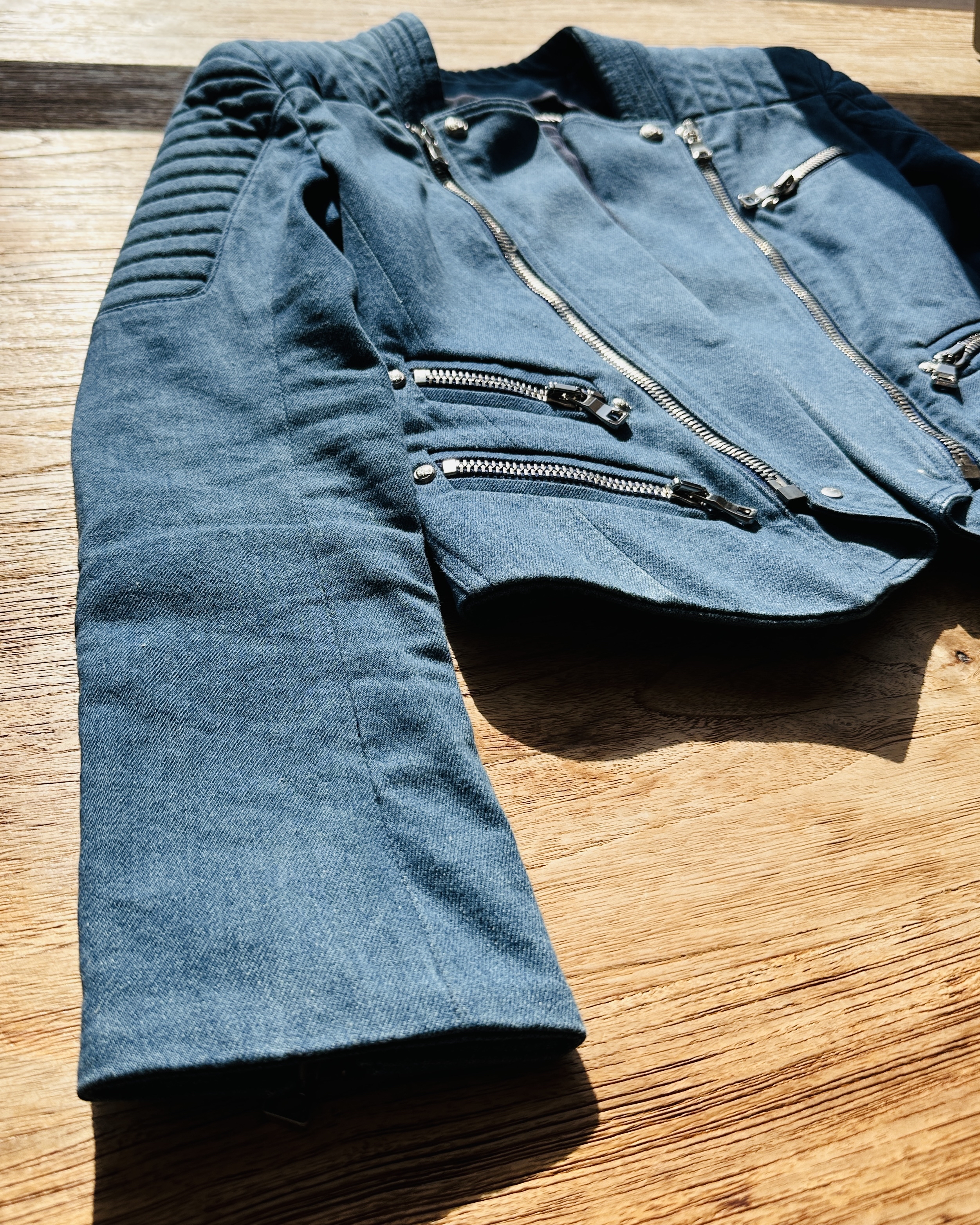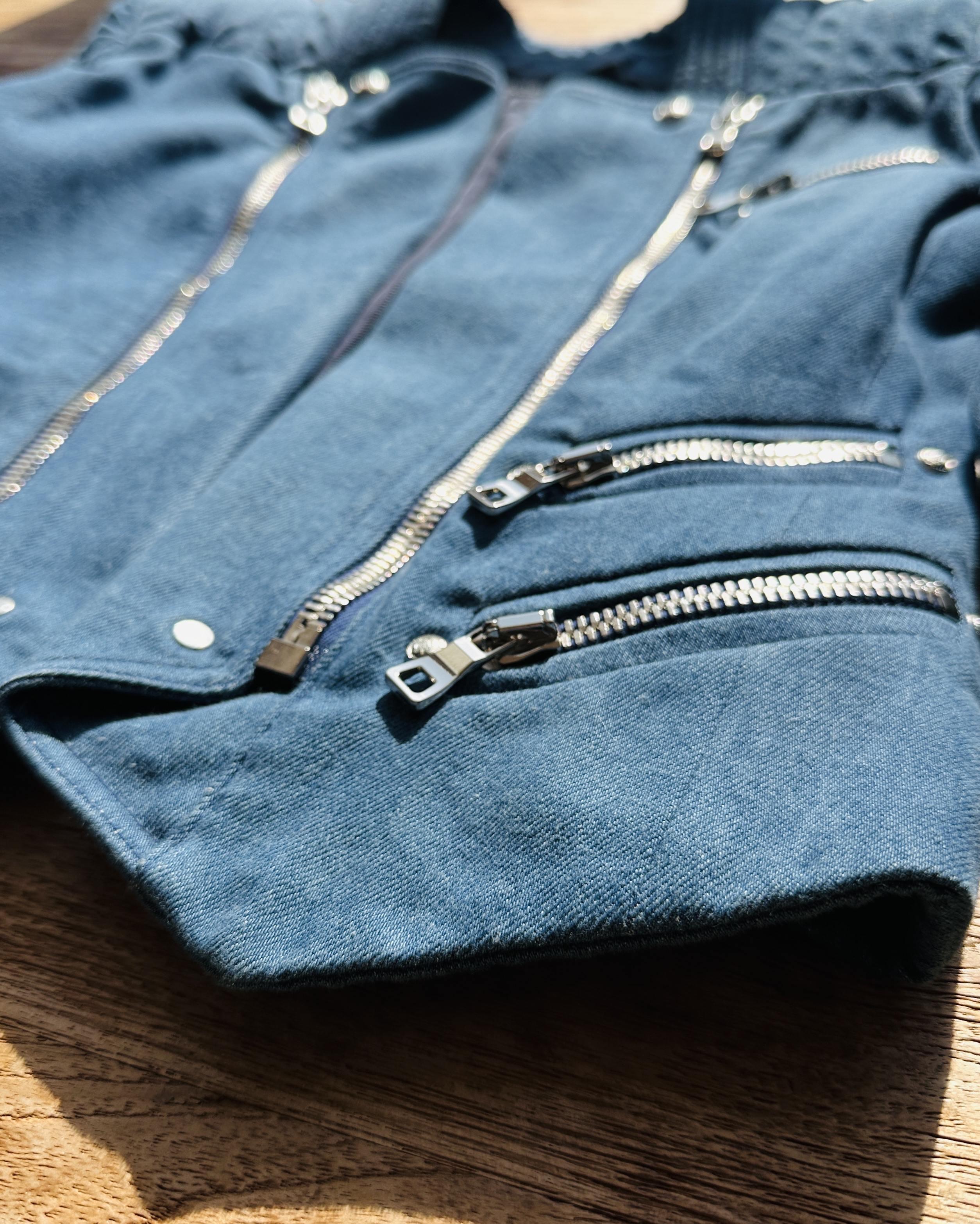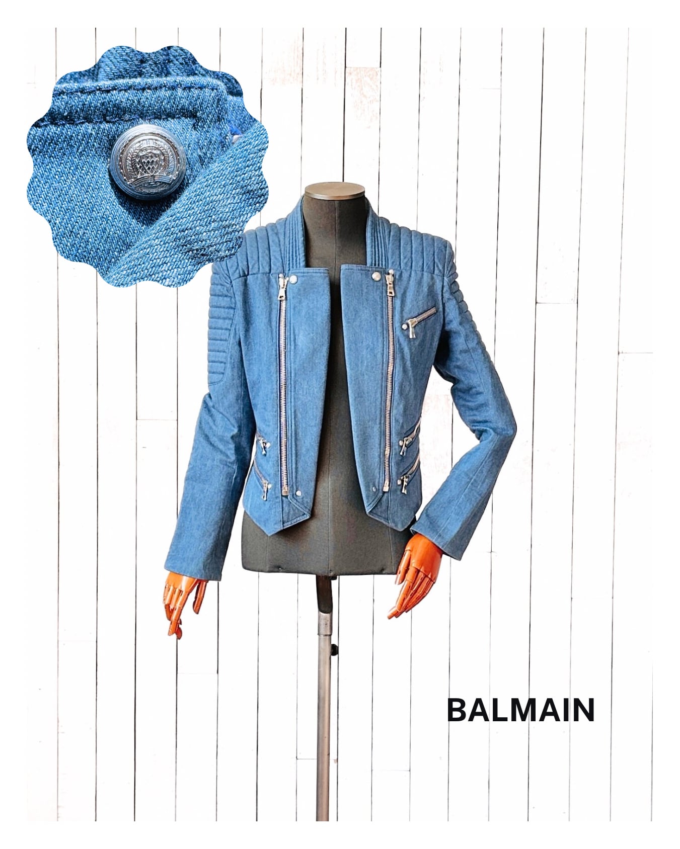 鮑姐嘅撚手biker唔係件件friendly㗎🦔!有啲膊頭個飛簷上到9樓咁高霸氣重,只適宜出現喺那英身上🐲。而呢件原價HK$19K嘅denim版就相當和藹可親嘞,着用率高好多🤭 價錢:HK$2,500 品牌:Balmain 尺碼:FR 38 / S-M 尺寸:41cm (肩)|90cm (胸-zipped)|82cm (腰-zipped)|59cm (袖)|55cm (長) 註:85%新|領內邊淡漬|98% cotton + 2% elastane|52% viscose + 48% cotton (底)|土耳其製 *二手產品難達全新狀態,耗損或歲月痕跡屬正常情況,較明顯/嚴重嘅問題會標明或影底,敬請見諒。 *進入付款程序後,請於10分鐘內完成付款,否則絲統會自動取消訂單。 逢星期四寄出|不設退換或退款|順豐運費到付|只寄香港不寄海外