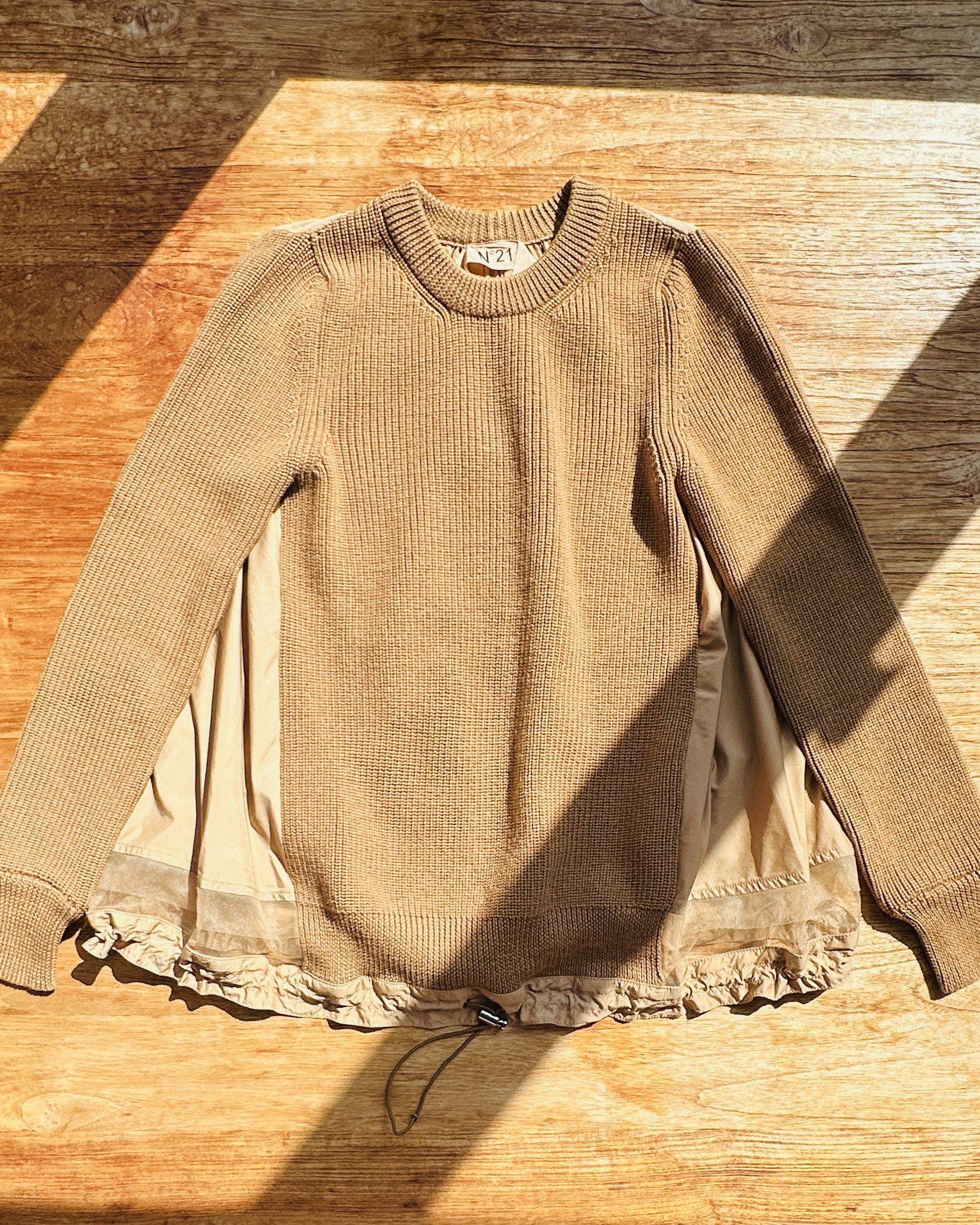 好衰㗎,咁嘅輪廓咁嘅拼布格局,仲以為係Sacai,睇到個tag先知係2020春夏嘅N°21🤭。不過留意返喎,N°21一件wool jumper HK$7K起跳,同Sacai同level㗎🪭