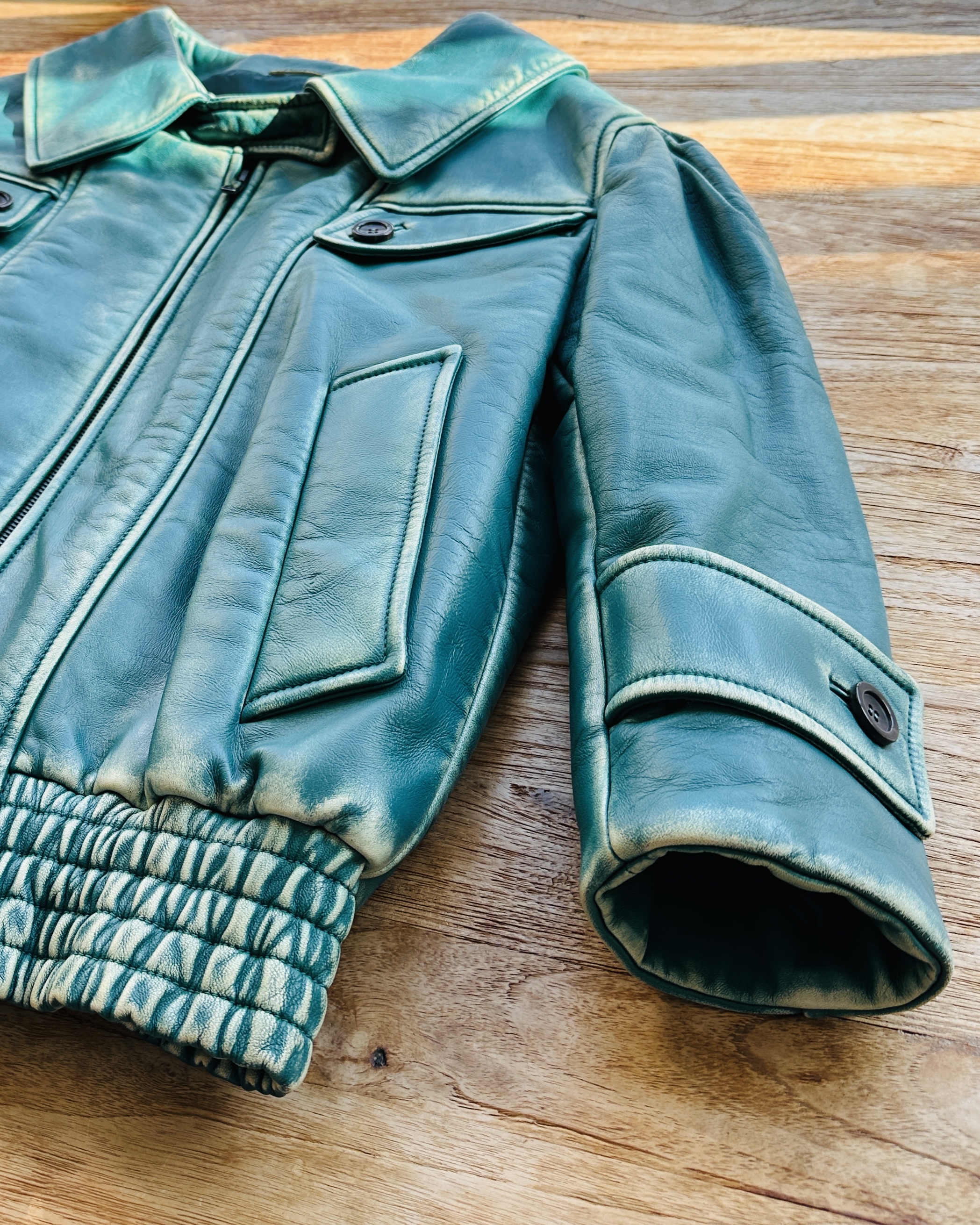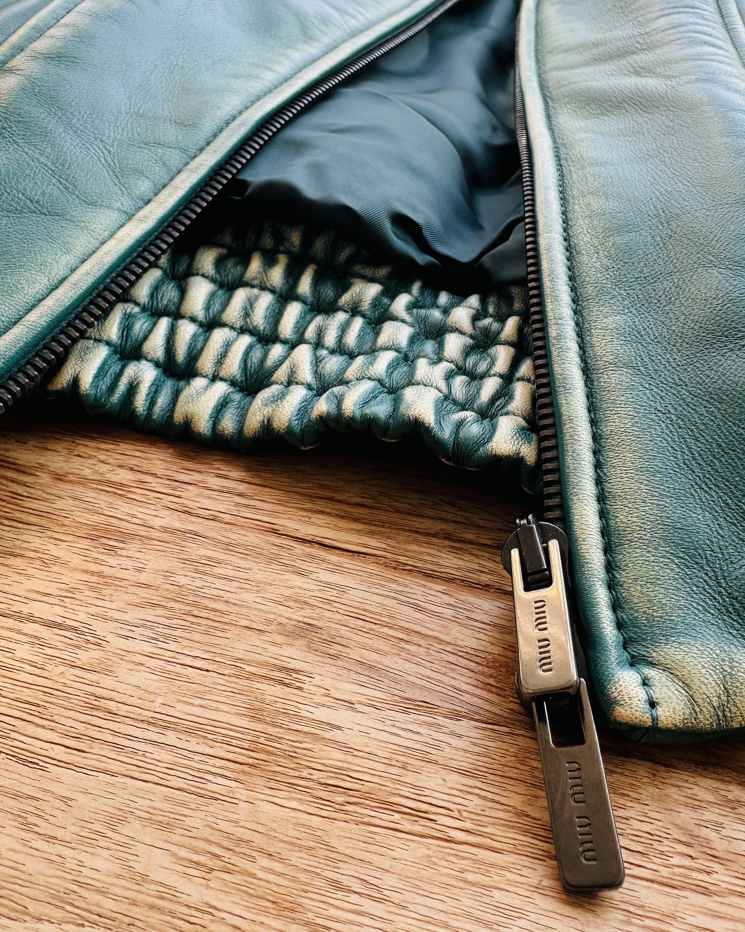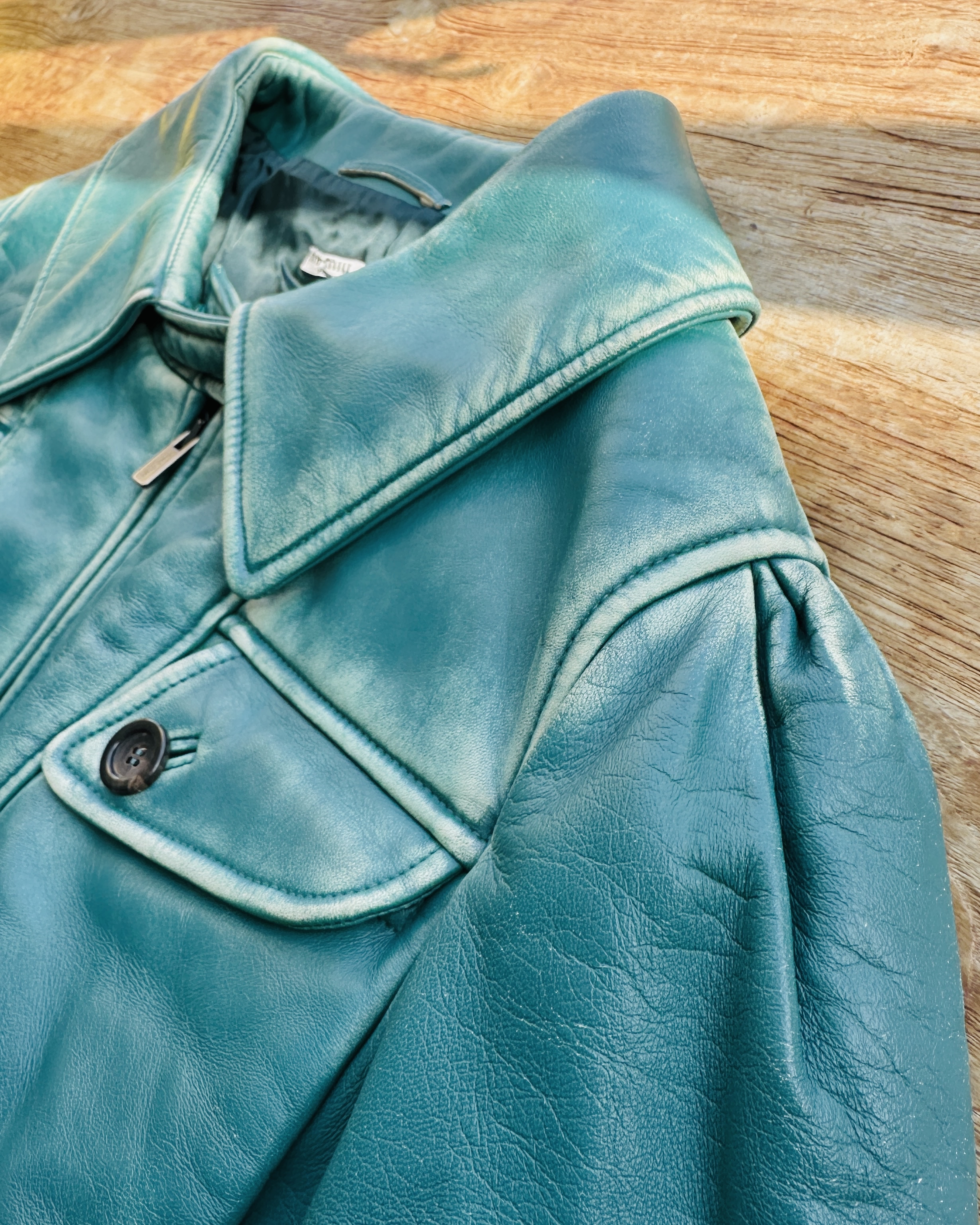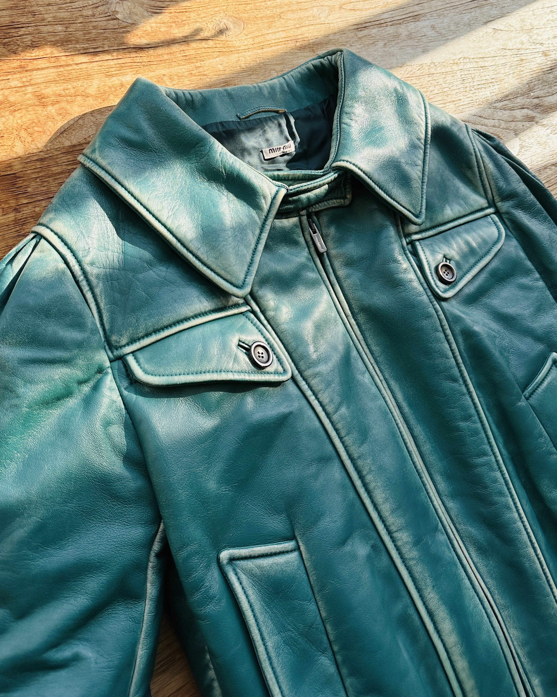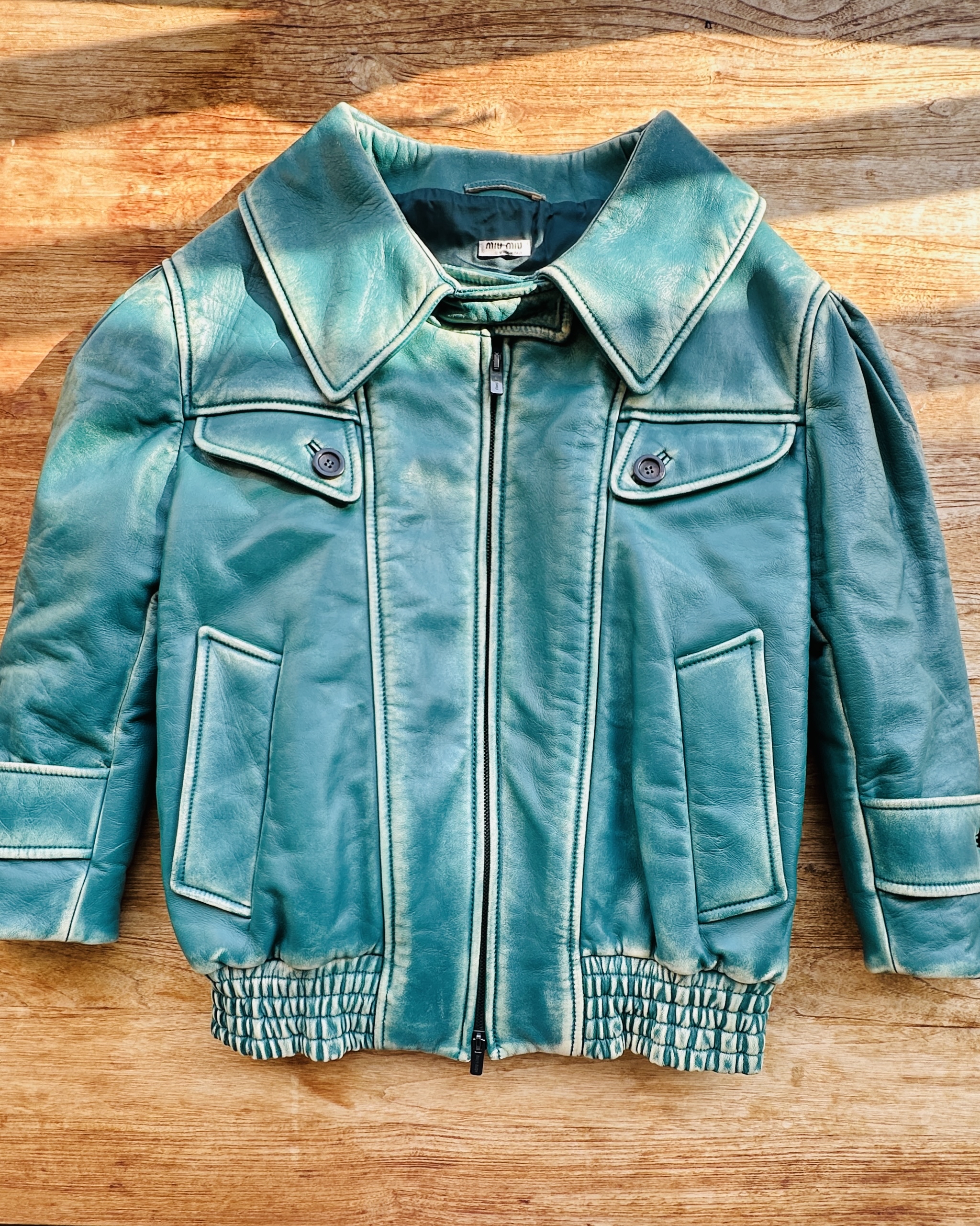 唔好✋🏼!咪🫸🏼!請你吞返嗰句:「做咩新年流流着件舊皮褸呀」!只有來自清朝嘅太太婆先會咁問㗎咋喂🧌。佢係miu miu 2018秋冬原價HK$40K+嘅全羊皮造舊oversized jacket,造舊效果超靚,如果長輩唔明,盡量啦,盡量忍住唔好反佢眼🙄 價錢:HK$3,000 品牌:miu miu 尺碼:36 / 160/72A / XS-S 尺寸:50cm (drop shoulder)|108cm (胸-zipped)|104cm (腰-zipped)|51cm (袖)|65cm (長) 註:85%新|頂鈕皮革耗損|左袋皮革輕微耗損|100% lambskin|100% polyester|意大利製 *二手產品難達全新狀態,耗損或歲月痕跡屬正常情況,較明顯/嚴重嘅問題會標明或影底,敬請見諒。 *進入付款程序後,請於10分鐘內完成付款,否則絲統會自動取消訂單。 逢星期四寄出|不設退換或退款|順豐運費到付|只寄香港不寄海外