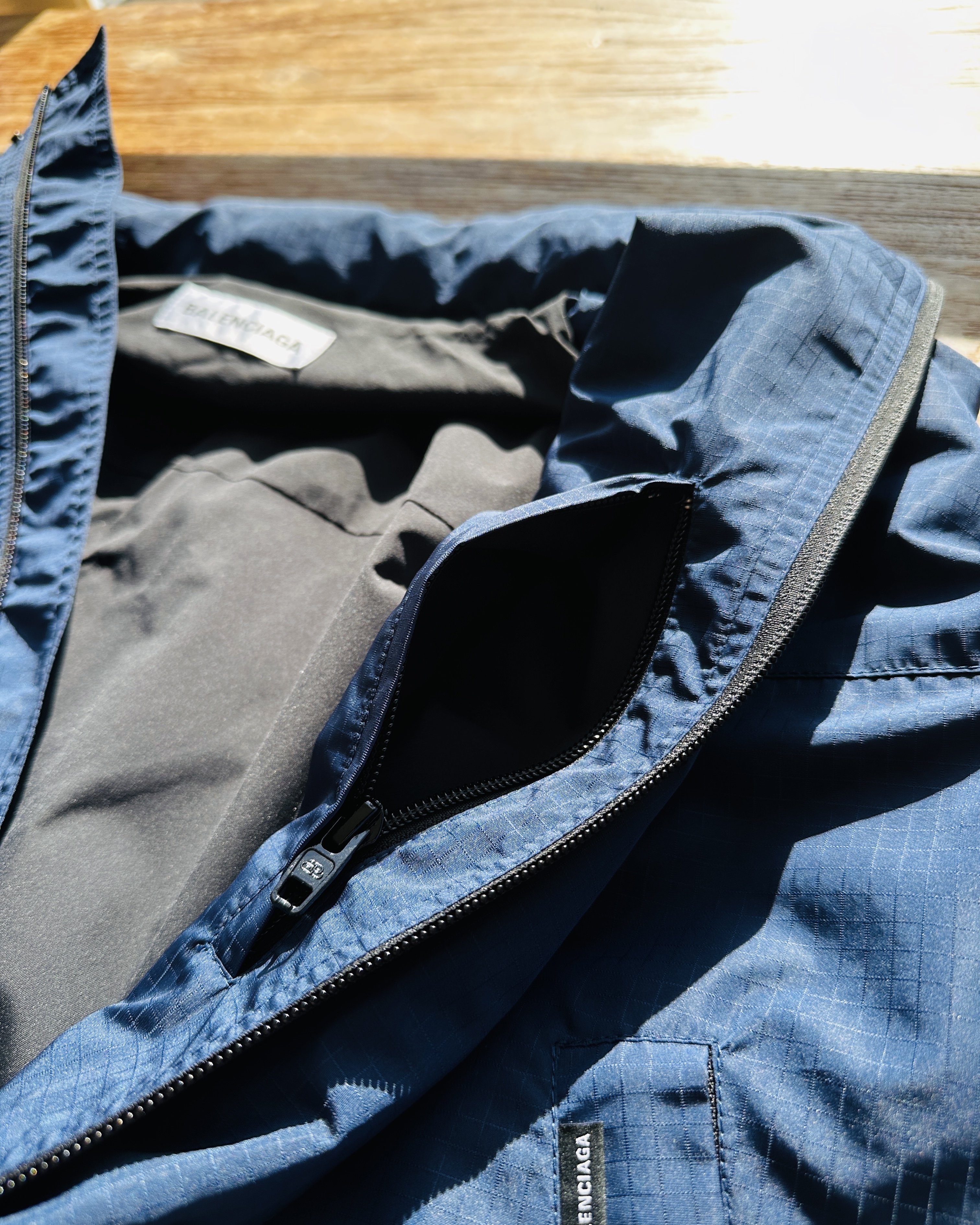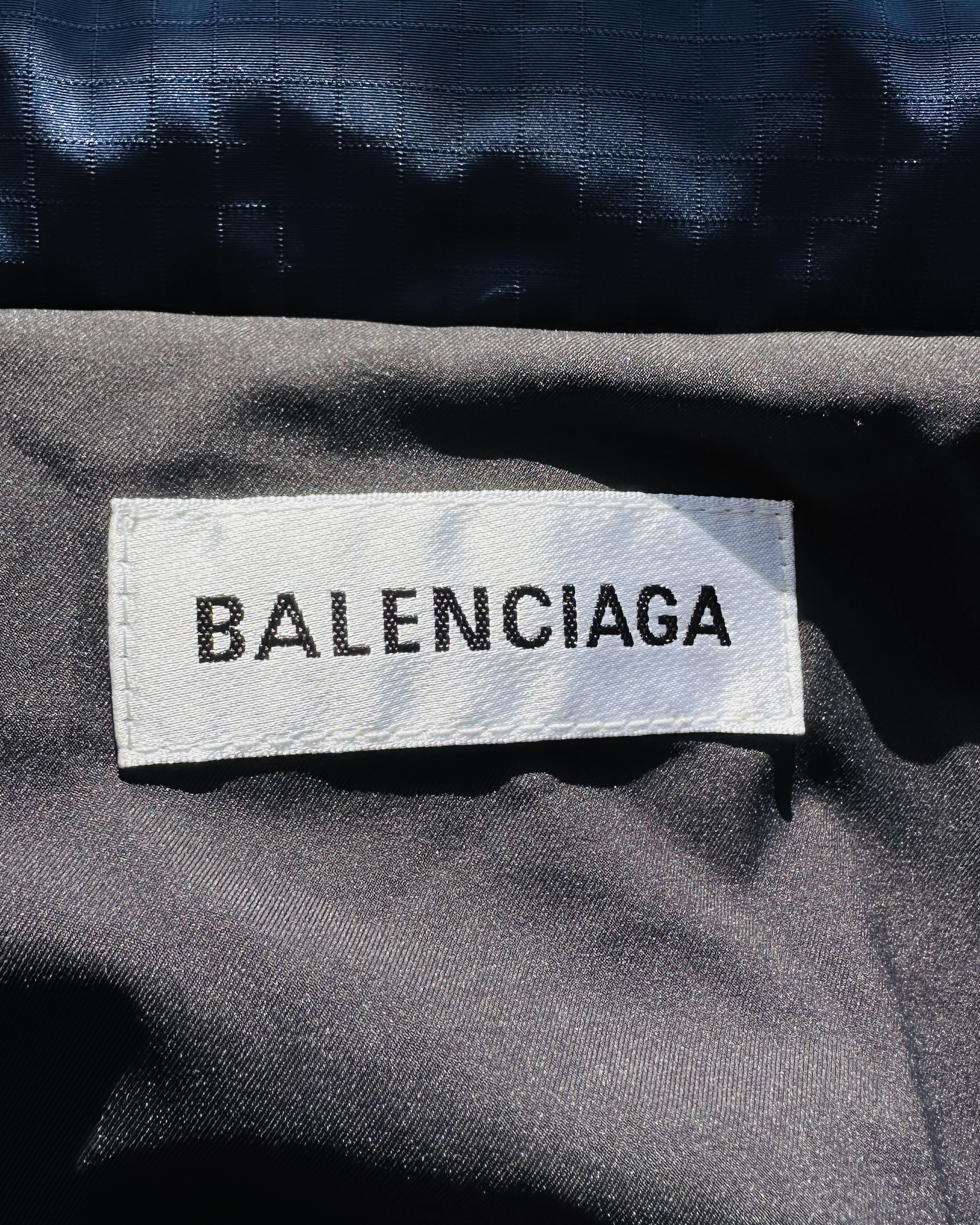又一件用背脊唱情歌嘅作品🎤。正面以為佢係白蘭氏近年見慣見熟嘅例牌oversized風褸,然而呢件2020秋冬之作嘅重頭戲喺背脊🤡 價錢:HK$2,500 品牌:Balenciaga 尺碼:FR 34 / XS 尺寸:64cm (drop shoulder)|142cm (胸-zipped)|100cm+ (腰-zipped)|49cm (袖)|60cm (長) 註:88%新|左膊某角度先見到淡白印|100% polyester|100% polyamide|意大利製 *二手產品難達全新狀態,耗損或歲月痕跡屬正常情況,較明顯/嚴重嘅問題會標明或影底,敬請見諒。 *進入付款程序後,請於10分鐘內完成付款,否則絲統會自動取消訂單。 逢星期四寄出|不設退換或退款|順豐運費到付|只寄香港不寄海外