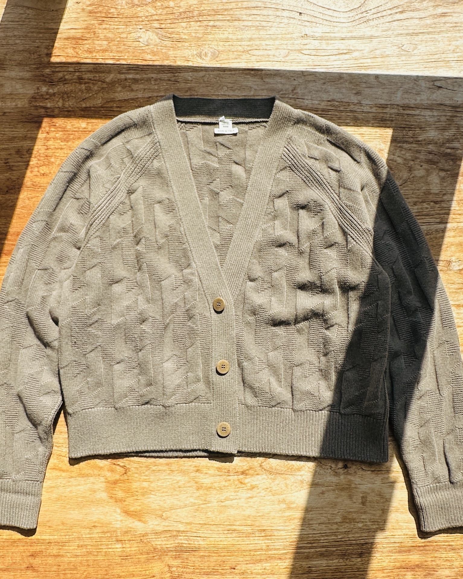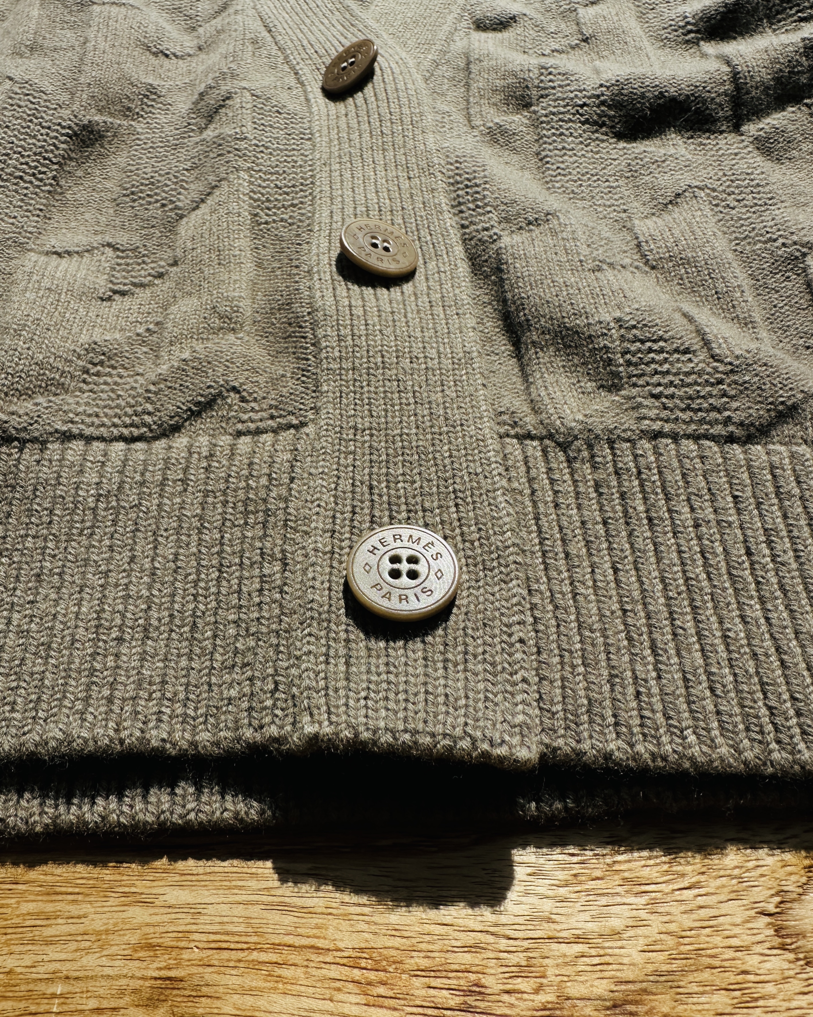 This is筍神speaking🎍:各位二世組,今日我直接金身下凡化成原價HK$13K+嘅Hermes H motif cardigan,為每日努力做人嘅你哋添上暖意。come here let me give you a hug🫂 價錢:HK$4,000 品牌:Hermes 尺碼:FR 40 / M 尺寸:~50cm (肩)|116cm (胸-buttoned)|116cm (腰-buttoned)|61cm (袖) |57cm (長) 註:88%新|100% wool|87% virgin wool + 12% polyamide + 1% elastane|意大利製 *二手產品難達全新狀態,耗損或歲月痕跡屬正常情況,較明顯/嚴重嘅問題會標明或影底,敬請見諒。 *進入付款程序後,請於10分鐘內完成付款,否則絲統會自動取消訂單。 逢星期四寄出|不設退換或退款|順豐運費到付|只寄香港不寄海外
