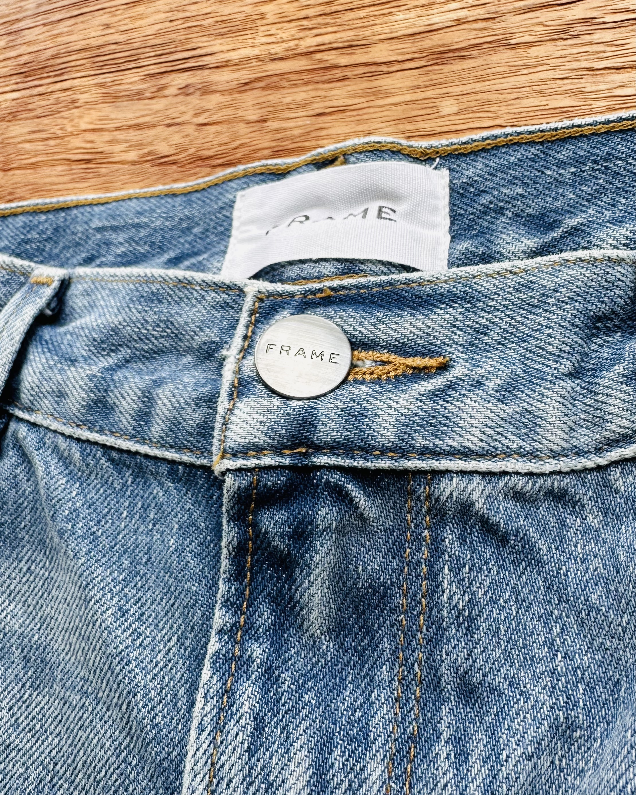 品牌:Frame 尺碼:25 尺寸:80cm (低腰)|92cm (臀)|32cm (長) 註:83%新|背面唔起眼淡淡|100% cotton|墨西哥製 *二手產品難達全新狀態,耗損或歲月痕跡屬正常情況,較明顯/嚴重嘅問題會標明或影底,敬請見諒。 *進入付款程序後,請於10分鐘內完成付款,否則絲統會自動取消訂單。 逢星期四寄出|不設退換或退款|順豐運費到付|只寄香港不寄海外