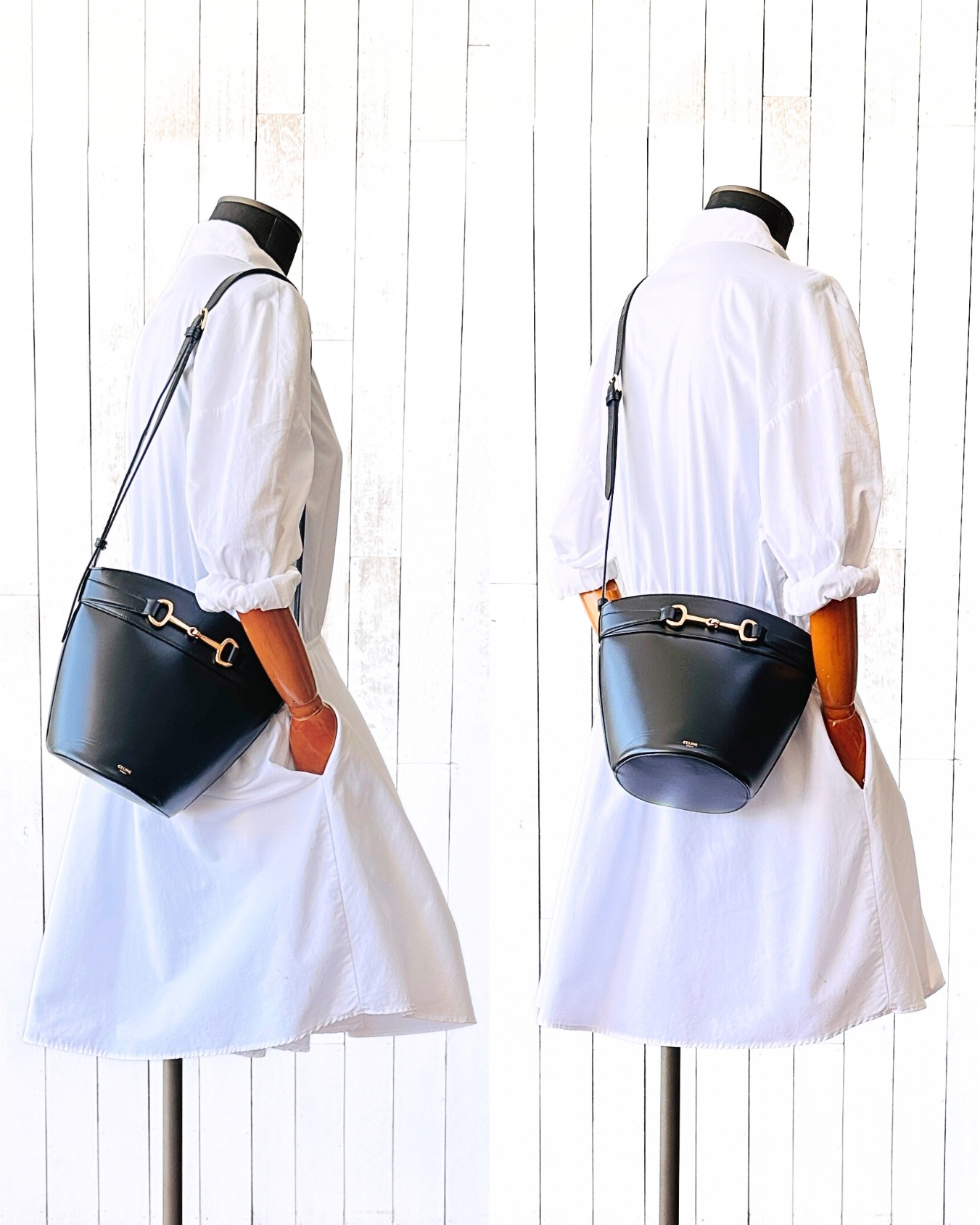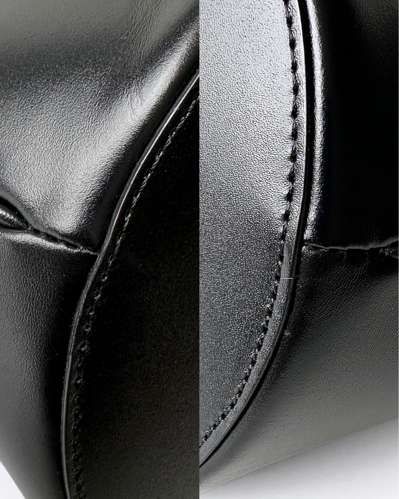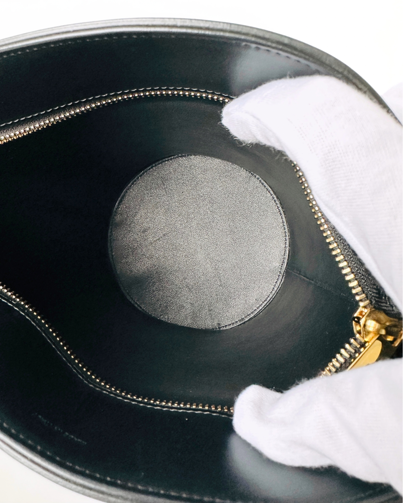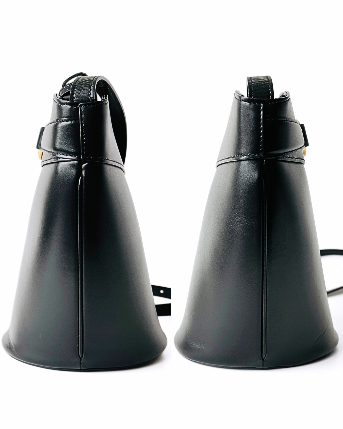 Celine Crecy Bucket Bag,2020春夏Hedi Slimane入主品牌後嘅袋款,重點係為自己吸豬仔印🐽,盡量洗走前朝Phoebe Philo盛世嘅光芒同套路。屬超高難度動作🧗🏻♀️,當年原價HK$15K。 難呀!Phoebe嘅方正利落線條太成功,Hedi必須開另一範,琢磨品牌歷史,攞返60年代Celine嘅horsebit扣出嚟,改良吓再砌落Phoebe少用嘅圓形bucket輪廓,幫Old Celine班忠粉搣甩鋪癮先🧟♀️ 撞鬼鋪癮甩咗開始對New Celine有好感嘅時候,Hedi又走咗,又要重新適應新主Michael Rider *此包包已獲LVMH全力支持嘅AI真偽鑑證系統鑑定為真貨。證書連結:cert.entrupy.com/6TR224G 參考Vestiaire二手價:HK$14,928 參考Brand Off二手價:HK$8,980 *有興趣想睇大啲/清楚啲嘅相就whatsapp我哋啦! 價錢:HK$5,000 品牌:Celine Date Code: S-CU-4129 (2019) 尺寸:15cm (底直徑)|21cm (高)|36-50cm (袋頂至肩帶) 註:very good condition|正面下方logo附近皮革皺紋|底部唔起眼輕微壓印及花痕|肩帶扣附近皮革翹起但用嘅時候睇唔到,而且可被壓返平|內籠底部花痕|有塵袋|意大利製 *二手產品難達全新狀態,耗損或歲月痕跡屬正常情況,較明顯/嚴重嘅問題會標明或影底,敬請見諒。 *進入付款程序後,請於10分鐘內完成付款,否則絲統會自動取消訂單。 逢星期四寄出|不設退換或退款|順豐運費到付|只寄香港不寄海外