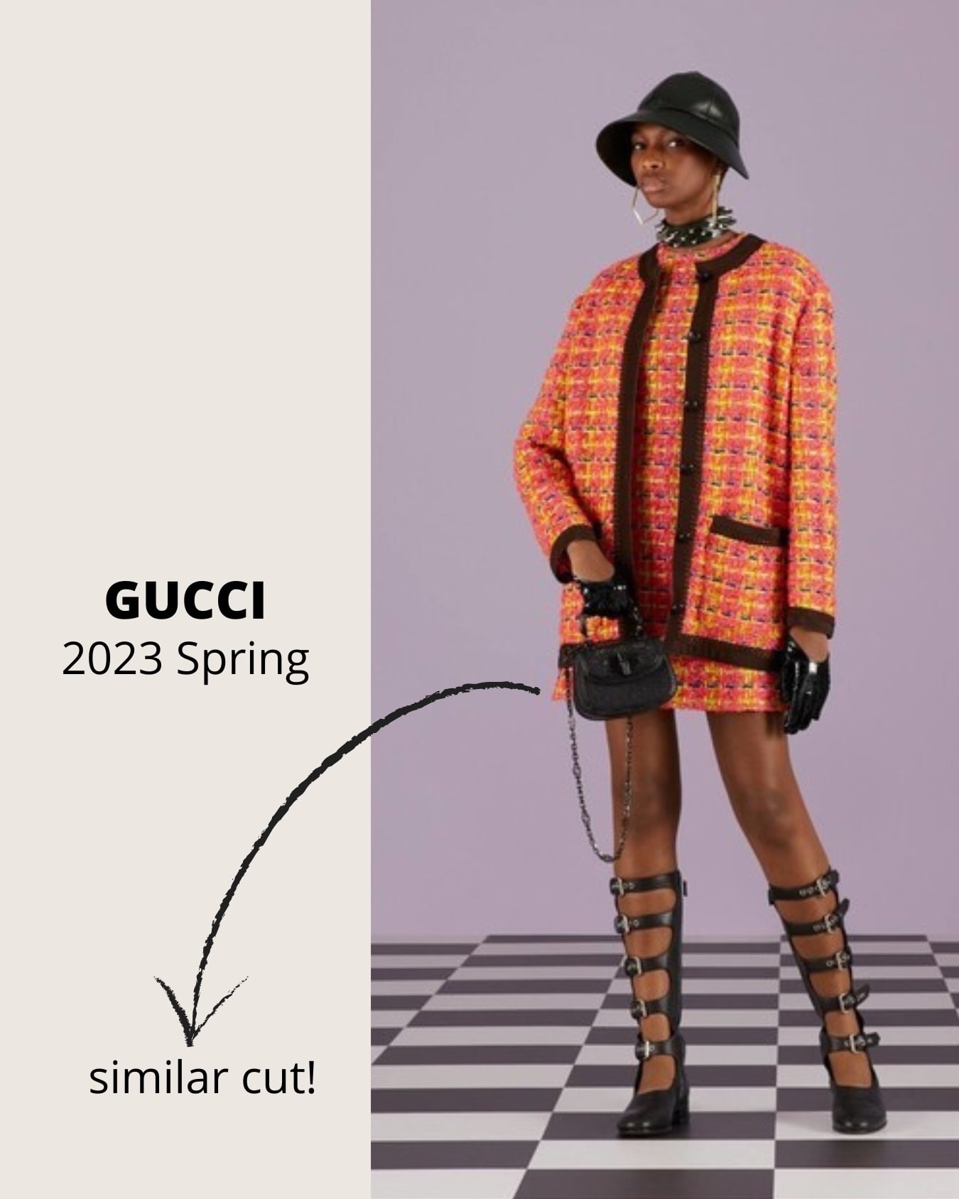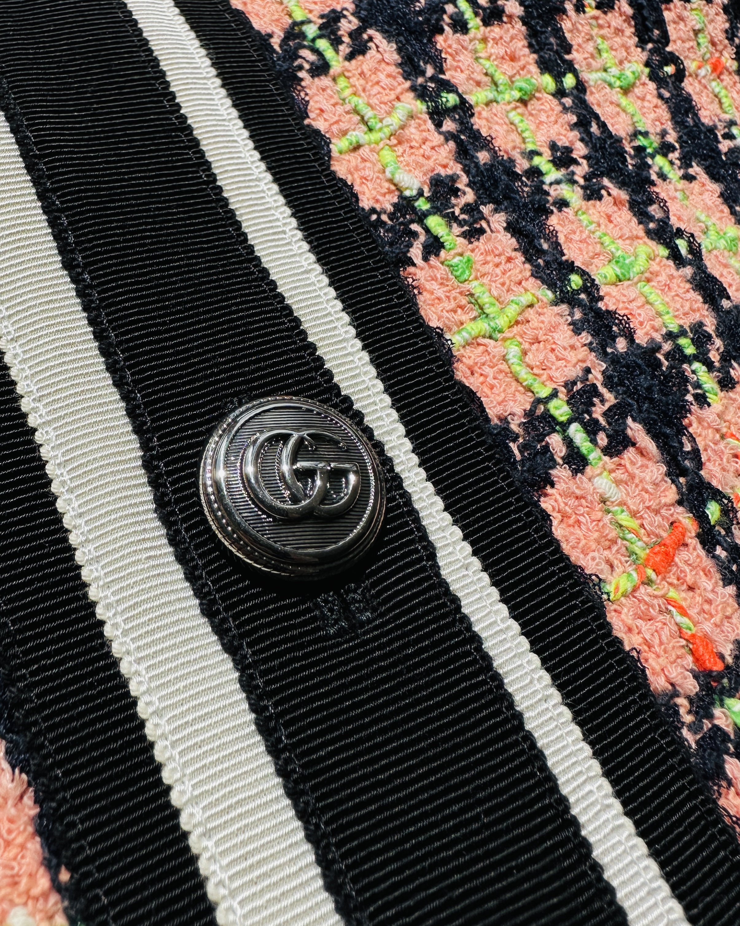 2023春夏原價HK$32,766,不過呢件係VIP訂製版,剪裁保留,tweed布同細節重新裝嵌雕花,全球唯一,再貴啲咁啦💅🏻 價錢:HK$3,200 品牌:Gucci 尺碼:IT 36 / 155/80Y / XS-S 尺寸:43cm (肩)|102cm (胸-buttoned)|100cm+ (腰-buttoned)|58cm (袖)|71cm (長) 註:90%新|68% cotton + 25% polyamide + 6% acrylic + 1% wool|50% cotton + 50% viscose|100% viscose|意大利製 *二手產品難達全新狀態,耗損或歲月痕跡屬正常情況,較明顯/嚴重嘅問題會標明或影底,敬請見諒。 *進入付款程序後,請於10分鐘內完成付款,否則絲統會自動取消訂單。 逢星期四寄出|不設退換或退款|順豐運費到付|只寄香港不寄海外