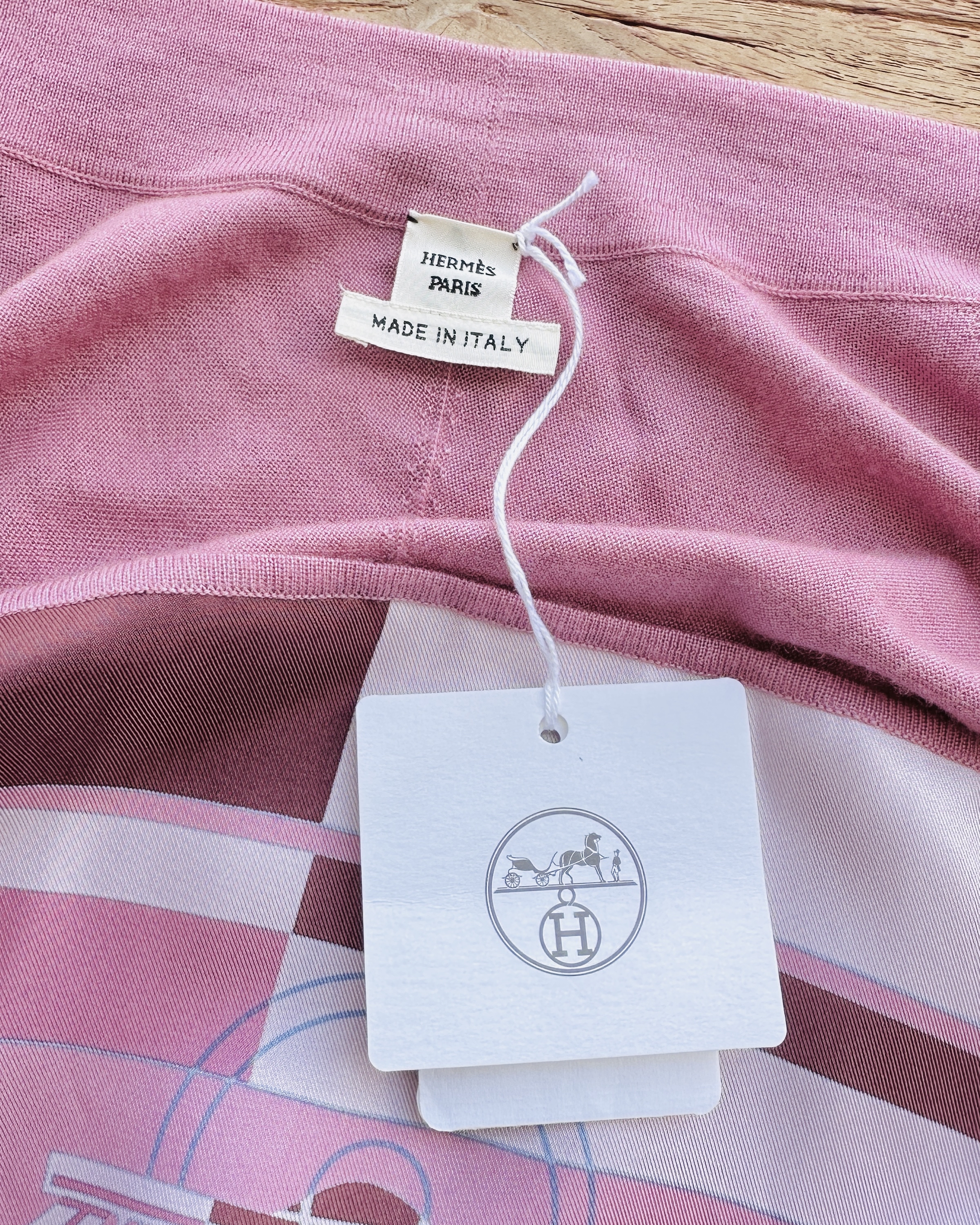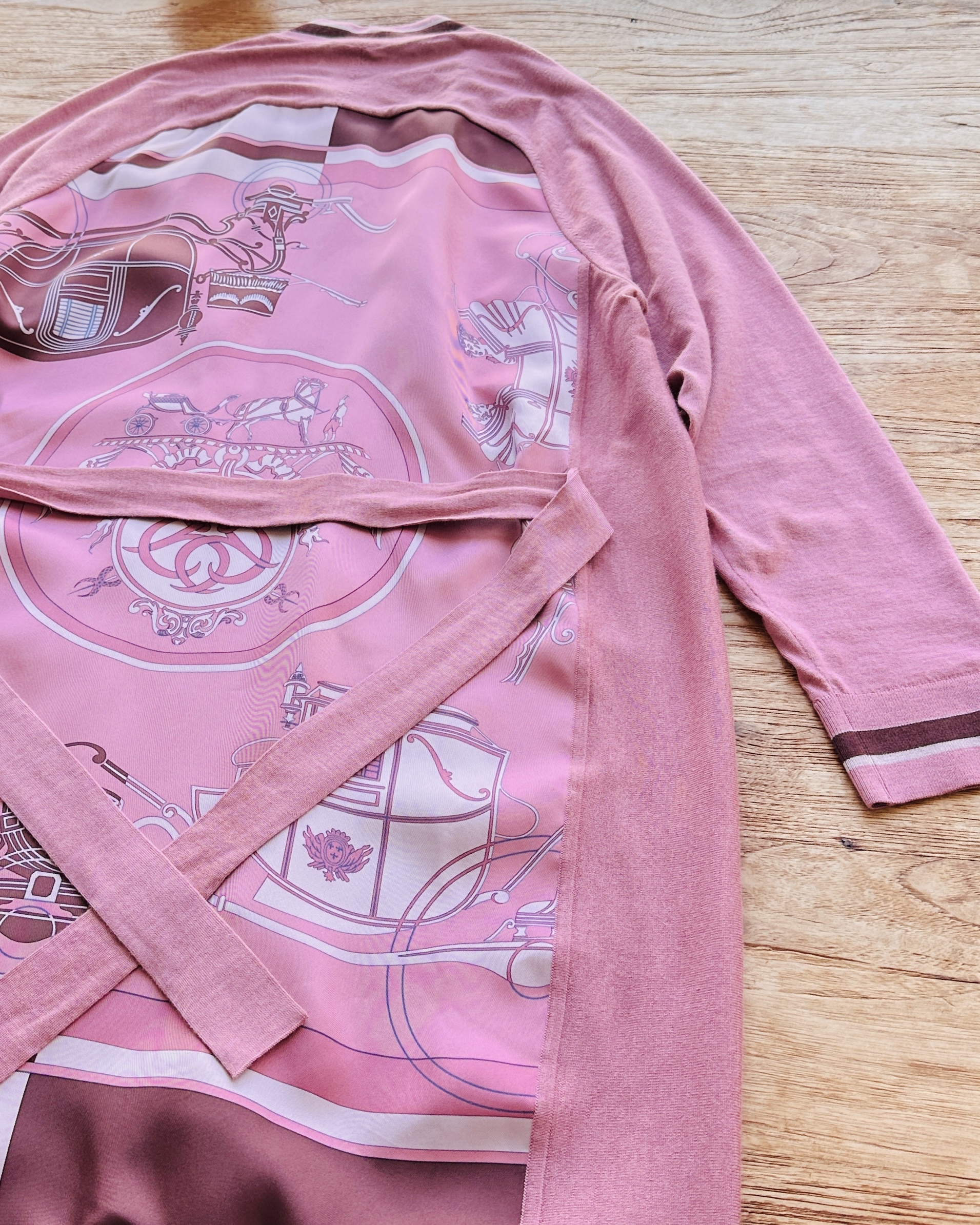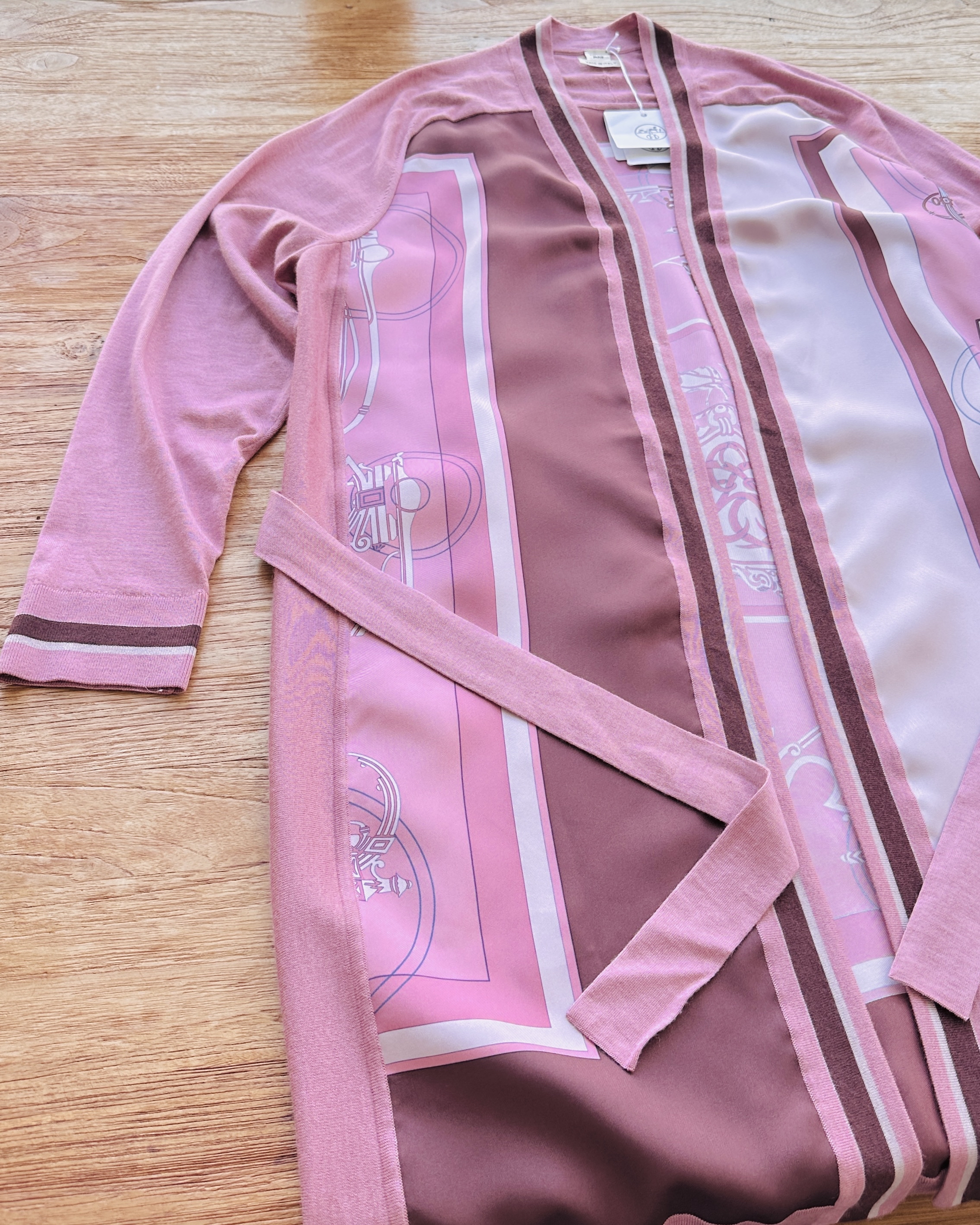 恭迎Hermes cashmere-silk twillaine cardigan🐦🔥!冇錯,就係傳說中郁啲都HK$30K+嘅twillaine,鬼叫佢將品牌最馳名嘅絲巾同傲視同儕嘅cashmere搓埋一碟,呢件仲要係2023春夏未剪牌嘅💅🏻 價錢:HK$4,200 品牌:Hermes 尺碼:FR 42 / M-L 尺寸:49cm (drop shoulder)|120cm (胸)|120cm (腰-腰帶可綁緊)|100cm+ (臀)|67cm (袖)|95cm (長) 註:全新未剪牌|腰位一處淡漬|100% silk| 50% cashmere + 50% silk|意大利製 *二手產品難達全新狀態,耗損或歲月痕跡屬正常情況,較明顯/嚴重嘅問題會標明或影底,敬請見諒。 *進入付款程序後,請於10分鐘內完成付款,否則絲統會自動取消訂單。 逢星期四寄出|不設退換或退款|順豐運費到付|只寄香港不寄海外