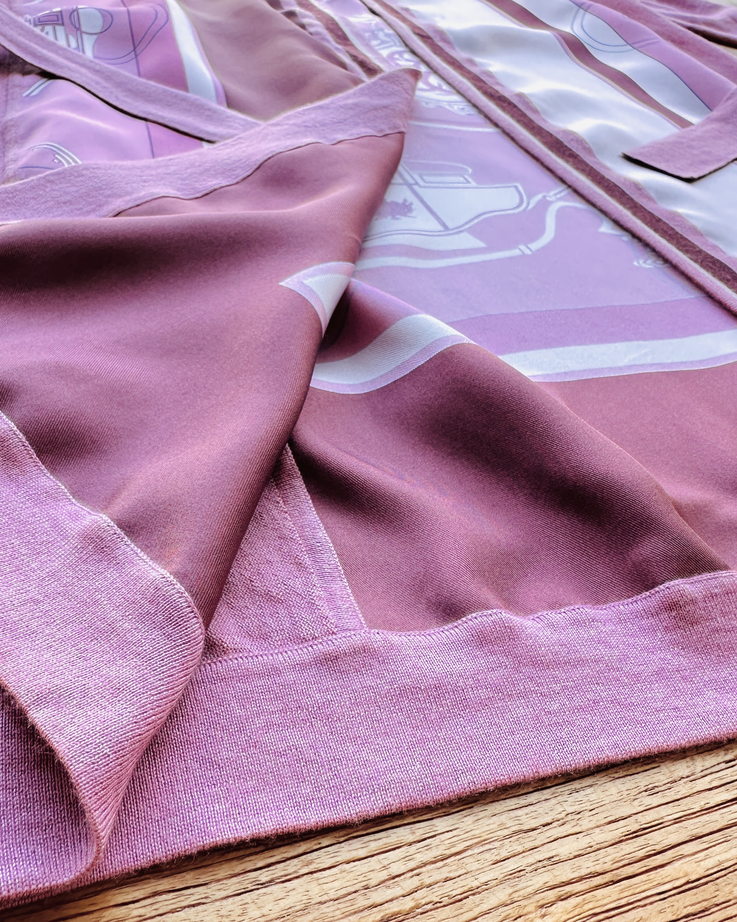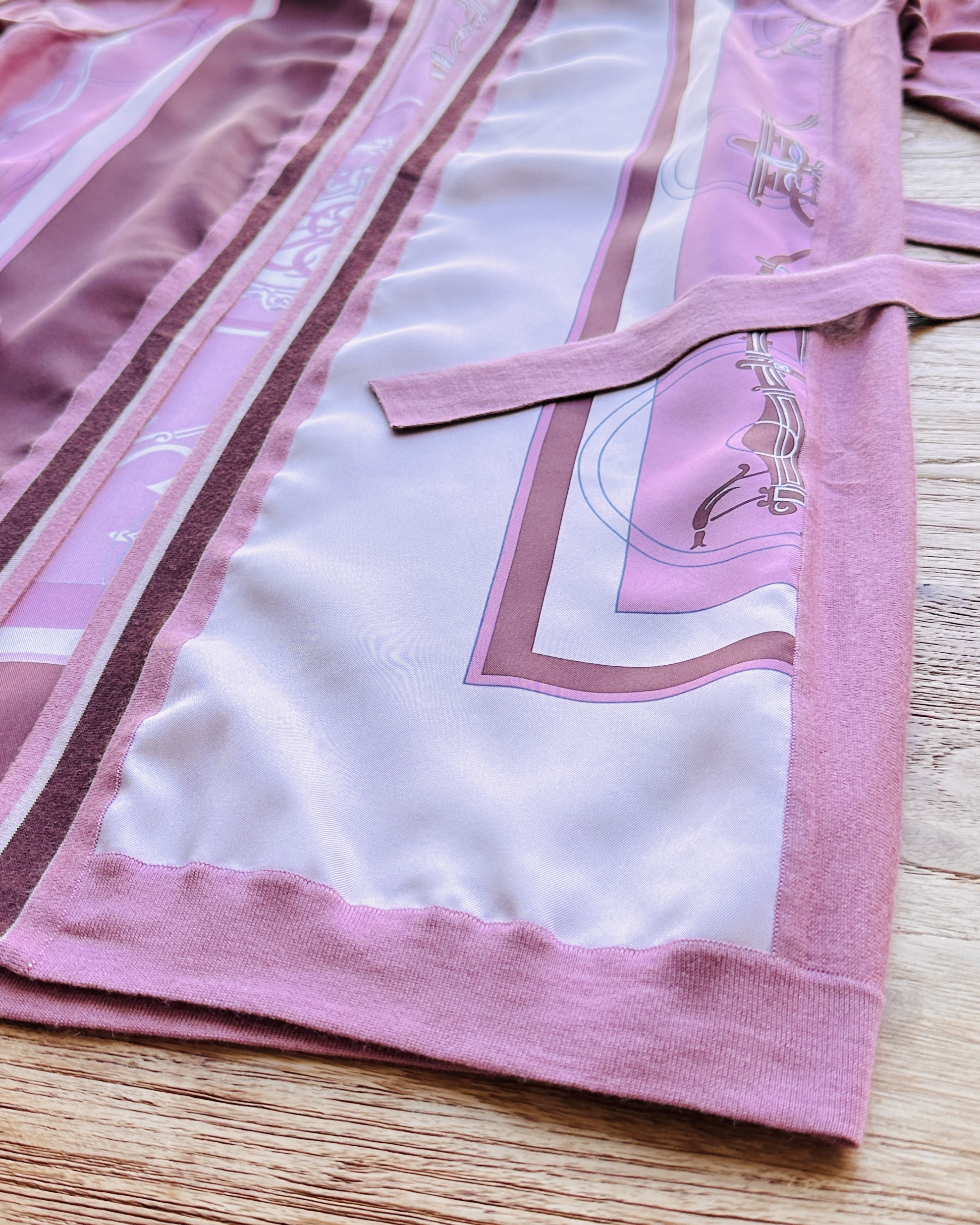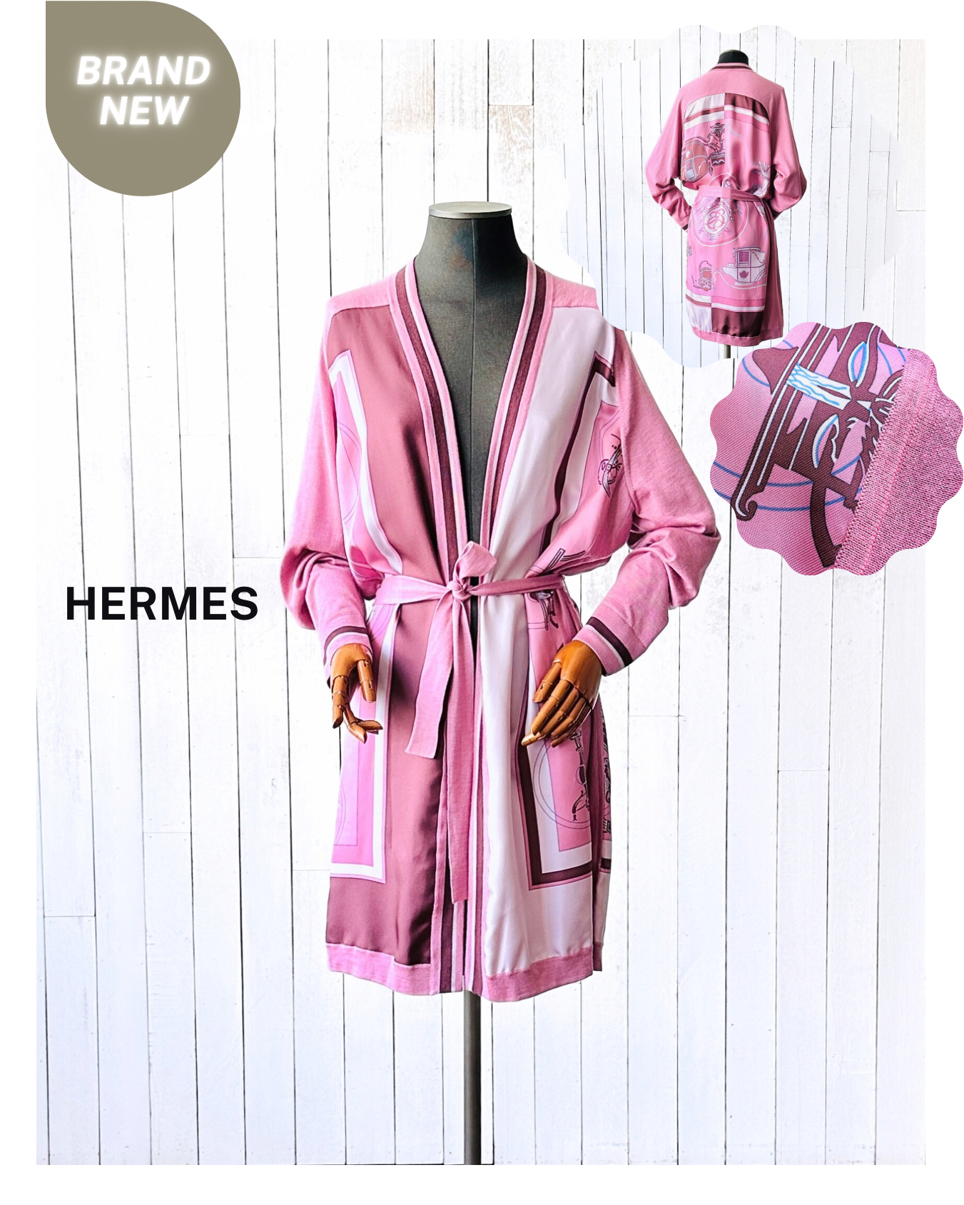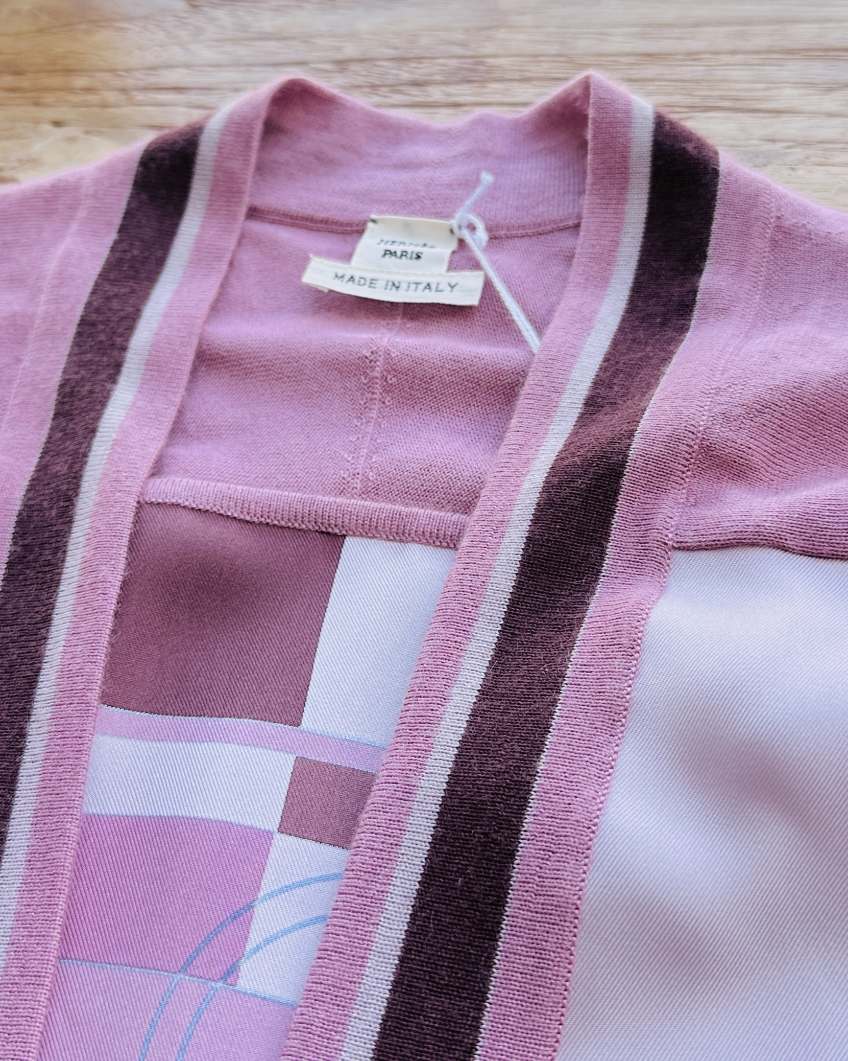 恭迎Hermes cashmere-silk twillaine cardigan🐦🔥!冇錯,就係傳說中郁啲都HK$30K+嘅twillaine,鬼叫佢將品牌最馳名嘅絲巾同傲視同儕嘅cashmere搓埋一碟,呢件仲要係2023春夏未剪牌嘅💅🏻 價錢:HK$4,200 品牌:Hermes 尺碼:FR 42 / M-L 尺寸:49cm (drop shoulder)|120cm (胸)|120cm (腰-腰帶可綁緊)|100cm+ (臀)|67cm (袖)|95cm (長) 註:全新未剪牌|腰位一處淡漬|100% silk| 50% cashmere + 50% silk|意大利製 *二手產品難達全新狀態,耗損或歲月痕跡屬正常情況,較明顯/嚴重嘅問題會標明或影底,敬請見諒。 *進入付款程序後,請於10分鐘內完成付款,否則絲統會自動取消訂單。 逢星期四寄出|不設退換或退款|順豐運費到付|只寄香港不寄海外