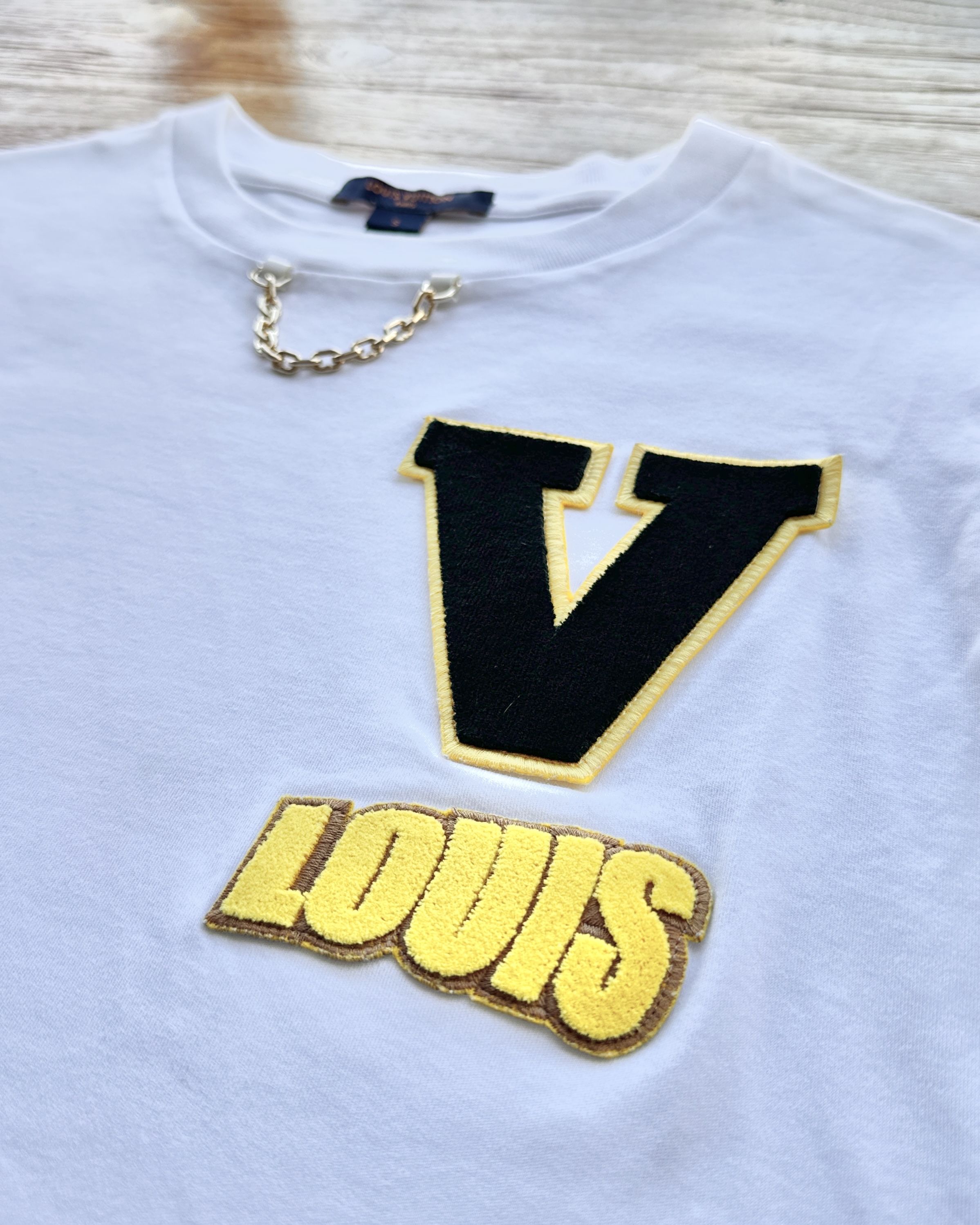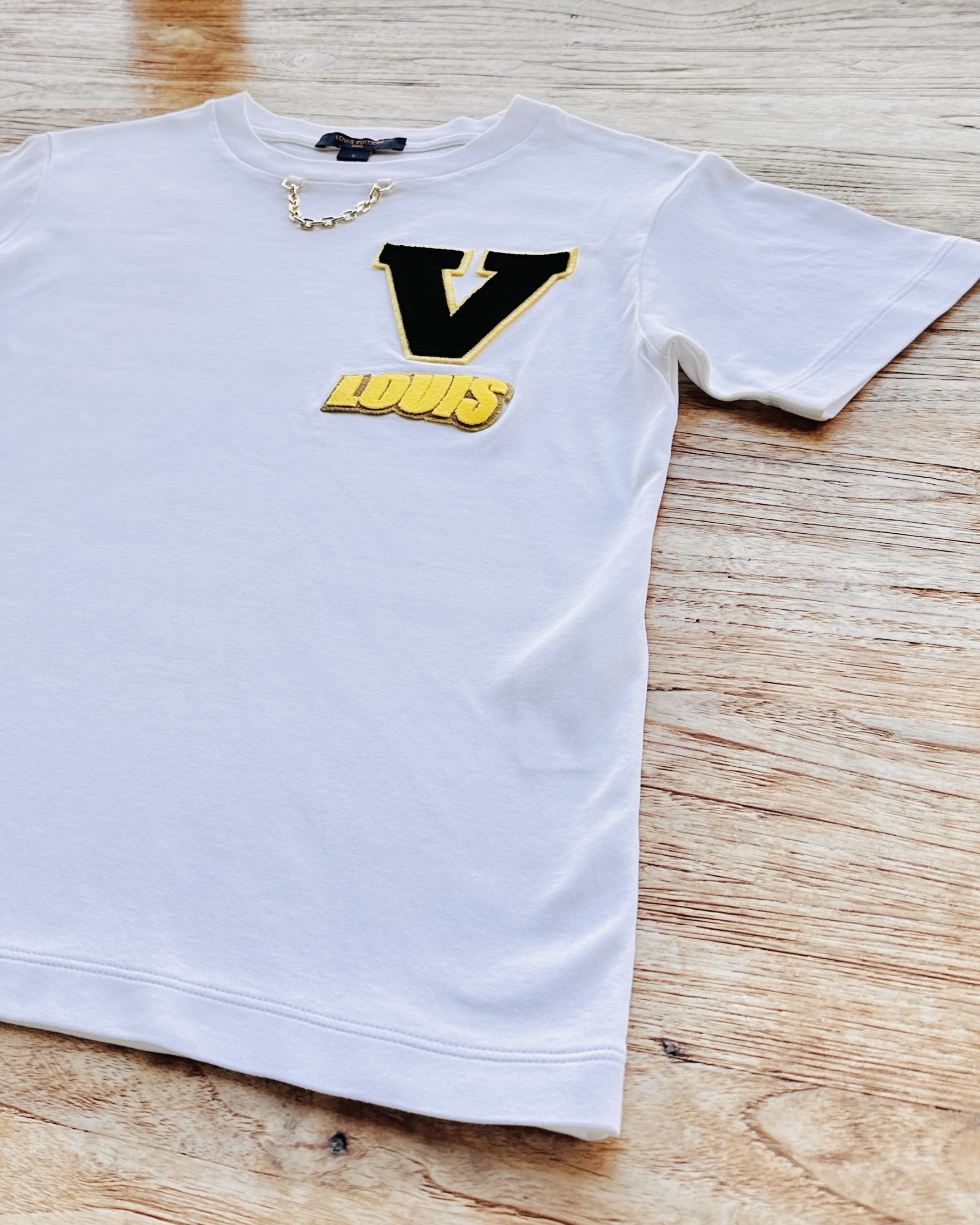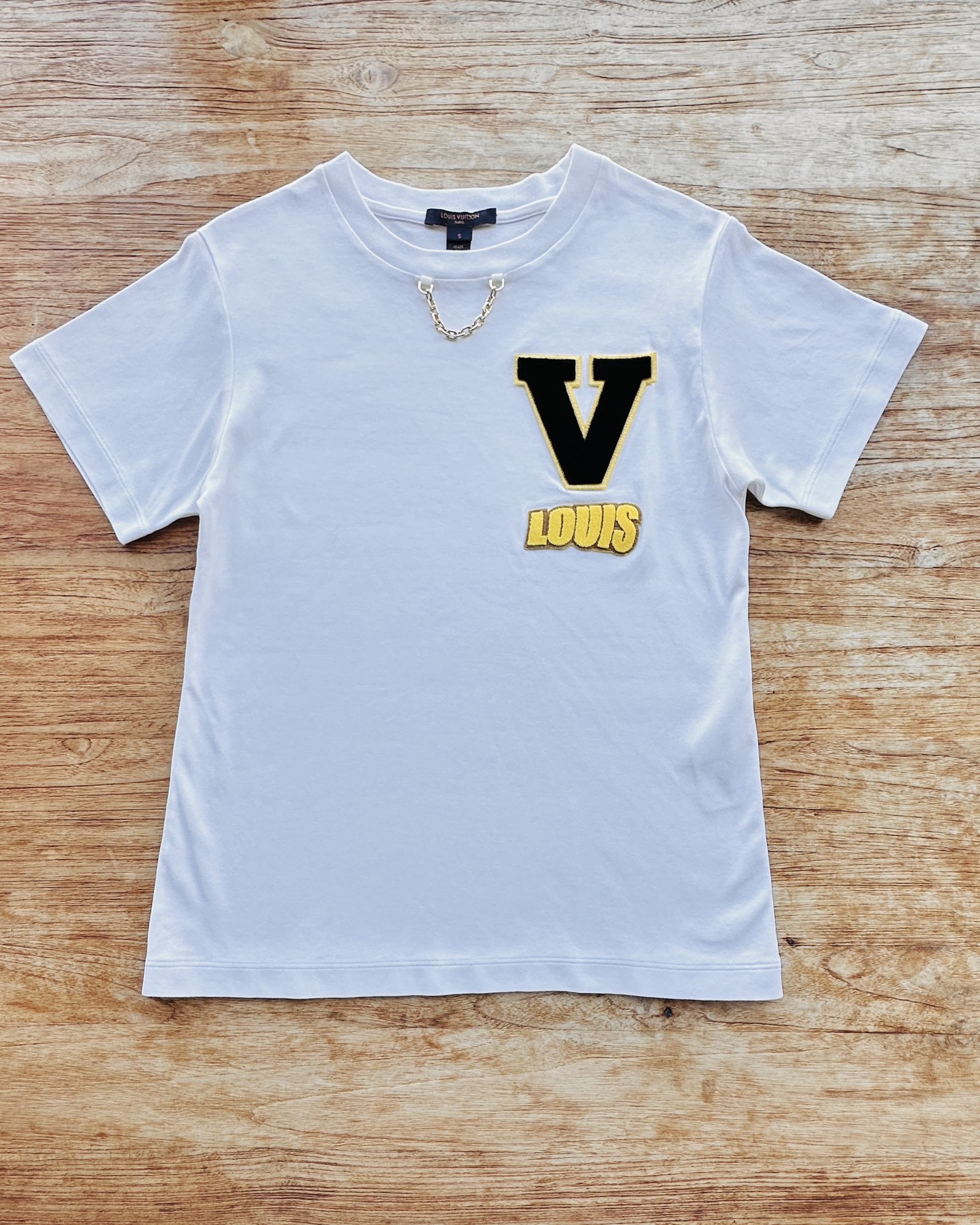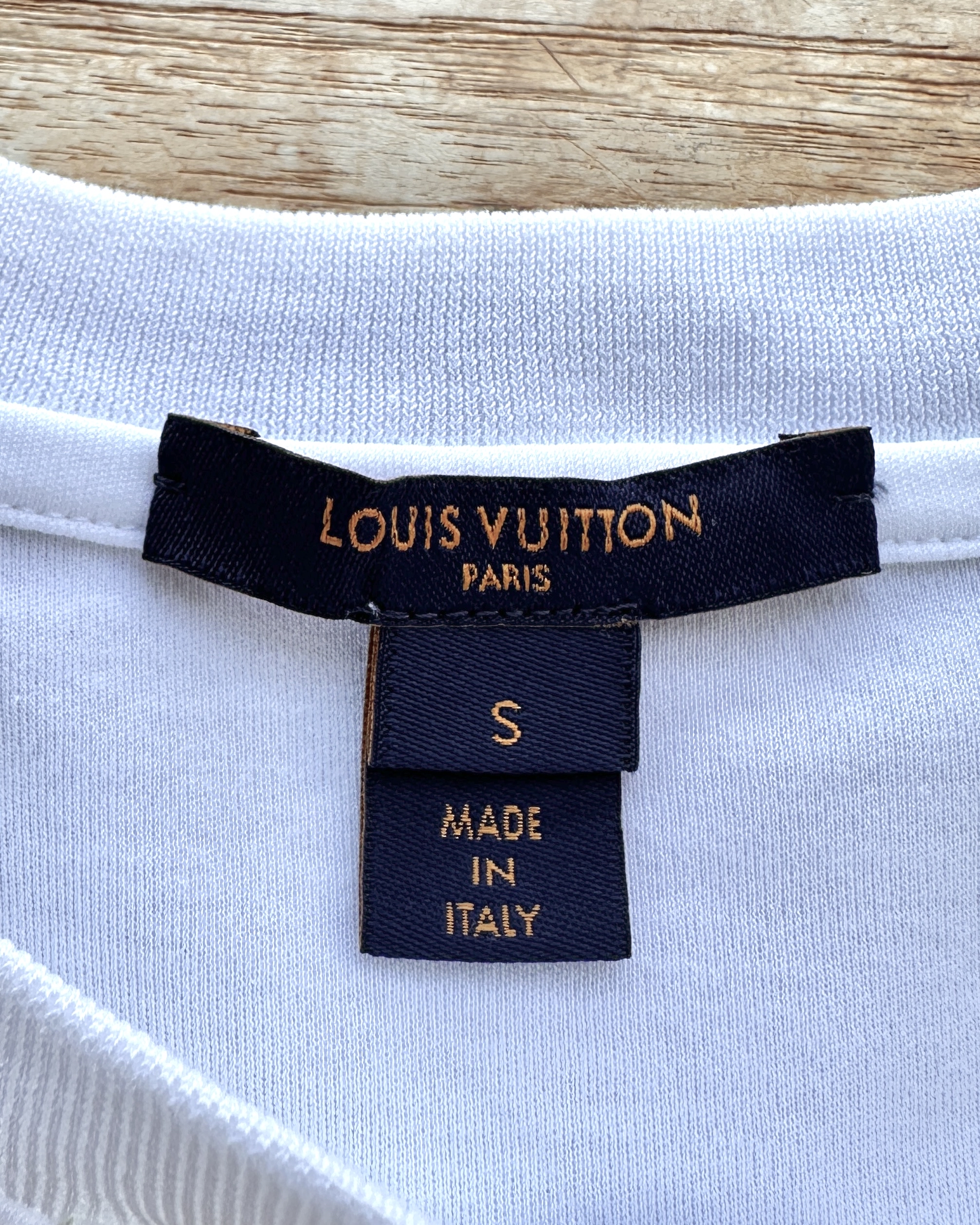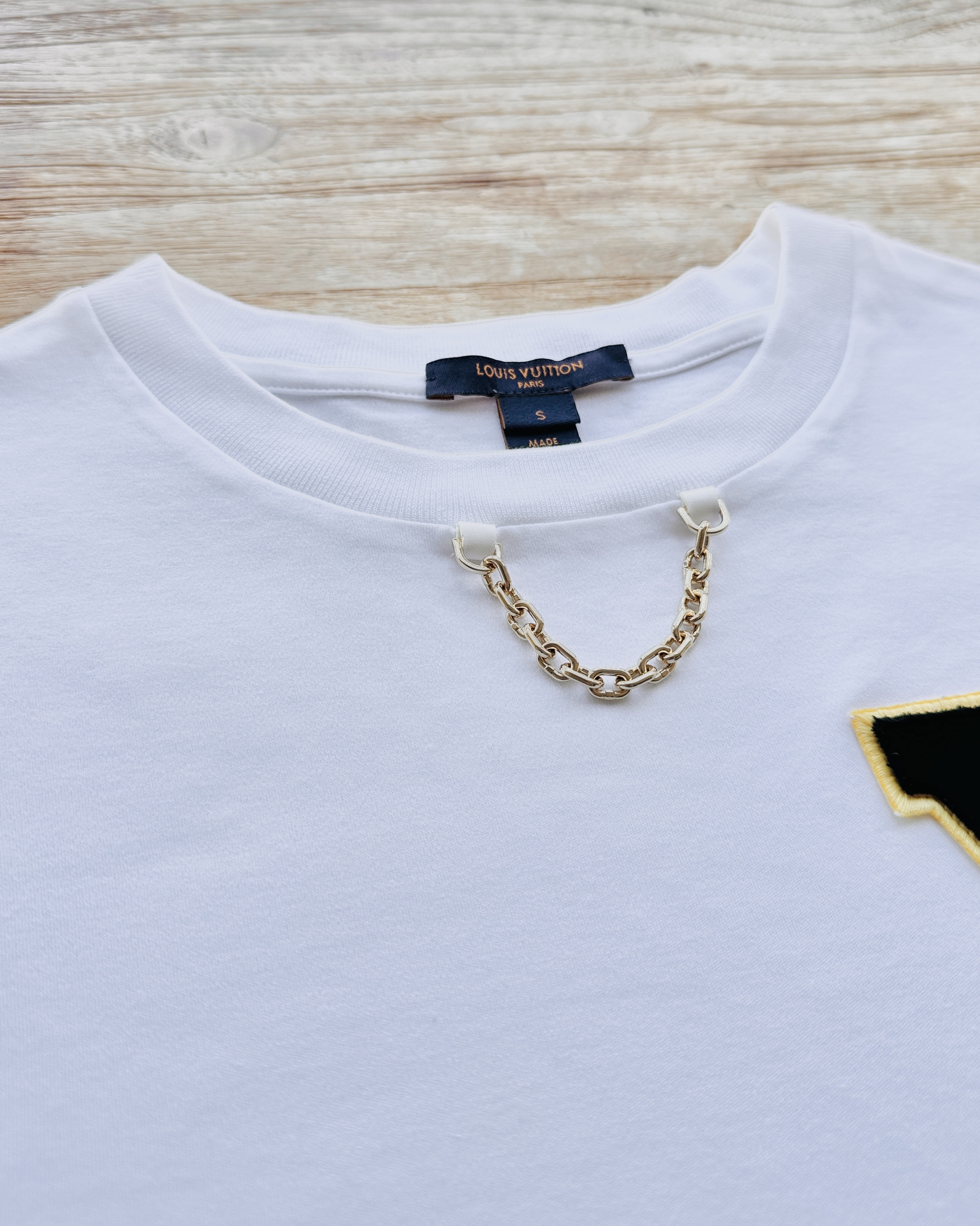 衫領嗰條鏈仔已經成為LV嘅嘜頭⛓️,近幾年經常出現喺品牌各種上衫,呢件tee係2022年春夏嘅,原價HK$8,409🦥 價錢:HK$1,580 品牌:Louis Vuitton 尺碼:S / 160/76A 尺寸:41cm (肩)|88cm (胸)|88cm (腰)|61cm (長) 註:88%新|L字旁唔起眼淡漬|右膊極細粒啡點|100% cotton|意大利製 *二手產品難達全新狀態,耗損或歲月痕跡屬正常情況,較明顯/嚴重嘅問題會標明或影底,敬請見諒。 *進入付款程序後,請於10分鐘內完成付款,否則絲統會自動取消訂單。 逢星期四寄出|不設退換或退款|順豐運費到付|只寄香港不寄海外