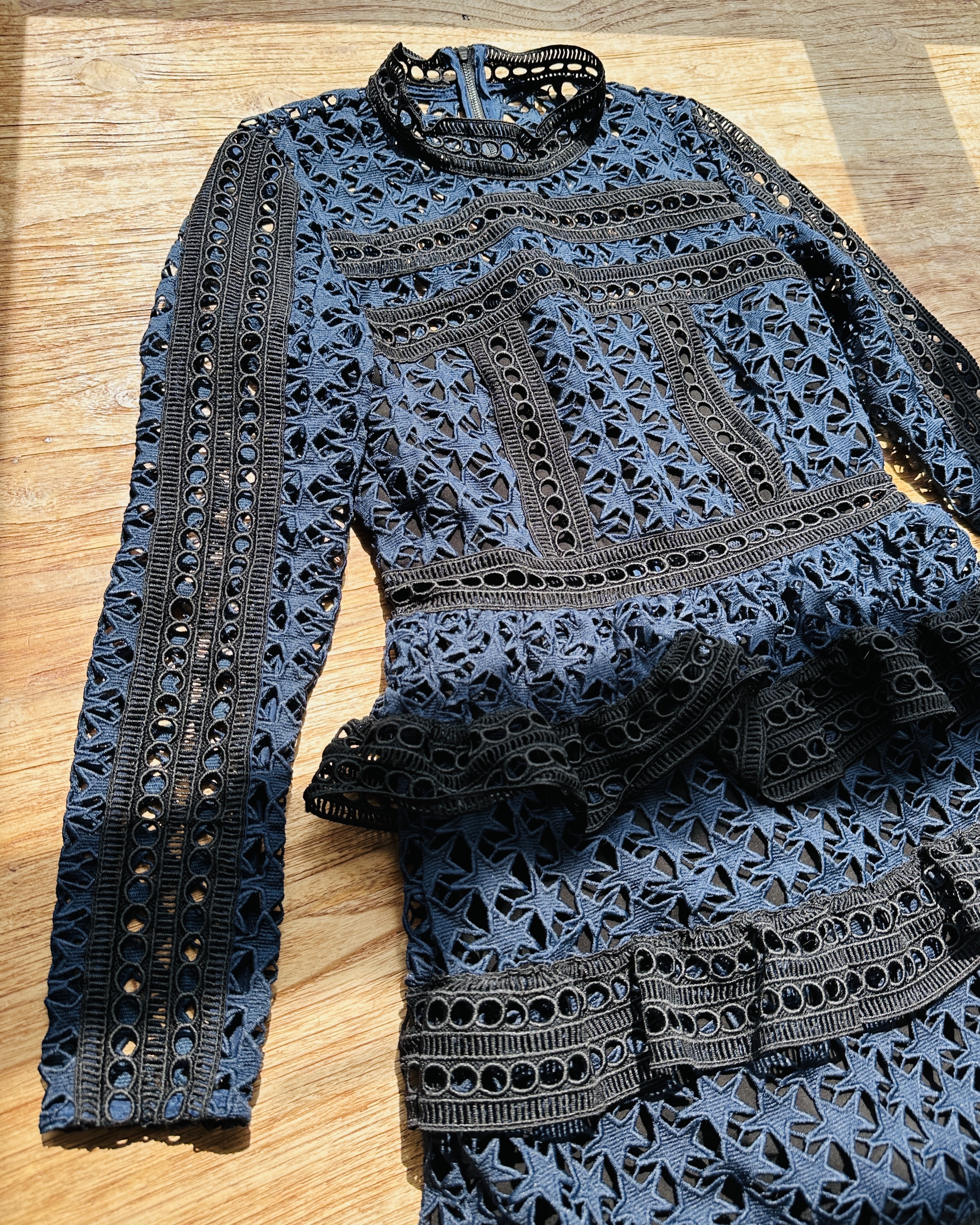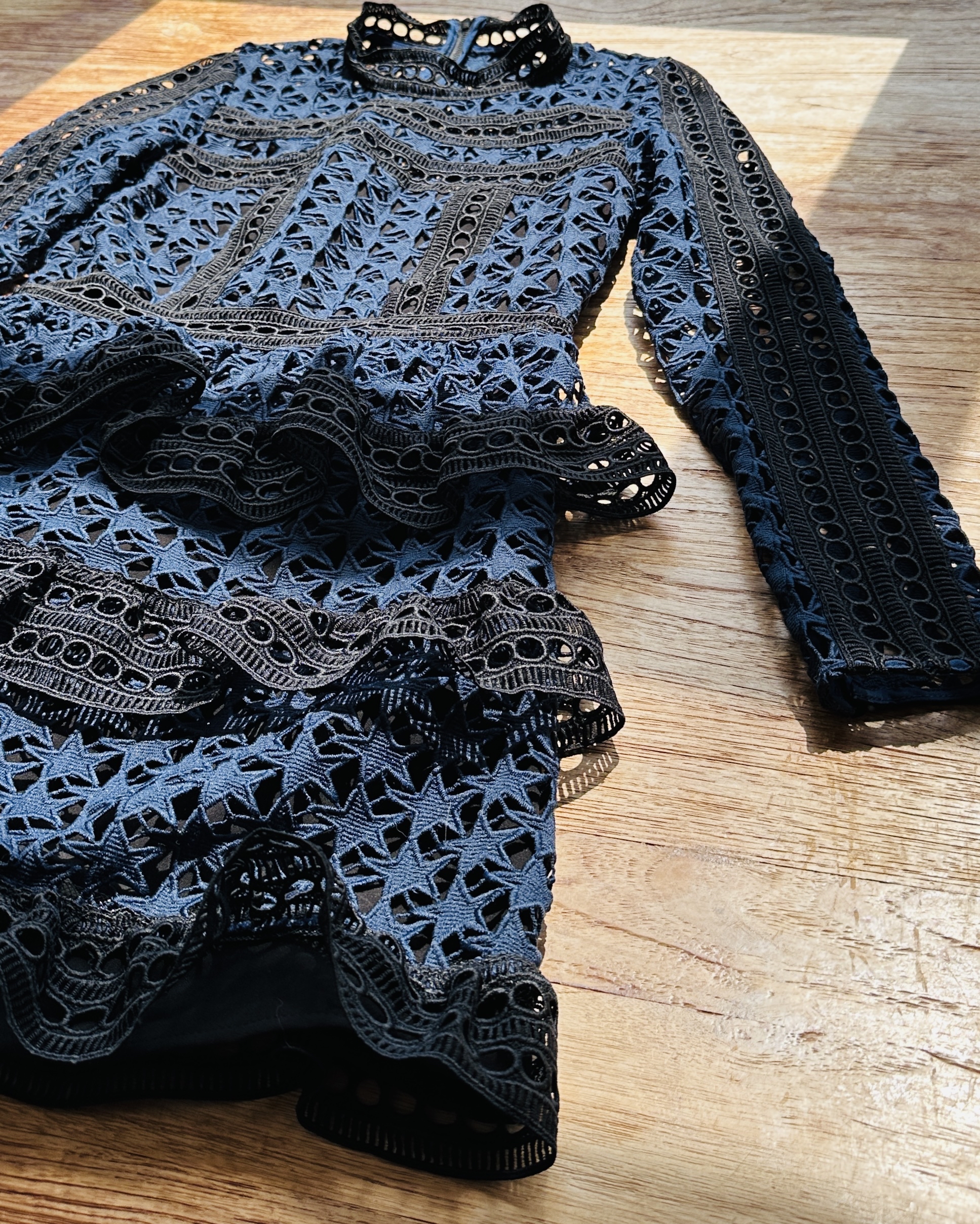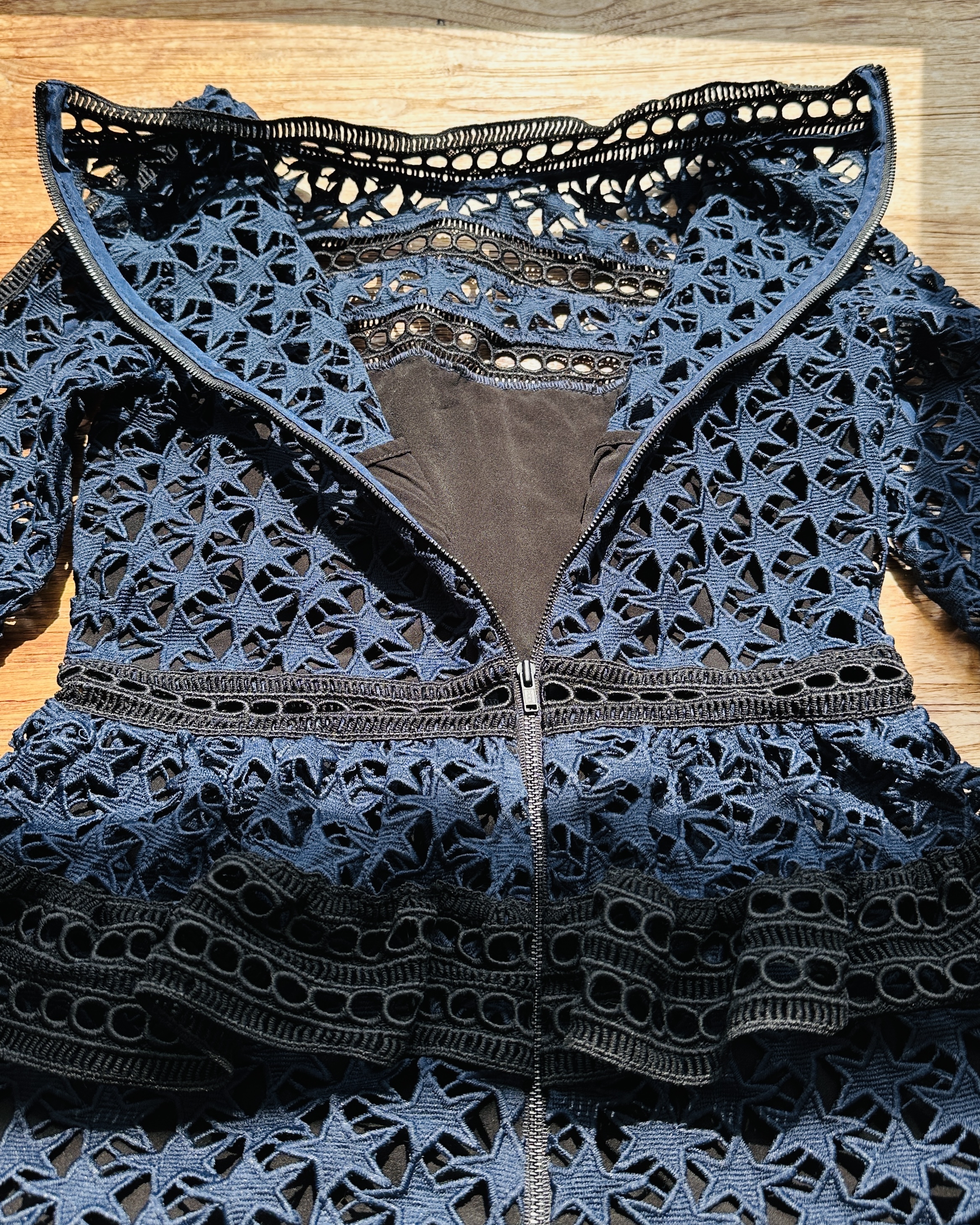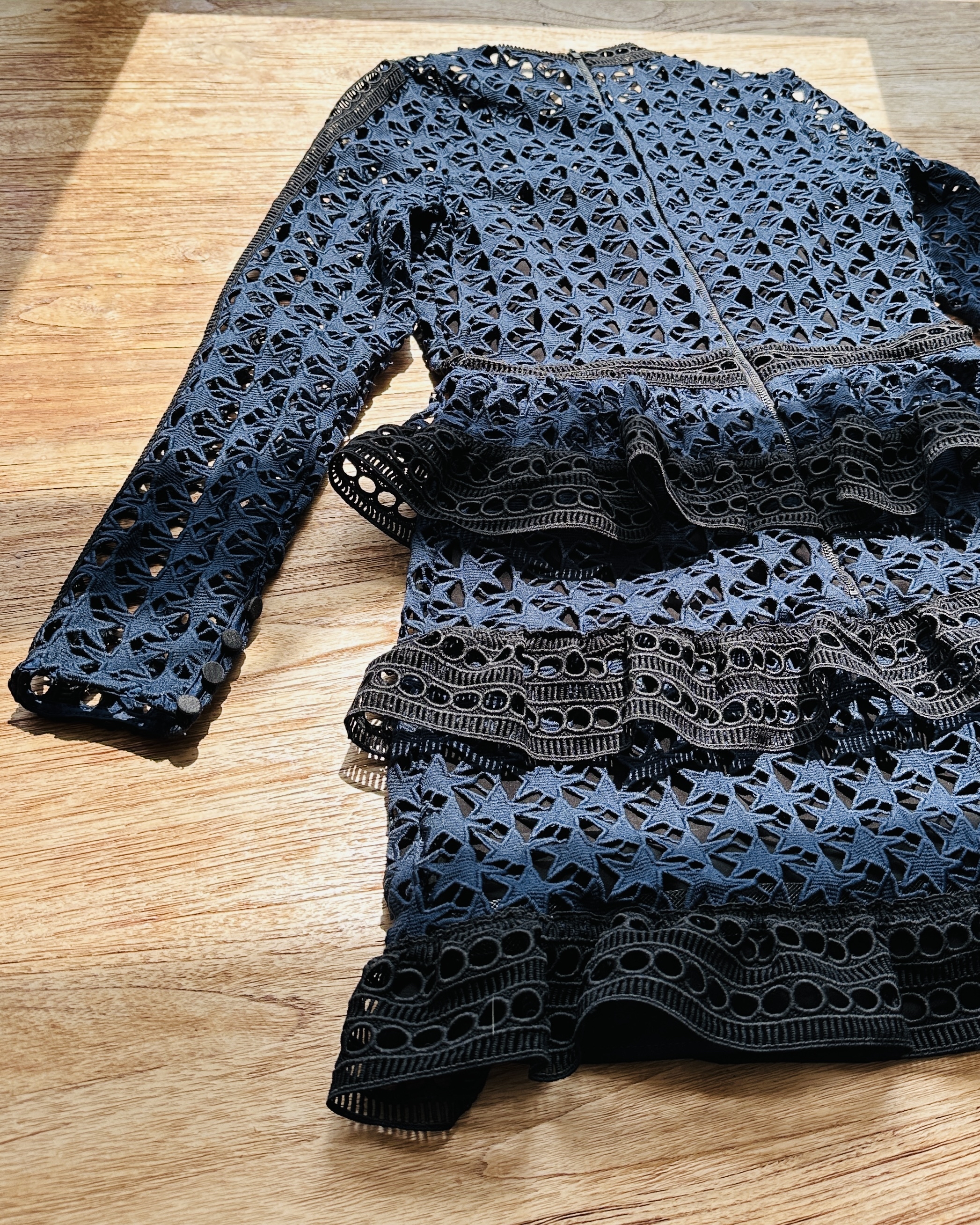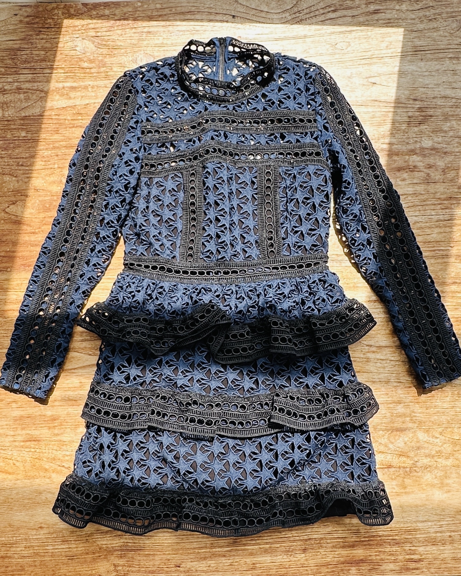 長腿姐姐恩物🦩,加上呢隻貼cut,胸以上同兩臂see through嚟㖭,真係唔係個個carry到🧘🏻♀️。有本事着唔好吝嗇囉baby! 價錢:HK$800 品牌:Self-Portrait 尺碼:UK 8 / US 4 / S 尺寸:36cm (肩)|86cm (胸)|70cm (腰)|88cm (臀)|79cm (長) 註:85%新|右袖口其中一粒鈕圈斷開 (但其他3粒扣到,所以冇影響)| 100% polyester|97% polyester + 3% elastane *二手產品難達全新狀態,耗損或歲月痕跡屬正常情況,較明顯/嚴重嘅問題會標明或影底,敬請見諒。 *進入付款程序後,請於10分鐘內完成付款,否則絲統會自動取消訂單。 逢星期四寄出|不設退換或退款|順豐運費到付|只寄香港不寄海外