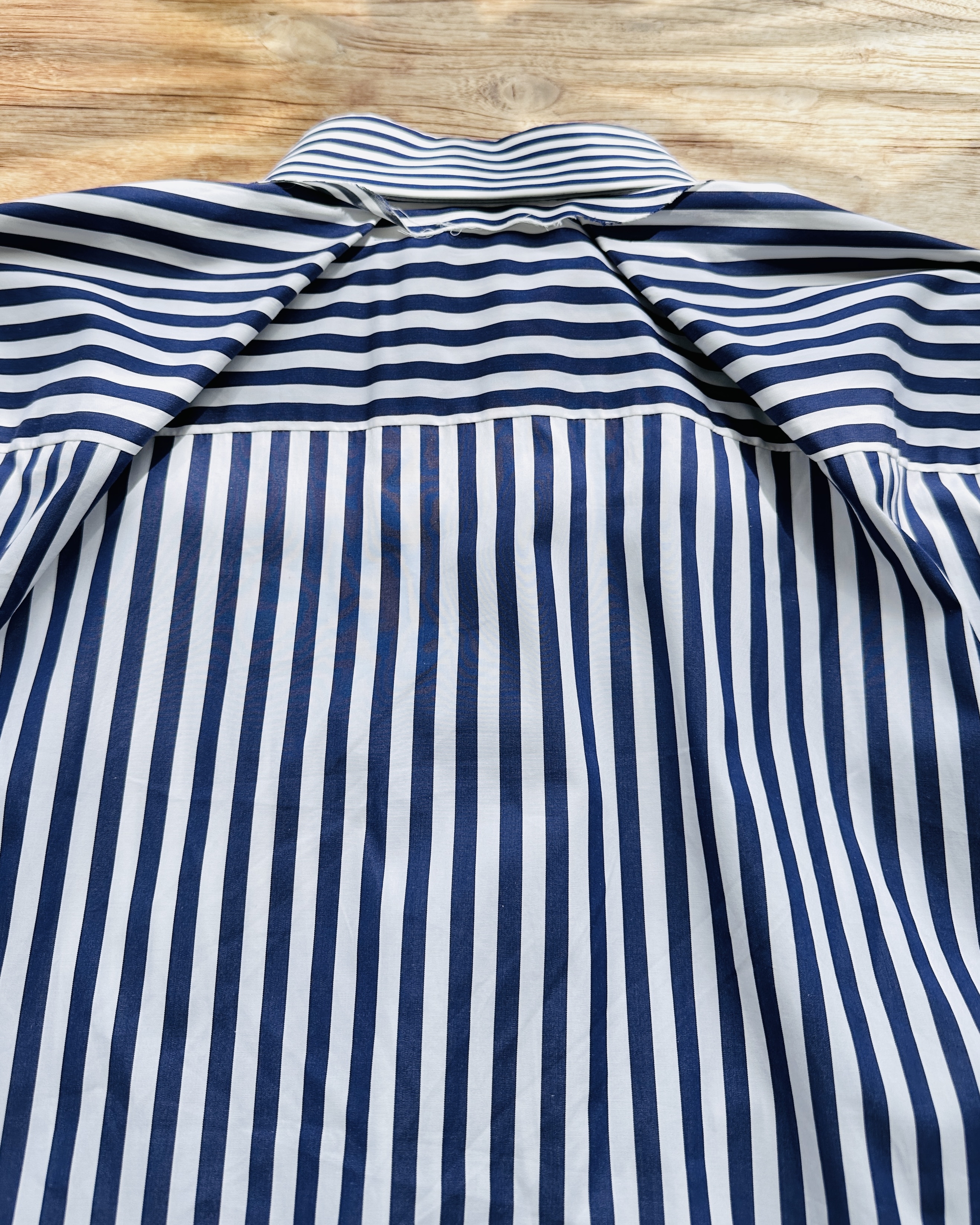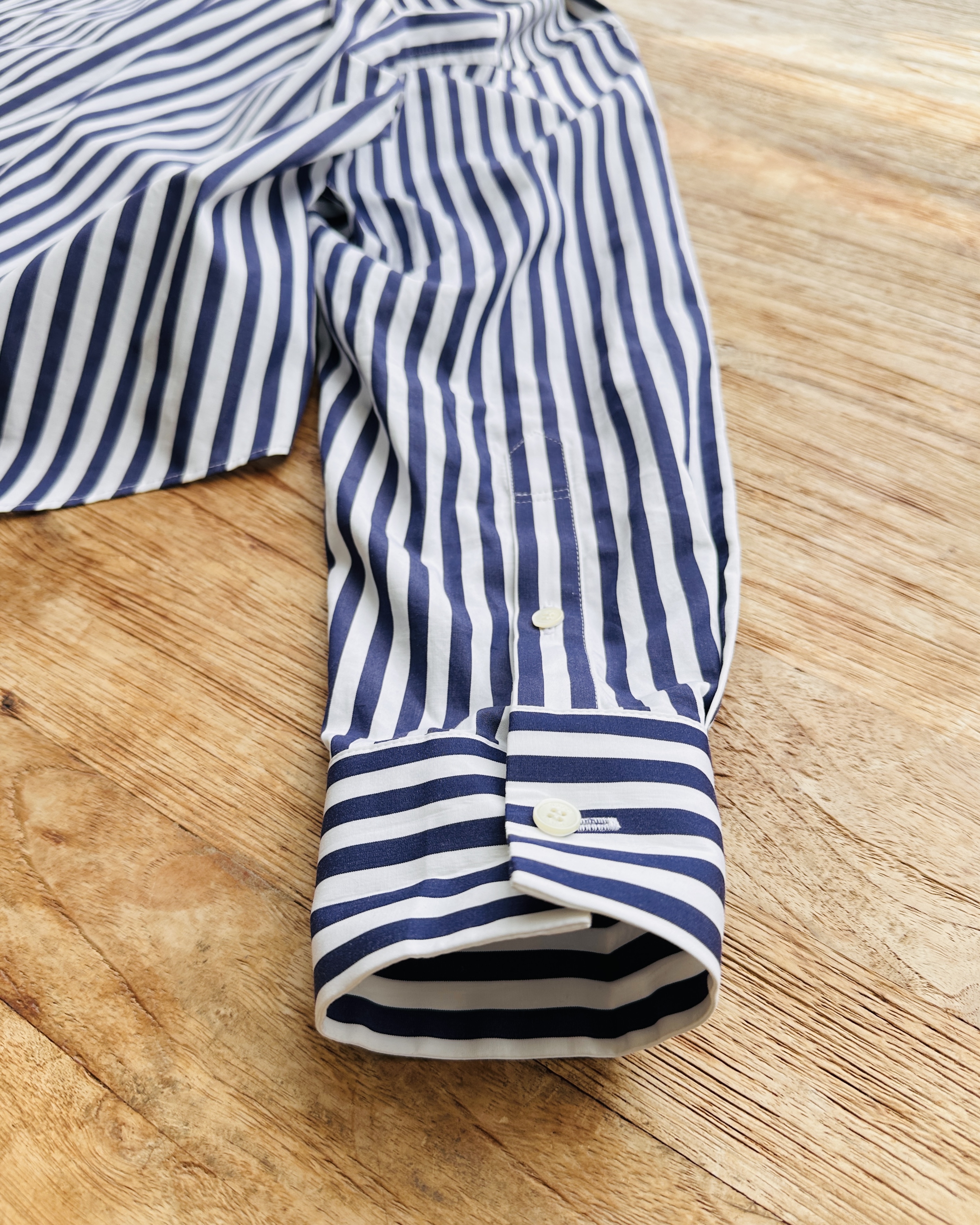 2023 resort原價~HK$8K嘅Thomas Mason聯乘😱!然後你會問:Thomas Mason係乜水?本人平生第一次見識咩叫好靚好滑嘅cotton,就係廿年前遇上第一件已經唔記得咗同邊個日本牌子crossover嘅Thomas Mason恤衫,係小朋友開眼界嘅教科級布料,到今日仲好記得嗰種細滑同光澤🤌🏼。喂當時冇乜錢嘛,一個星期着幾次囉🤡 Thomas Mason 你真係要知佢咩料㗎👩🏻💻!1796年英國Lancashire起家,當時專為幫貴族同上流社會做衫嘅裁縫提供靚cotton fabric,去到1936年已經成為英國皇室御用恤衫品牌嘅布料獨家供應商。然後由廿幾年前起,Thomas Mason開始改革,睇準日本設計師着重傳統工藝嘅匠人精神,不斷同唔同東瀛🎏牌子合作,Sacai官網之前甚至開咗個Thomas Mason專區,將旗下所有起用佢哋布料嘅作品放入去,當中就包括呢件嘞🤟🏼 價錢:HK$1,600 品牌:Sacai 尺碼:2 / S-M 尺寸:51cm (肩)|120cm (胸)|120cm (腰)|56cm (袖)|51cm (前長)|57cm (後長) 註:85%新|腹部、右袖及衫腳附近淡啡漬|100% cotton|日本製 *二手產品難達全新狀態,耗損或歲月痕跡屬正常情況,較明顯/嚴重嘅問題會標明或影底,敬請見諒。 *進入付款程序後,請於10分鐘內完成付款,否則絲統會自動取消訂單。 逢星期四寄出|不設退換或退款|順豐運費到付|只寄香港不寄海外