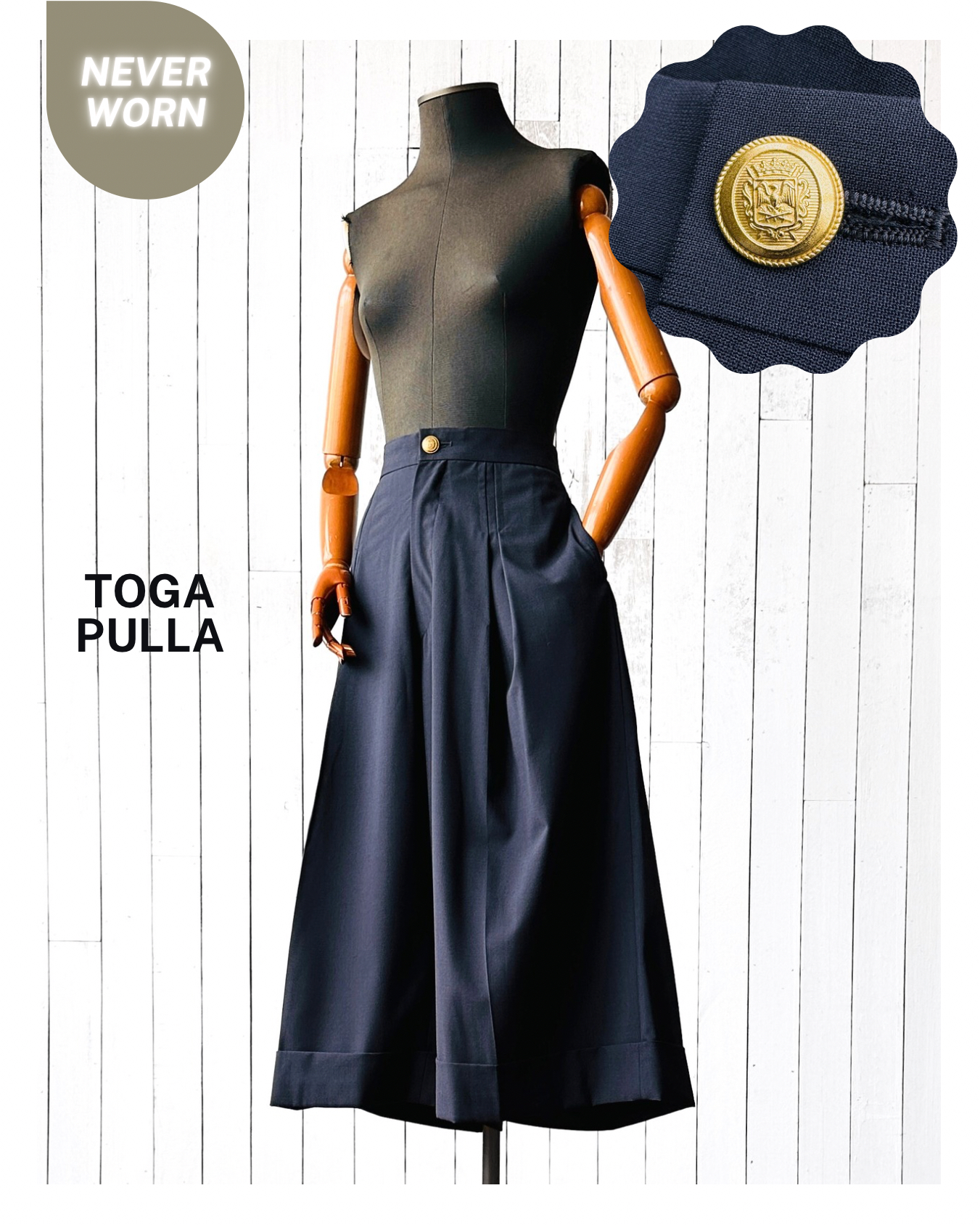 呢類褲款好耐冇嚟探我哋嘞,係時候溫故知新👩🏻🏫:Culottes,讀Q-lots,剪裁上窄下闊有啲似裙嘅及膝短褲,一般長度由啱啱過膝去到9分長,而呢條2020年春夏季嘅Toga大概7-8分,加上有少少西裝褲款,型呀!冷知識一則:上世紀曾經有一段好短嘅時間,巴黎嘅女人着culottes係犯法會俾人拉嘅。Man得滯有傷風化喎,黐孖筋🤭🤷🏻♀️ 價錢:HK$1,190 品牌:Toga Pulla 尺碼:IT 40 / S-M 尺寸:76cm (腰)|100cm+ (臀)|87cm (長) 註:全新未使用|55% polyester + 43% wool + 2% polyurethane|日本製 *二手產品難達全新狀態,耗損或歲月痕跡屬正常情況,較明顯/嚴重嘅問題會標明或影底,敬請見諒。 *進入付款程序後,請於10分鐘內完成付款,否則絲統會自動取消訂單。 逢星期四寄出|不設退換或退款|順豐運費到付|只寄香港不寄海外