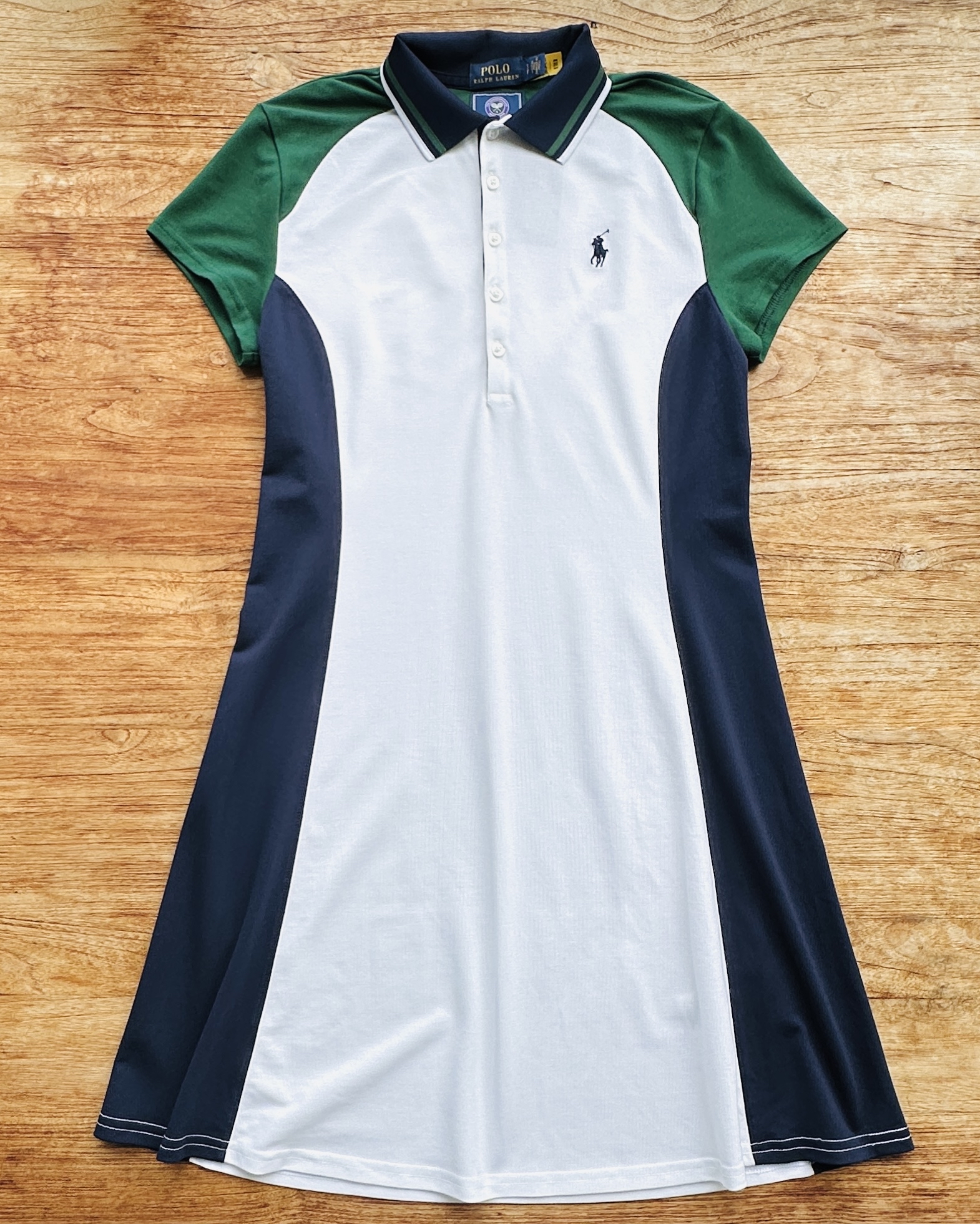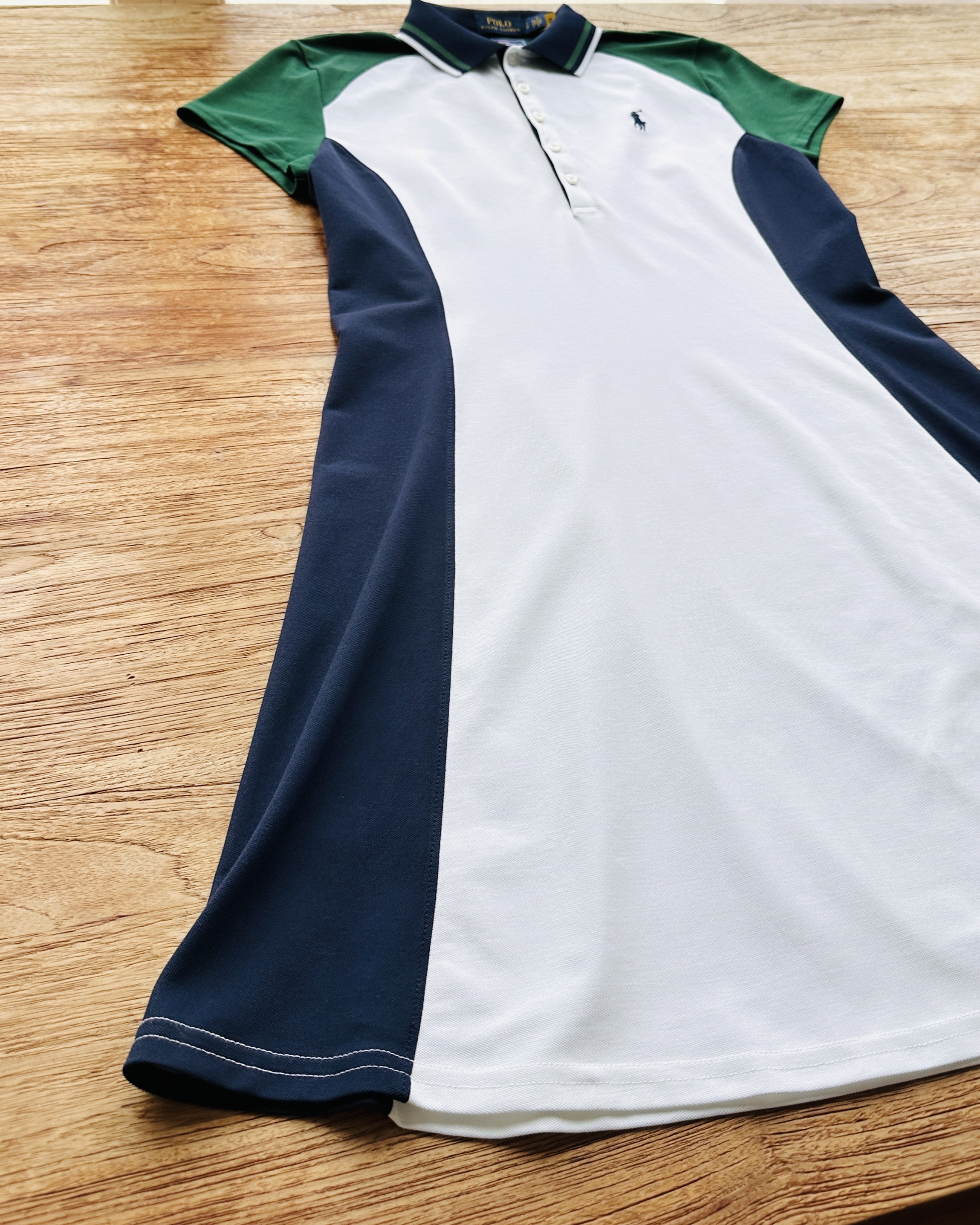 人人tennis,否則都pickle ball,唔通人人都打波咩?係喎,我都打咗3年㗎啦,費達拿式單反😎,自己以為……。Anyway Ralph Lauren每年都為溫布頓出專屬系列嘅,呢條2022年未剪牌㗎🎾 價錢:HK$780 品牌:Polo Ralph Lauren 尺碼:S / 160/84A 尺寸:37cm (肩)|86cm (胸)|68cm (腰)|87cm (長) 註:全新未剪牌|裙腳stitching小勾線|60% cotton + 33% polyester + 7% elastane|秘魯製 *二手產品難達全新狀態,耗損或歲月痕跡屬正常情況,較明顯/嚴重嘅問題會標明或影底,敬請見諒。 *進入付款程序後,請於10分鐘內完成付款,否則絲統會自動取消訂單。 逢星期四寄出|不設退換或退款|順豐運費到付|只寄香港不寄海外