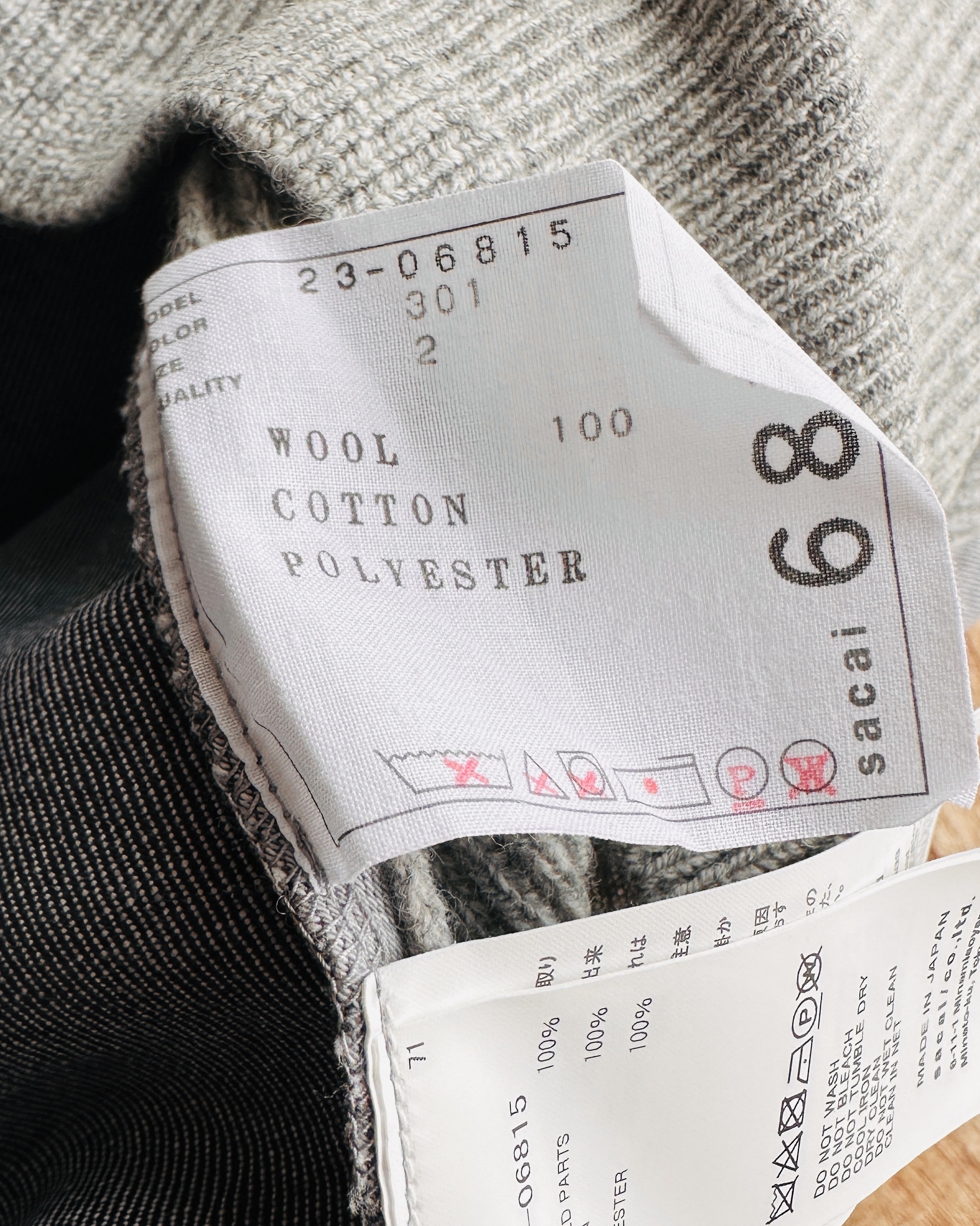 前wool knit後灰牛,喂仲要冇着過,唔使諗即掃啦!2023 pre-fall咁新喎🐦🔥 價錢:HK$1,950 品牌:Sacai 尺碼:2 / M 尺寸:45cm (肩)|94cm (胸)|100cm+ (腰)|52cm (前長)|67cm (後長) 註:全新未使用|100% wool|100% cotton|100% polyester (底)|日本製 *二手產品難達全新狀態,耗損或歲月痕跡屬正常情況,較明顯/嚴重嘅問題會標明或影底,敬請見諒。 *進入付款程序後,請於10分鐘內完成付款,否則絲統會自動取消訂單。 逢星期四寄出|不設退換或退款|順豐運費到付|只寄香港不寄海外