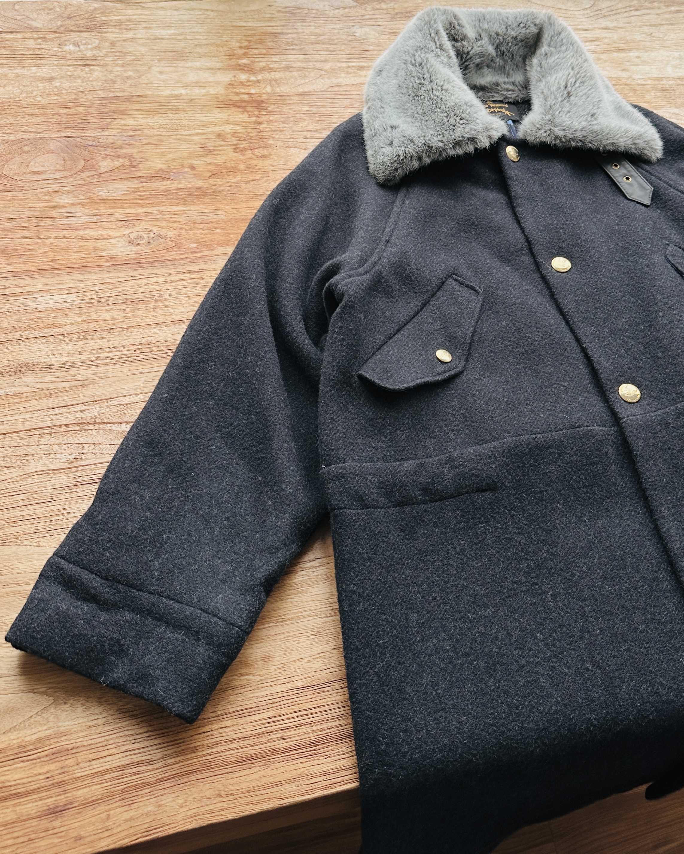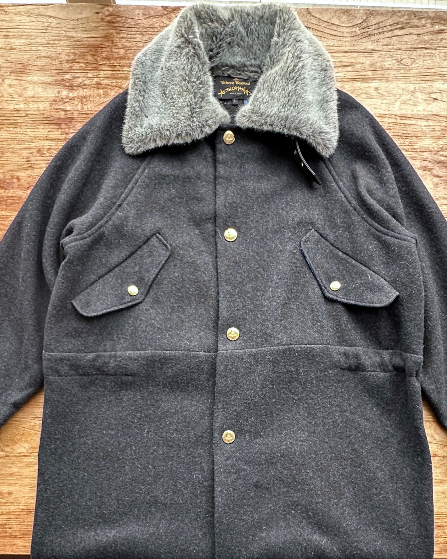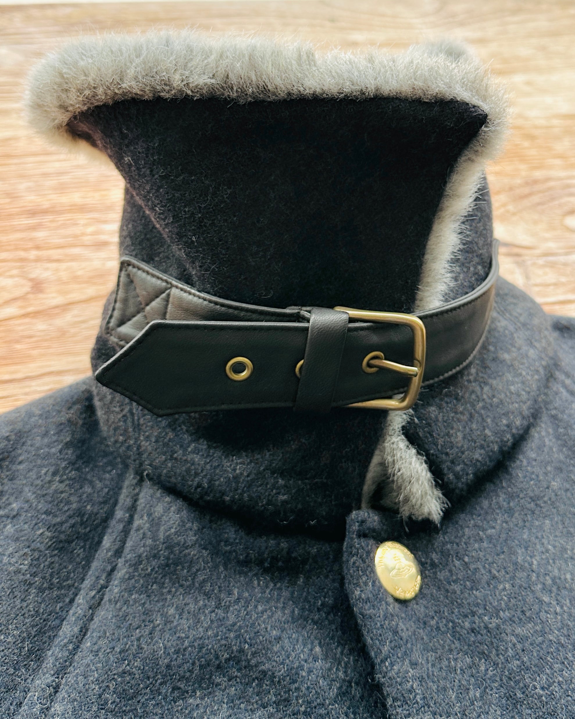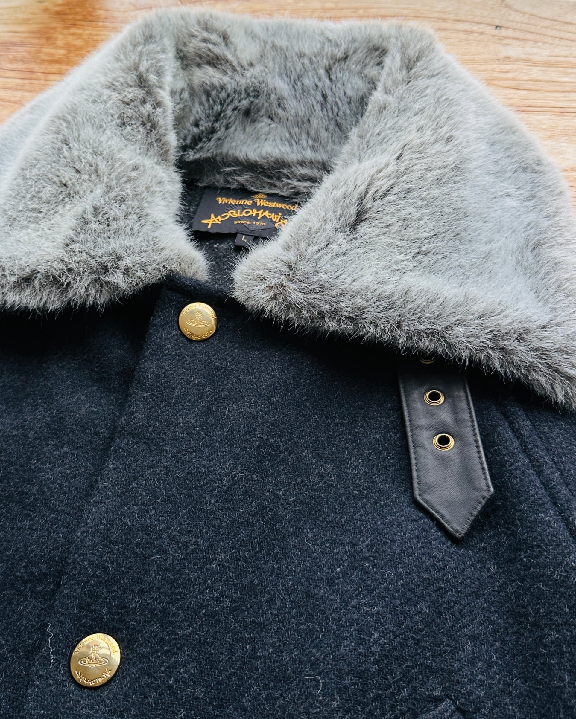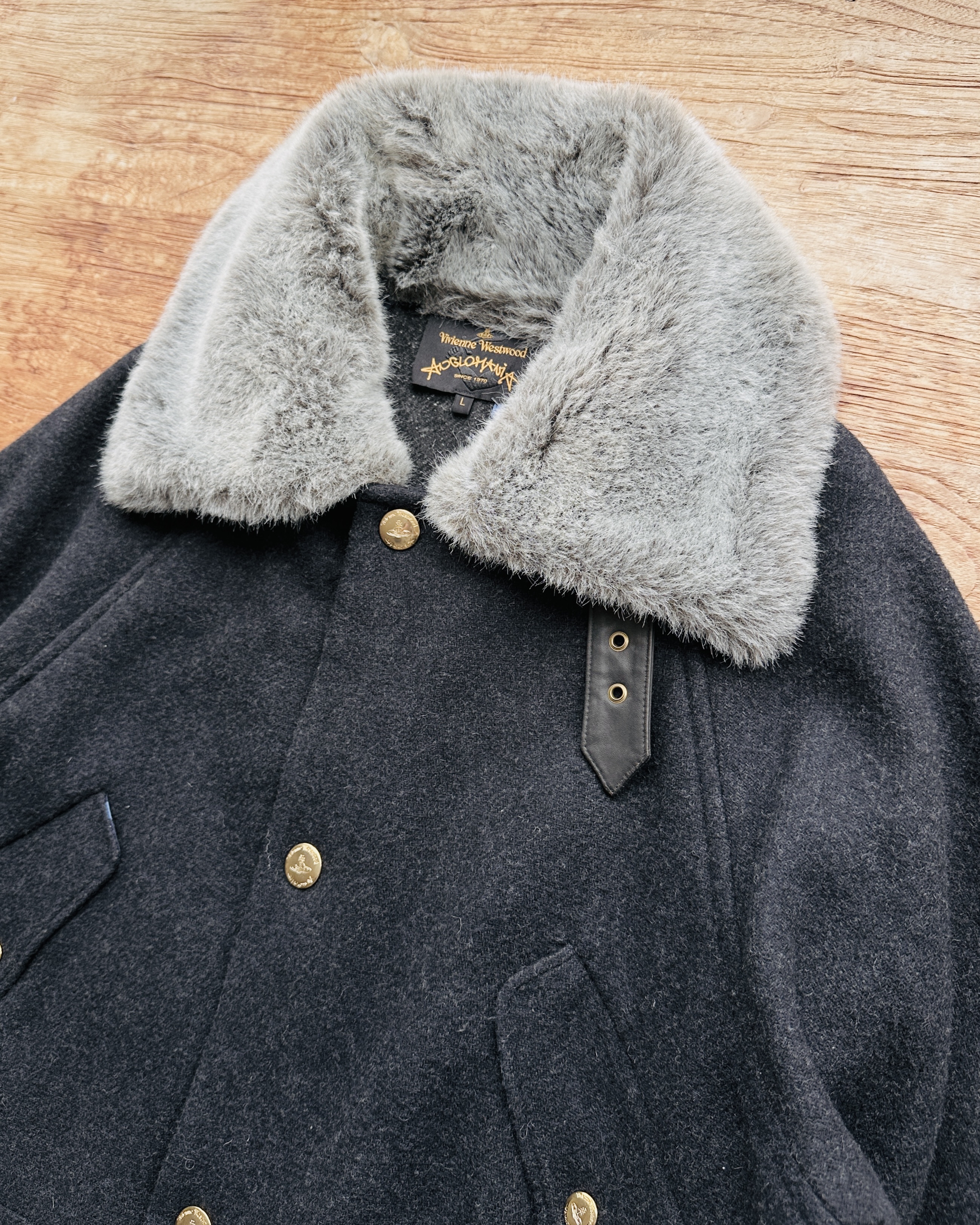超級classy靚cut大褸,貴嘢輪廓,淨係呢樣已經攞晒分啦🐦🔥 價錢:HK$2,800 品牌:Vivienne Westwood Anglomania 尺碼:L 尺寸:~53cm (drop shoulder)|128cm (胸-buttoned)|100cm+ (腰-索繩可索緊)| 64cm (袖)|96cm (長) 註:85%新|毛毛領一處唔起眼啡漬|45% wool + 22% acrylic + 15% polyester + 11% polyamide + 4% other fabric + 3% silk|100% leather| 70% modacrylic + 30% cotton|65% polyester + 35% cotton|羅馬尼亞製 *二手產品難達全新狀態,耗損或歲月痕跡屬正常情況,較明顯/嚴重嘅問題會標明或影底,敬請見諒。 *進入付款程序後,請於10分鐘內完成付款,否則絲統會自動取消訂單。 逢星期四寄出|不設退換或退款|順豐運費到付|只寄香港不寄海外