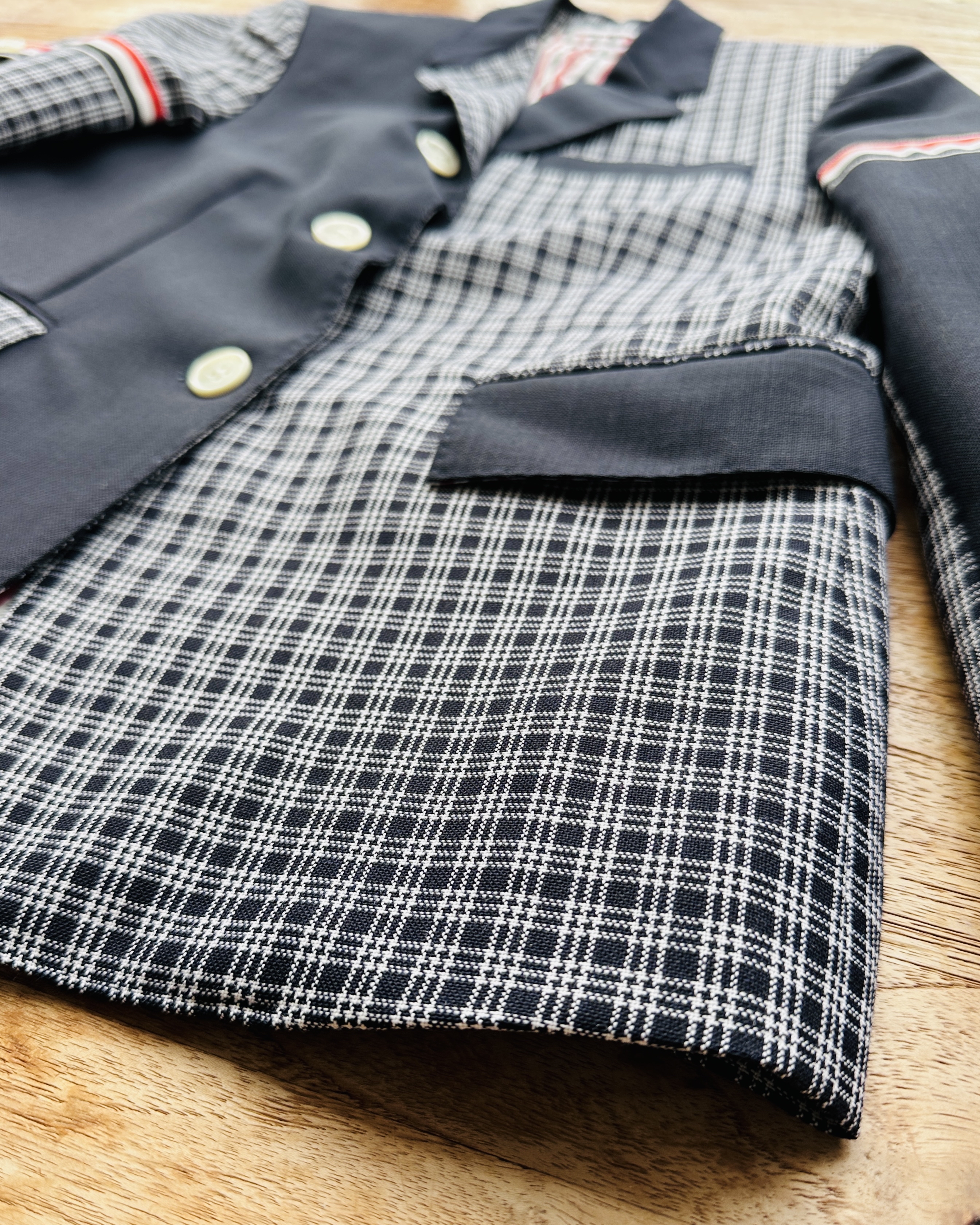 呢隻格局,就咁披上身開會,氣場已經足以彈開隔籬team隻陰濕嘢🦔!想放你暗箭冇咁易囉!一件Thom Browne講晒你條數有幾靚,叫佢跪安啦👩🏻💻 價錢:HK$4,200 品牌:Thom Browne 尺碼:IT 36 / XS 尺寸:38cm (肩)|86cm (胸-buttoned)|80cm (腰-buttoned)|53cm (袖)|63cm (長) 註:85%衫|100% wool|100% polyester|100% cupro (底)|意大利製 *二手產品難達全新狀態,耗損或歲月痕跡屬正常情況,較明顯/嚴重嘅問題會標明或影底,敬請見諒。 *進入付款程序後,請於10分鐘內完成付款,否則絲統會自動取消訂單。 逢星期四寄出|不設退換或退款|順豐運費到付|只寄香港不寄海外