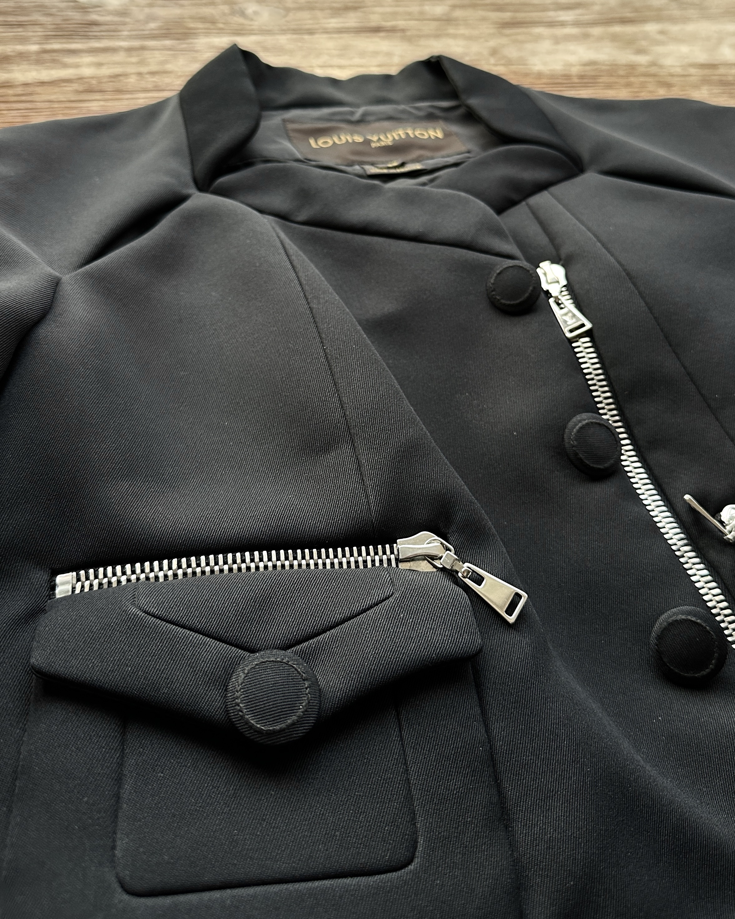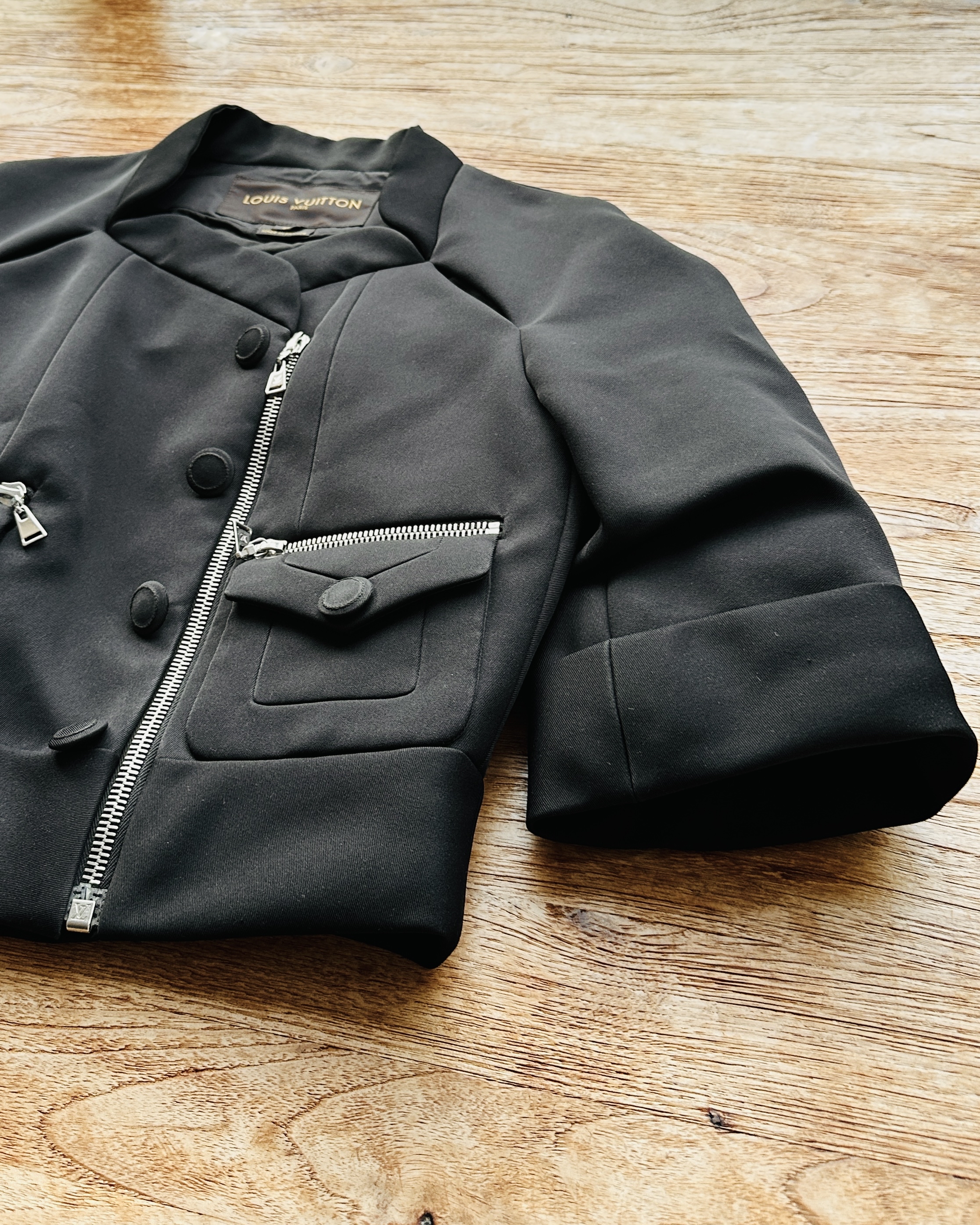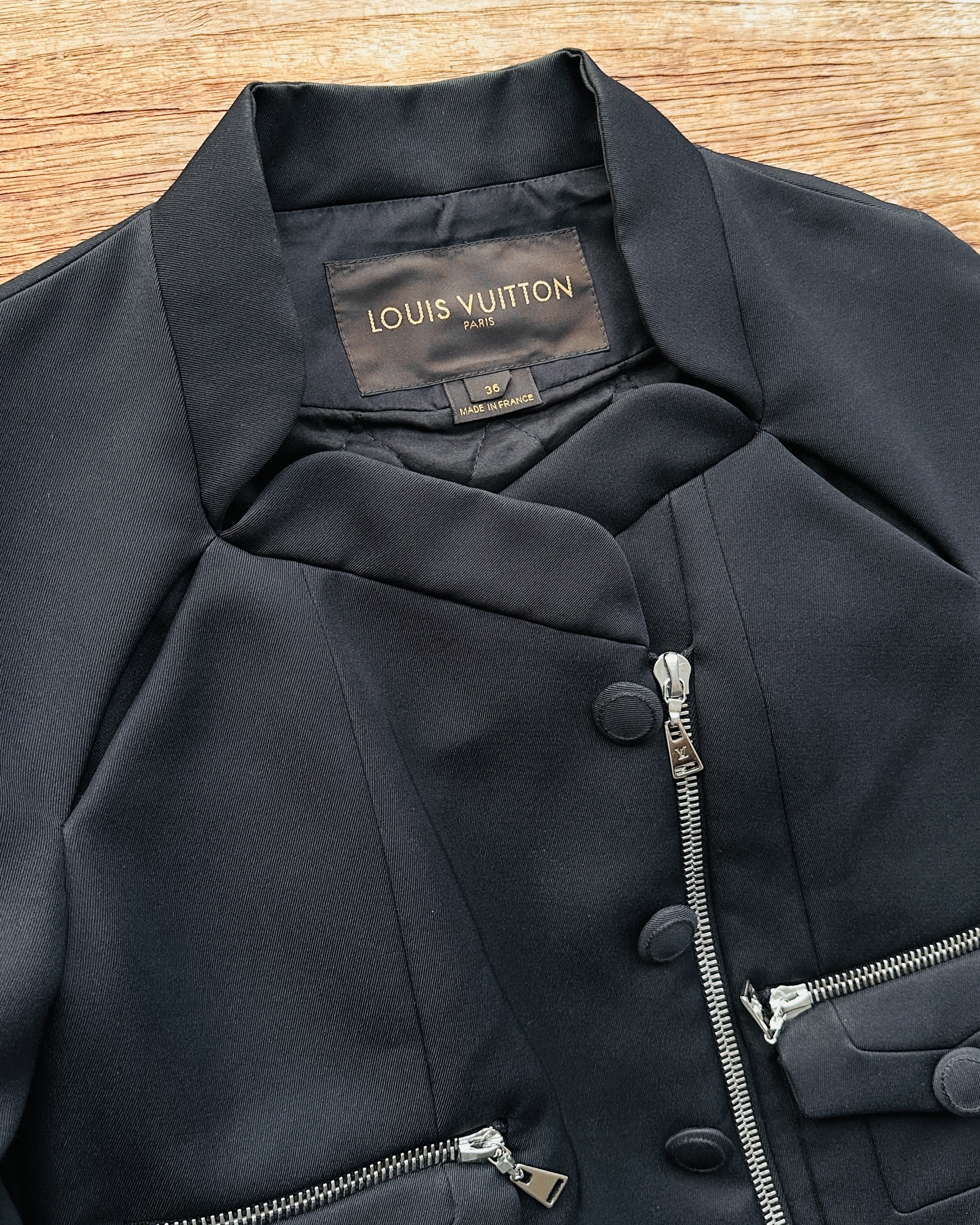 清朝有康乾盛世;而家正值華納盛世🤭;而呢件2006年秋冬嘅作品呢,就出自Marc Jacobs掌朝LV最輝煌嘅盛世。你望吓背脊,咁着重tailoring近代已經少見㗎啦,學友式重bass chest voice咁囉,工底紮實華麗,不過今時今日流行緊家謙令山式柔情head voice lu🐒 價錢:HK$3,500 品牌:Louis Vuitton 尺碼:FR 36 / S 尺寸:~40cm (肩)|90cm (胸-zipped)|84cm (腰-zipped)|38cm (袖) |49cm (長) 註:85%新|左袖背唔起眼淡啡漬| 100% polyester|100% silk|法國製 *二手產品難達全新狀態,耗損或歲月痕跡屬正常情況,較明顯/嚴重嘅問題會標明或影底,敬請見諒。 *進入付款程序後,請於10分鐘內完成付款,否則絲統會自動取消訂單。 逢星期四寄出|不設退換或退款|順豐運費到付|只寄香港不寄海外