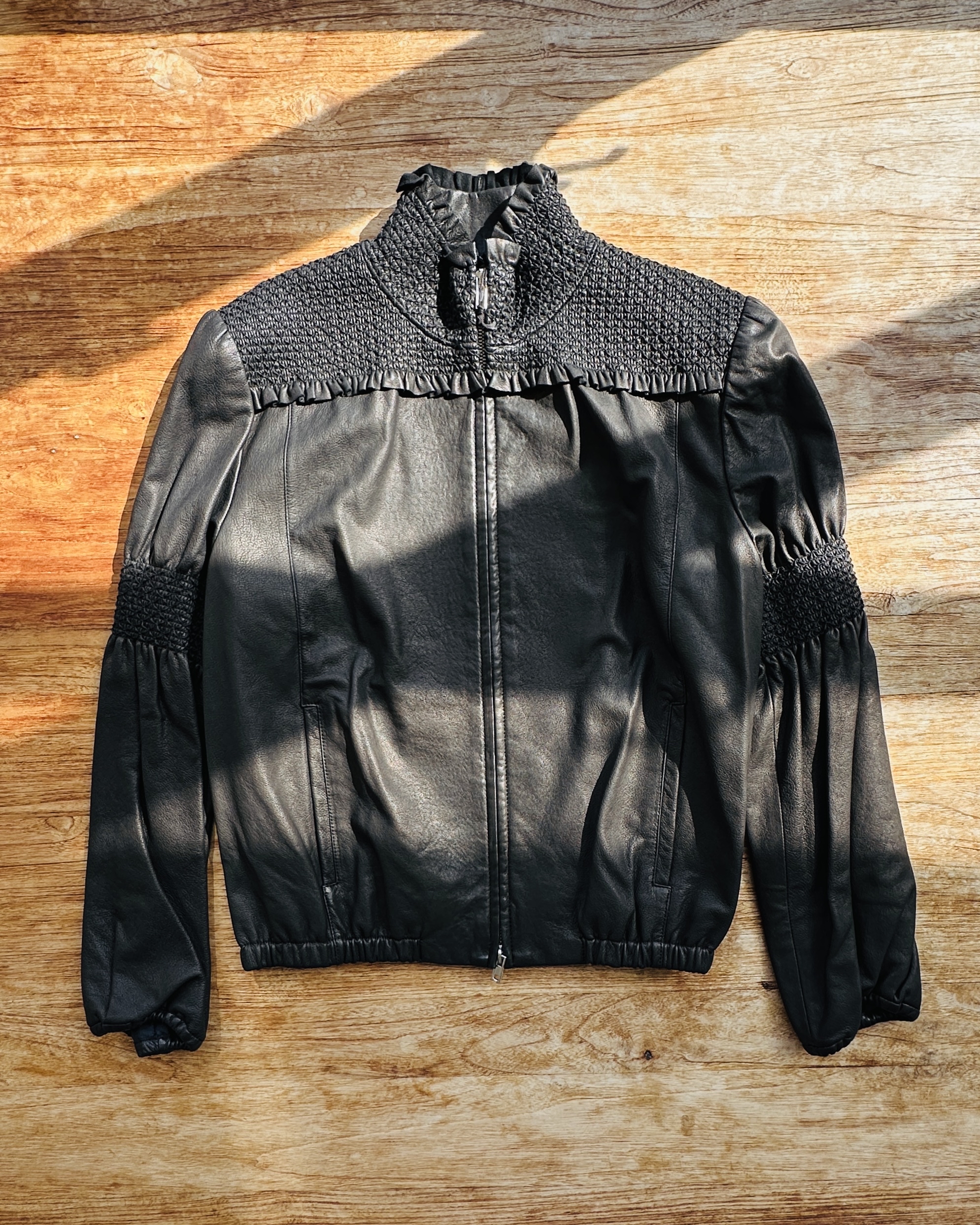 呢位美魔女好黐線🪭!明明2010出世,但骨膠原身形髮量體能全部停留喺15年前,皮褸保持到咁嘅狀態真心離譜🤸🏻♀️。喂你望吓佢個cut同細節靚到!條領呀!仲有對袖先攞命🦥 價錢:HK$2,500 品牌:miu miu 尺碼:IT 42 / M 尺寸:39cm (肩)|92cm (胸-zipped)|86cm (腰-zipped)|52cm (袖)|50cm (長) 註:全新未剪牌|wash label膠質老化黐咗少少落件衫嘅lining|100% lambskin|意大利製 *二手產品難達全新狀態,耗損或歲月痕跡屬正常情況,較明顯/嚴重嘅問題會標明或影底,敬請見諒。 *進入付款程序後,請於10分鐘內完成付款,否則絲統會自動取消訂單。 逢星期四寄出|不設退換或退款|順豐運費到付|只寄香港不寄海外