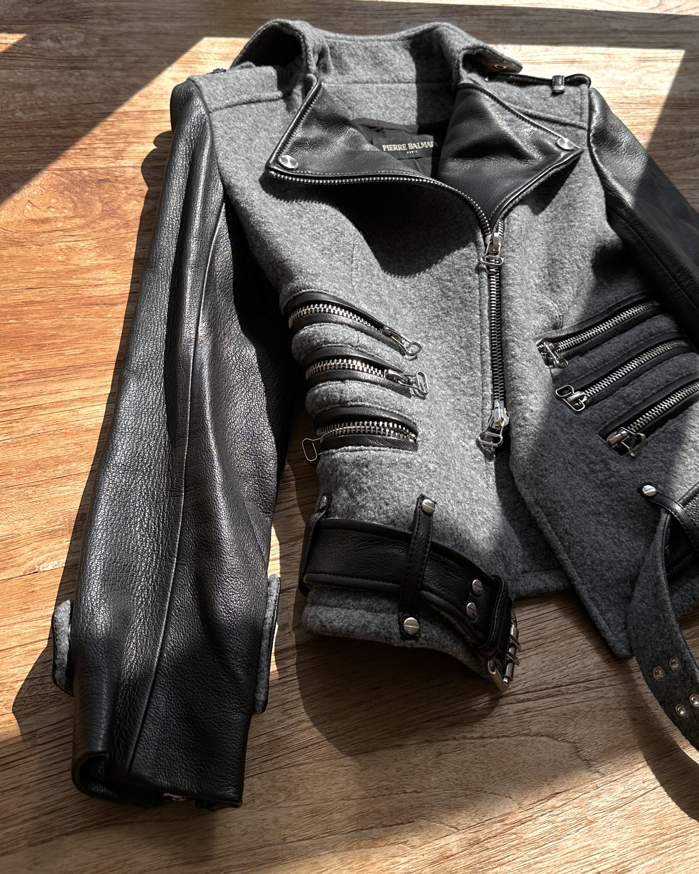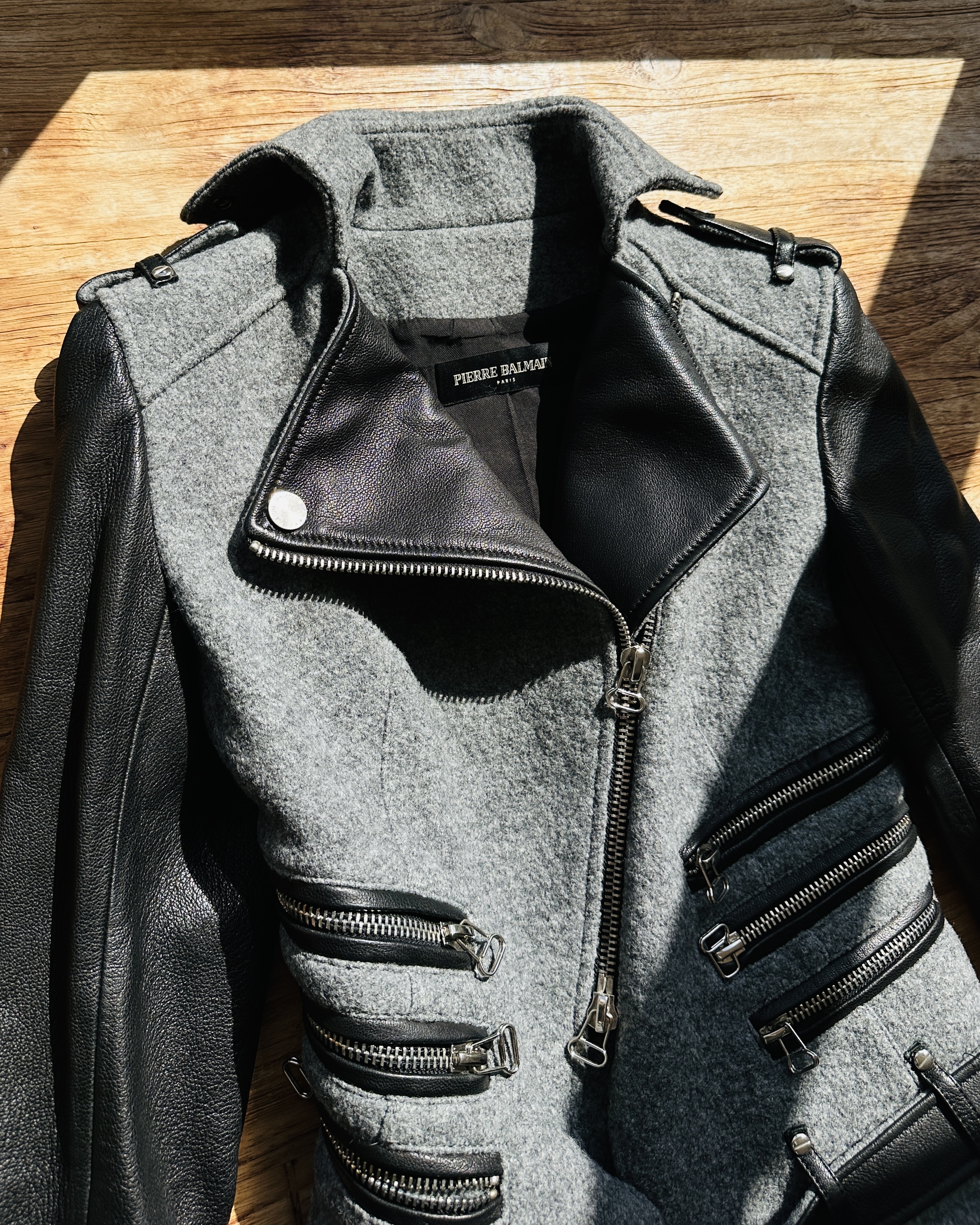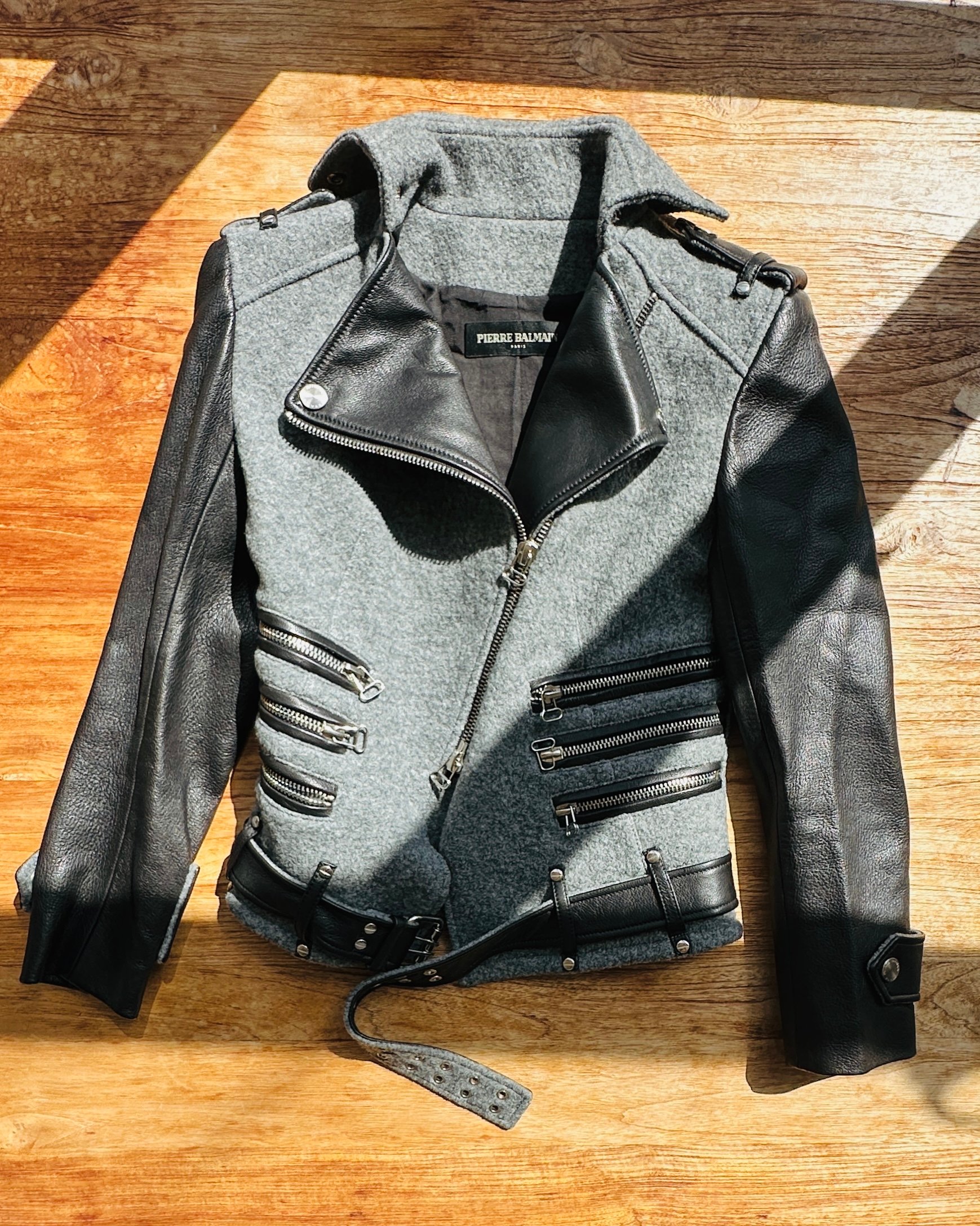 雖然呢條副線唔係由啱啱離職嘅Olivier Rousteing主理,不過Pierre Balmain同佢阿媽Balmain嘅線條輪廓餅印嚟嘅,都係國字口面rock到盡頭🎸。嗱,呢位千金冇出過街㗎,不如你清一清個衣櫃俾我哋,咪可以有空位帶佢入宮囉⛲️ 價錢:HK$2,200 品牌:Pierre Balmain 尺碼:FR 38 / 165/88A / S 尺寸:41cm (肩)|90cm (胸-zipped)|74cm (腰-zipped)|55cm (袖)|55cm (長) 註:全新未使用|100% wool|100% lambskin |58.5% viscose + 41.5 cotton (底) *二手產品難達全新狀態,耗損或歲月痕跡屬正常情況,較明顯/嚴重嘅問題會標明或影底,敬請見諒。 *進入付款程序後,請於10分鐘內完成付款,否則絲統會自動取消訂單。 逢星期四寄出|不設退換或退款|順豐運費到付|只寄香港不寄海外