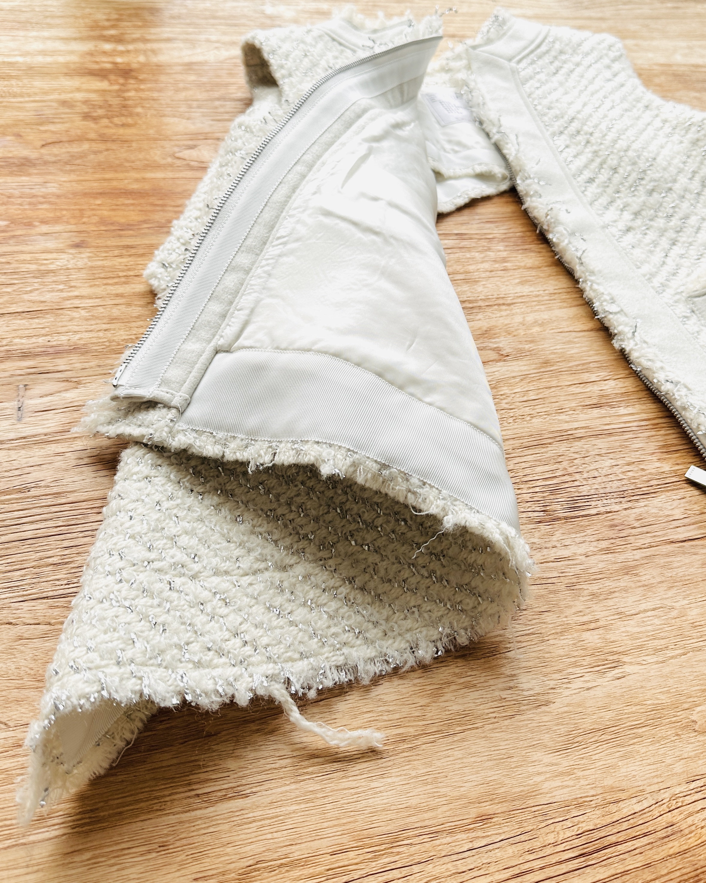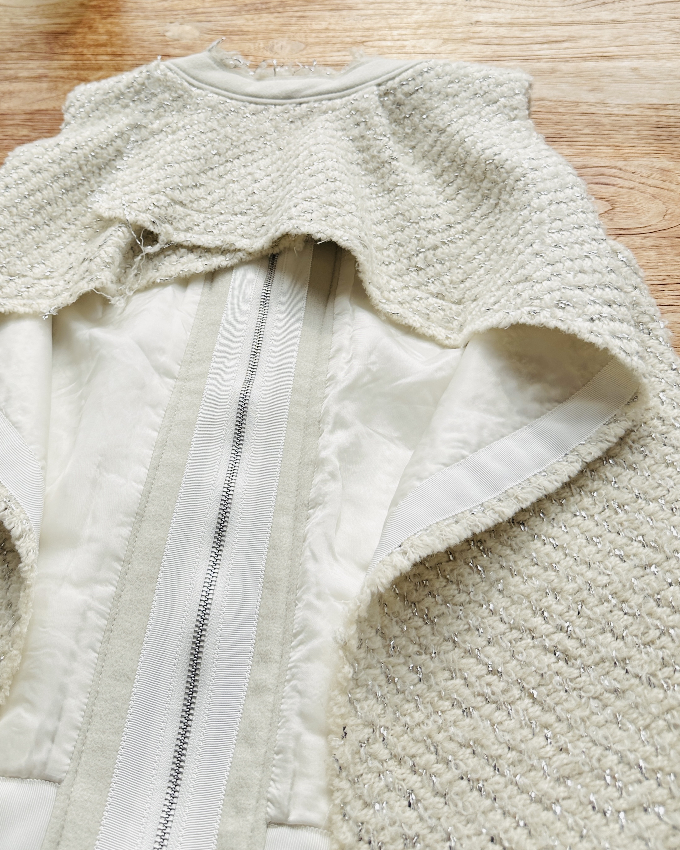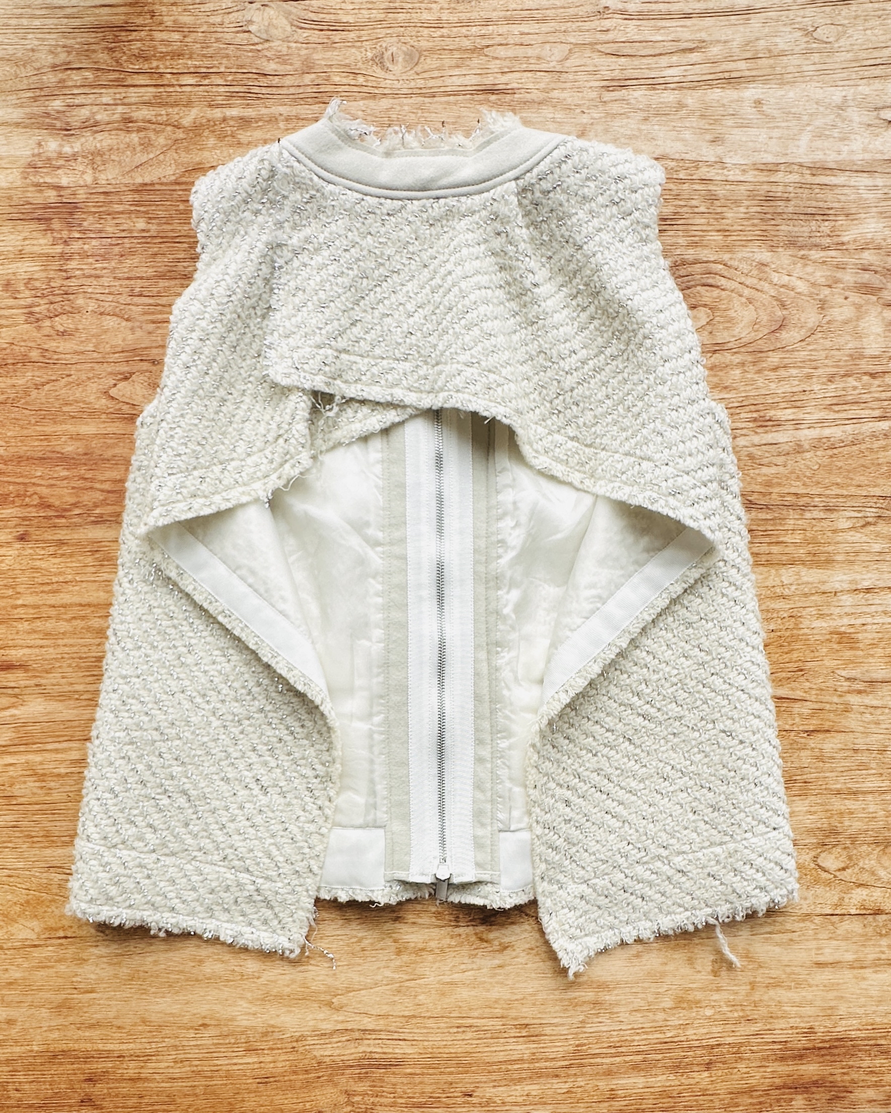 假如阿部千登勢入主CC,第一件事應該就係咁樣將啲tweed布肢解👻 價錢:HK$2,250 品牌:Sacai 尺碼:1 / S 尺寸:37cm (肩)|98cm (胸-zipped)|100cm+ (腰)|59cm (長) 註:85%新|85% wool + 7% rayon + 5% polyester|100% wool|100% cupro (底)|日本製 *二手產品難達全新狀態,耗損或歲月痕跡屬正常情況,較明顯/嚴重嘅問題會標明或影底,敬請見諒。 *進入付款程序後,請於10分鐘內完成付款,否則絲統會自動取消訂單。 逢星期四寄出|不設退換或退款|順豐運費到付|只寄香港不寄海外