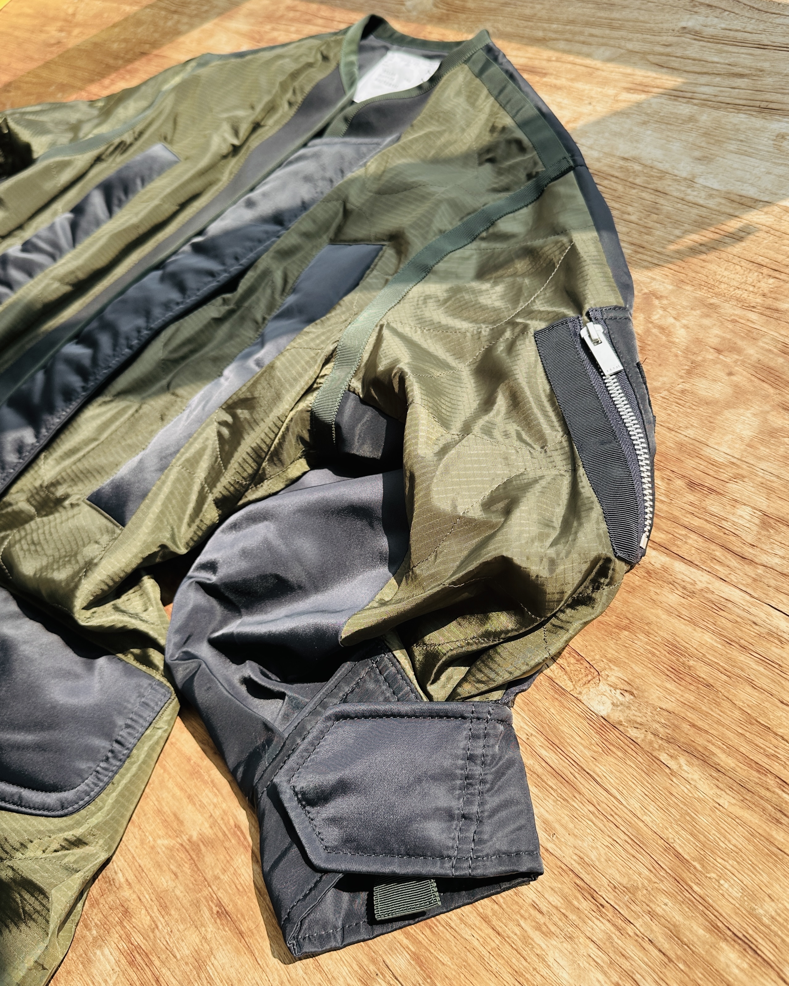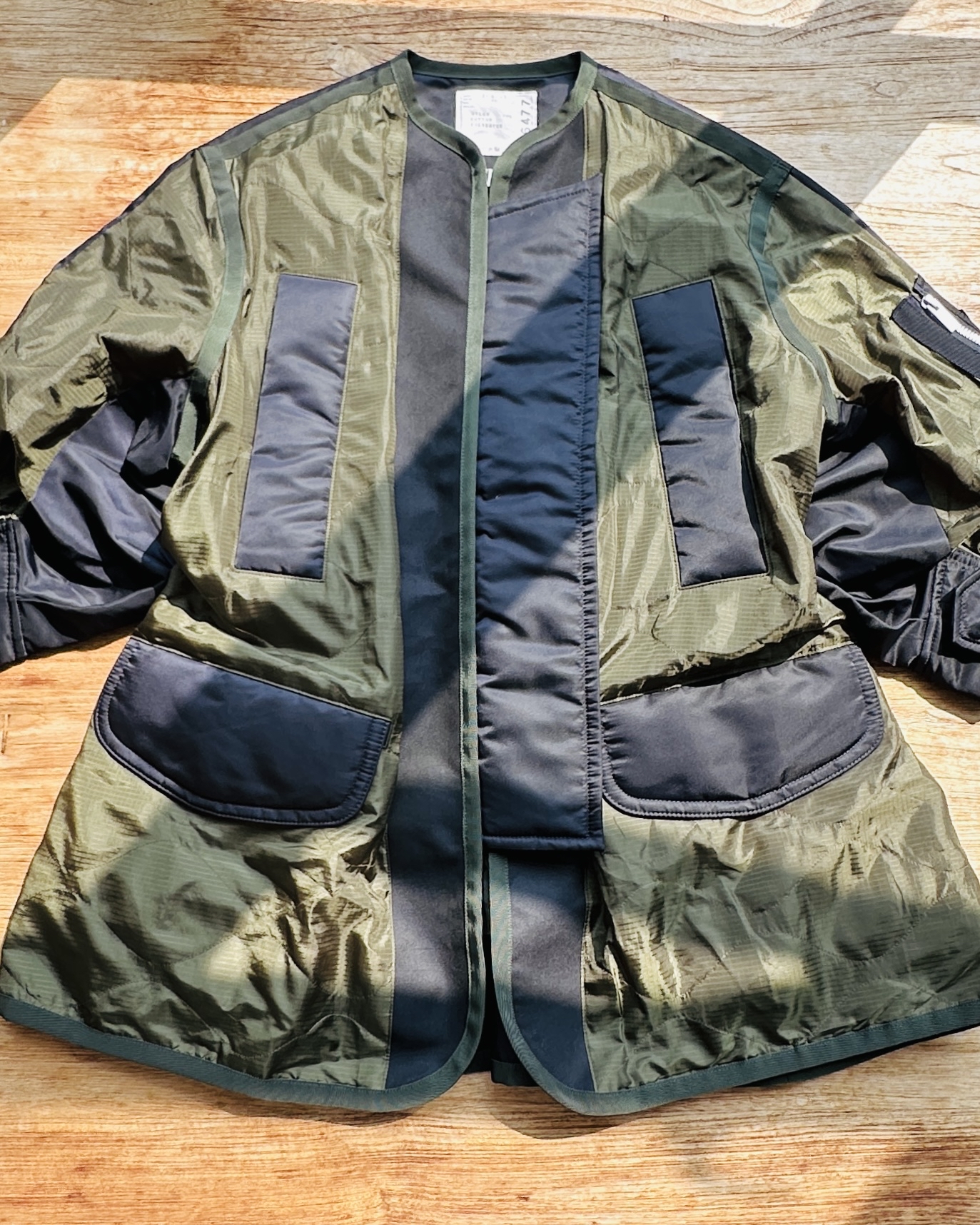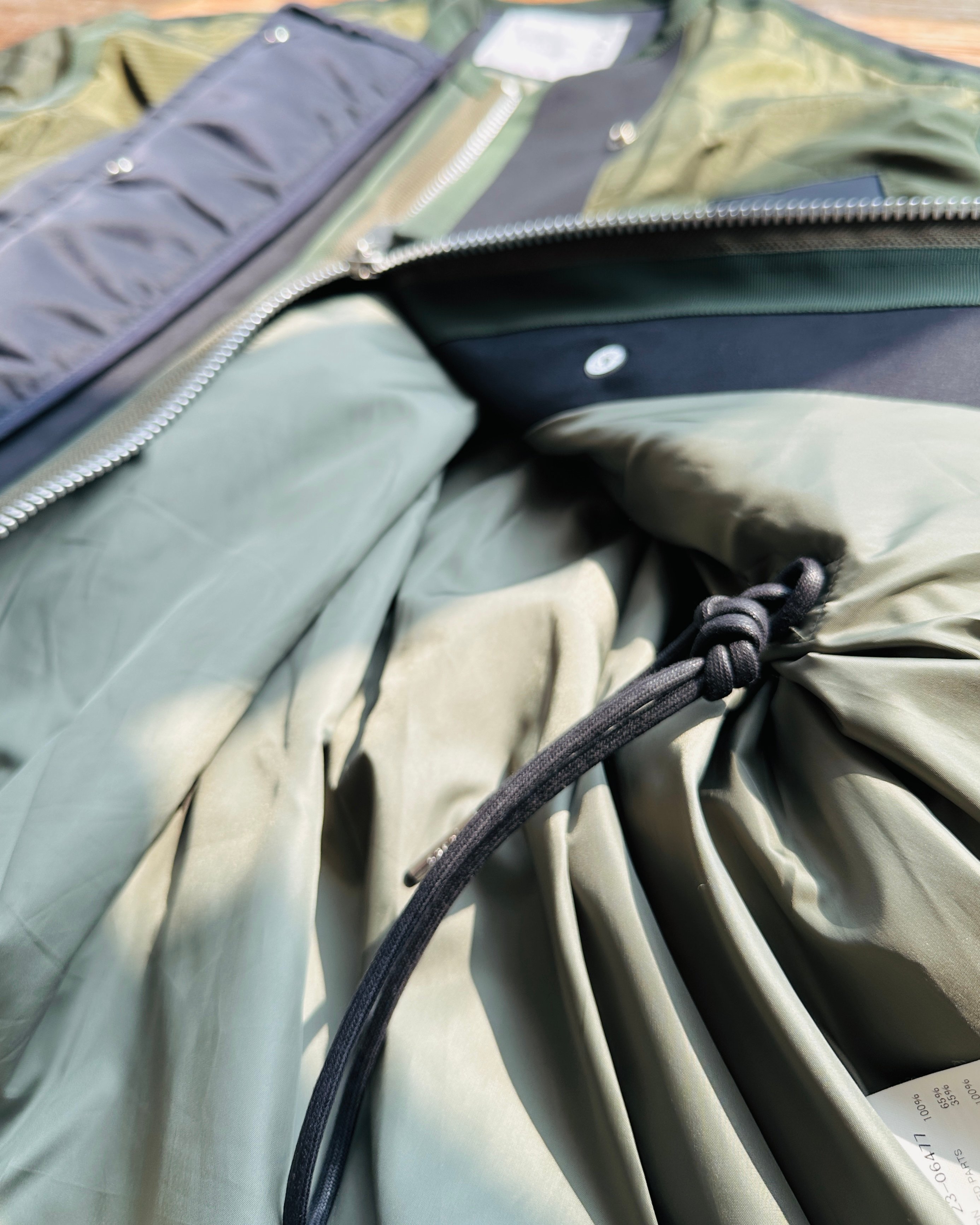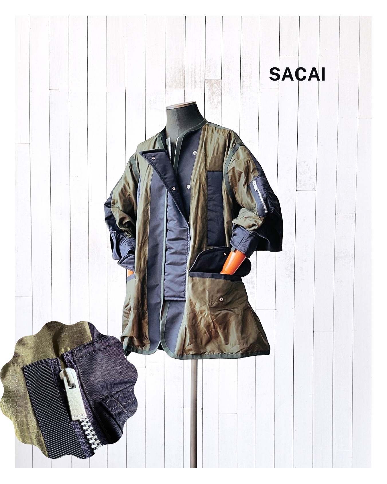 2023春夏原價HK$10,659。貴呀佢💸!算係夾棉,不過夾層唔係要嚟保暖,你當佢風褸會啱數啲🧞♀️ 價錢:HK$2,800 品牌:Sacai 尺碼:1 / S 尺寸:49cm (肩)|124cm (胸-zipped)|100cm+ (腰-可索緊)|40cm (袖)|81cm (長) 註:85%衫|100% nylon|65% cotton + 35% polyester|100% polyester (filling)|100% polyester (底)|日本製 *二手產品難達全新狀態,耗損或歲月痕跡屬正常情況,較明顯/嚴重嘅問題會標明或影底,敬請見諒。 *進入付款程序後,請於10分鐘內完成付款,否則絲統會自動取消訂單。 逢星期四寄出|不設退換或退款|順豐運費到付|只寄香港不寄海外