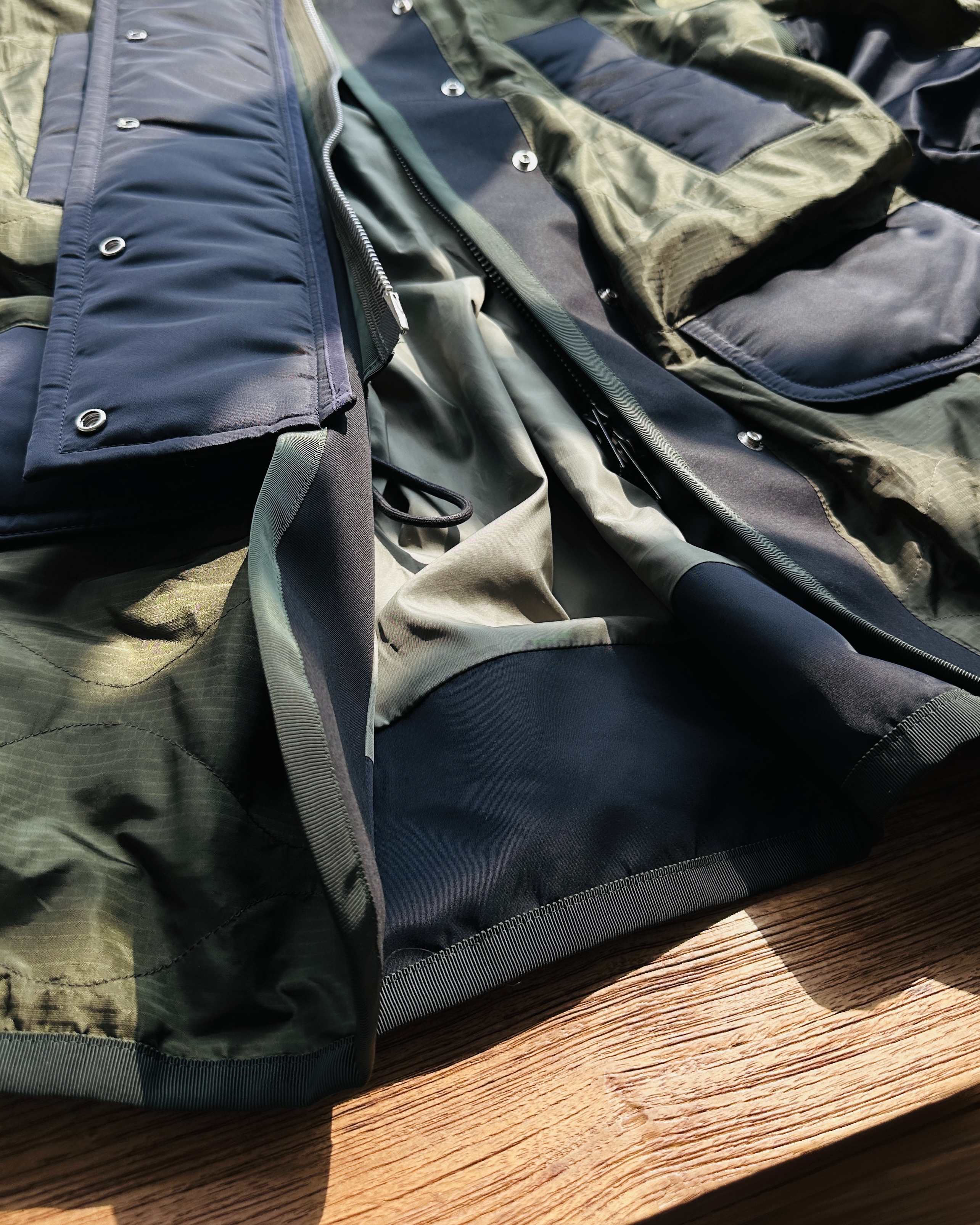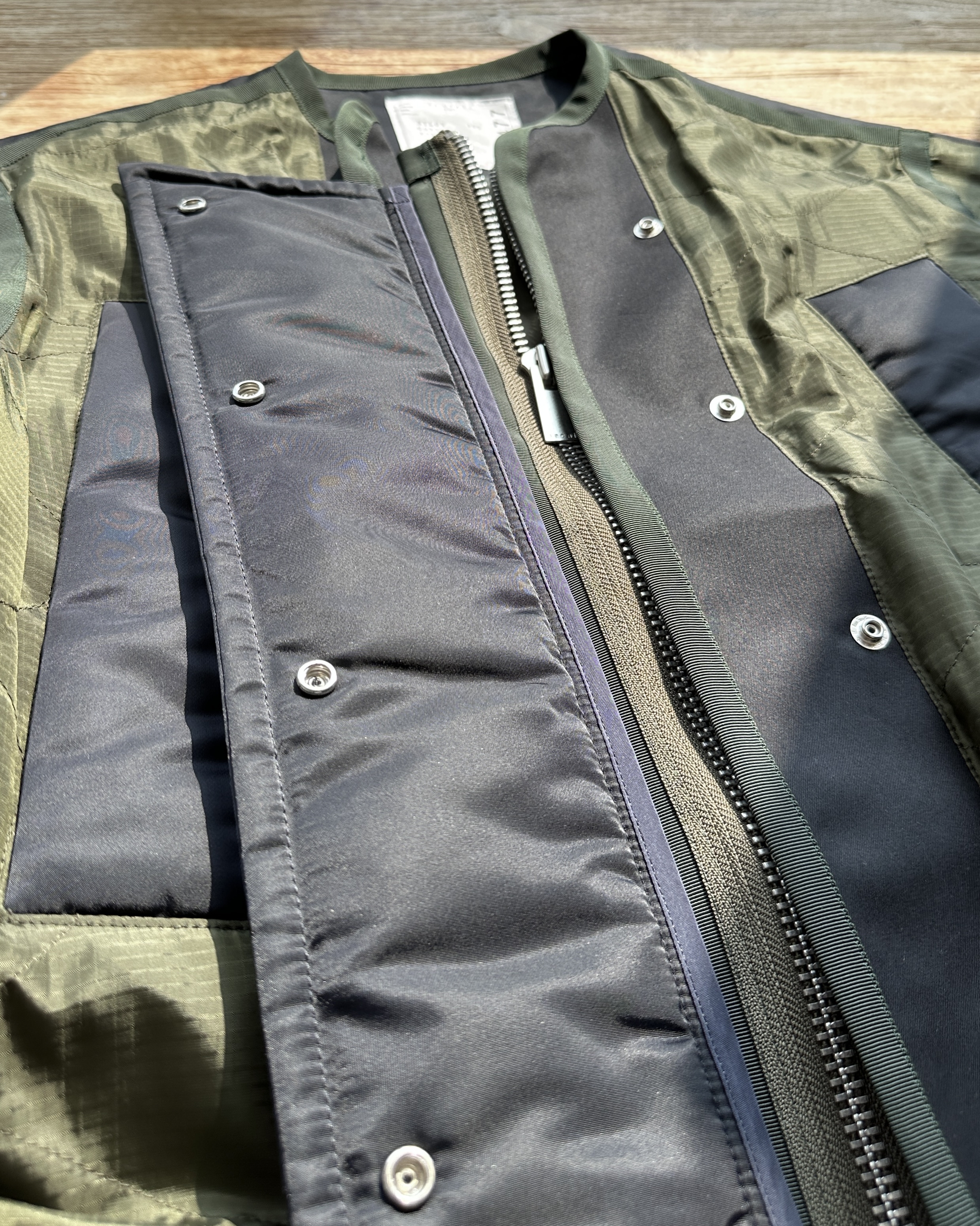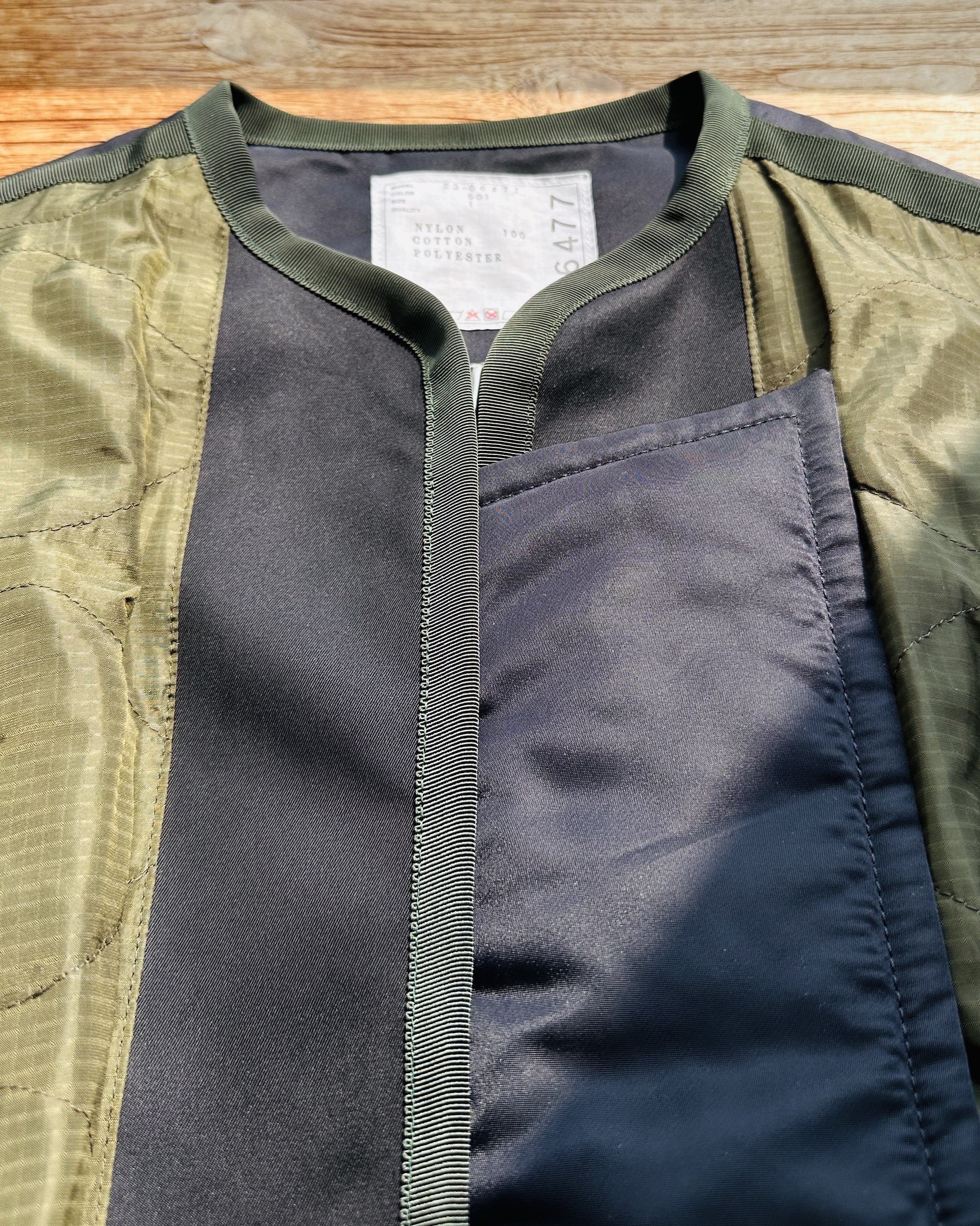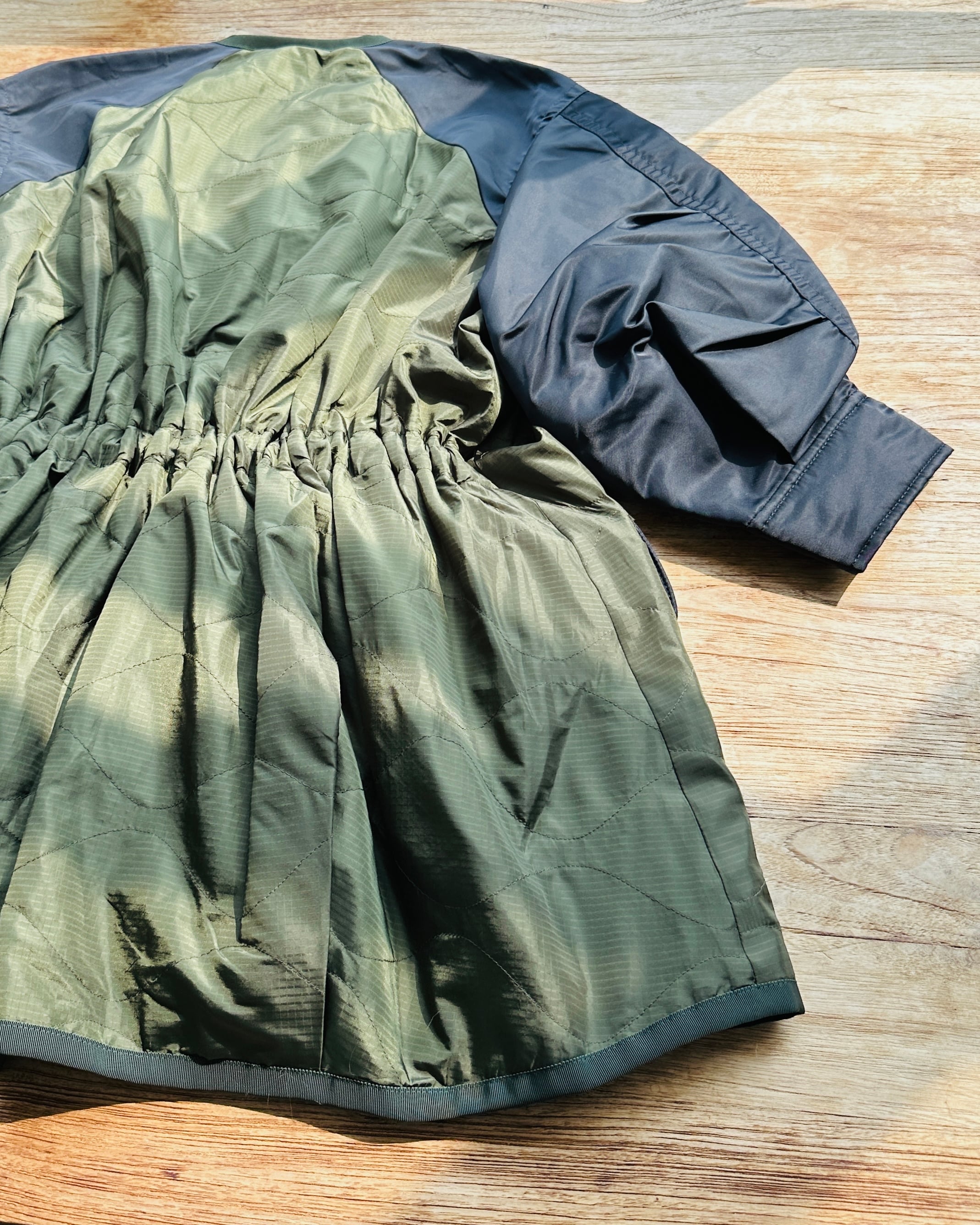 2023春夏原價HK$10,659。貴呀佢💸!算係夾棉,不過夾層唔係要嚟保暖,你當佢風褸會啱數啲🧞♀️ 價錢:HK$2,800 品牌:Sacai 尺碼:1 / S 尺寸:49cm (肩)|124cm (胸-zipped)|100cm+ (腰-可索緊)|40cm (袖)|81cm (長) 註:85%衫|100% nylon|65% cotton + 35% polyester|100% polyester (filling)|100% polyester (底)|日本製 *二手產品難達全新狀態,耗損或歲月痕跡屬正常情況,較明顯/嚴重嘅問題會標明或影底,敬請見諒。 *進入付款程序後,請於10分鐘內完成付款,否則絲統會自動取消訂單。 逢星期四寄出|不設退換或退款|順豐運費到付|只寄香港不寄海外