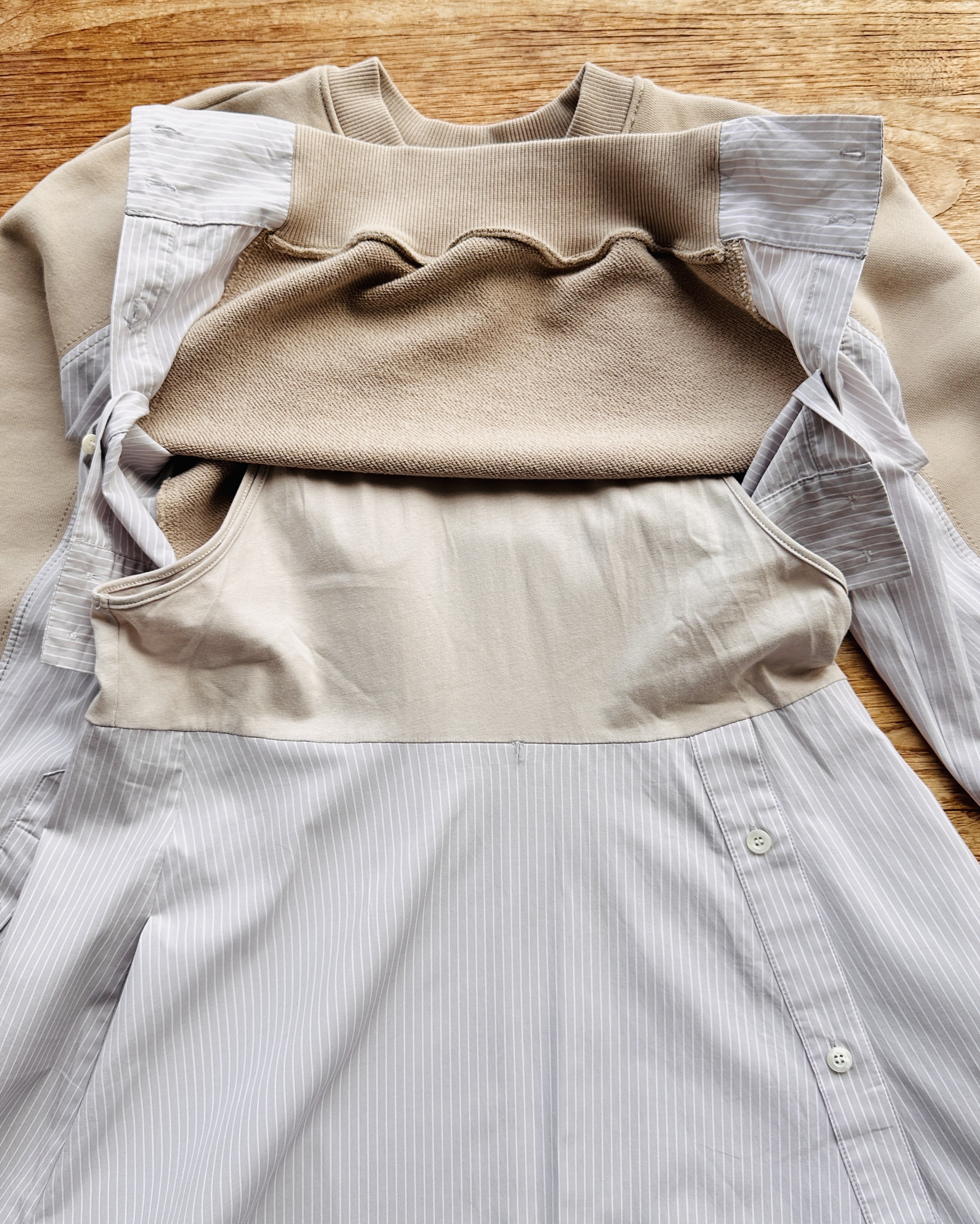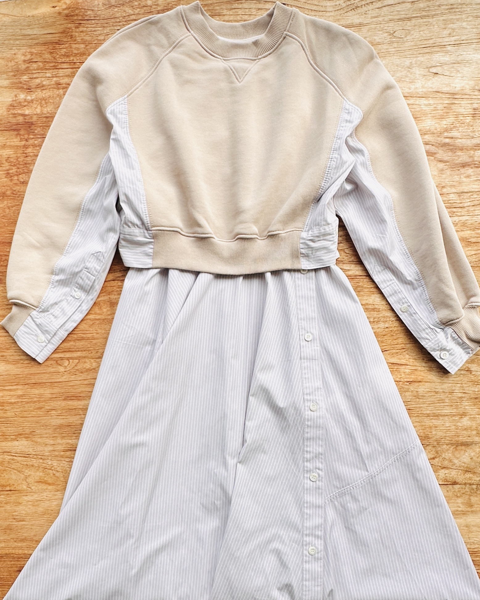 啱晒選擇困難症患者🤯!one piece 扮兩件,貌似襯過嚟但其實笠上身即原地出道🤟🏼 價錢:HK$880 品牌:3.1 Phillip Lim 尺碼:XS 尺寸:~44cm (肩)|98cm (胸)|82cm (腰)|100cm+ (臀)|51cm (袖)|113cm (長) 註:85%衫|腹部被sweatshirt遮掩位置恤衫布料耗損| 100% cotton|95% cotton + 5% elastane *二手產品難達全新狀態,耗損或歲月痕跡屬正常情況,較明顯/嚴重嘅問題會標明或影底,敬請見諒。 *進入付款程序後,請於10分鐘內完成付款,否則絲統會自動取消訂單。 逢星期四寄出|不設退換或退款|順豐運費到付|只寄香港不寄海外