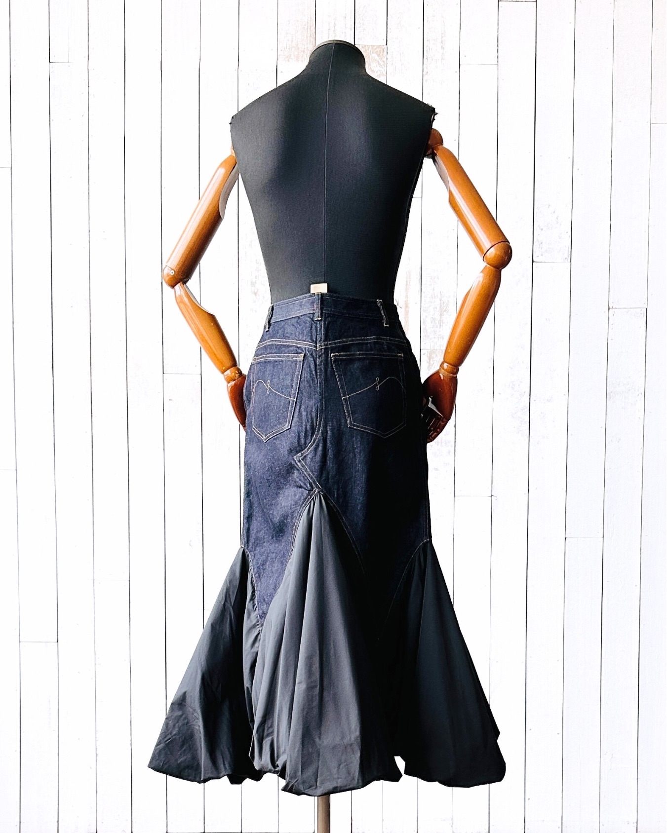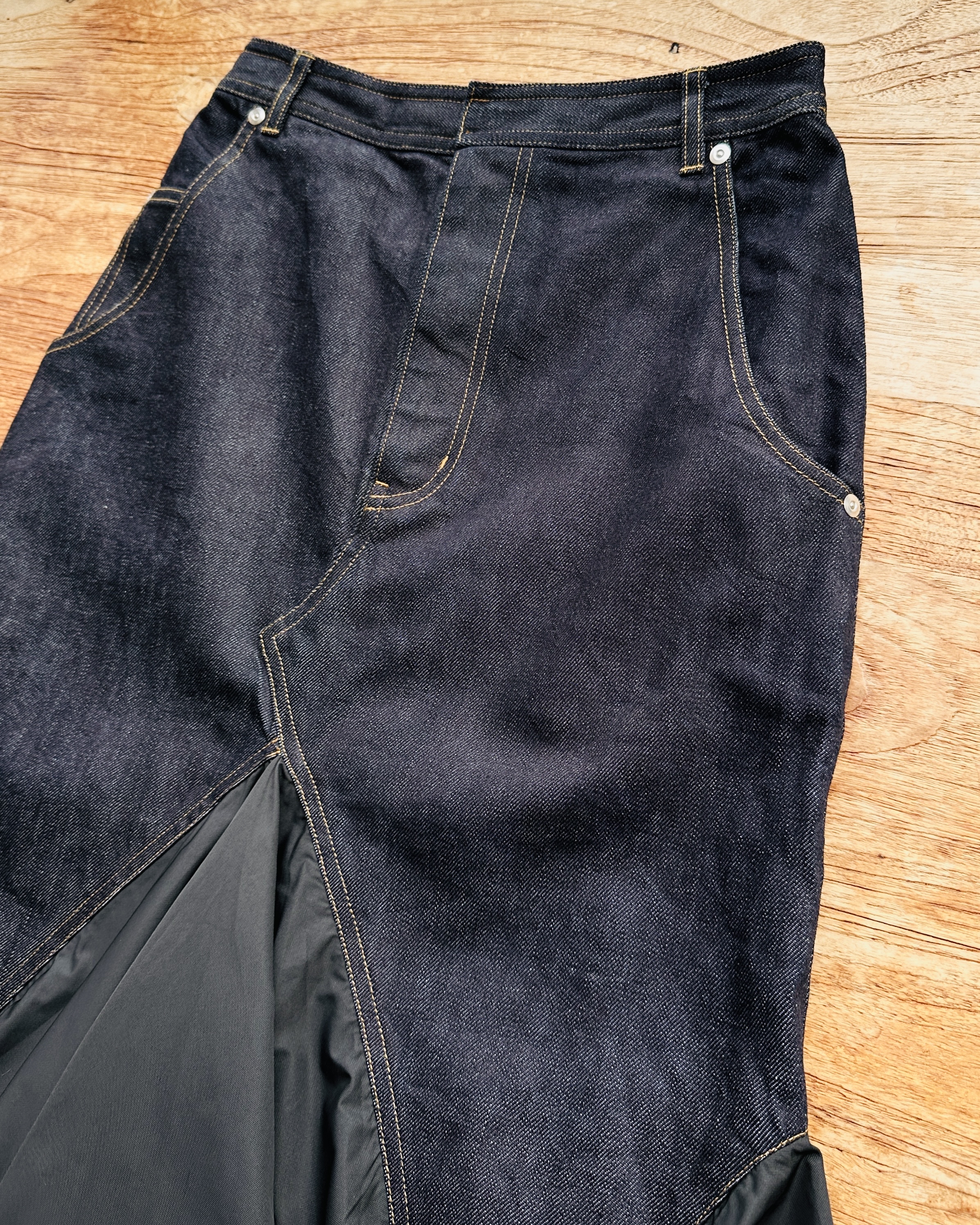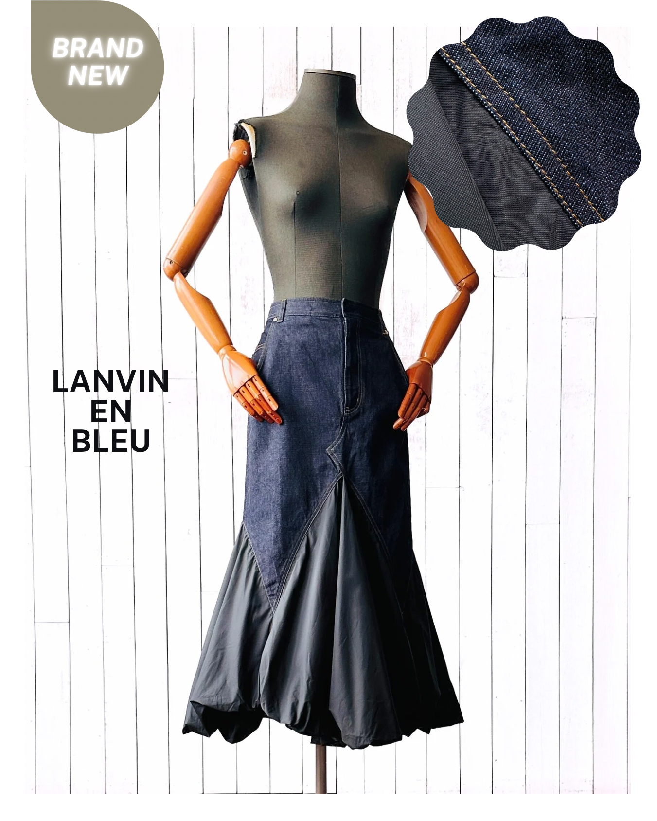 未見label以為佢係Watanabe或Sacai,解構重組牛仔裙呢招不嬲佢哋玩得最多㗎嘛,點估到居然係Lanvin en Bleu至得咯🌝!不過又唔出奇喎,呢條東瀛限定副線從來都係日本人自己一手一腳搞嘅,明晒啦🎏 價錢:HK$800 品牌:Lanvin en Bleu 尺碼:FR 36 / S 尺寸:68cm (腰)|92cm (臀) |85cm (長) 註:全新未剪牌|98% cotton + 2% polyethylene|100% polyester *二手產品難達全新狀態,耗損或歲月痕跡屬正常情況,較明顯/嚴重嘅問題會標明或影底,敬請見諒。 *進入付款程序後,請於10分鐘內完成付款,否則絲統會自動取消訂單。 逢星期四寄出|不設退換或退款|順豐運費到付|只寄香港不寄海外