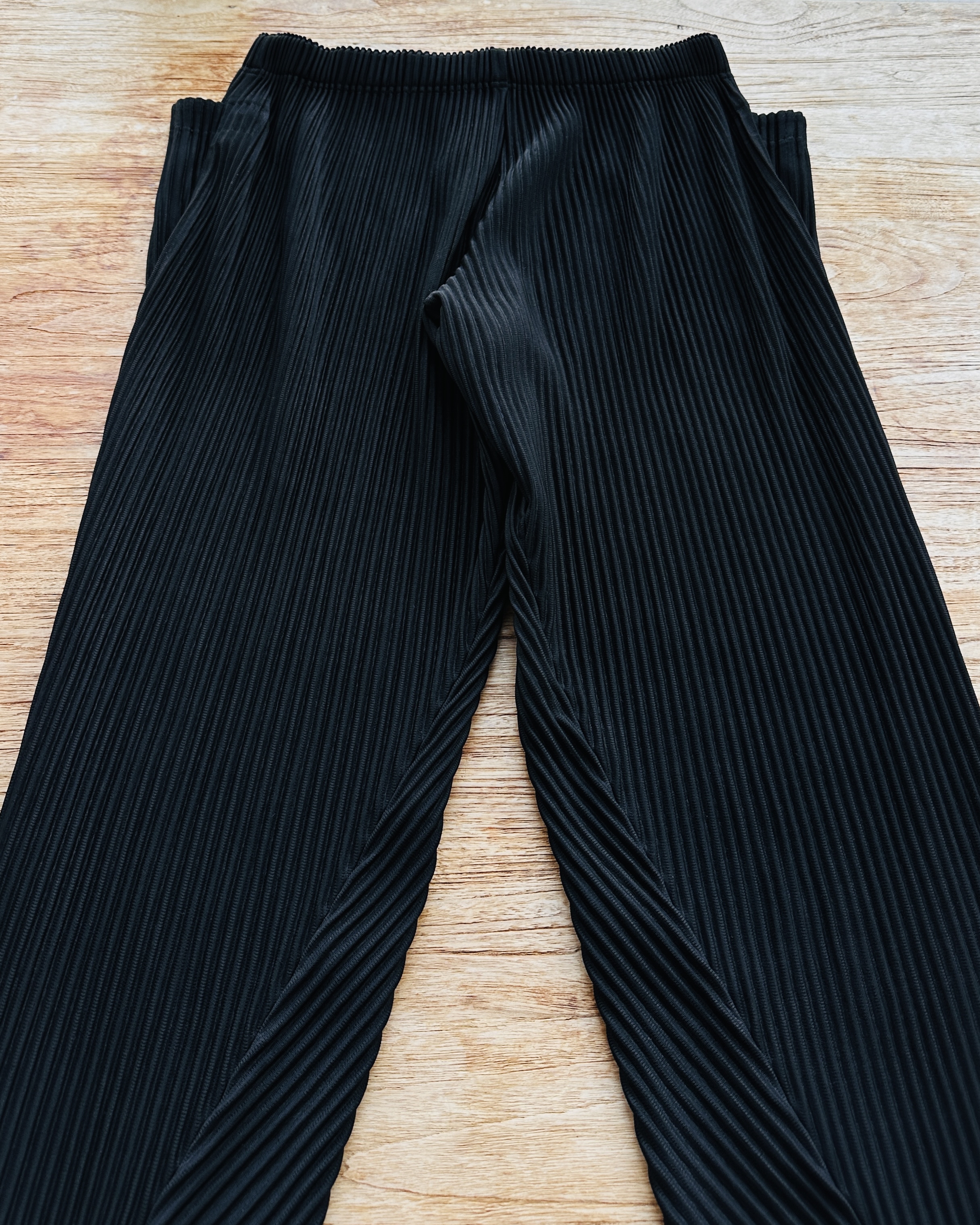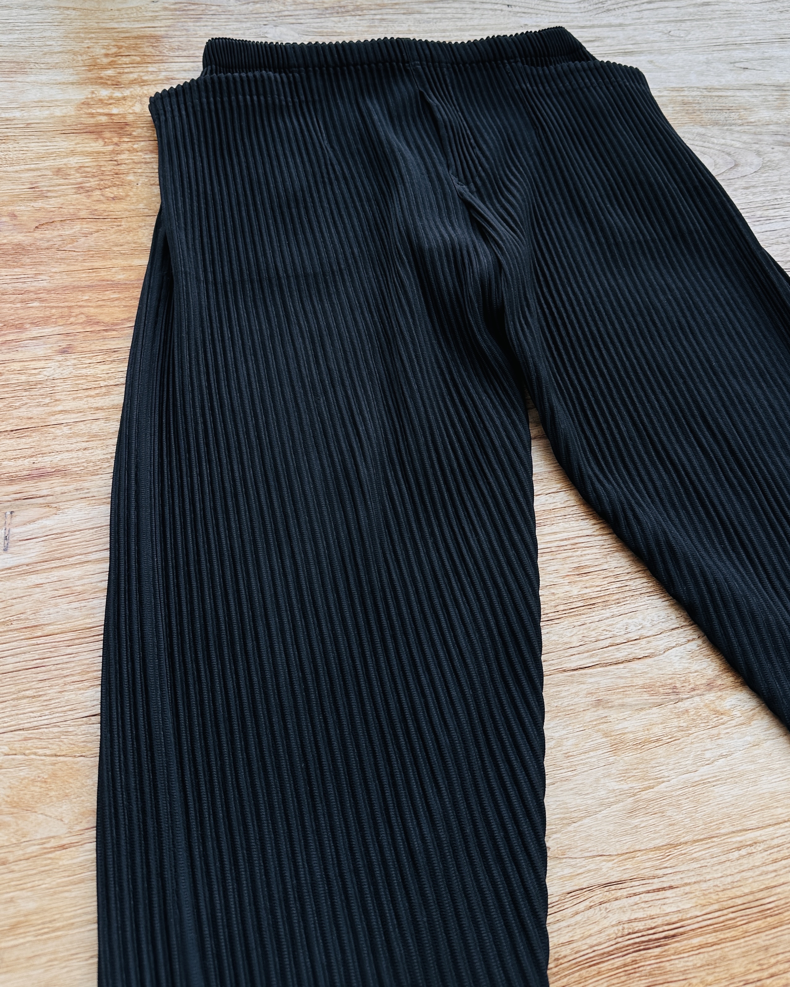 呢個cut精彩呀🕺🏻!留意一頭一尾,褲袋同褲腳設計,如果唔係sample,起碼mark佢HK$1,300㗎啦。 價錢:HK$950 品牌:Homme Plisse Issey Miyake 尺碼:3 / M-L 尺寸:80-94cm (腰-橡筋頭)|100cm (長) 註:83%新|100% polyester|菲律賓製 *二手產品難達全新狀態,耗損或歲月痕跡屬正常情況,較明顯/嚴重嘅問題會標明或影底,敬請見諒。 *進入付款程序後,請於10分鐘內完成付款,否則絲統會自動取消訂單。 逢星期四寄出|不設退換或退款|順豐運費到付|只寄香港不寄海外