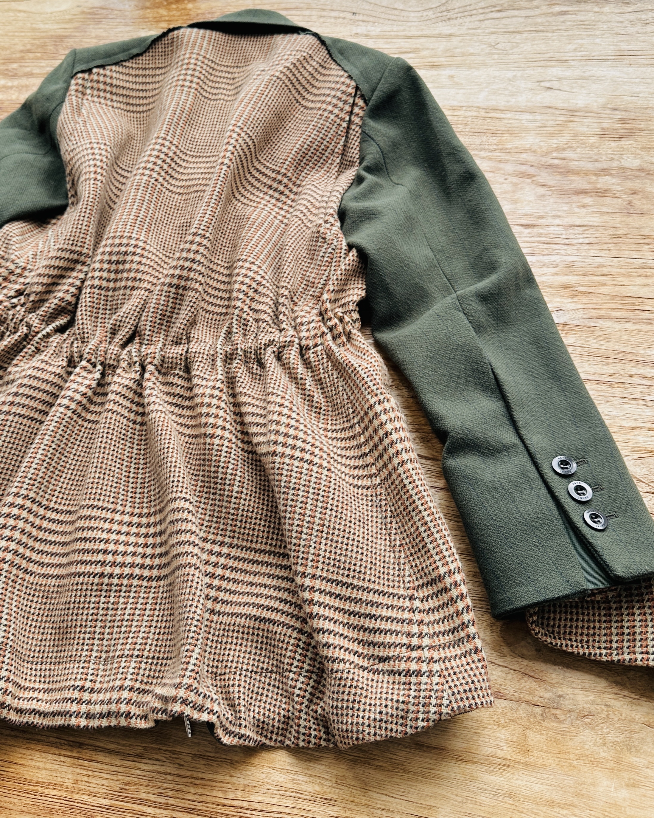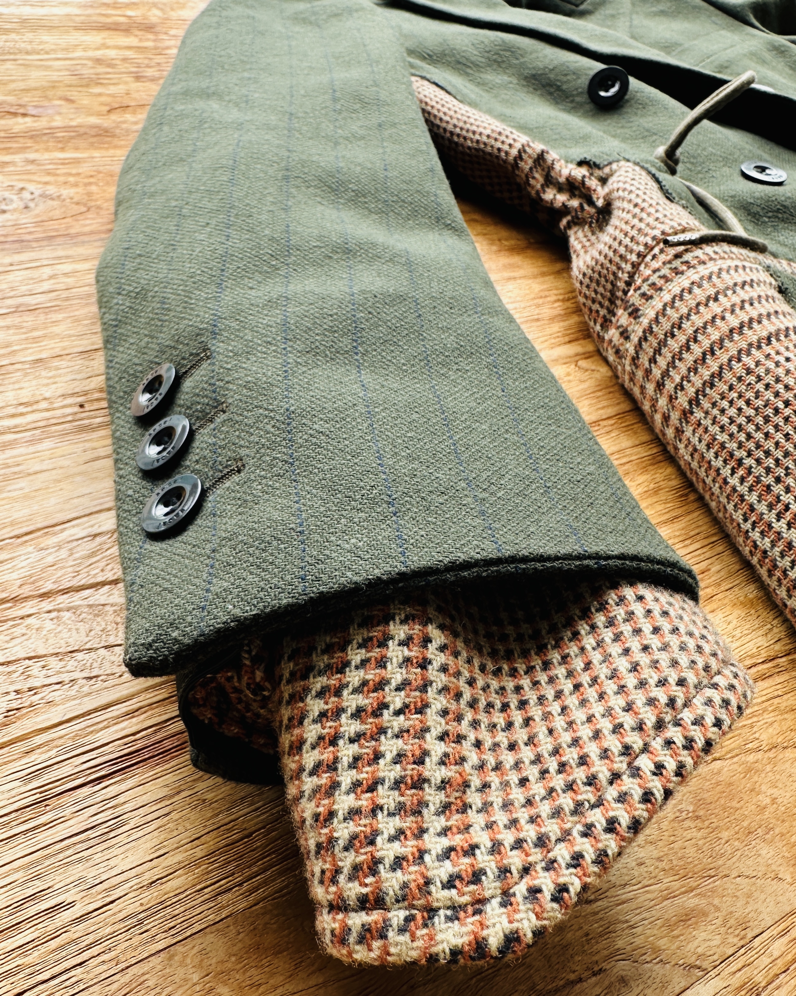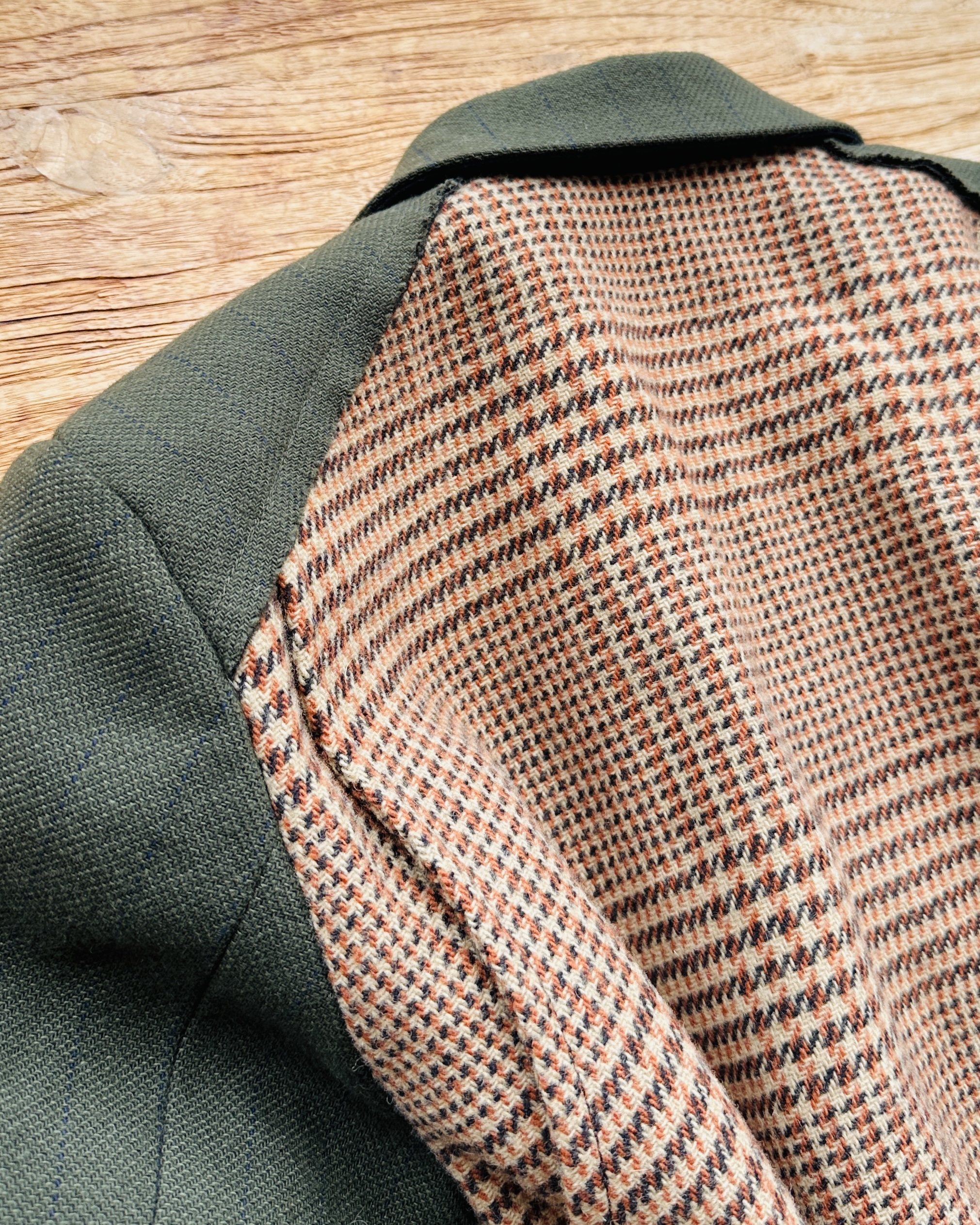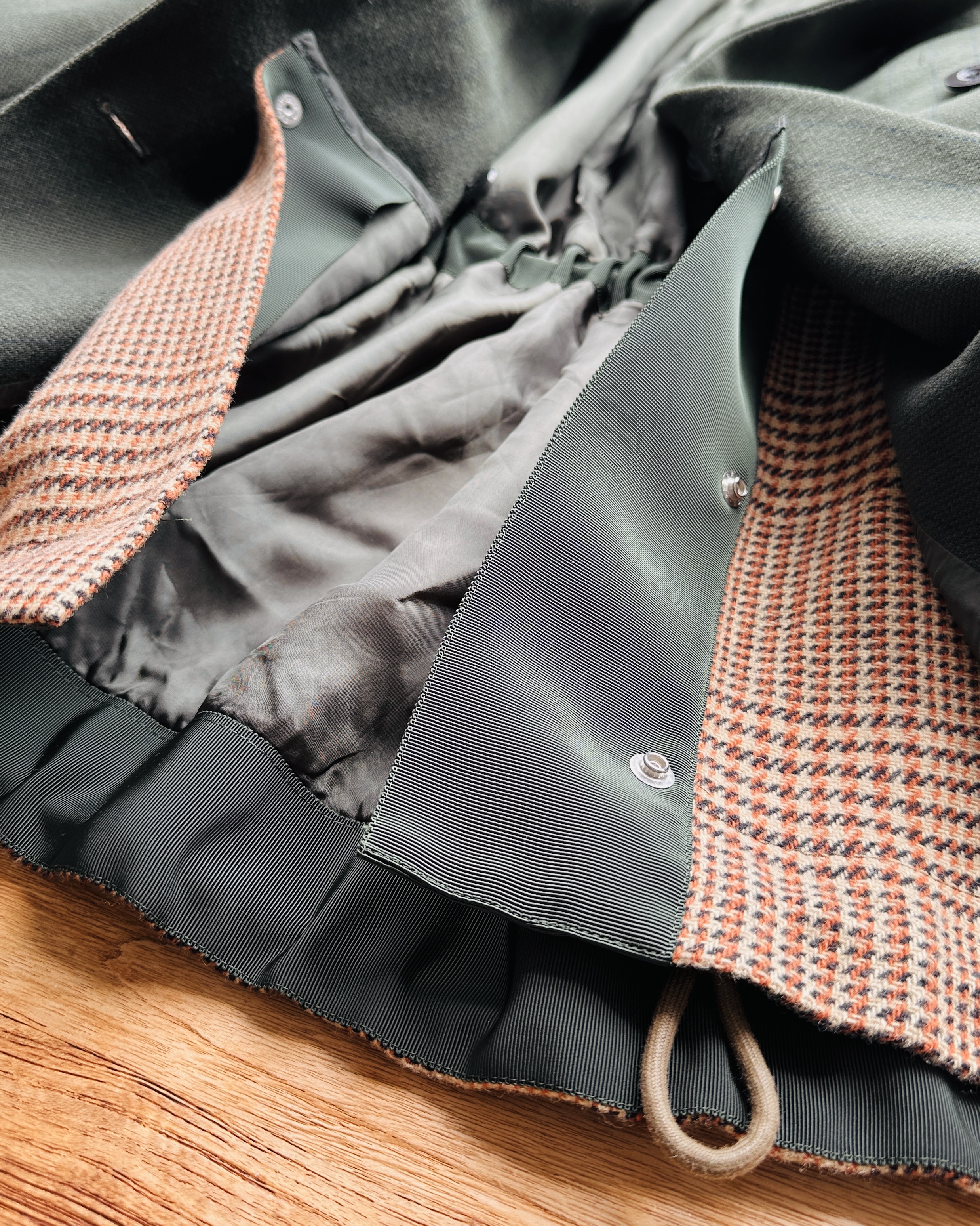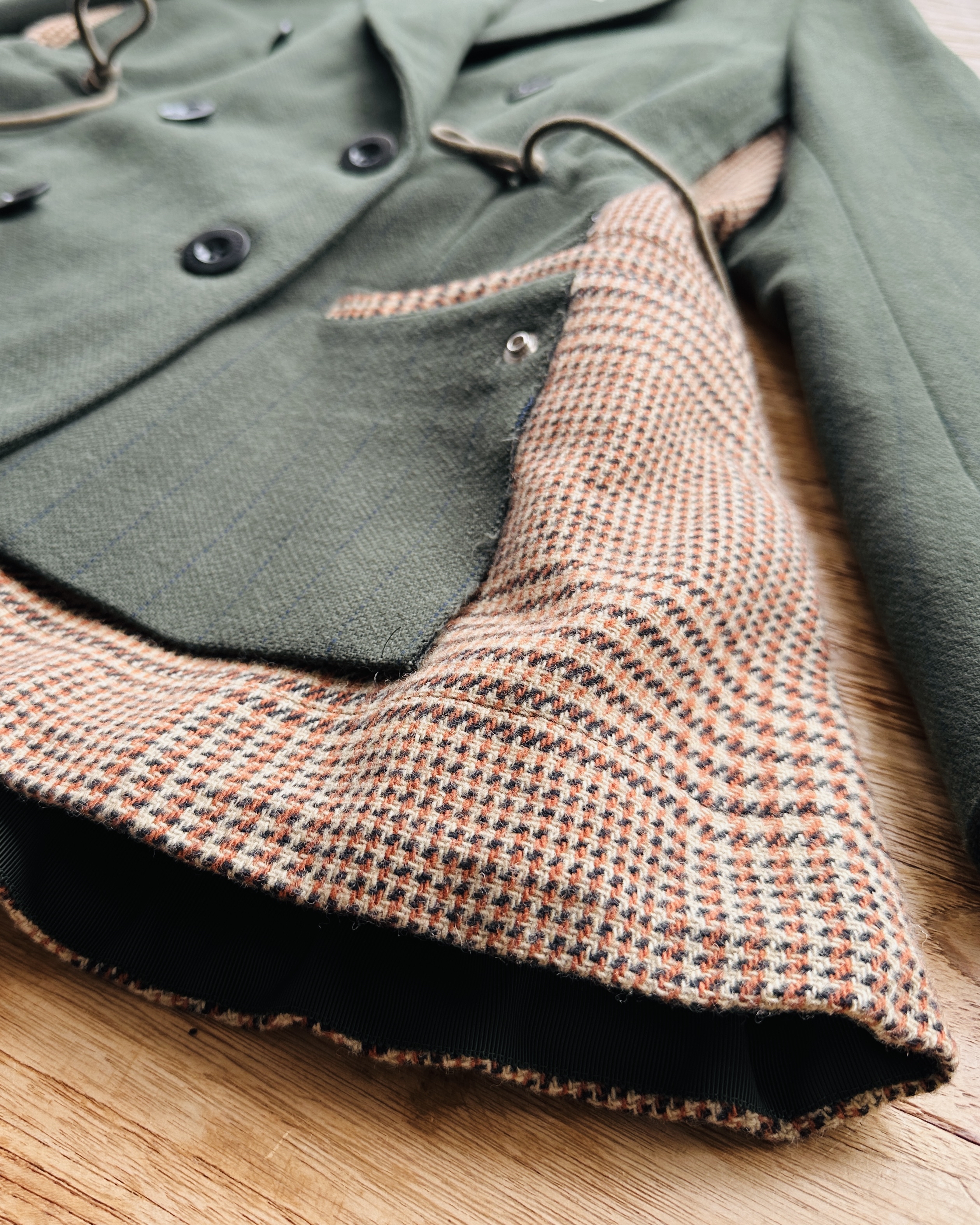 2018秋冬孖襟西裝褸;前pinstripe後Prince of Wales glen pleid,將傳統古龍水級佬味男裝變成妹豬型褸。Sacai係好波嘅⚽️ 價錢:HK$2,680 品牌:Sacai 尺碼:2 / S-M 尺寸:40cm (肩)|92cm (胸-buttoned)|100cm+ (腰-可索緊)|67cm (袖)|73cm (長) 註:83%新|100% polyester|100% wool|100% cupro (底)|日本製 *二手產品難達全新狀態,耗損或歲月痕跡屬正常情況,較明顯/嚴重嘅問題會標明或影底,敬請見諒。 *進入付款程序後,請於10分鐘內完成付款,否則絲統會自動取消訂單。 逢星期四寄出|不設退換或退款|順豐運費到付|只寄香港不寄海外