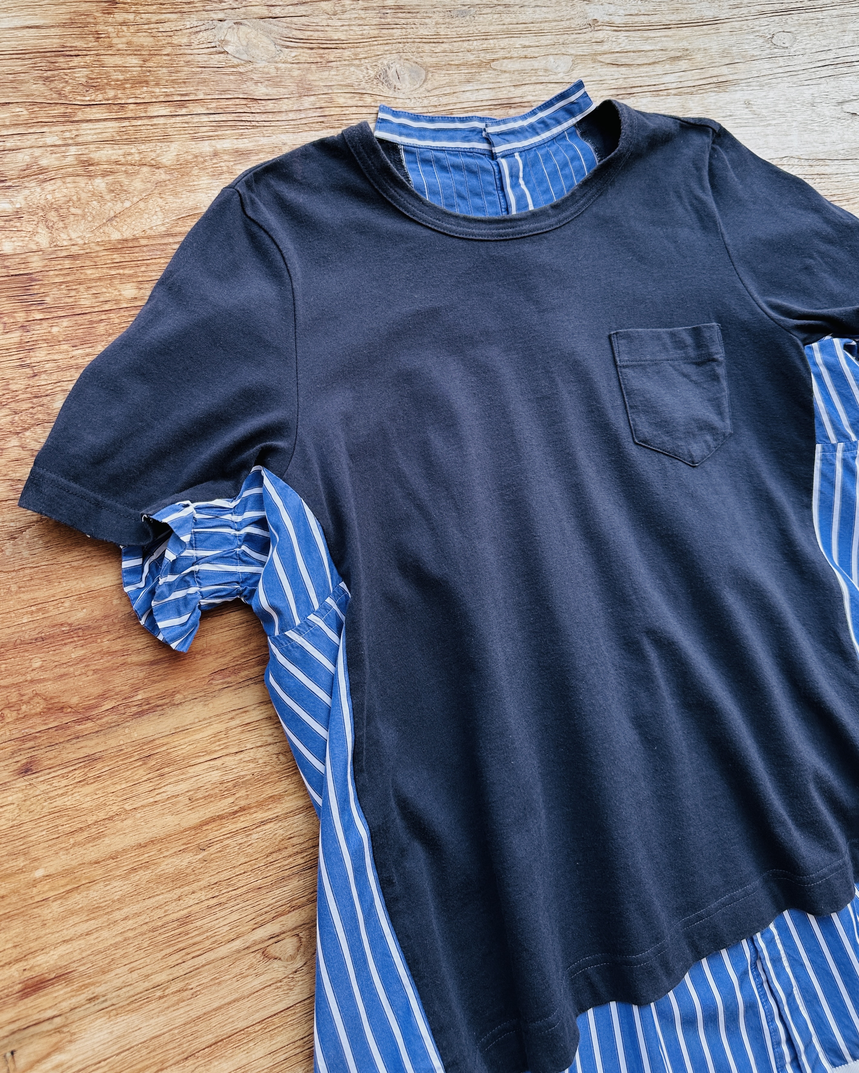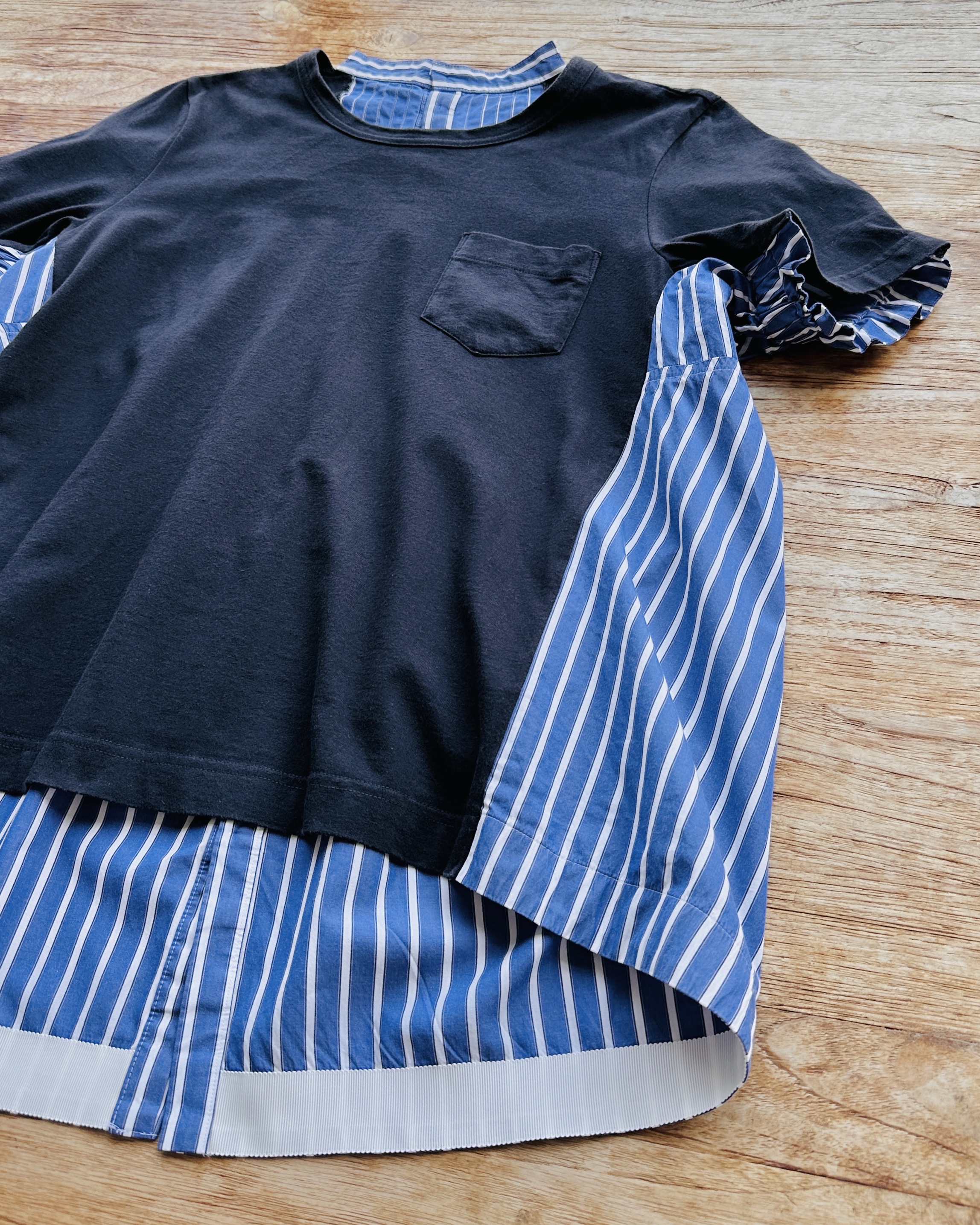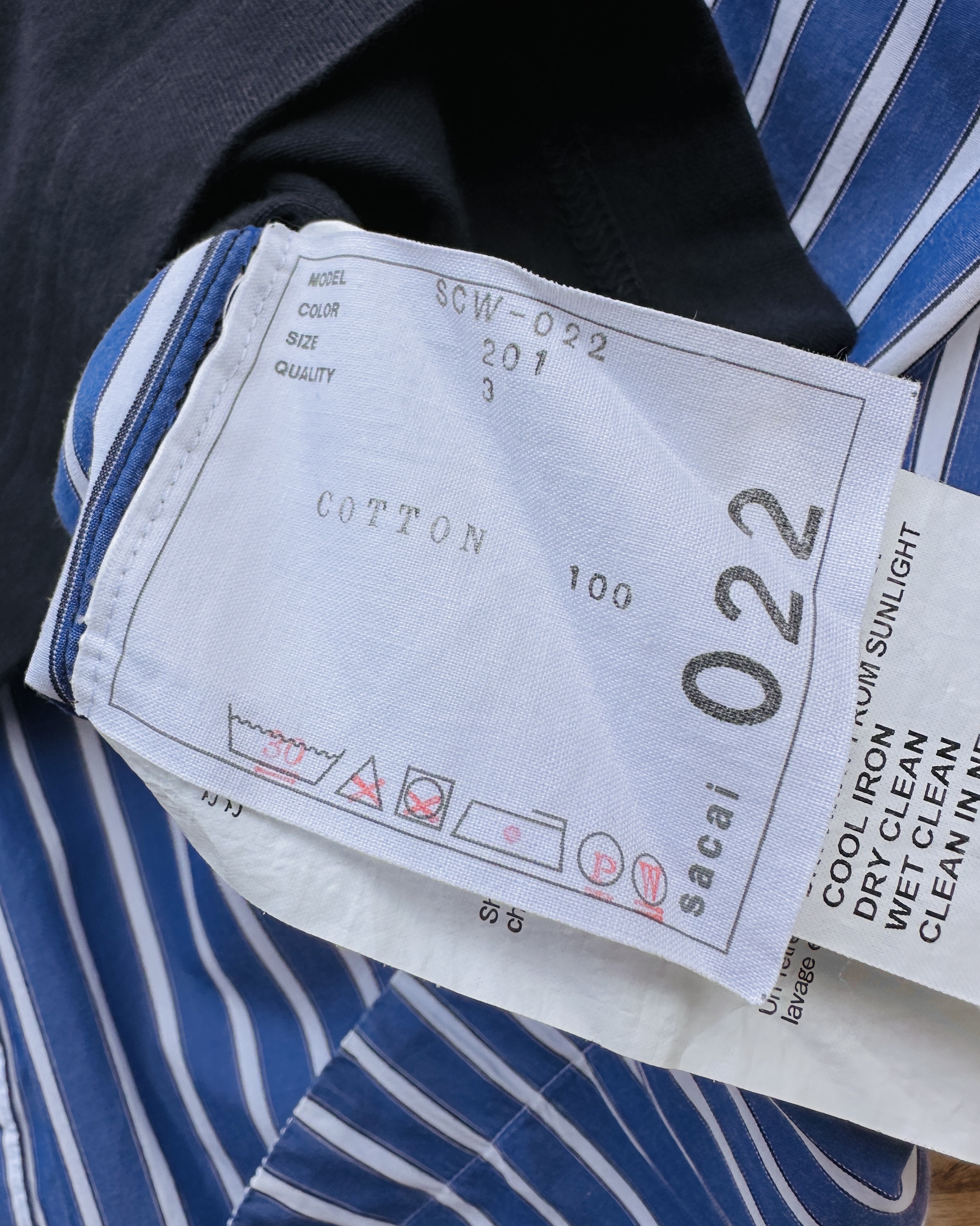 佢叫SCW,Sacai Classics Women,品牌嘅恆常collection,撇開當季主題純粹個人風格主導,即係最Sacai嘅Sacai🦥 價錢:HK$600 品牌:Sacai 尺碼:3 / M-L 尺寸:40cm (肩)|92cm (胸)|100cm+ (腰)|57cm (前長) |69cm (後長) 註:80%新|領邊及右膊淡漬|100% cotton|日本製 *二手產品難達全新狀態,耗損或歲月痕跡屬正常情況,較明顯/嚴重嘅問題會標明或影底,敬請見諒。 *進入付款程序後,請於10分鐘內完成付款,否則絲統會自動取消訂單。 逢星期四寄出|不設退換或退款|順豐運費到付|只寄香港不寄海外
