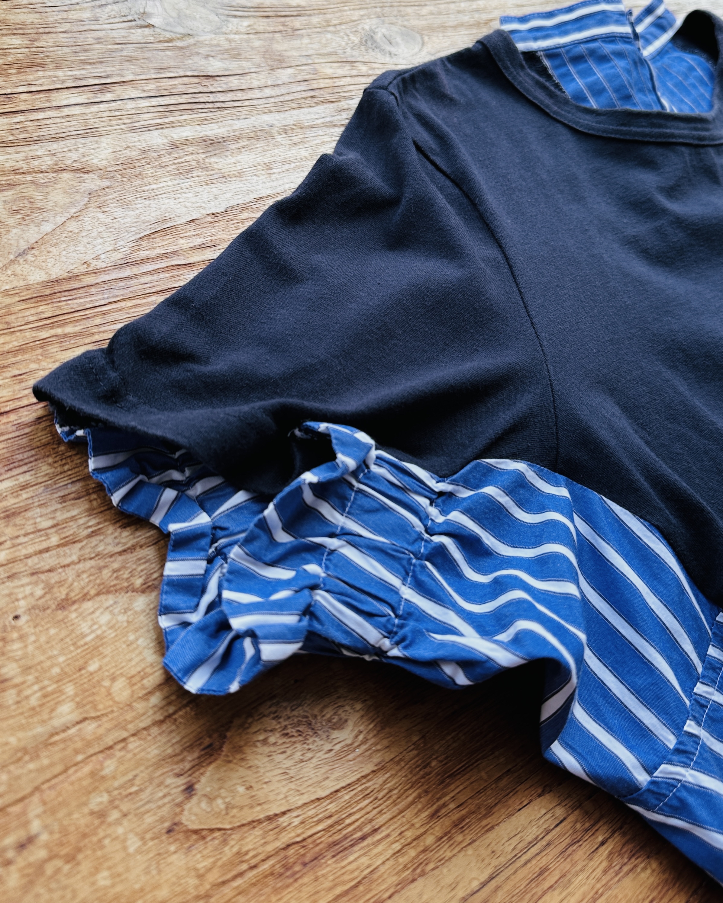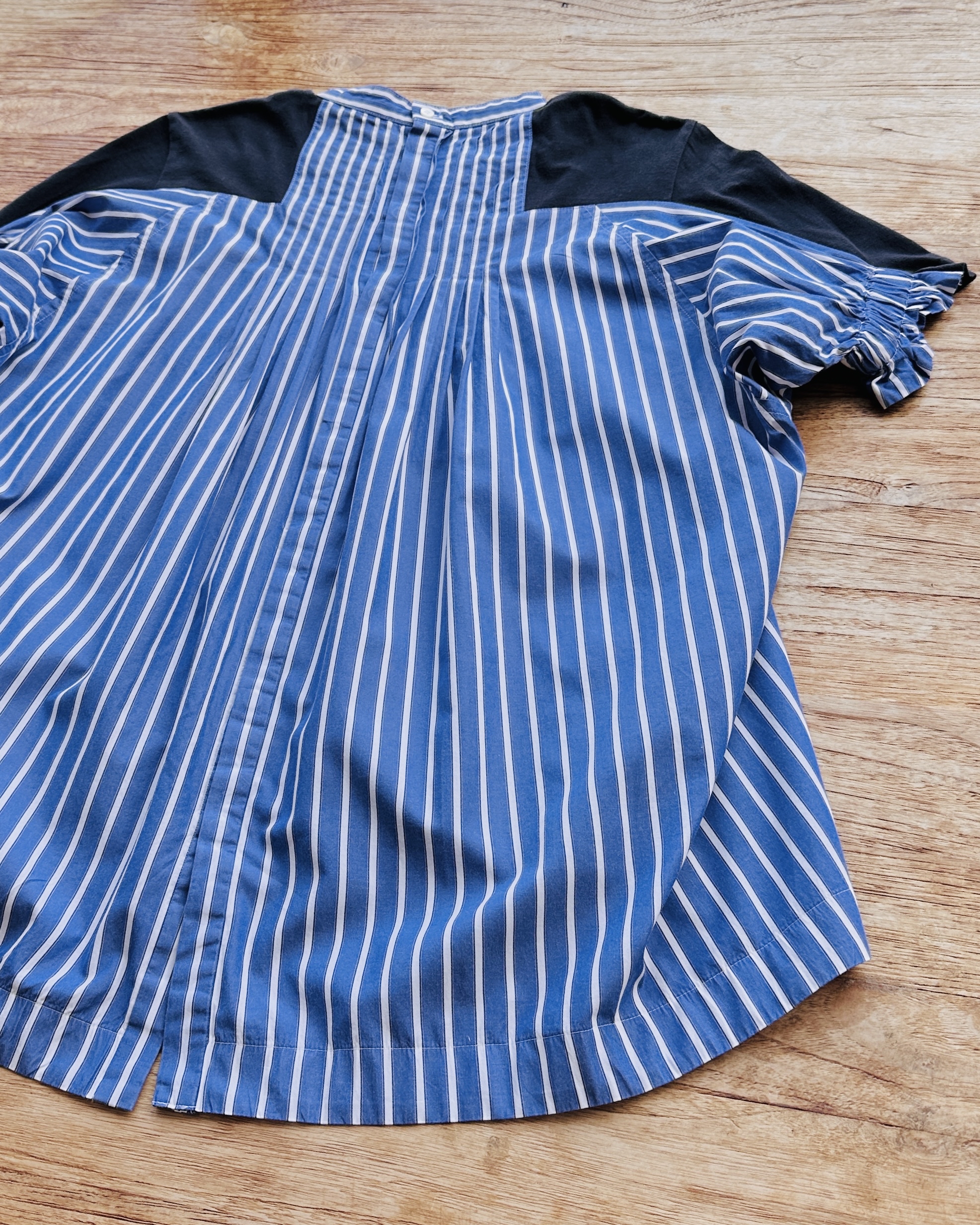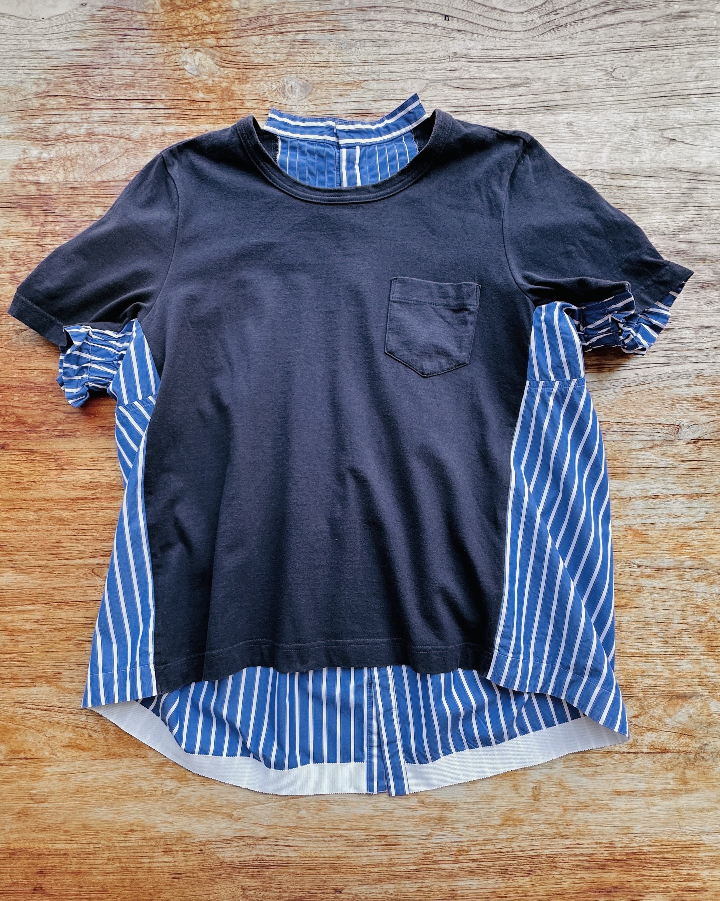 佢叫SCW,Sacai Classics Women,品牌嘅恆常collection,撇開當季主題純粹個人風格主導,即係最Sacai嘅Sacai🦥 價錢:HK$600 品牌:Sacai 尺碼:3 / M-L 尺寸:40cm (肩)|92cm (胸)|100cm+ (腰)|57cm (前長) |69cm (後長) 註:80%新|領邊及右膊淡漬|100% cotton|日本製 *二手產品難達全新狀態,耗損或歲月痕跡屬正常情況,較明顯/嚴重嘅問題會標明或影底,敬請見諒。 *進入付款程序後,請於10分鐘內完成付款,否則絲統會自動取消訂單。 逢星期四寄出|不設退換或退款|順豐運費到付|只寄香港不寄海外