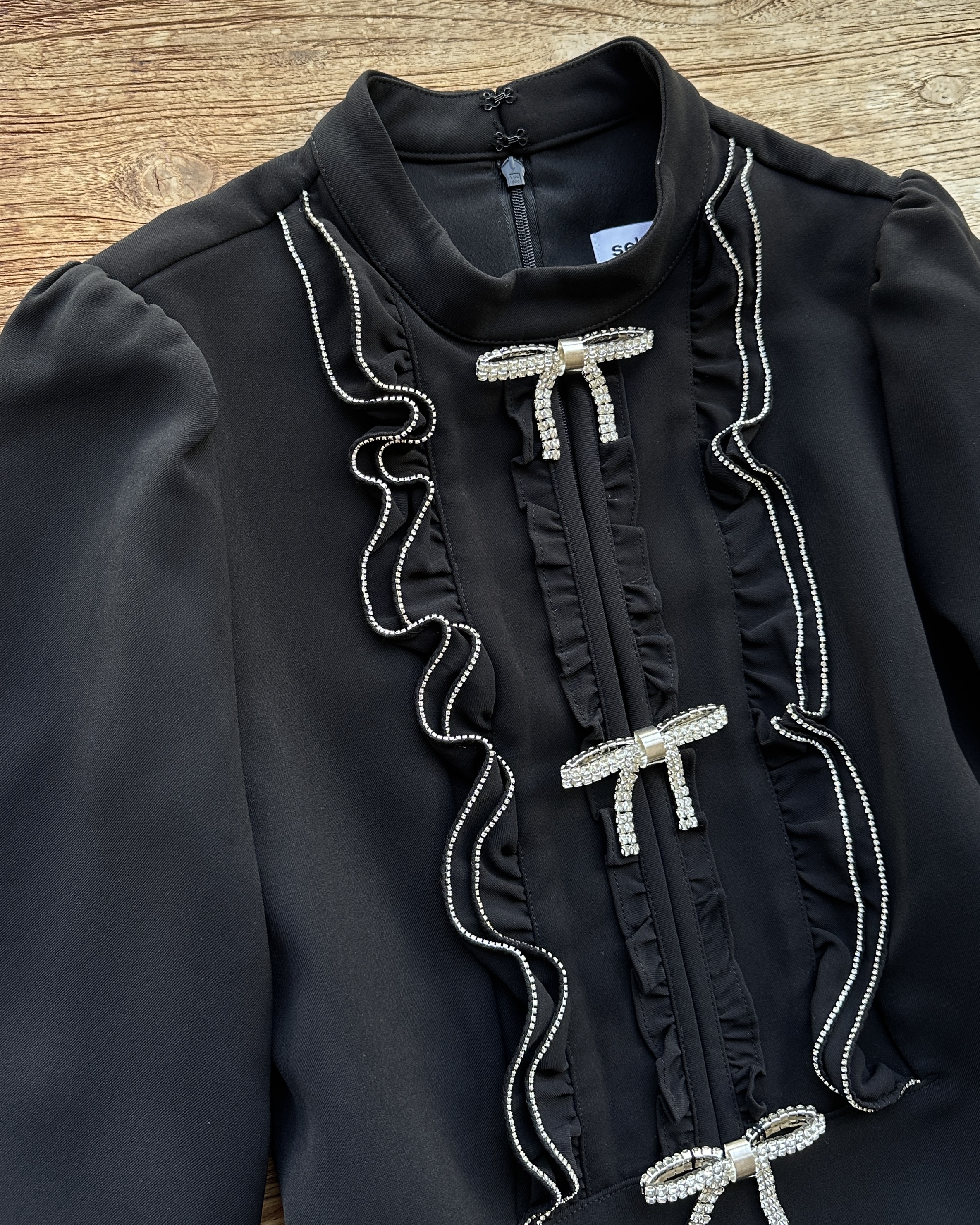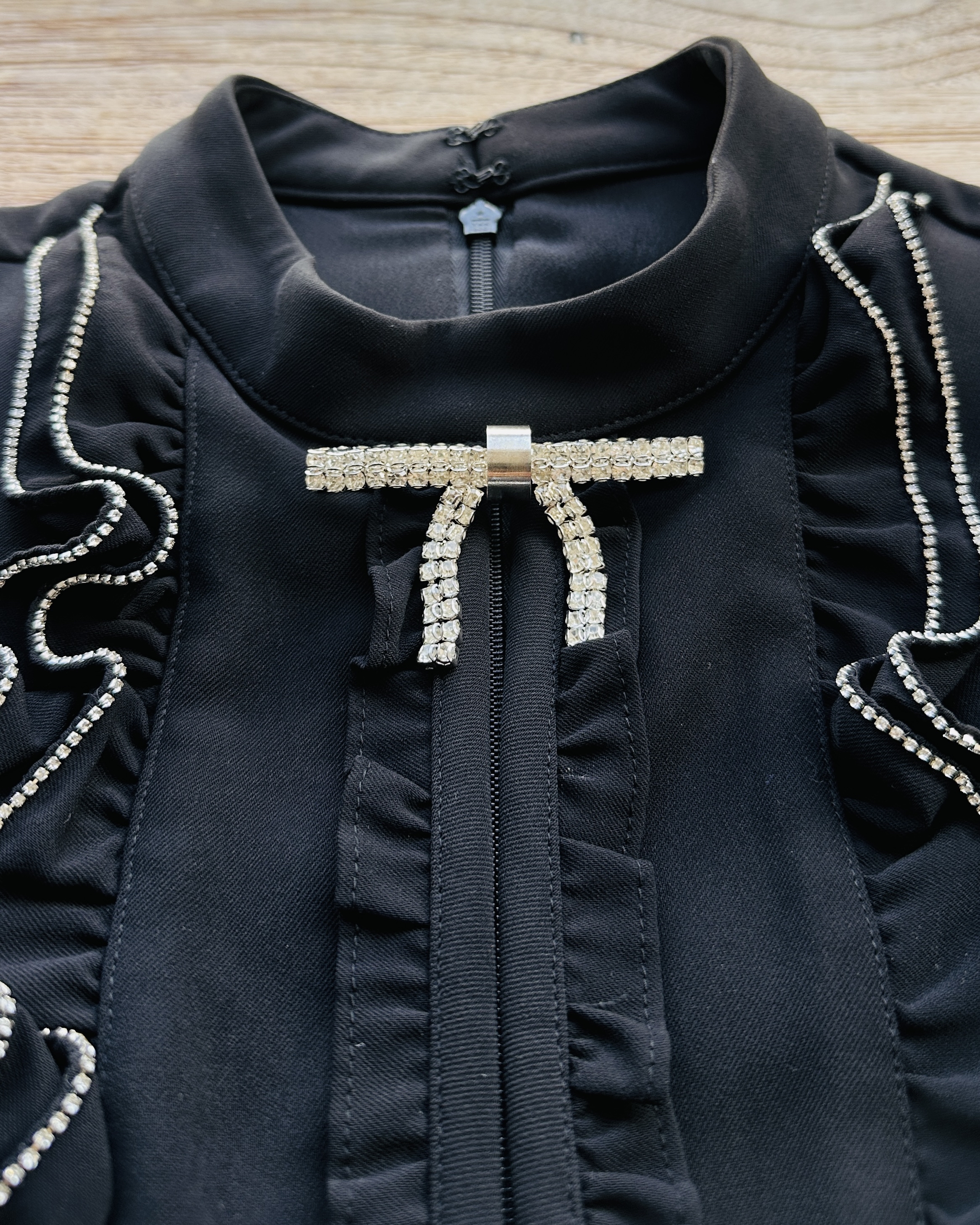 留意心口有條窄窿嘅,咪俾阿蘭黐地嘅身軀fake到👻。上身效果都係睇返model相啦。2022秋冬嘅,少閃怡情🪩,由返工踩到夜晚去party都靚🪭 價錢:HK$1,200 品牌:Self-Portrait 尺碼:UK 6 / XS-S 尺寸:36cm (肩)|80cm (胸)|70cm (腰)| 86cm (臀)|60cm (袖)|83cm (長) 註:全新未使用|100% polyester *二手產品難達全新狀態,耗損或歲月痕跡屬正常情況,較明顯/嚴重嘅問題會標明或影底,敬請見諒。 *進入付款程序後,請於10分鐘內完成付款,否則絲統會自動取消訂單。 逢星期四寄出|不設退換或退款|順豐運費到付|只寄香港不寄海外