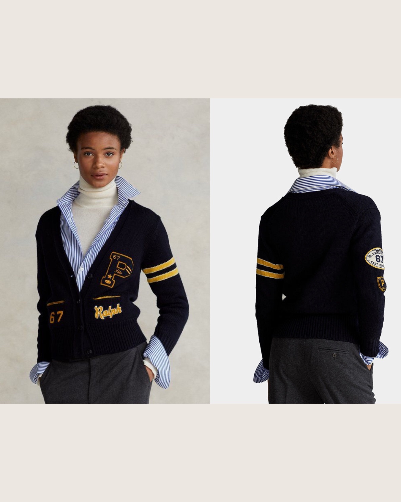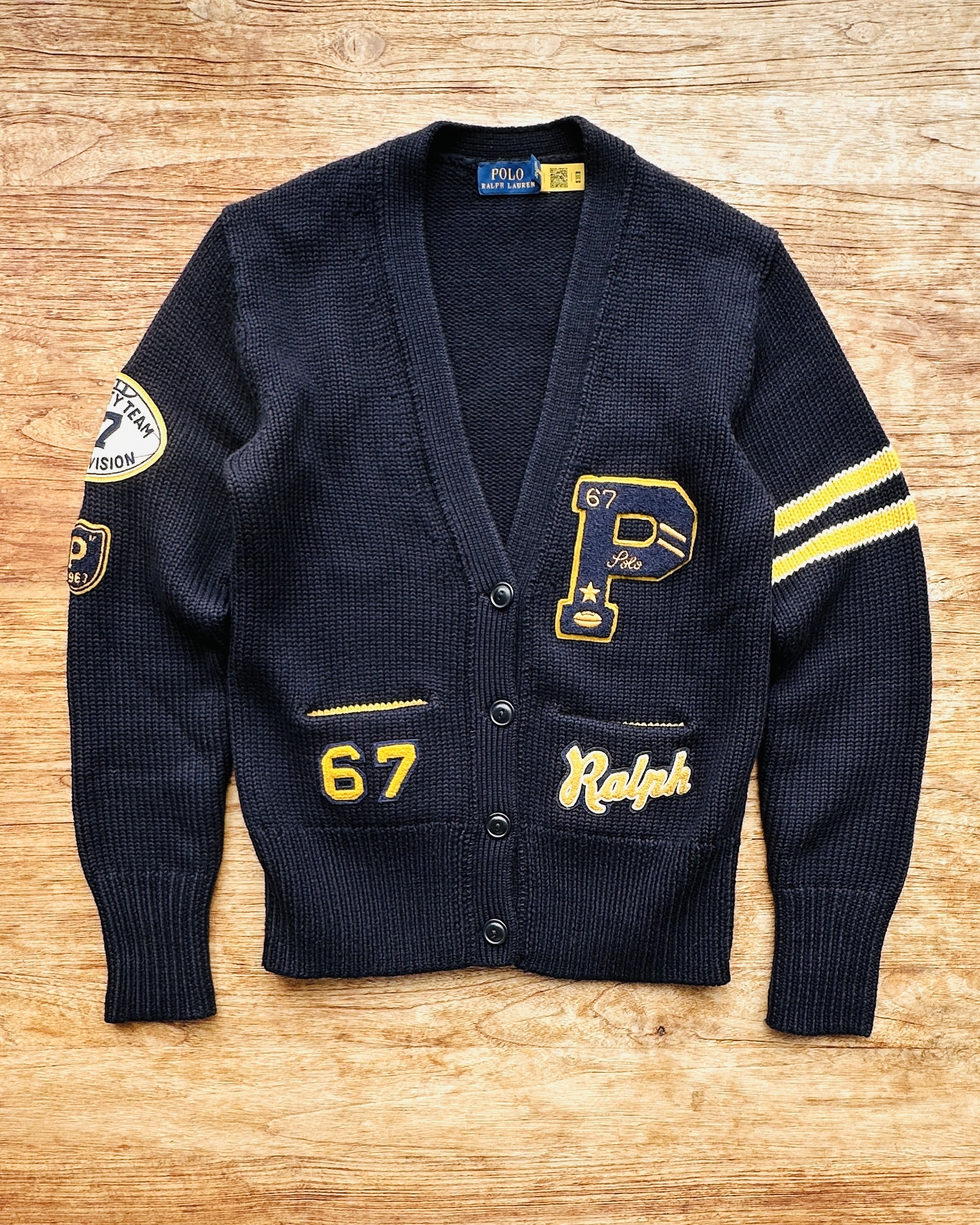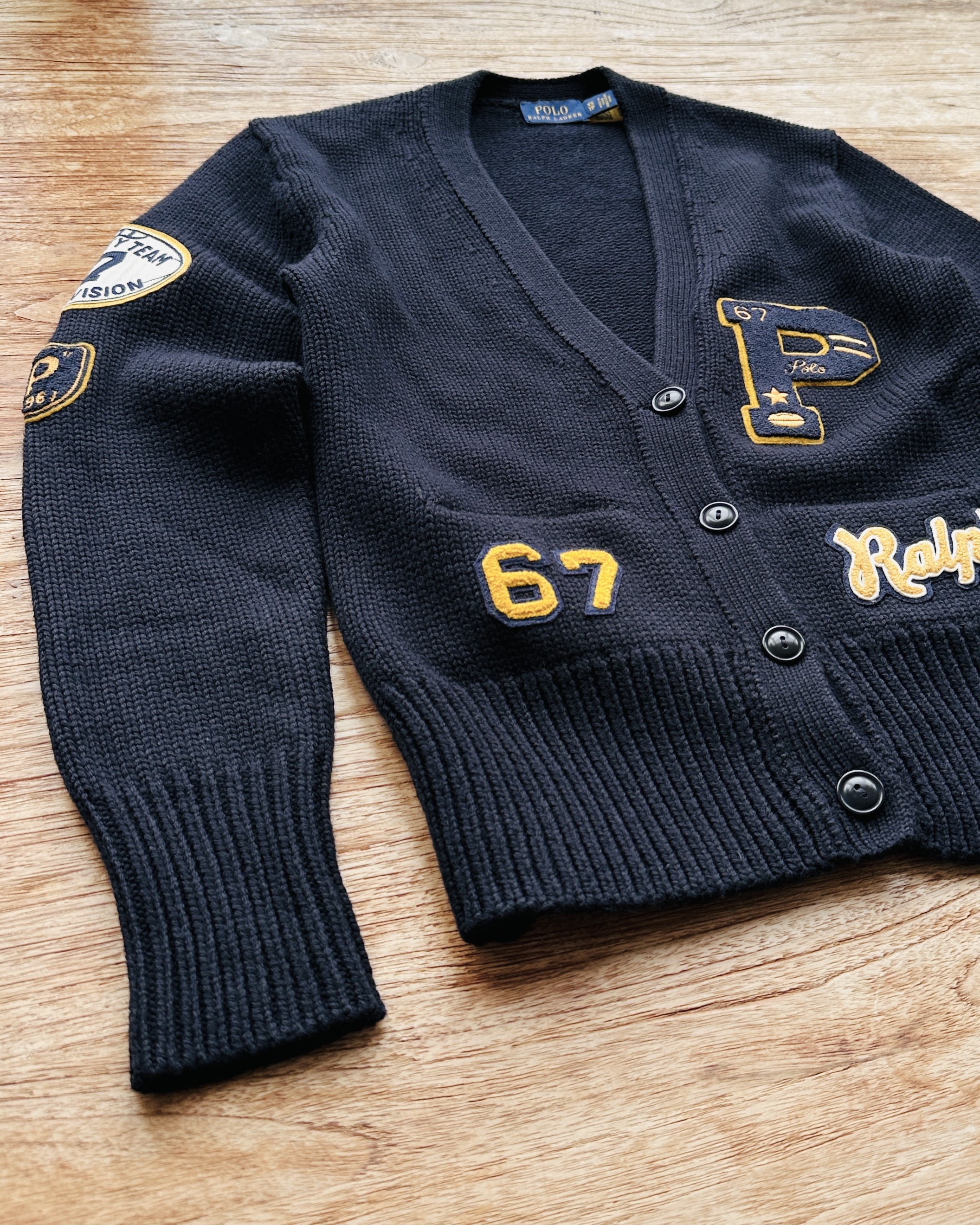 你以為呢種校園式letterman caridgan係向棒球褸致敬咩?錯啦🙅🏻♀️!所有字母章letterman設計嘅祖先都係1860’s哈佛棒球隊嘅過頭笠字母冷衫⚾️,然後再傳去美國其他長春藤尖子大學,慢慢變成開胸cardigan,再幾十年後到1930’s先真正演變成後來嘅皮袖棒球褸。講OG,冷衫版先係老佛爺🦍 價錢:HK$1,300 品牌:Polo Ralph Lauren 尺碼:XS / 155/80A 尺寸:38cm (肩)|88cm (胸-buttoned)|80cm (腰-buttoned)|57cm (袖)|58cm (長) 註:85%新|100% wool *二手產品難達全新狀態,耗損或歲月痕跡屬正常情況,較明顯/嚴重嘅問題會標明或影底,敬請見諒。 *進入付款程序後,請於10分鐘內完成付款,否則絲統會自動取消訂單。 逢星期四寄出|不設退換或退款|順豐運費到付|只寄香港不寄海外